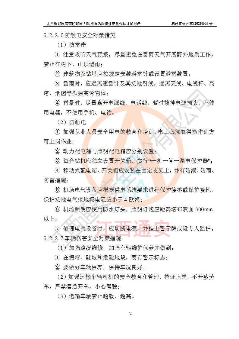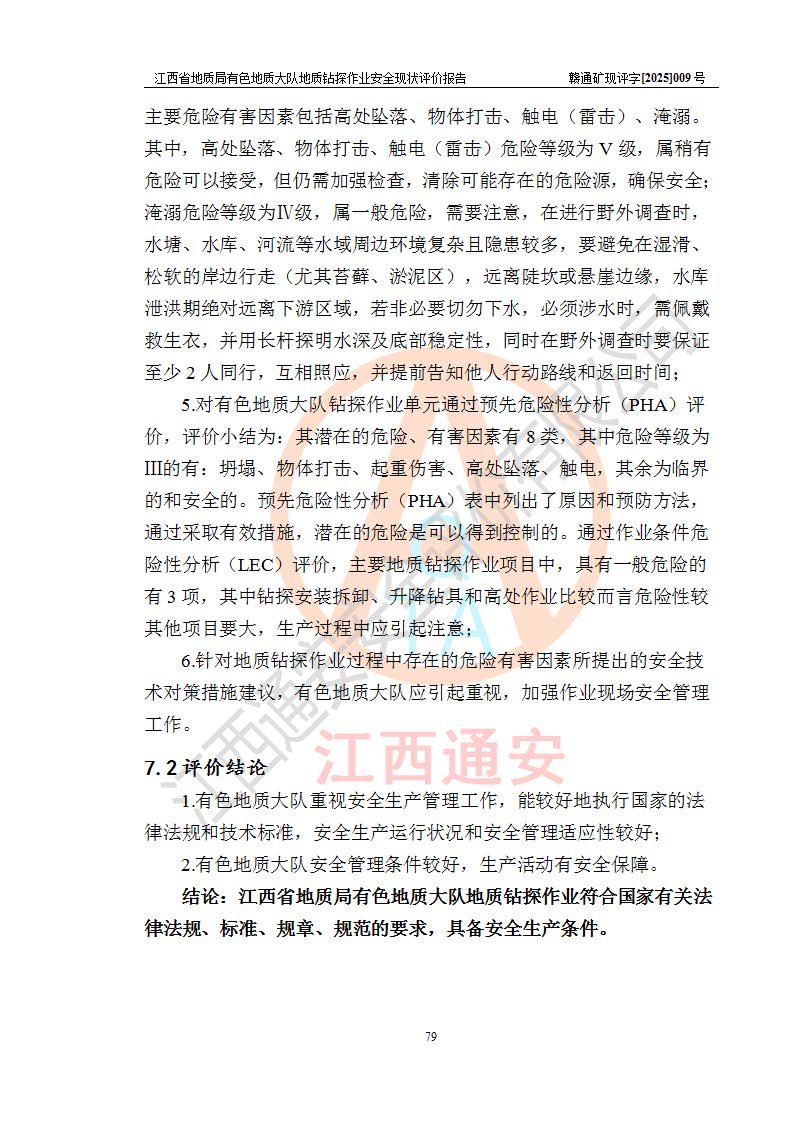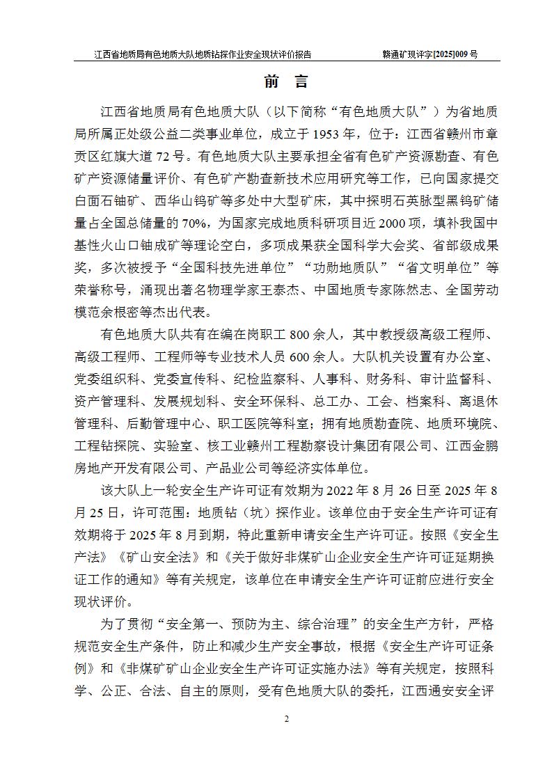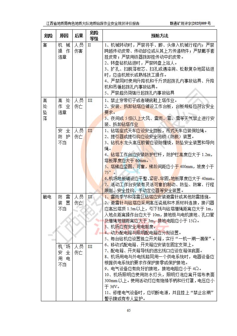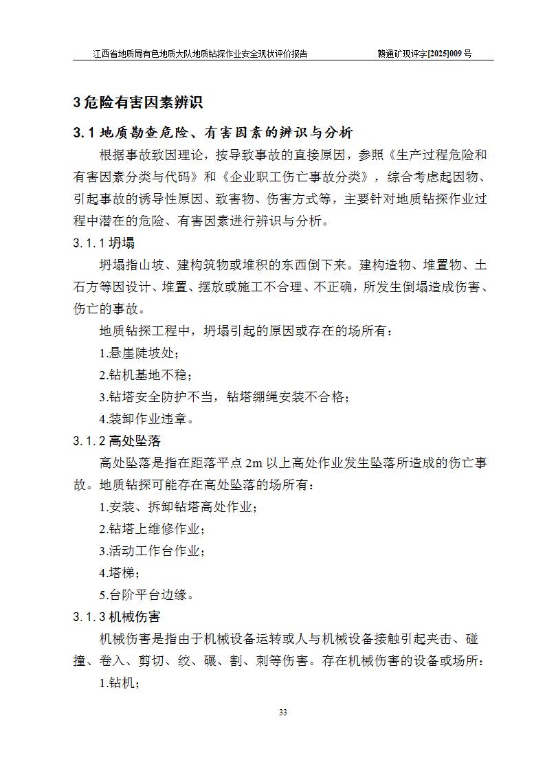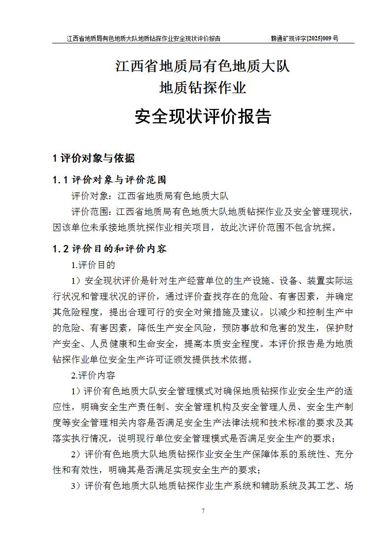 報告名稱 | 江西省地質(zhì)局有色地質(zhì)大隊地質(zhì)鉆探作業(yè)安全現(xiàn)狀評價報告 | |||||
