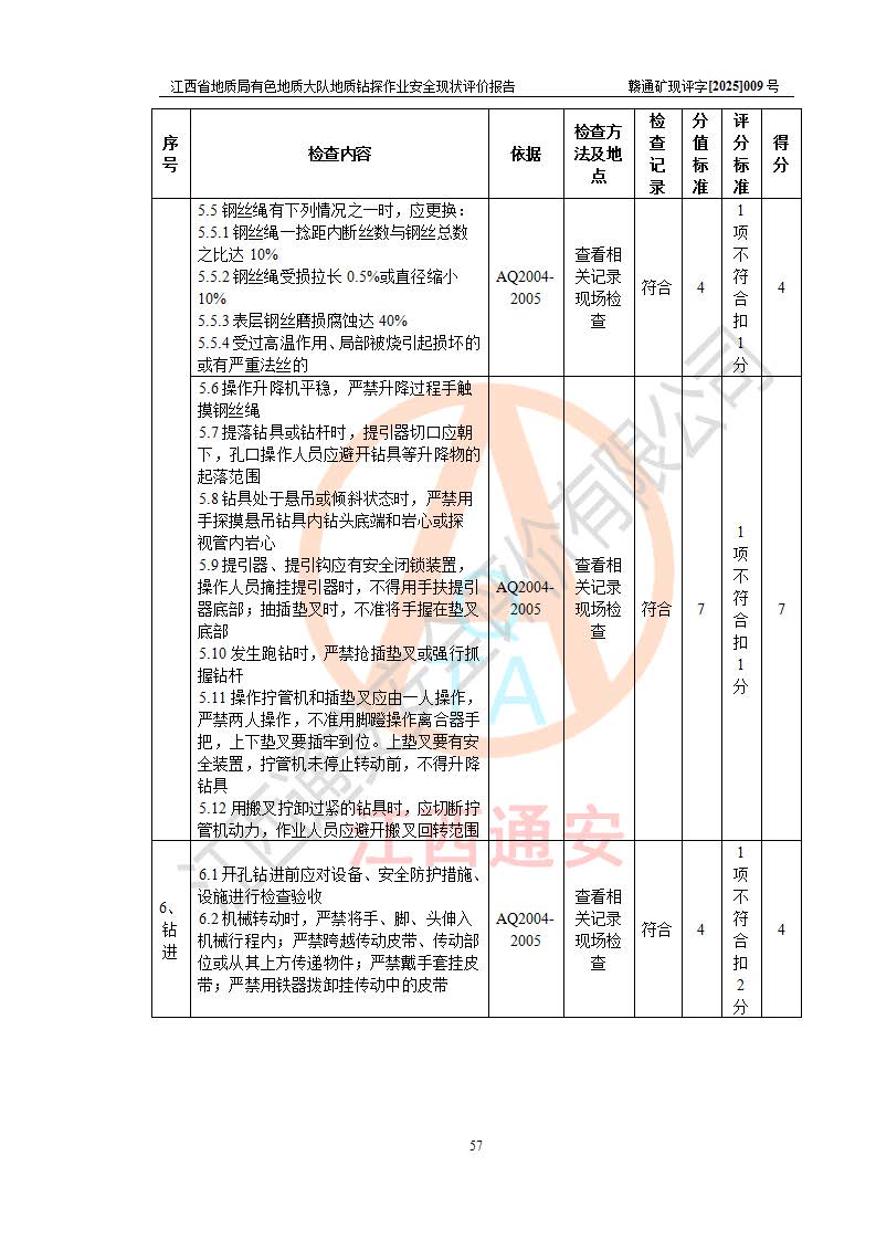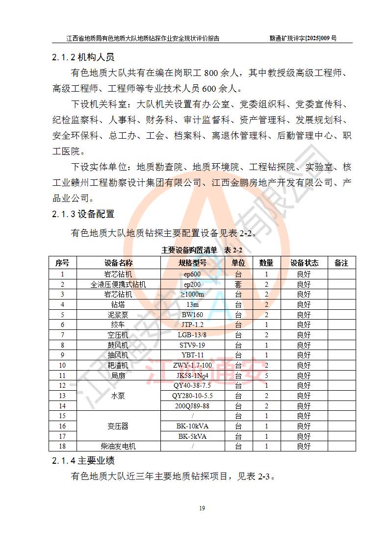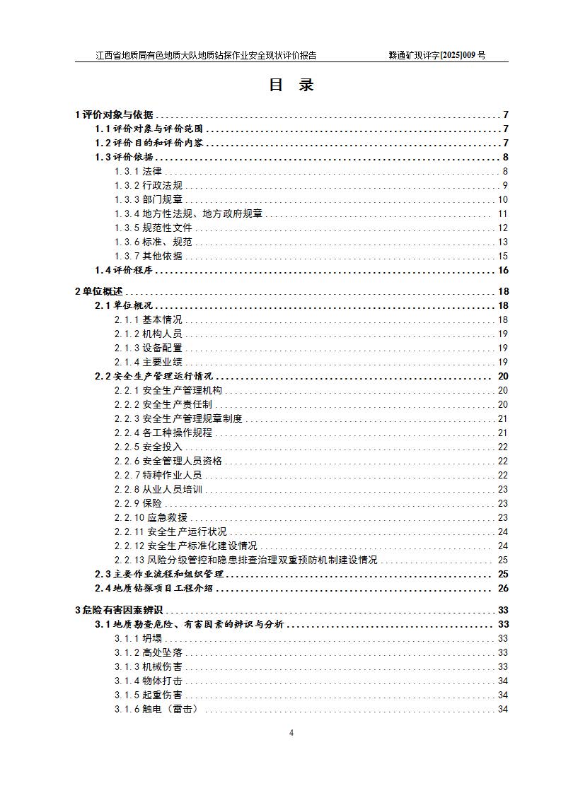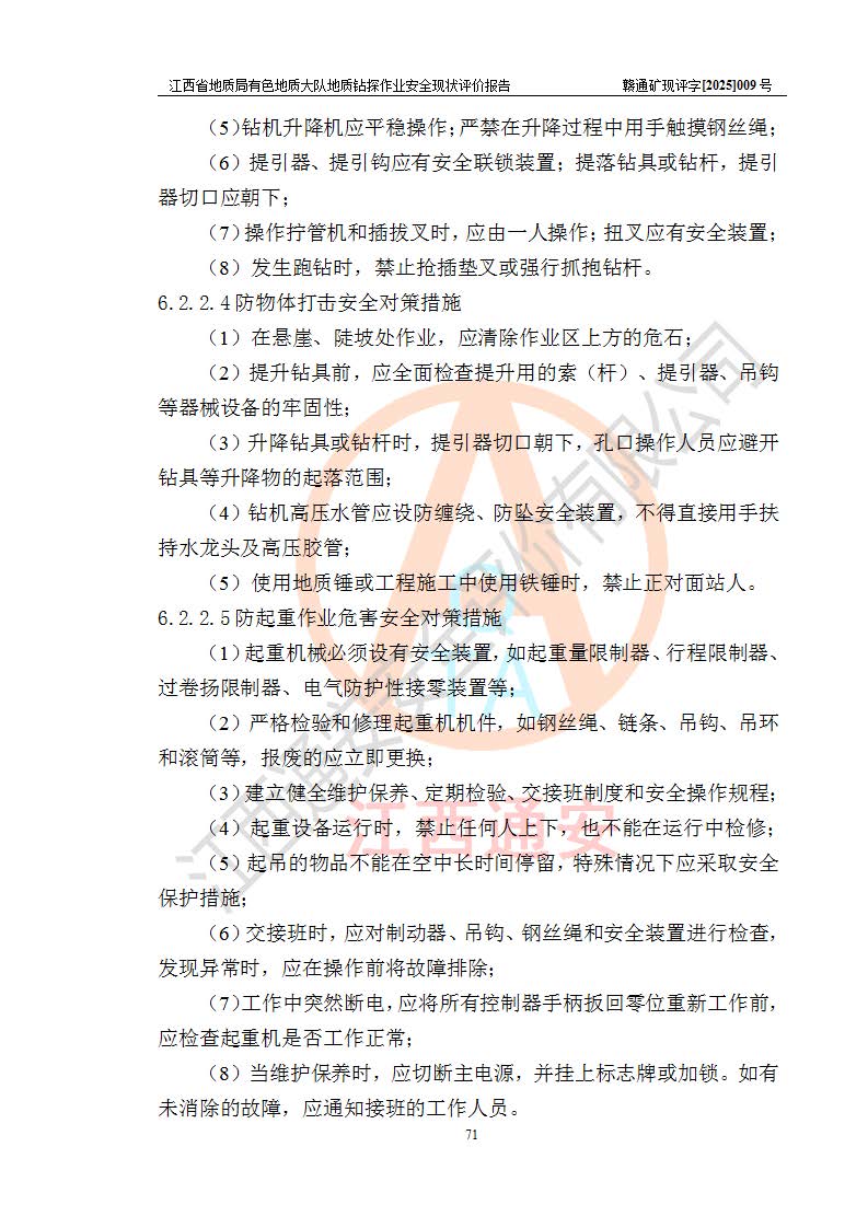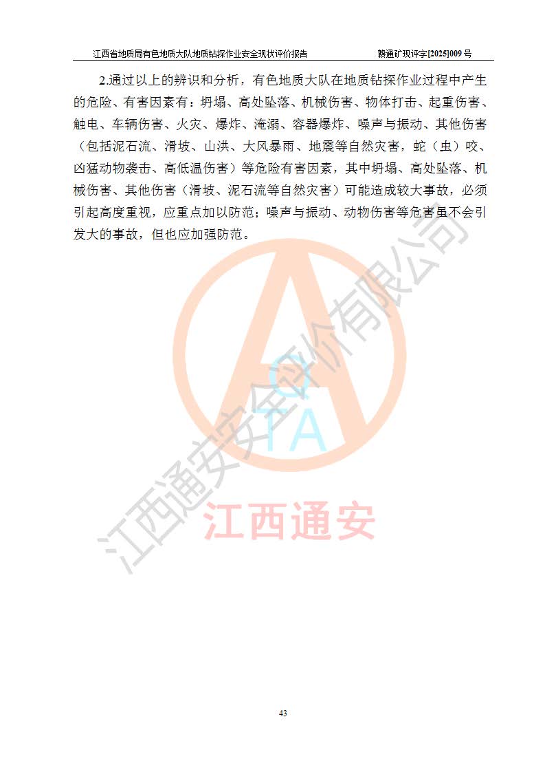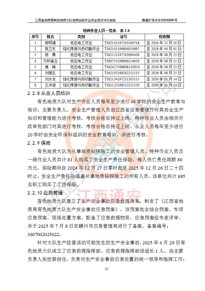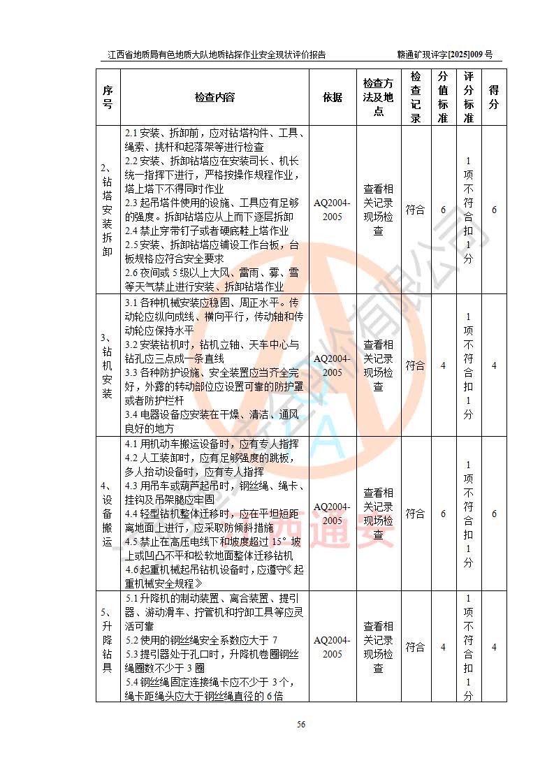 報告名稱 | 江西省地質(zhì)局有色地質(zhì)大隊地質(zhì)鉆探作業(yè)安全現(xiàn)狀評價報告 | |||||