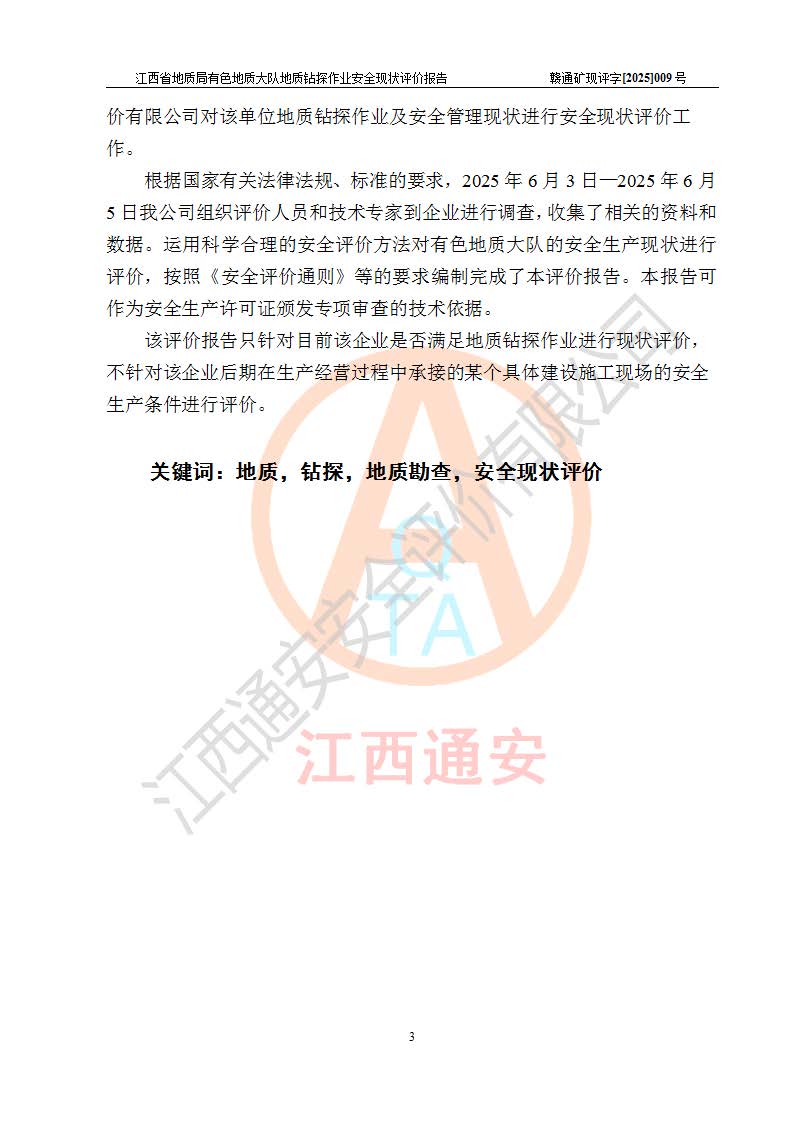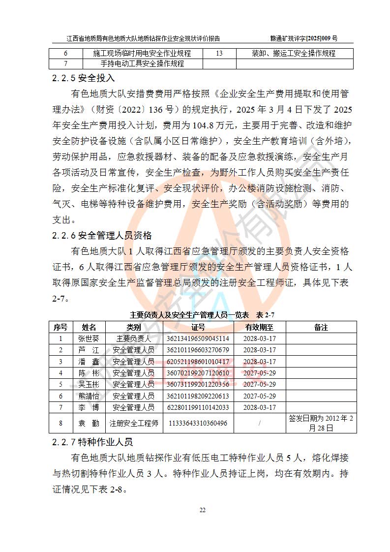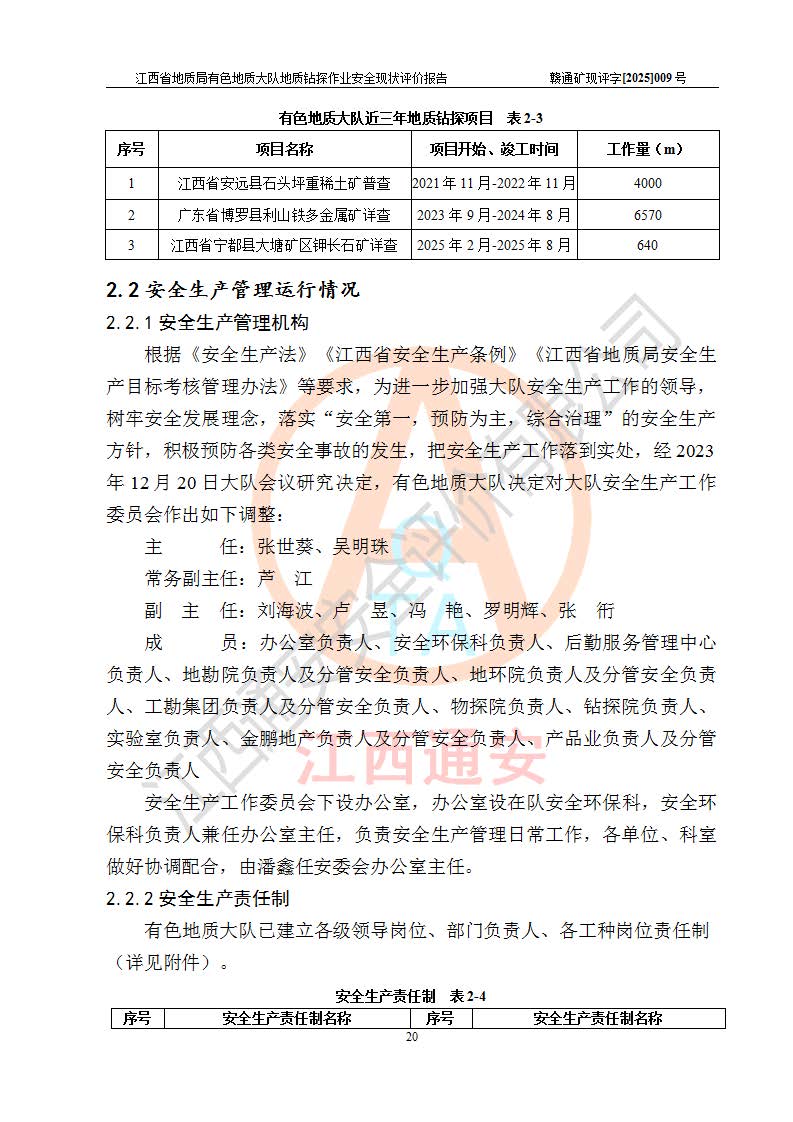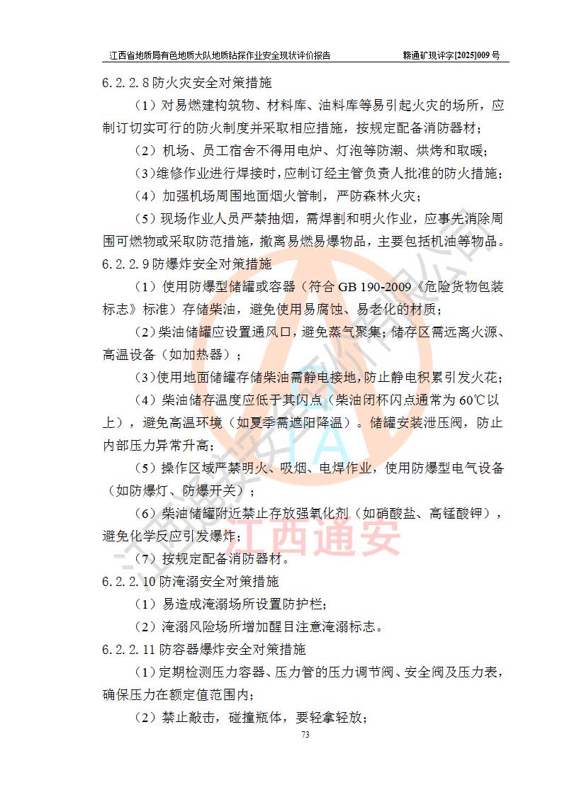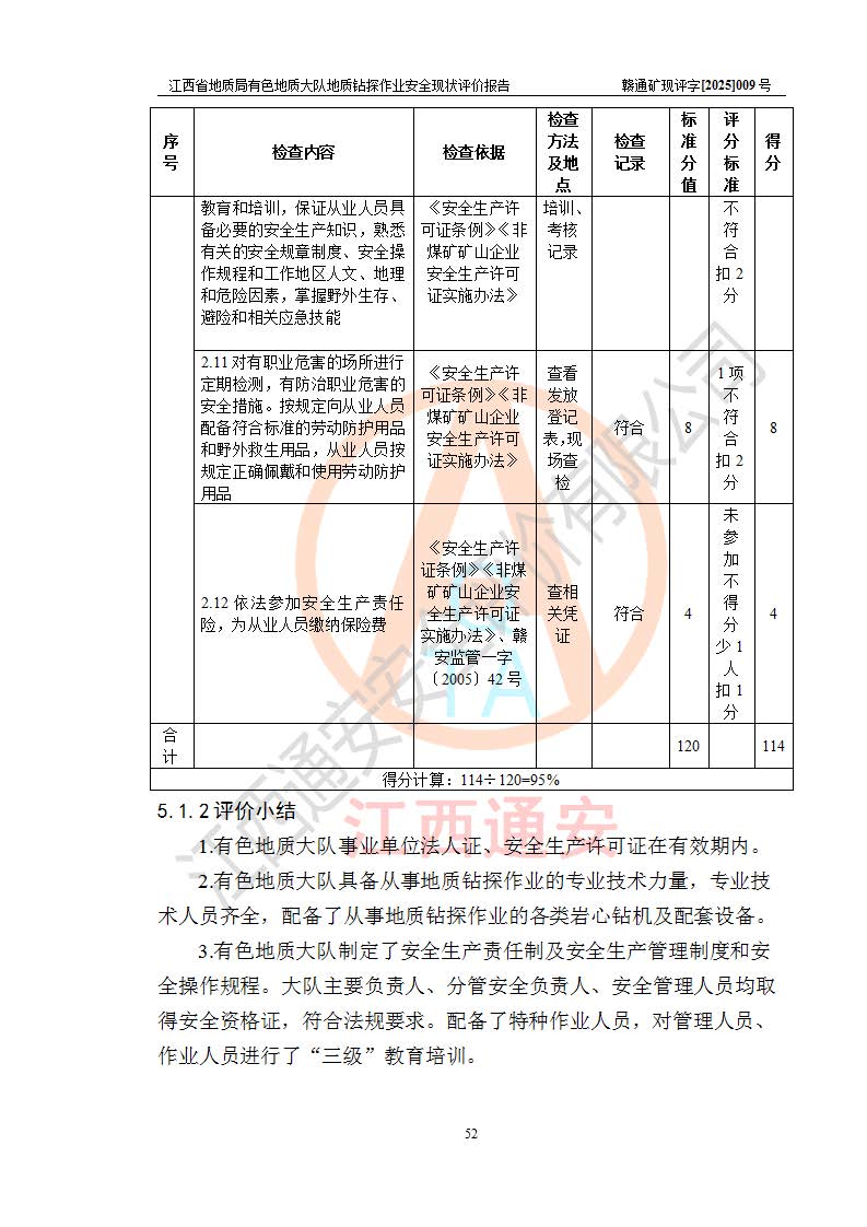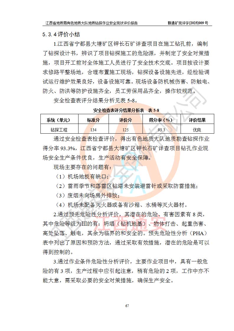 報告名稱 | 江西省地質(zhì)局有色地質(zhì)大隊地質(zhì)鉆探作業(yè)安全現(xiàn)狀評價報告 | |||||