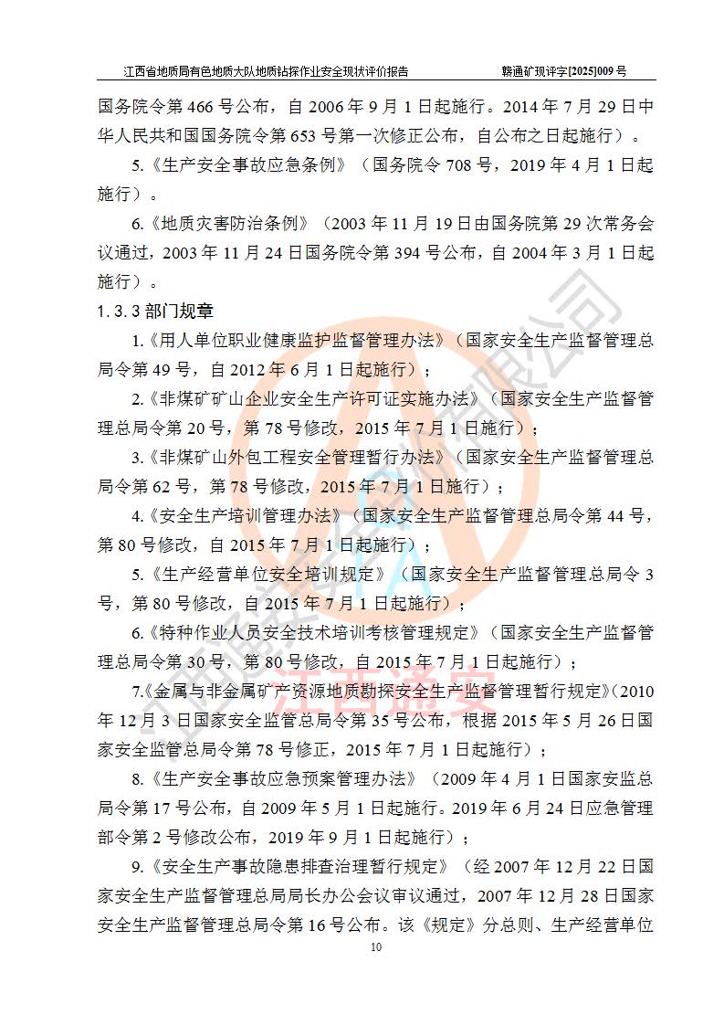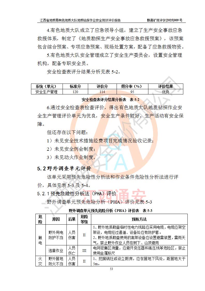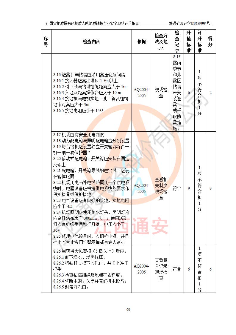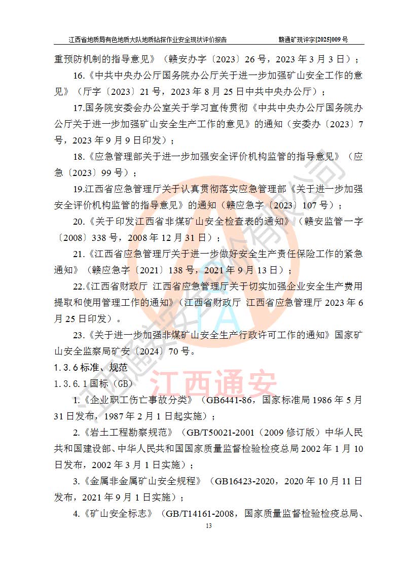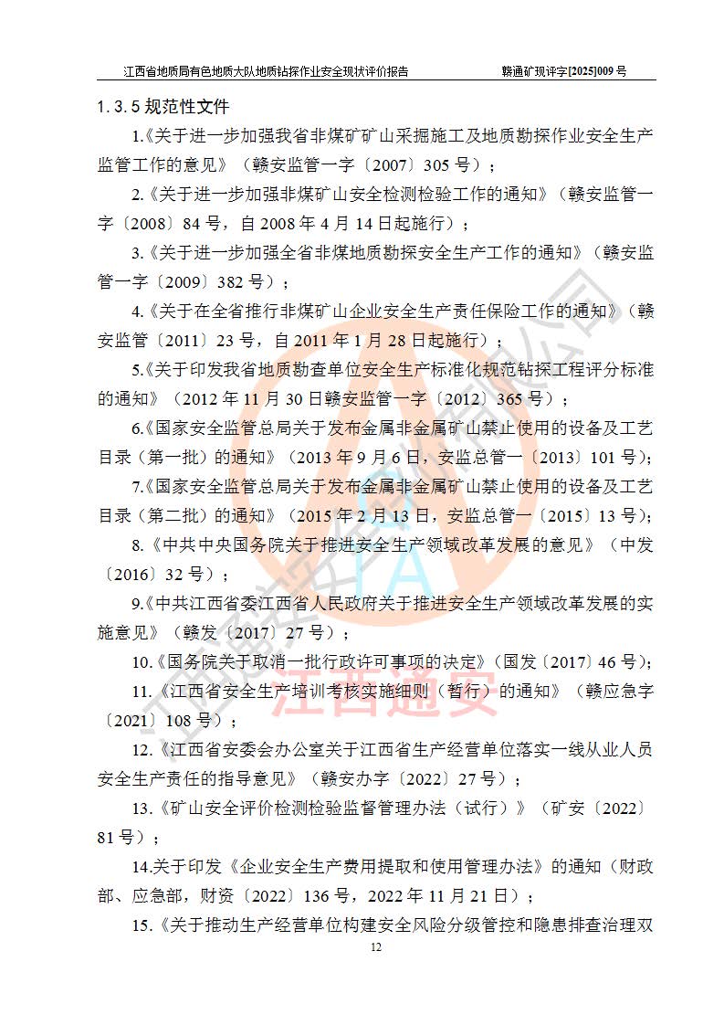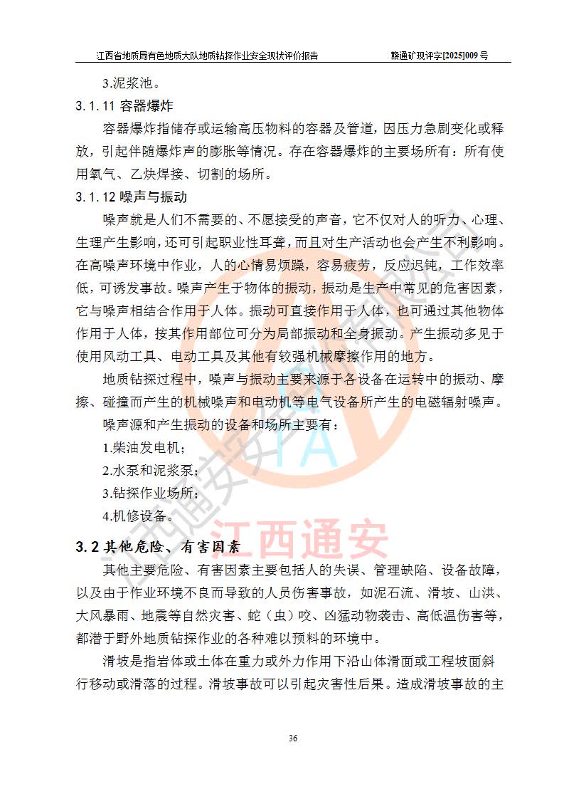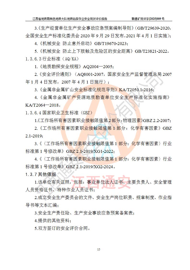 報告名稱 | 江西省地質(zhì)局有色地質(zhì)大隊地質(zhì)鉆探作業(yè)安全現(xiàn)狀評價報告 | |||||