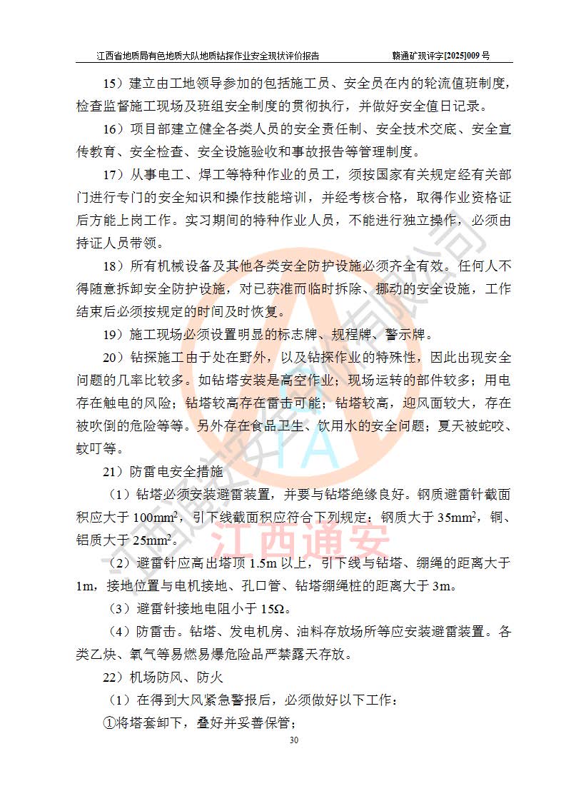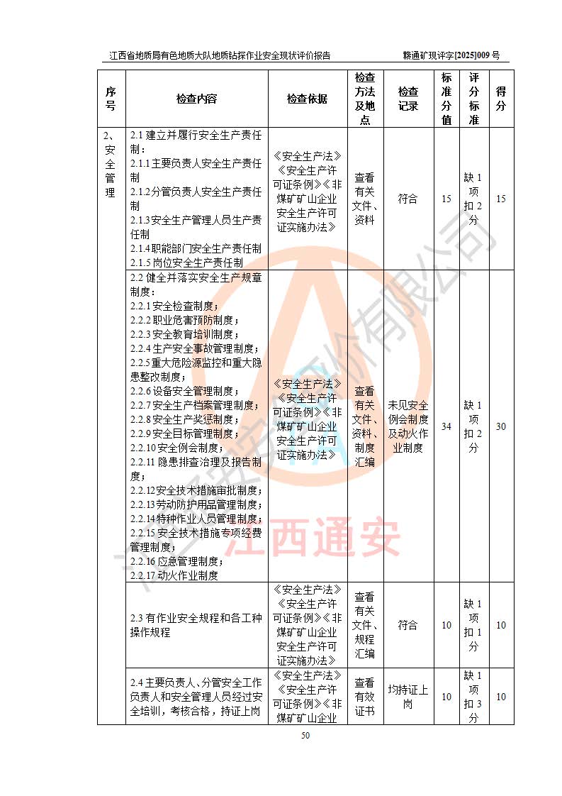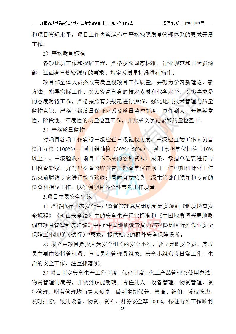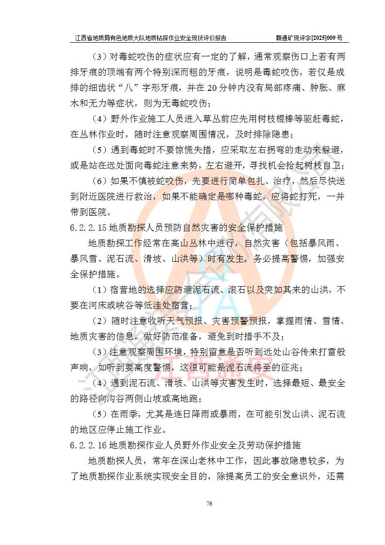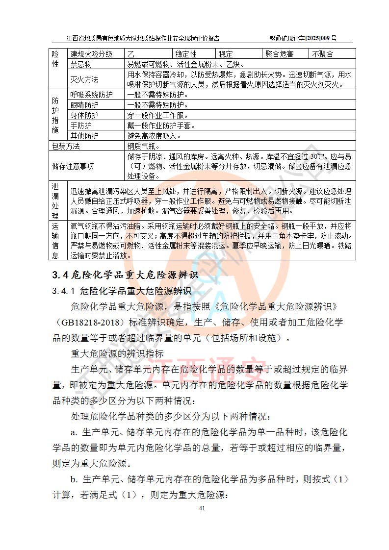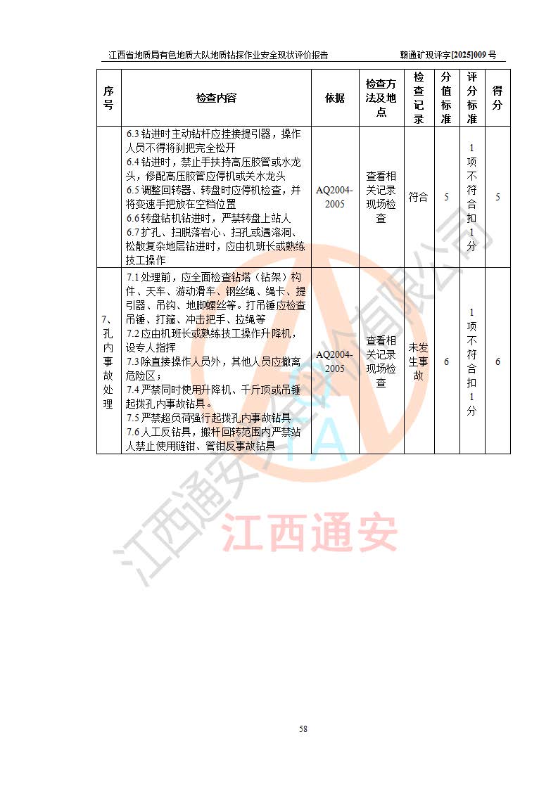 報告名稱 | 江西省地質(zhì)局有色地質(zhì)大隊地質(zhì)鉆探作業(yè)安全現(xiàn)狀評價報告 | |||||
