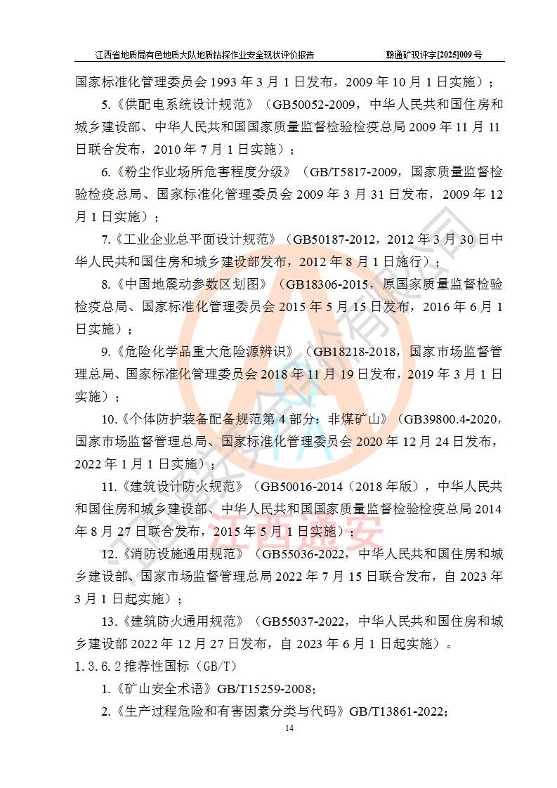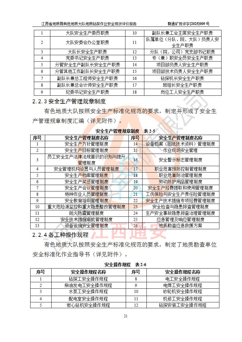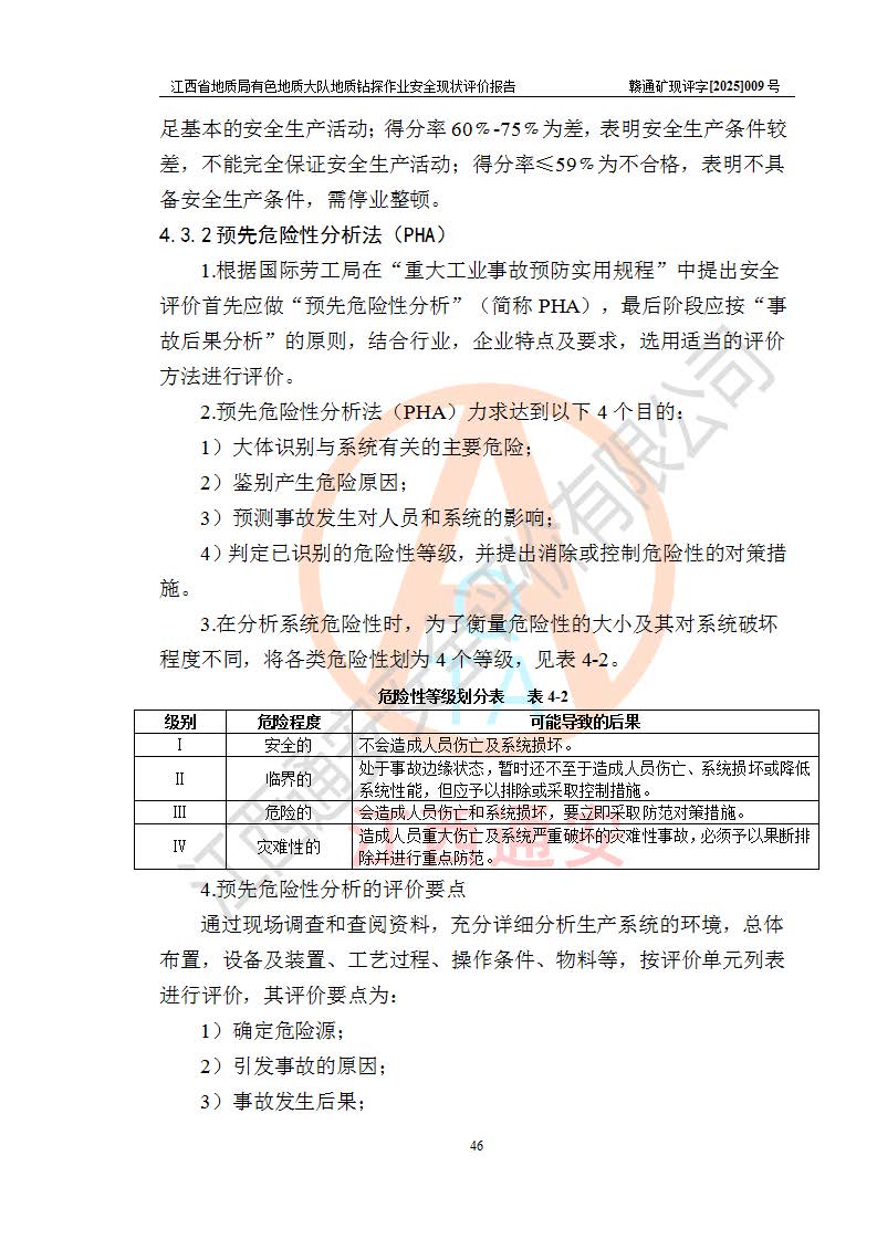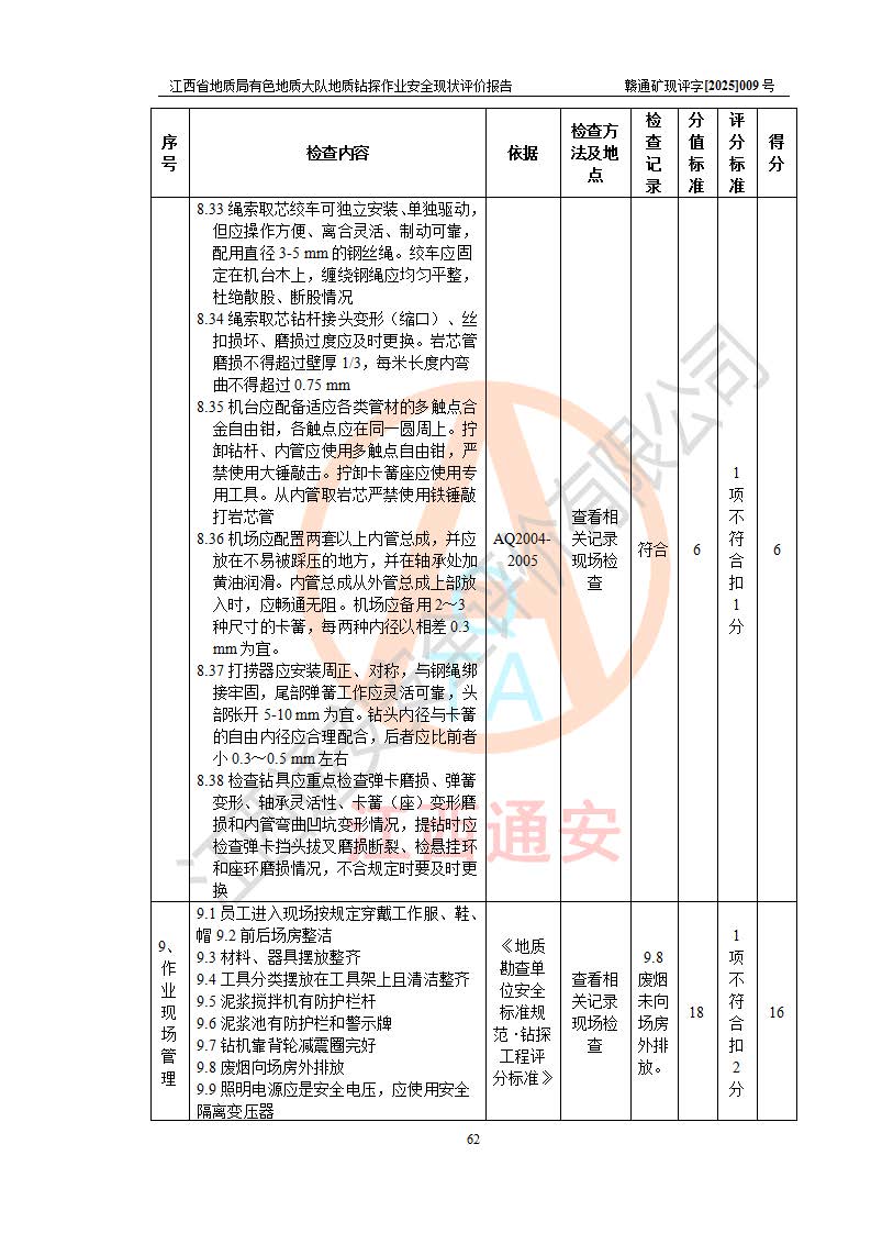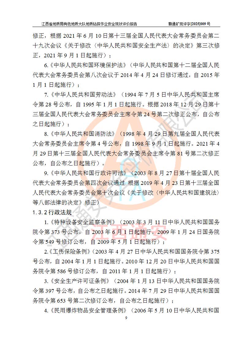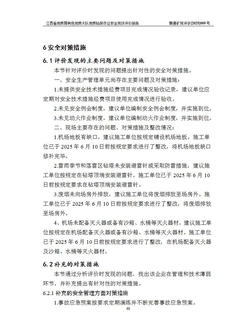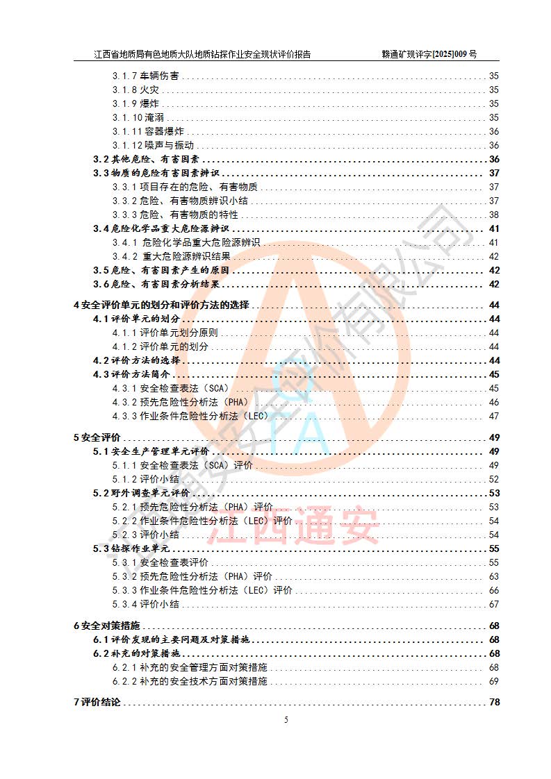 報告名稱 | 江西省地質(zhì)局有色地質(zhì)大隊地質(zhì)鉆探作業(yè)安全現(xiàn)狀評價報告 | |||||