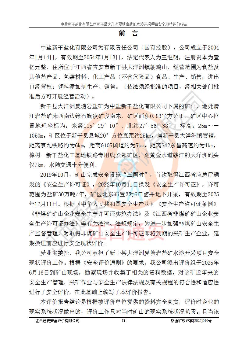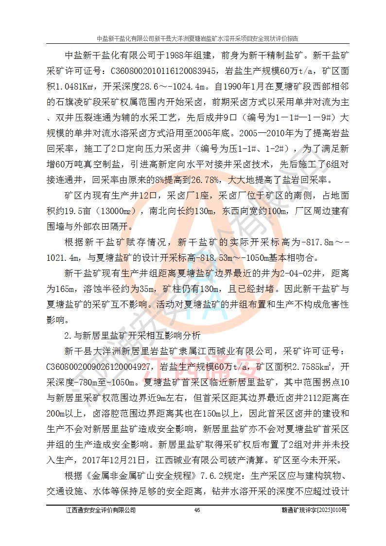 項目名稱 | 中鹽新干鹽化有限公司新干縣大洋洲夏塘巖鹽礦水溶開采項目 | ||||