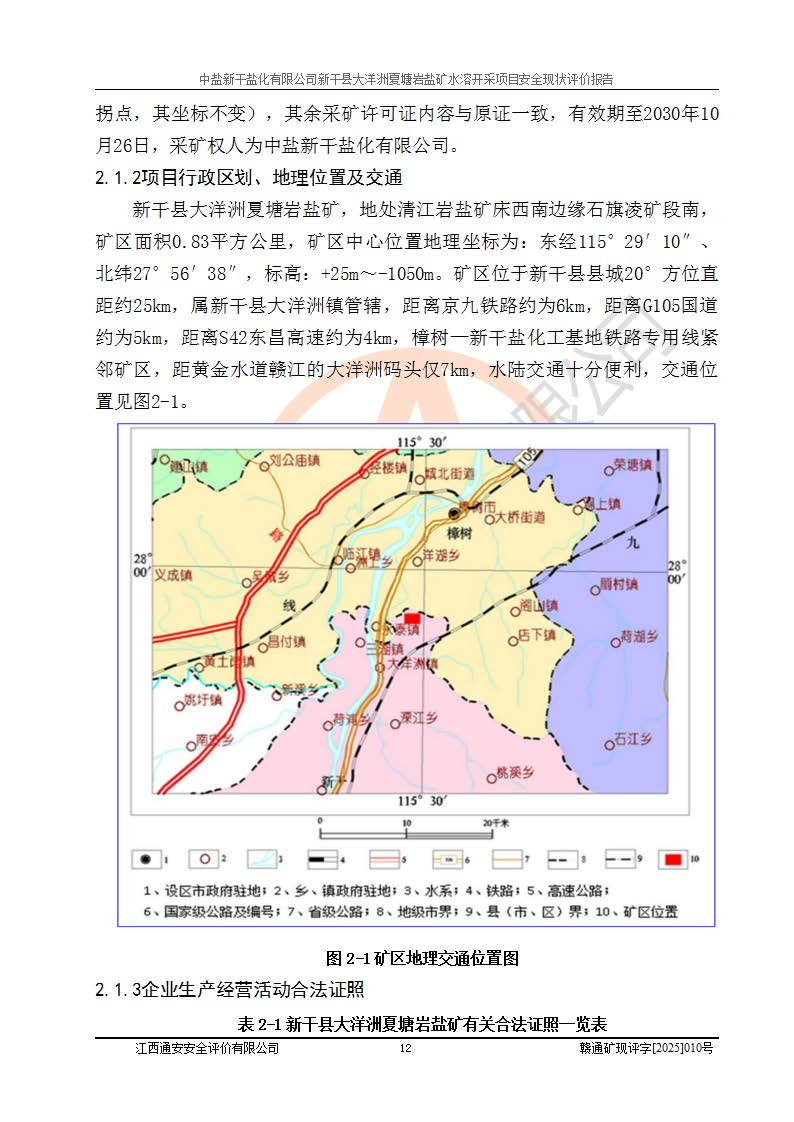 項目簡介 | 中鹽新干鹽化有限公司為有限責(zé)任公司(國有控股),公司成立于2004年1月14日,**期至2054年1月13日,法定**人為王繼明,注冊資本為壹億元整,住所位于江西省吉安市新干縣大洋洲鎮(zhèn)朝雞山,經(jīng)營范圍為食鹽及其他鹽產(chǎn)品、包裝材料、化工產(chǎn)品(不含危險品)食品、生產(chǎn)、銷售;進出口經(jīng)營權(quán);飼料添加劑生產(chǎn)、銷售。(依法須經(jīng)批準的項目,經(jīng)相關(guān)部門批準后方可開展經(jīng)營活動)。 新干縣大洋洲夏塘巖鹽礦為中鹽新干鹽化有限公司下屬的礦山,地處清江巖鹽礦床西南邊緣石旗凌礦段南東,礦區(qū)面積0.83平方**,礦區(qū)中心位置地理坐標為:東經(jīng)115°29′10″、北緯27°56′38″,標高:25m~-1050m。礦區(qū)位于新干縣縣城20°方位直距約25km,屬新干縣大洋洲鎮(zhèn)管轄,距離京九鐵路約為6km,距離G105國道約為5km,距離S42東昌高速約為4km,樟樹—新干鹽化工基地鐵路**線緊鄰礦區(qū),距黃金水道贛江的大洋洲碼頭僅7km,水陸交通十分便利。 | ||||