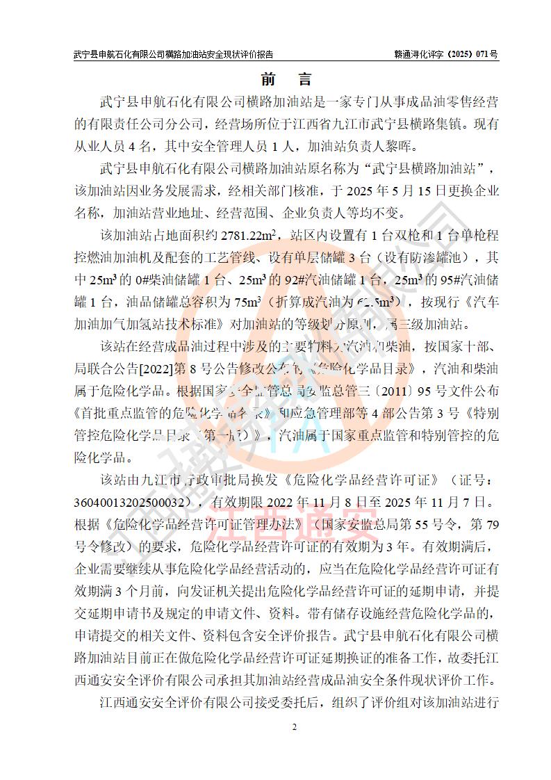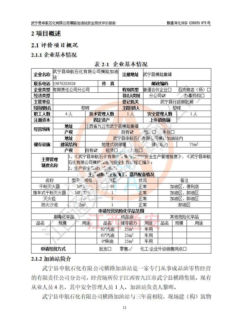 評(píng)價(jià)報(bào)告名稱(chēng) | 武寧縣申航石化有限公司橫路加油站安全現(xiàn)狀評(píng)價(jià)報(bào)告 | |||