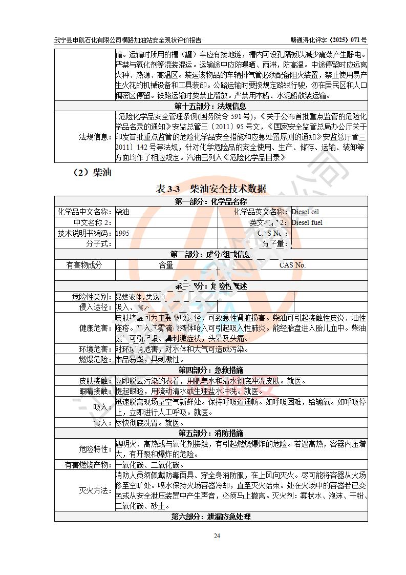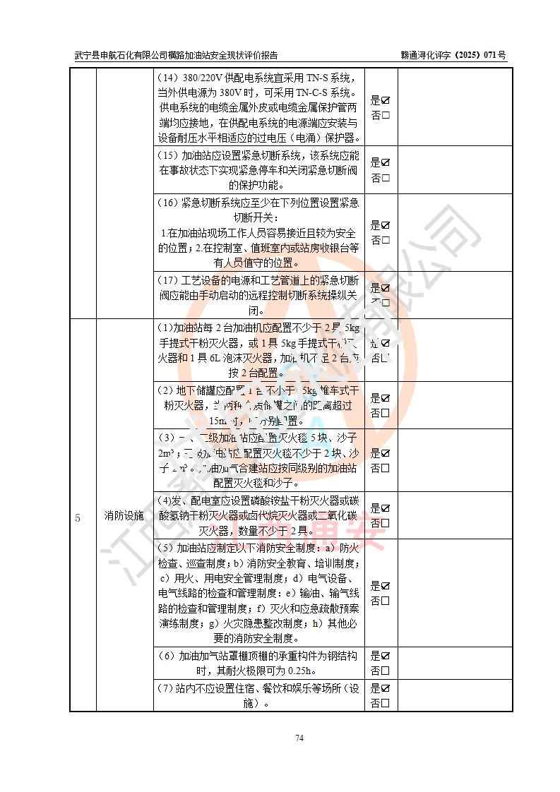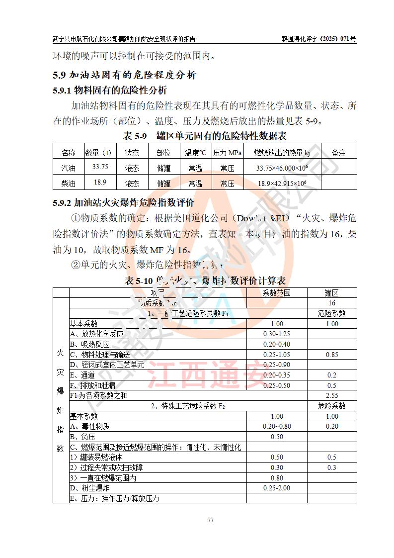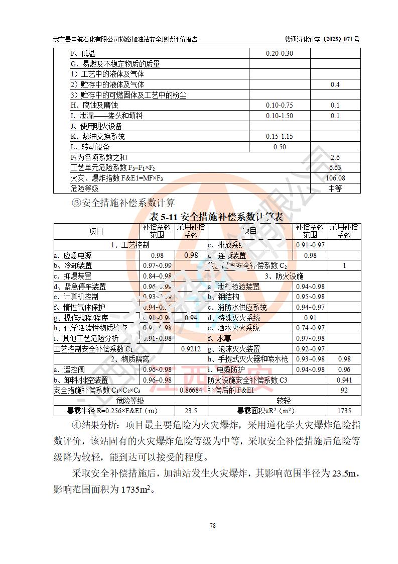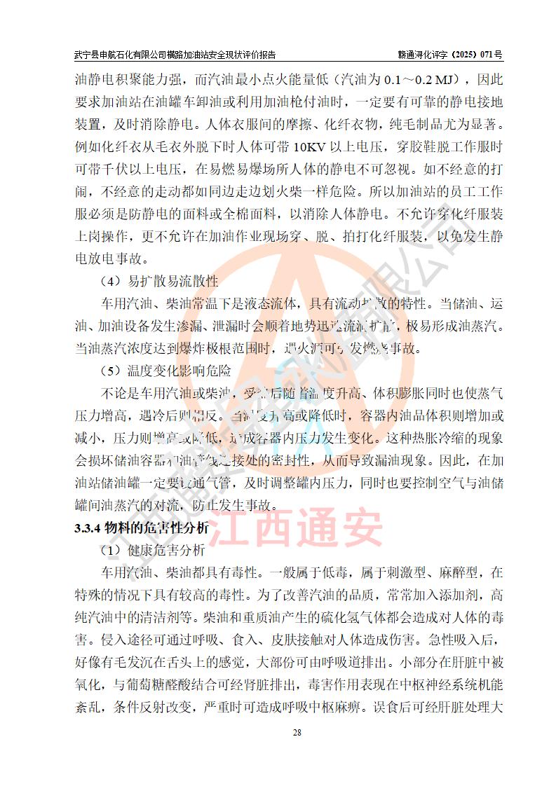 評(píng)價(jià)結(jié)論 | 武寧縣申航石化有限公司橫路加油站涉及的安全條件、安全經(jīng)營(yíng)條件、安全生產(chǎn)管理符合《危險(xiǎn)化學(xué)品經(jīng)營(yíng)許可證管理辦法》、《汽車(chē)加油加氣加氫站技術(shù)標(biāo)準(zhǔn)》等**有關(guān)法規(guī)、標(biāo)準(zhǔn)、規(guī)范要求,能滿(mǎn)足危險(xiǎn)化學(xué)品經(jīng)營(yíng)安全條件。 | |||