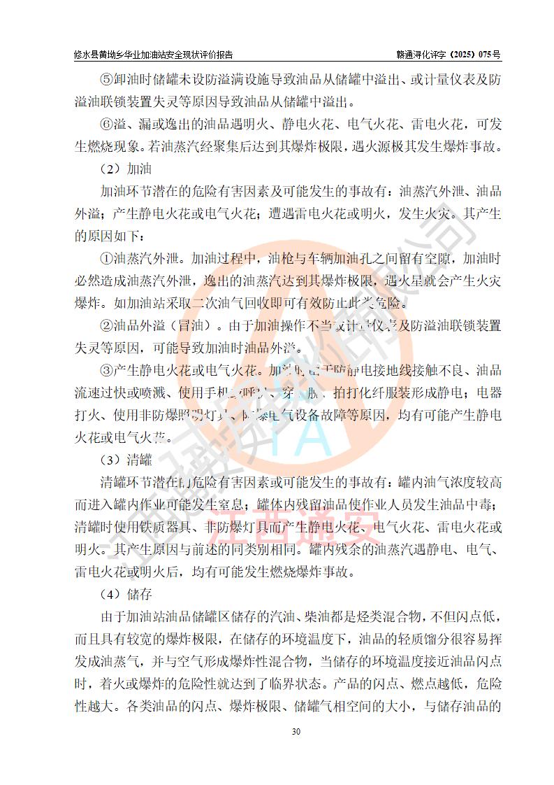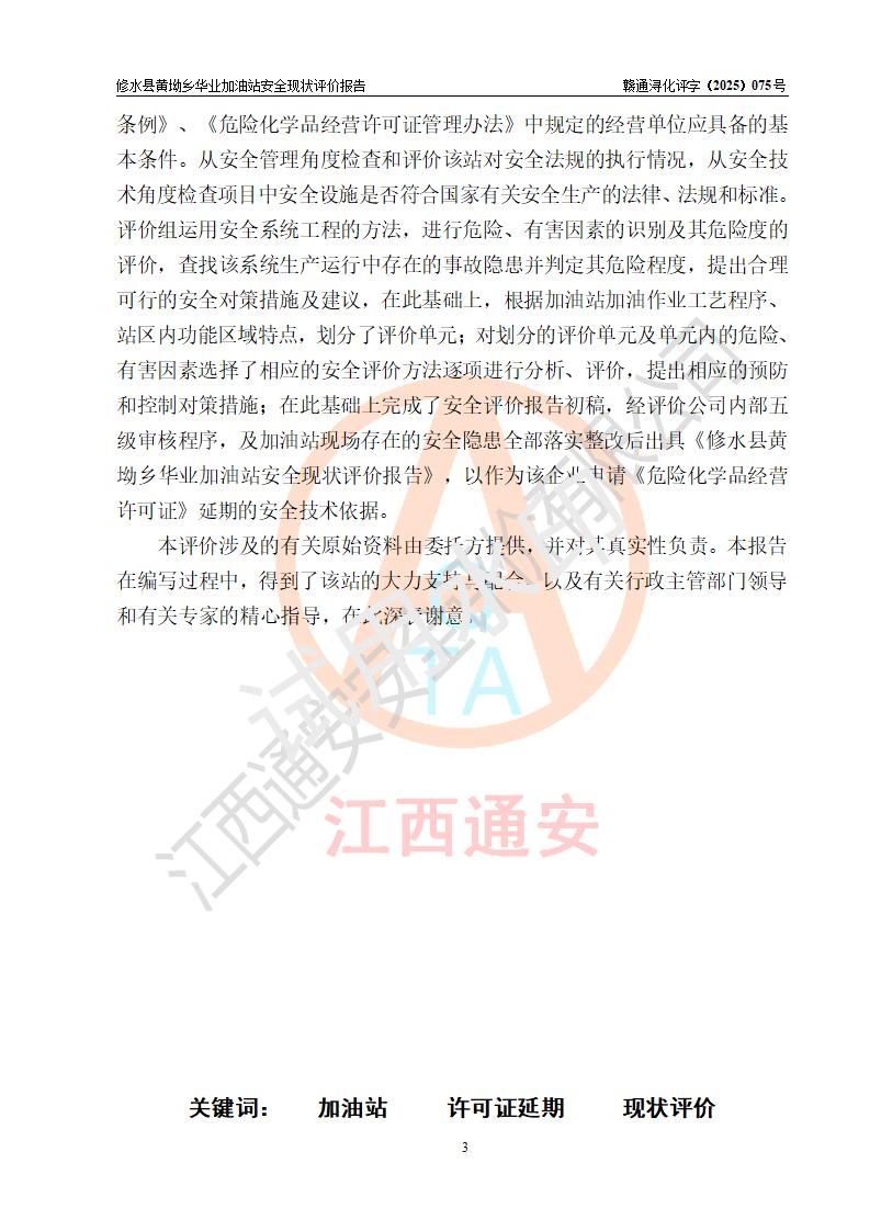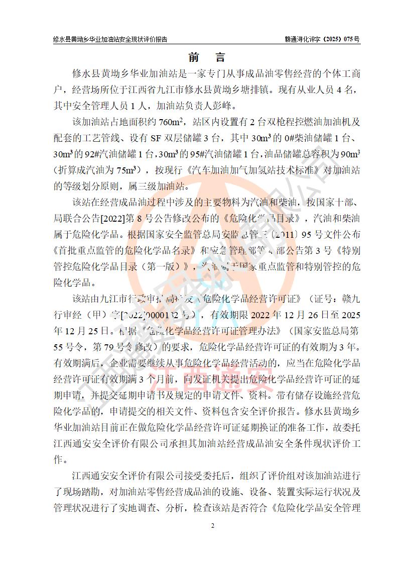 評價(jià)報(bào)告名稱 | 修水縣黃坳鄉(xiāng)華業(yè)加油站安全現(xiàn)狀評價(jià)報(bào)告 | |||