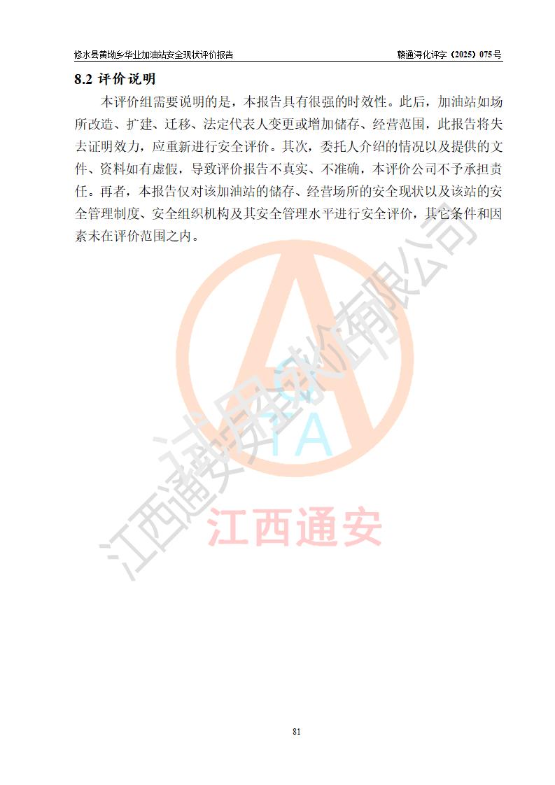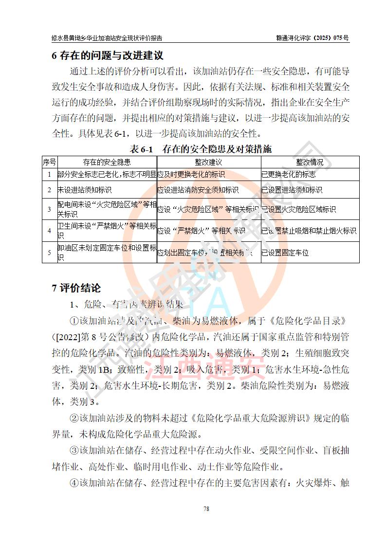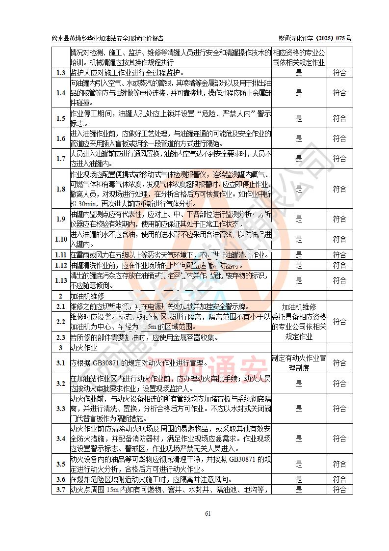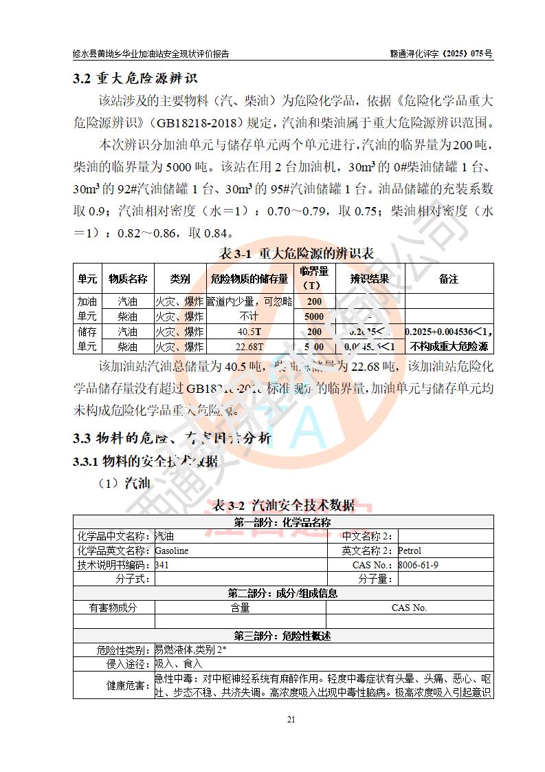 評價(jià)報(bào)告名稱 | 修水縣黃坳鄉(xiāng)華業(yè)加油站安全現(xiàn)狀評價(jià)報(bào)告 | |||