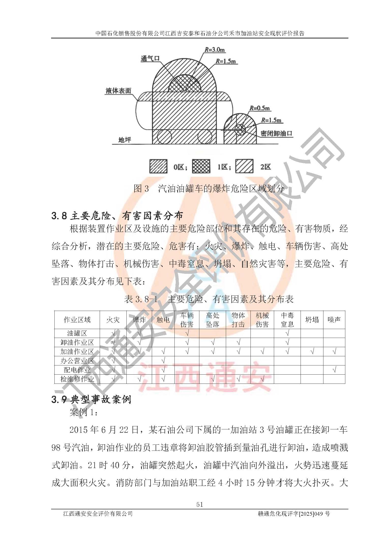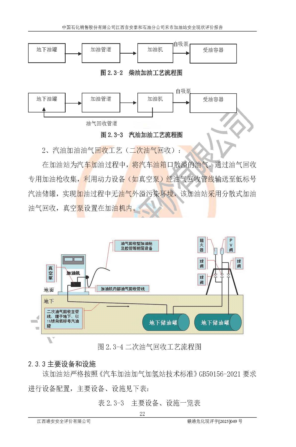 項(xiàng)目簡(jiǎn)介 | 中國(guó)石化銷售股份有限公司江西吉安泰和石油分公司禾市加油站是一家從事成品油零售經(jīng)營(yíng)的企業(yè)。該加油站于2004年03月19日經(jīng)吉安市市場(chǎng)監(jiān)督管理局核準(zhǔn)注冊(cè)成立,營(yíng)業(yè)場(chǎng)所位于江西省吉安市泰和縣禾市鎮(zhèn)。該加油站屬于外商投資企業(yè)分公司,負(fù)責(zé)人為周利平,營(yíng)業(yè)執(zhí)照統(tǒng)一社會(huì)信用代碼為:91360826767019049F。營(yíng)業(yè)執(zhí)照核準(zhǔn)經(jīng)營(yíng)范圍許可項(xiàng)目:危險(xiǎn)化學(xué)品經(jīng)營(yíng),成品油倉(cāng)儲(chǔ),成品油零售,成品油零售(不含危險(xiǎn)化學(xué)品),**類增值電信業(yè)務(wù),第二類增值電信業(yè)務(wù),第三類醫(yī)療器械經(jīng)營(yíng),出版物零售,**代理業(yè)務(wù),***零售,發(fā)電業(yè)務(wù)、輸電業(yè)務(wù)、供(配)電業(yè)務(wù),互聯(lián)網(wǎng)直播技術(shù)服務(wù),酒類經(jīng)營(yíng),食品銷售,小食雜,網(wǎng)絡(luò)文化經(jīng)營(yíng),藥品零售,燃?xì)饨?jīng)營(yíng),煙草制品零售,出版物批發(fā),旅游業(yè)務(wù),住宿服務(wù),餐飲服務(wù),港口經(jīng)營(yíng),保稅倉(cāng)庫(kù)經(jīng)營(yíng),保稅物流中心經(jīng)營(yíng)(依法須經(jīng)批準(zhǔn)的項(xiàng)目,經(jīng)相關(guān)部門批準(zhǔn)后在許可**期內(nèi)方可開展經(jīng)營(yíng)活動(dòng),具體經(jīng)營(yíng)項(xiàng)目和許可期限以相關(guān)部門批準(zhǔn)文件或許可證件為準(zhǔn))一般項(xiàng)目:成品油批發(fā)(不含危險(xiǎn)化學(xué)品),辦公設(shè)備銷售,電池銷售,成品油倉(cāng)儲(chǔ)(不含危險(xiǎn)化學(xué)品),輪胎銷售,**類醫(yī)療器械銷售,第二類醫(yī)療器械銷售,低溫倉(cāng)儲(chǔ)(不含危險(xiǎn)化學(xué)品等需許可審批的項(xiàng)目),電動(dòng)自行車銷售,寵物食品及用品批發(fā),電動(dòng)汽車充電基礎(chǔ)設(shè)施運(yùn)營(yíng),非電力家用器具銷售,化妝品零售,化妝品批發(fā),個(gè)人衛(wèi)生用品銷售,會(huì)議及展覽服務(wù),金銀制品銷售,集中式**充電站,普通貨物倉(cāng)儲(chǔ)服務(wù)(不含危險(xiǎn)化學(xué)品等需許可審批的項(xiàng)目),人力資源服務(wù)(不含職業(yè)中介活動(dòng)、勞務(wù)派遣服務(wù)),食品互聯(lián)網(wǎng)銷售(僅銷售預(yù)包裝食品),食用農(nóng)產(chǎn)品零售,外賣遞送服務(wù),消毒劑銷售(不含危險(xiǎn)化學(xué)品),新能源汽車換電設(shè)施銷售,站用加氫及儲(chǔ)氫設(shè)施銷售,鐘表銷售,**化學(xué)產(chǎn)品銷售(不含危險(xiǎn)化學(xué)品),保健食品(預(yù)包裝)銷售,針紡織品銷售,服裝服飾零售,日用品銷售,五金產(chǎn)品零售,家用電器銷售,單用途商業(yè)預(yù)付卡代理銷售,電子產(chǎn)品銷售,潤(rùn)滑油銷售,石油制品銷售(不含危險(xiǎn)化學(xué)品),戶外用品銷售,汽車銷售,摩托車及零配件批發(fā),摩托車及零配件零售,農(nóng)副產(chǎn)品銷售,化肥銷售,農(nóng)用薄膜銷售,安防設(shè)備銷售,禮品花卉銷售,計(jì)算機(jī)軟硬件及輔助設(shè)備零售,橡膠制品銷售,機(jī)械設(shè)備銷售,珠寶首飾批發(fā),珠寶首飾零售,玩具銷售,樂器批發(fā),樂器零售,家具銷售,建筑材料銷售,機(jī)動(dòng)車充電銷售,技術(shù)服務(wù)、技術(shù)開發(fā)、技術(shù)咨詢、技術(shù)交流、技術(shù)**、技術(shù)推廣,機(jī)動(dòng)車修理和維護(hù),物業(yè)管理,停車場(chǎng)服務(wù),居民日常生活服務(wù),票務(wù)代理服務(wù),廣告制作,廣告發(fā)布,廣告設(shè)計(jì)、代理,洗車服務(wù),信息咨詢服務(wù)(不含許可類信息咨詢服務(wù)),軟件開發(fā),貨物進(jìn)出口,食品進(jìn)出口,技術(shù)進(jìn)出口,進(jìn)出口代理,汽車裝飾用品銷售,租賃服務(wù)(不含許可類租賃服務(wù)),小微型客車租賃經(jīng)營(yíng)服務(wù)(除依法須經(jīng)批準(zhǔn)的項(xiàng)目外,憑營(yíng)業(yè)執(zhí)照依法自主開展經(jīng)營(yíng)活動(dòng)) 中國(guó)石化銷售股份有限公司江西吉安泰和石油分公司為中國(guó)石化銷售股份有限公司江西吉安石油分公司的子公司。中國(guó)石化銷售股份有限公司江西吉安石油分公司委托泰和縣華宇石油業(yè)服務(wù)有限公司對(duì)中國(guó)石化銷售股份有限公司江西吉安泰和石油分公司禾市加油站進(jìn)行管理,并簽訂了加油站委托管理合同(合同編號(hào):33000216-23-QT0301-0042),詳見附件。 中國(guó)石化銷售股份有限公司江西吉安泰和石油分公司禾市加油站設(shè)有1臺(tái)92#汽油/0#柴油自吸泵型雙槍加油機(jī),1臺(tái)0#柴油/95#汽油自吸泵型雙槍加油機(jī)(其中95#汽油加油槍停用)。該加油站油罐區(qū)設(shè)置有1臺(tái)SF雙層30m3埋地臥式0#柴油罐、1臺(tái)SF雙層30m3埋地臥式92#汽油儲(chǔ)罐,1臺(tái)SF雙層30m3埋地臥式95#汽油儲(chǔ)罐(其中95#汽油儲(chǔ)罐廢棄停用,不計(jì)入儲(chǔ)存能力),因此該加油站總罐容為60m3,折合油罐容積為45m3(柴油罐容積折半計(jì)入油罐總?cè)莘e),屬三級(jí)加油站,汽油卸油、加油設(shè)置了油氣回收系統(tǒng)。 中國(guó)石化銷售股份有限公司江西吉安泰和石油分公司禾市加油站于2022年10月24日經(jīng)吉安市應(yīng)急管理局核準(zhǔn),取得了《危險(xiǎn)化學(xué)品經(jīng)營(yíng)許可證》,證