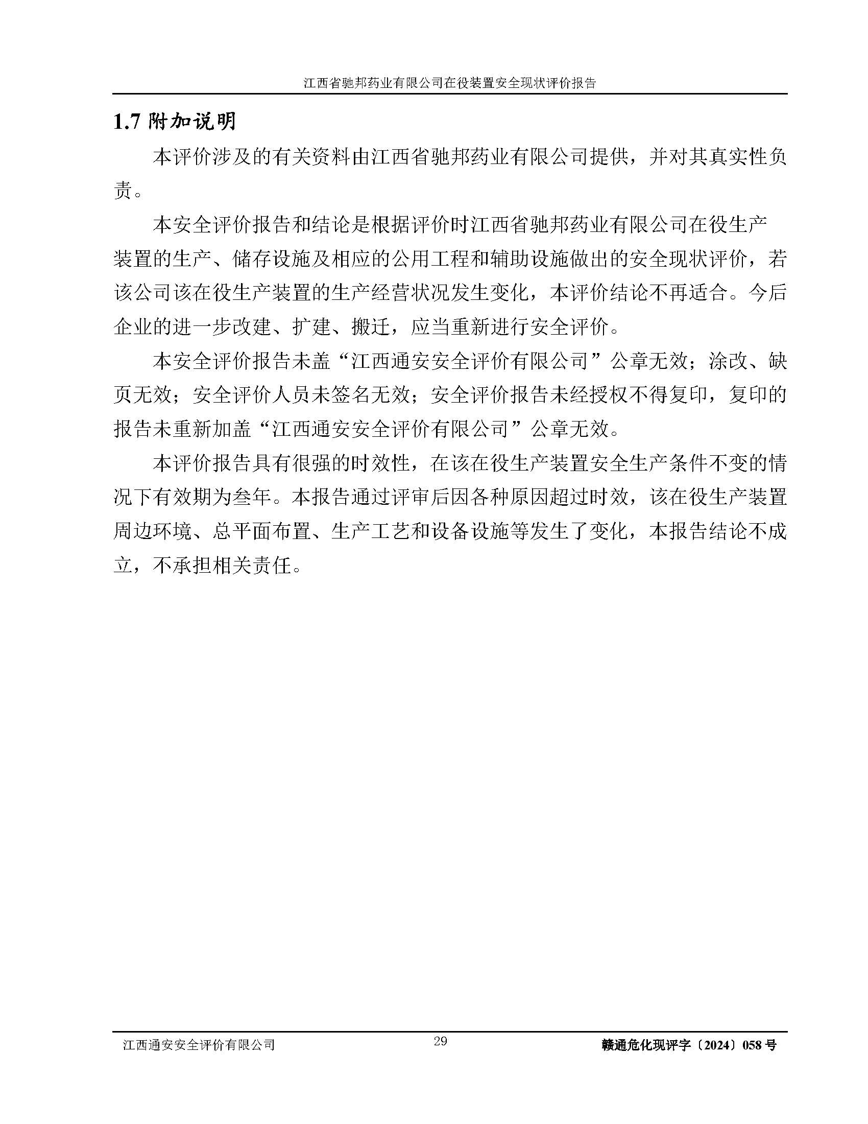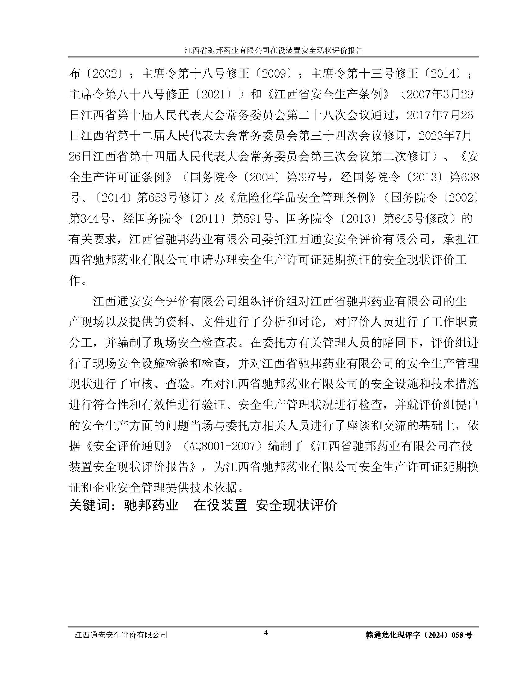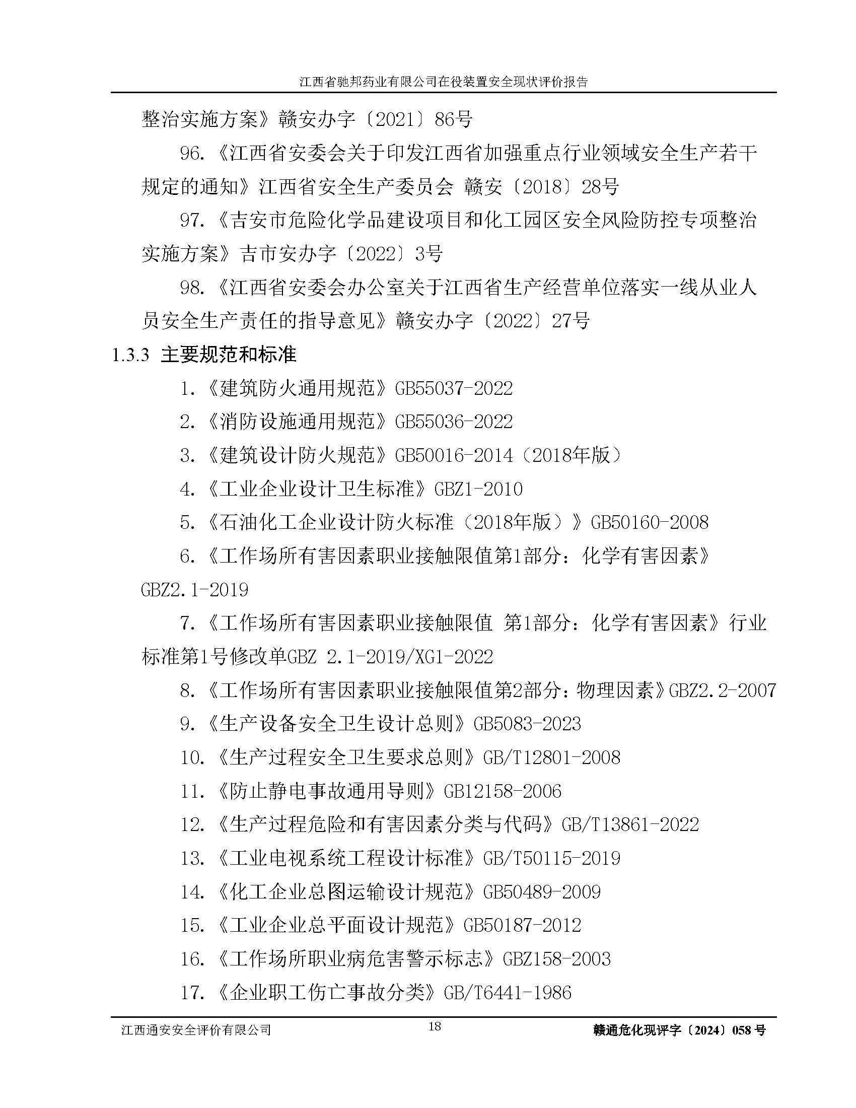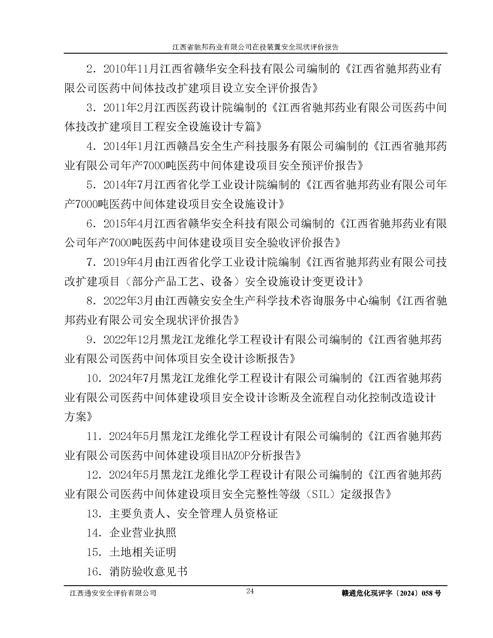 評價(jià)報(bào)告名稱 | 江西省馳邦藥業(yè)有限公司在役裝置安全現(xiàn)狀評價(jià)報(bào)告 | |||