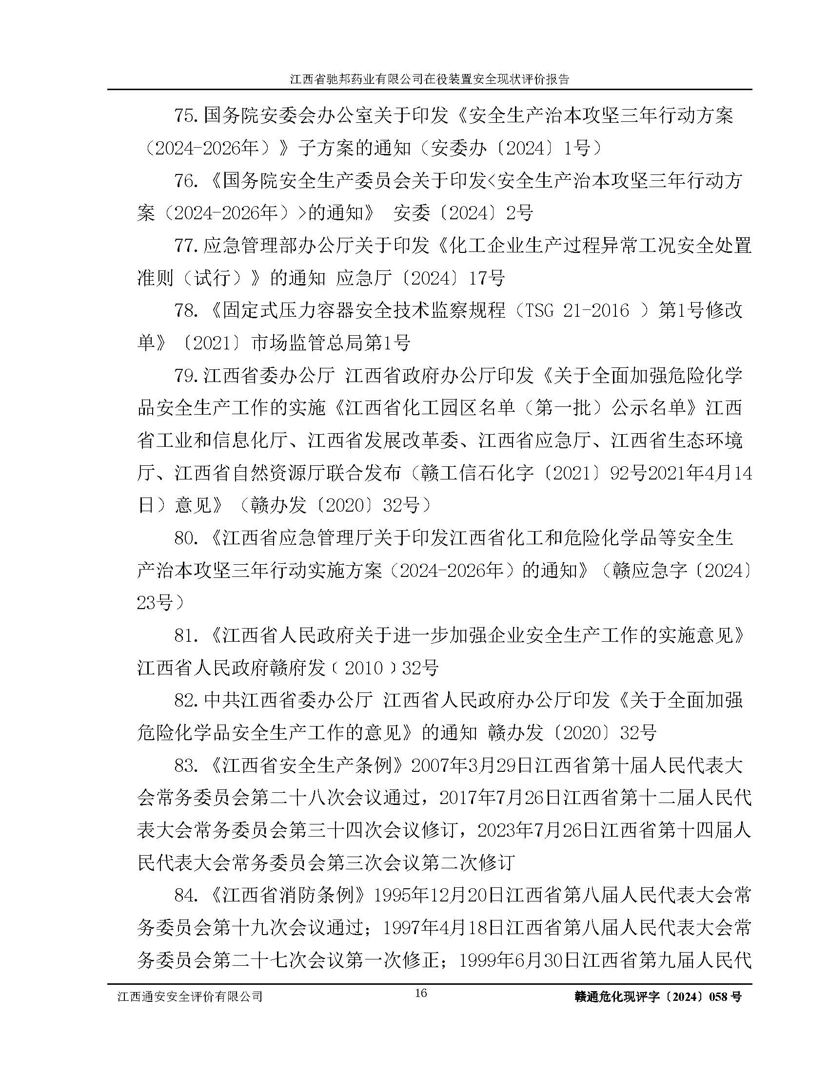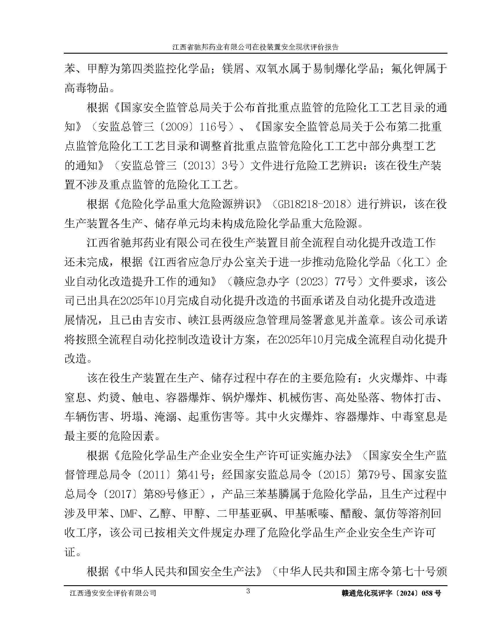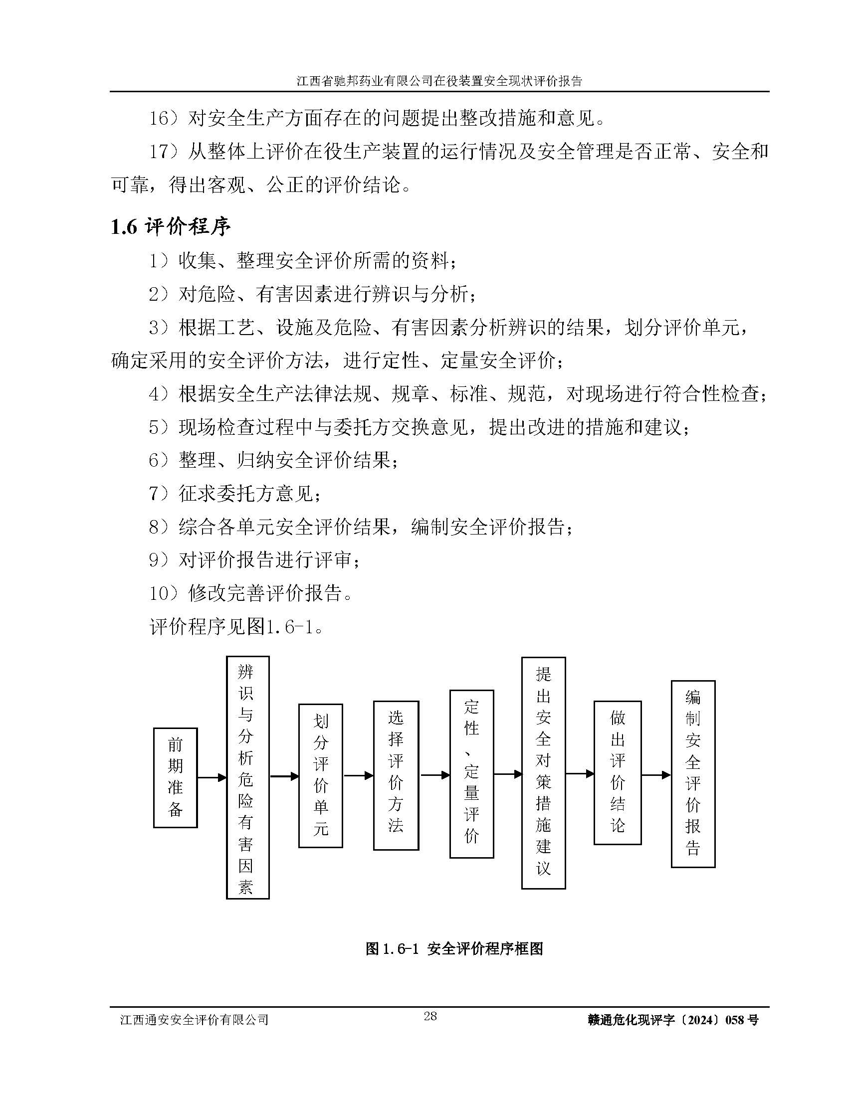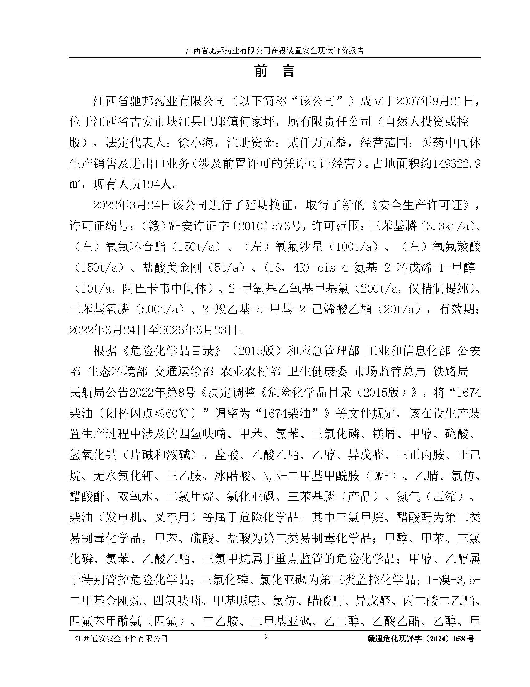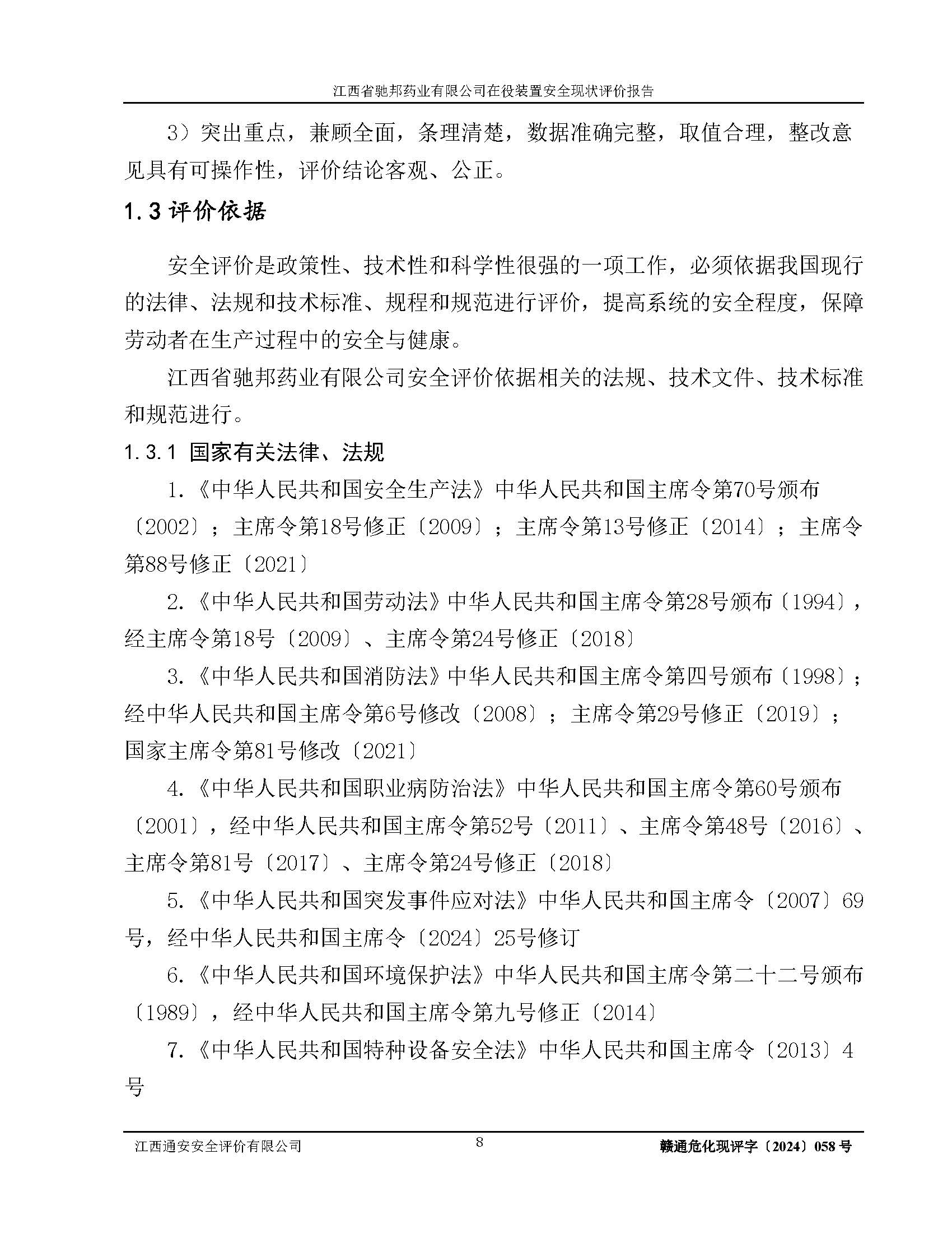 評價(jià)報(bào)告名稱 | 江西省馳邦藥業(yè)有限公司在役裝置安全現(xiàn)狀評價(jià)報(bào)告 | |||