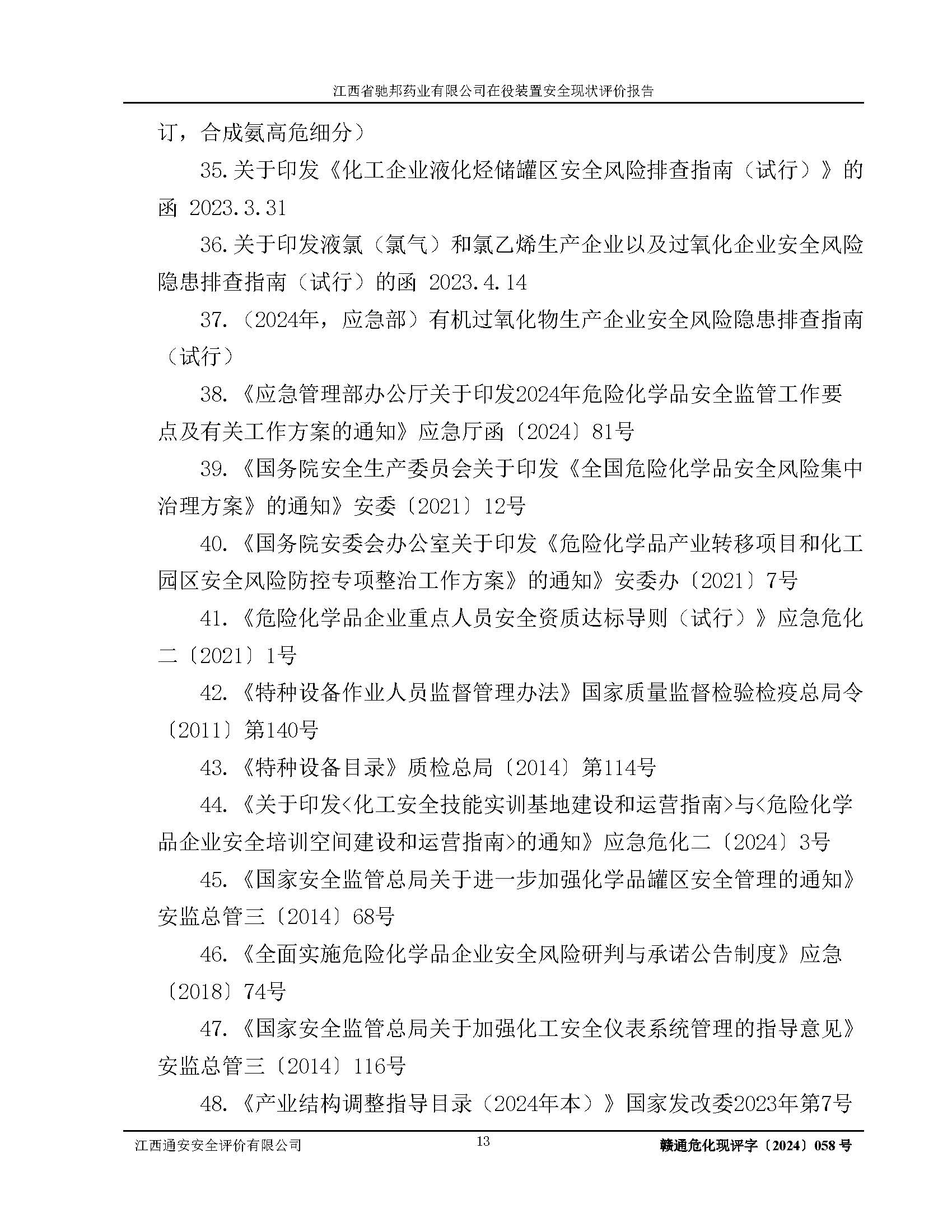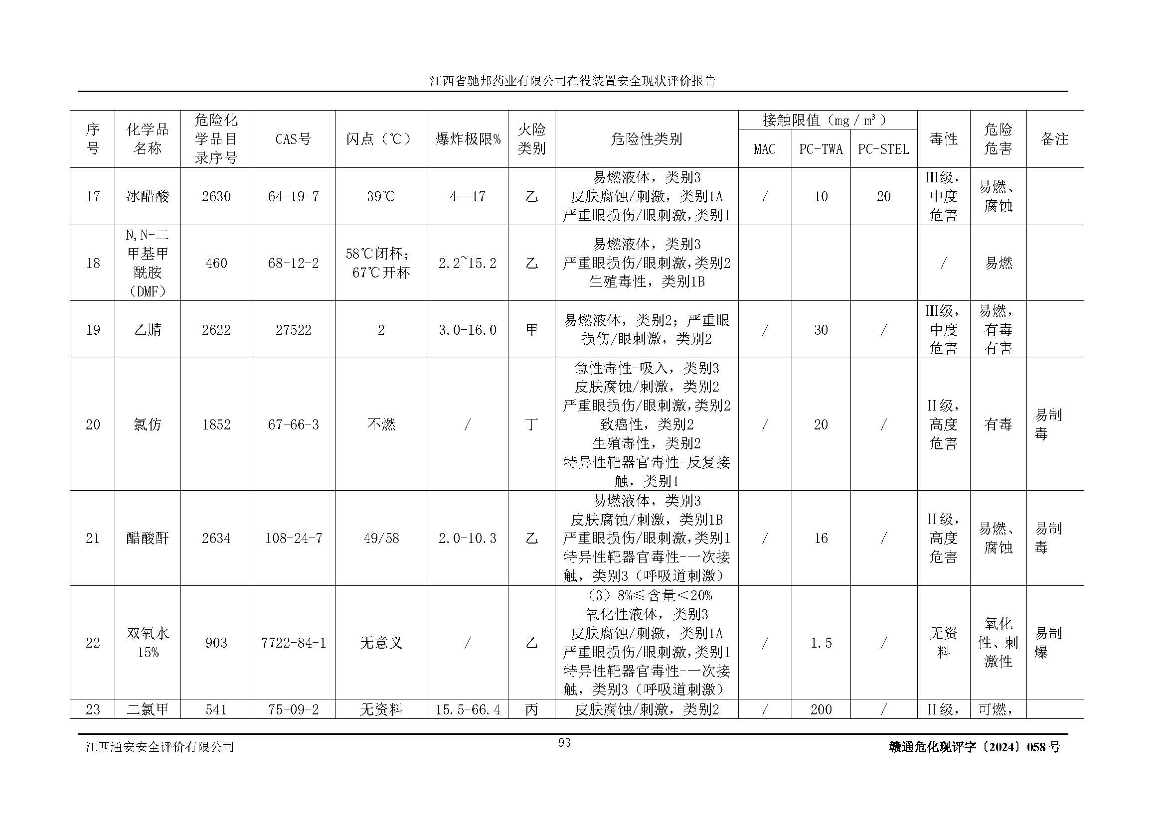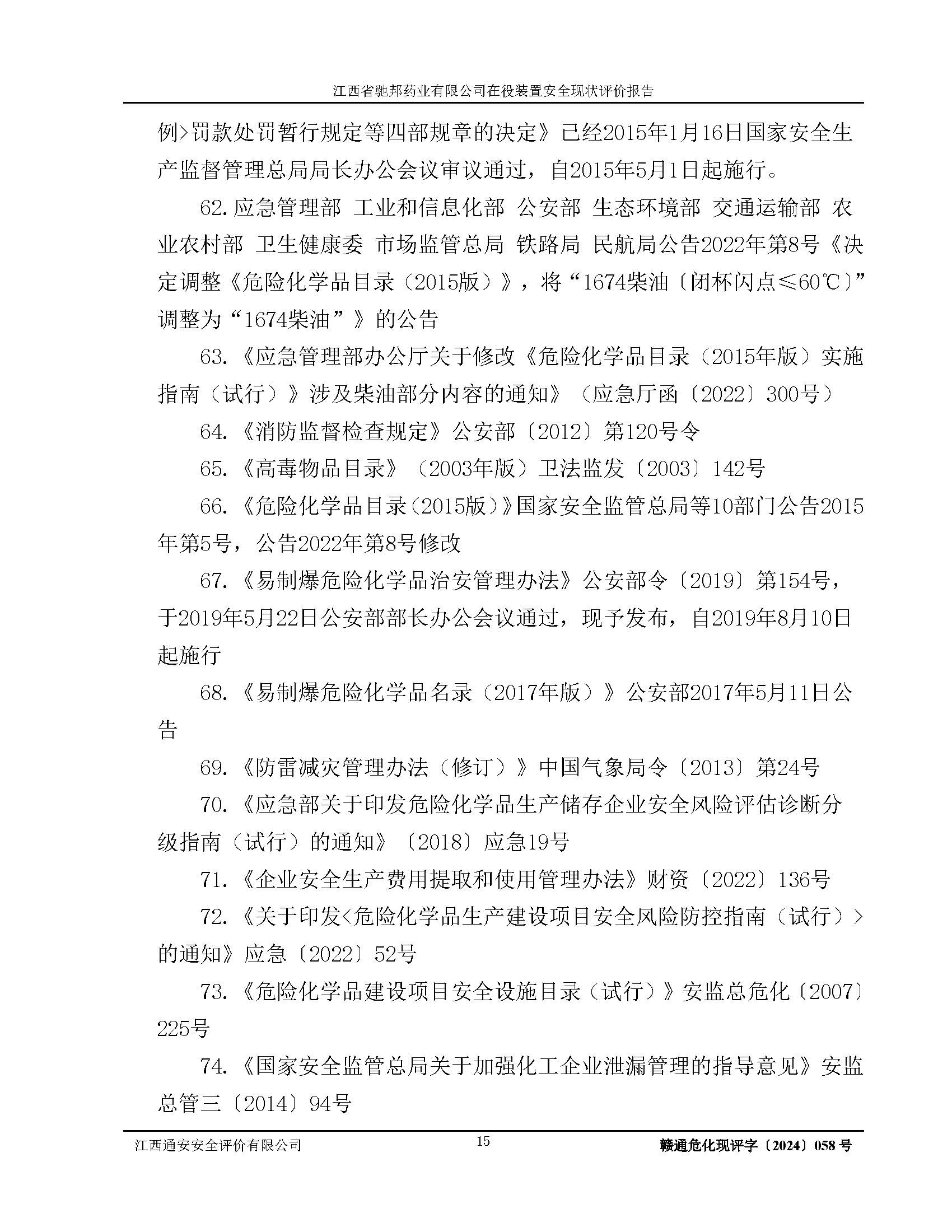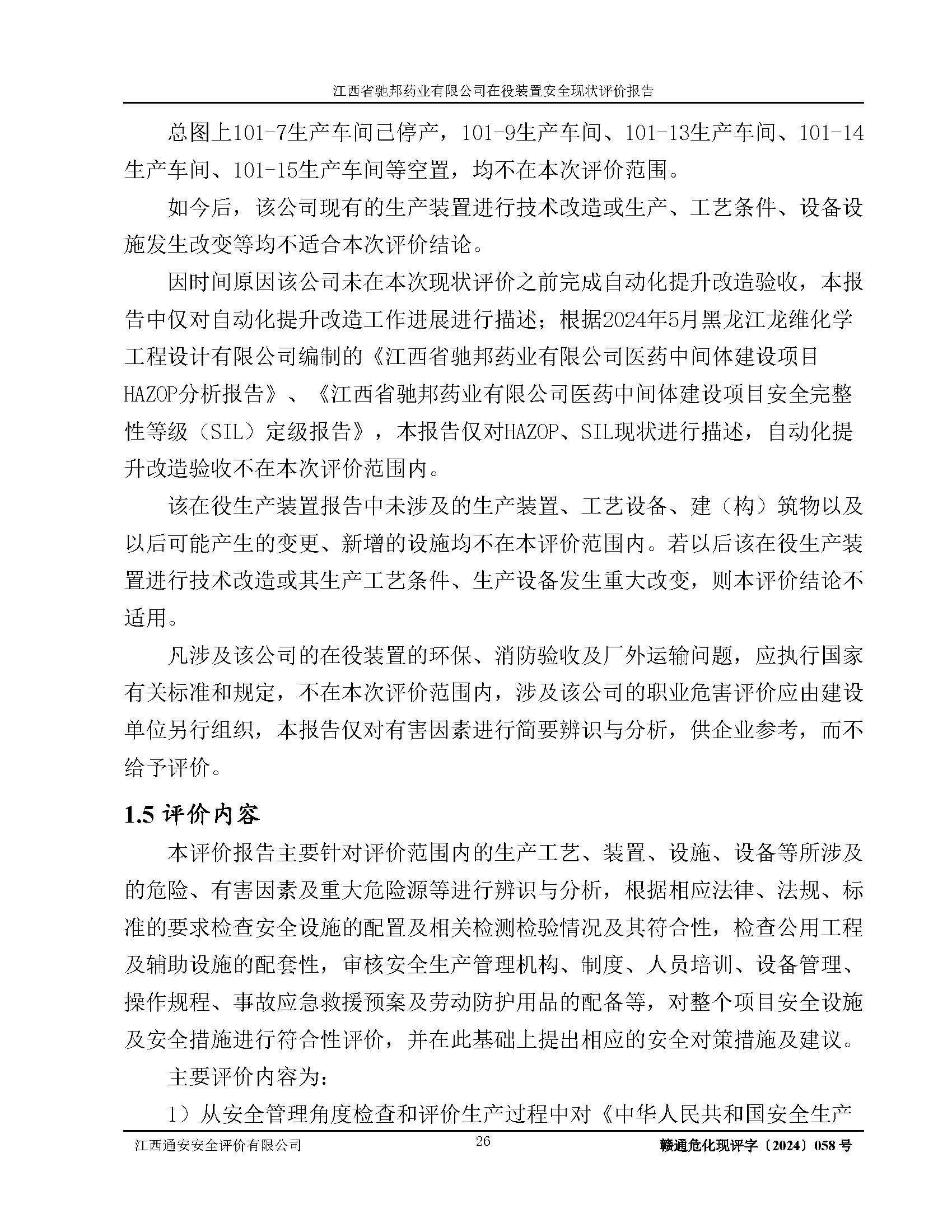 評價(jià)報(bào)告名稱 | 江西省馳邦藥業(yè)有限公司在役裝置安全現(xiàn)狀評價(jià)報(bào)告 | |||