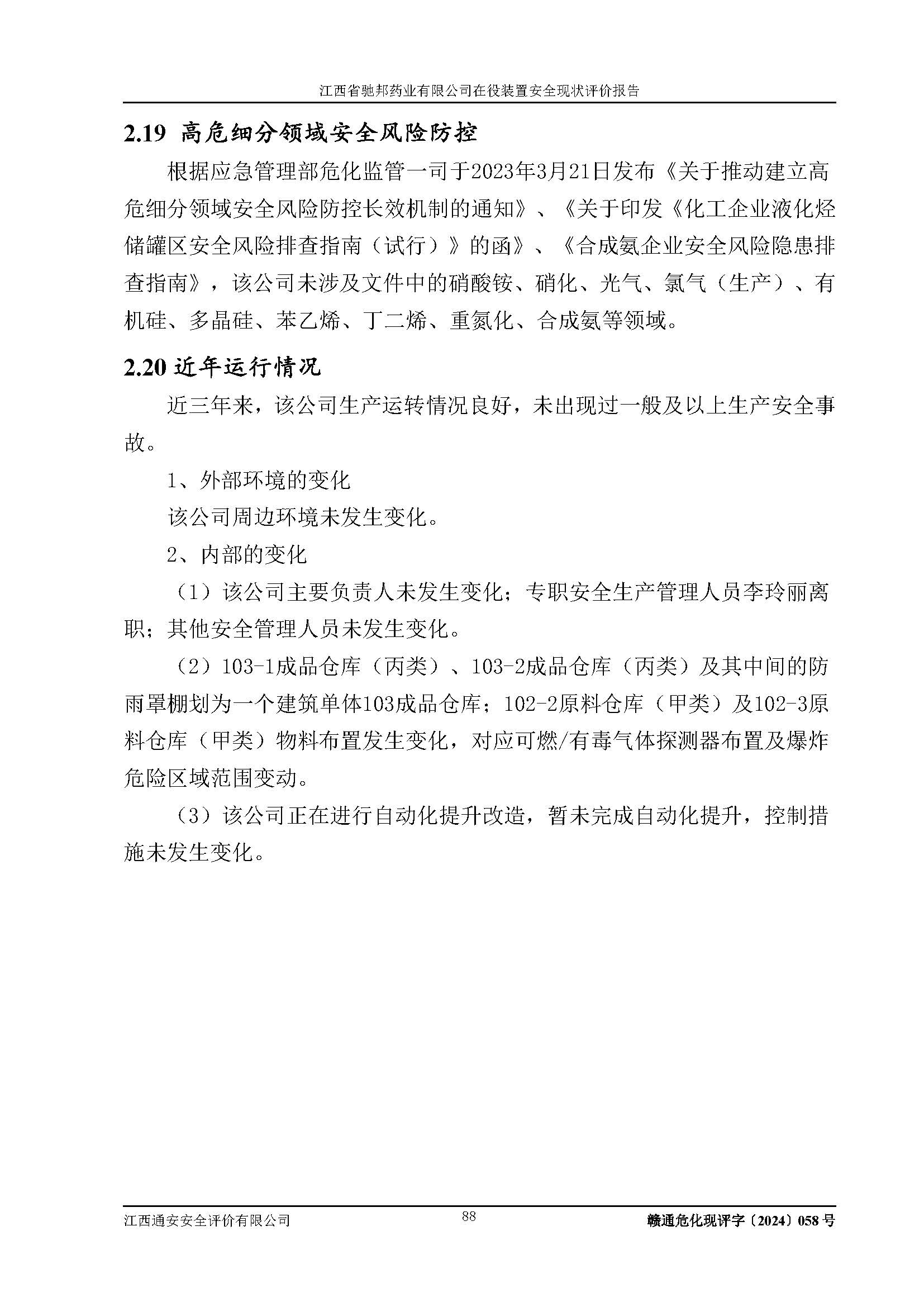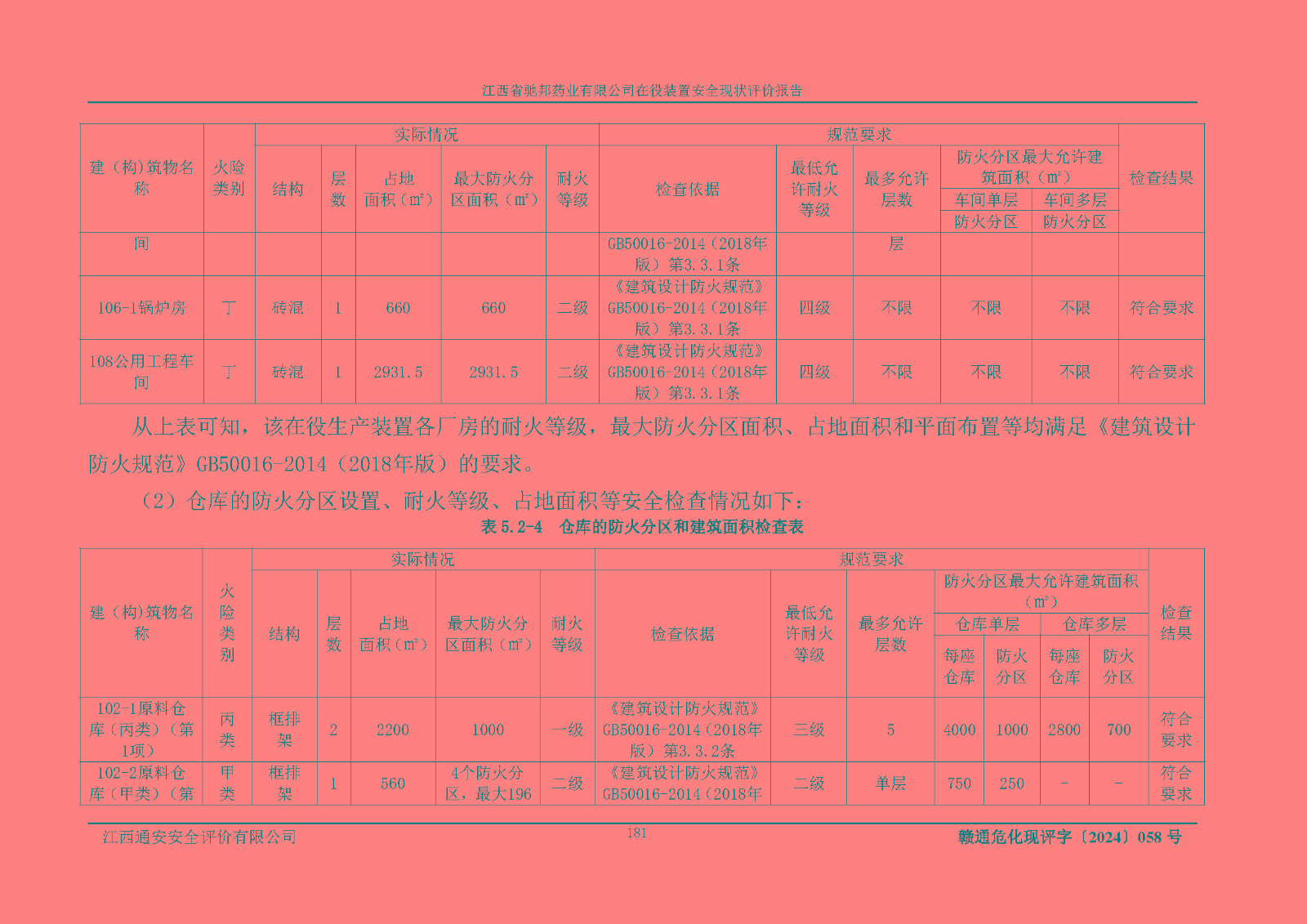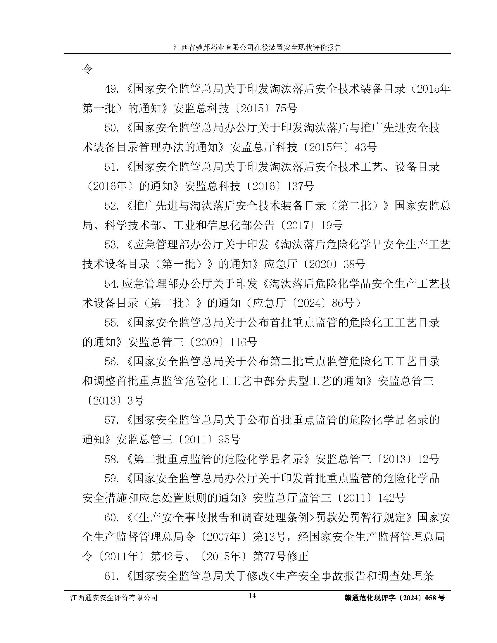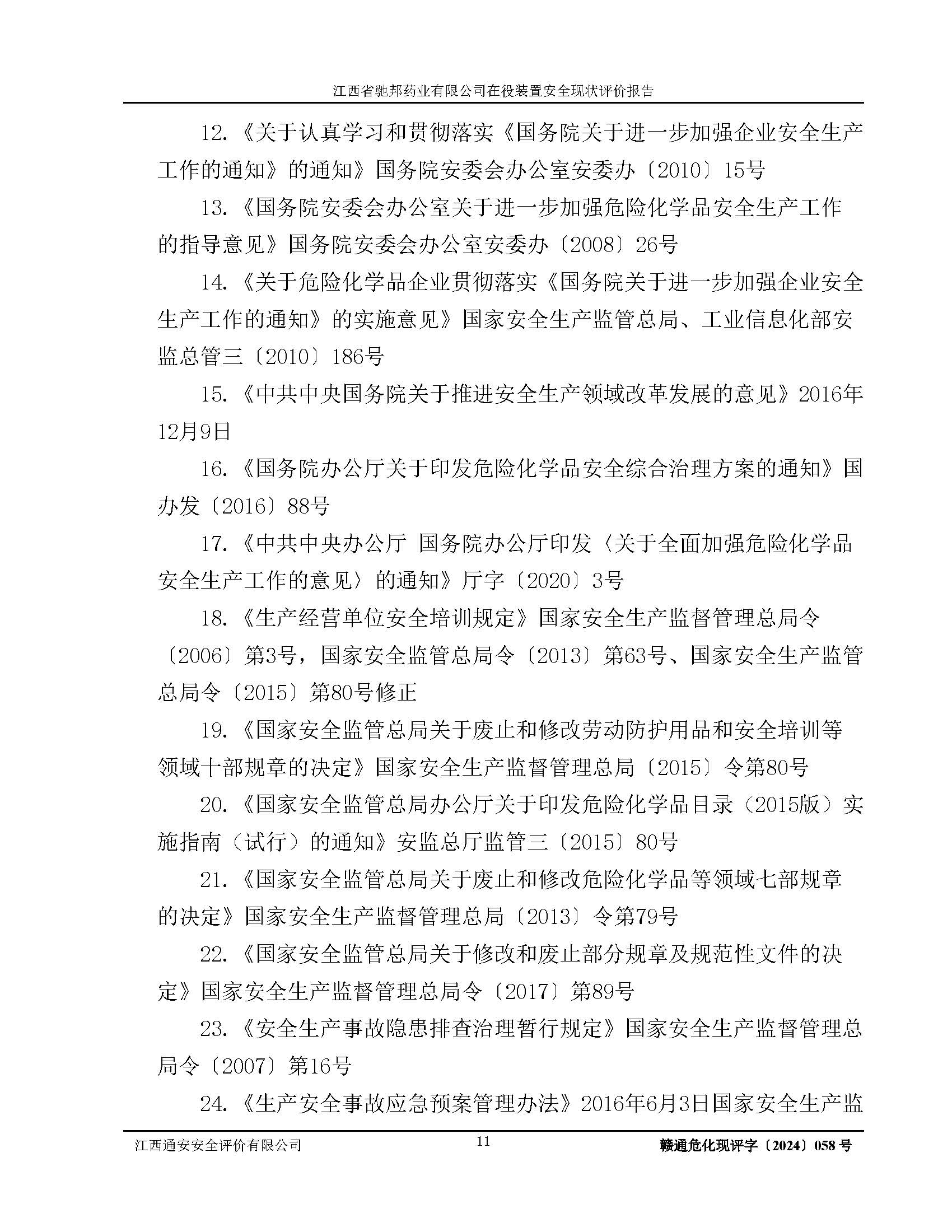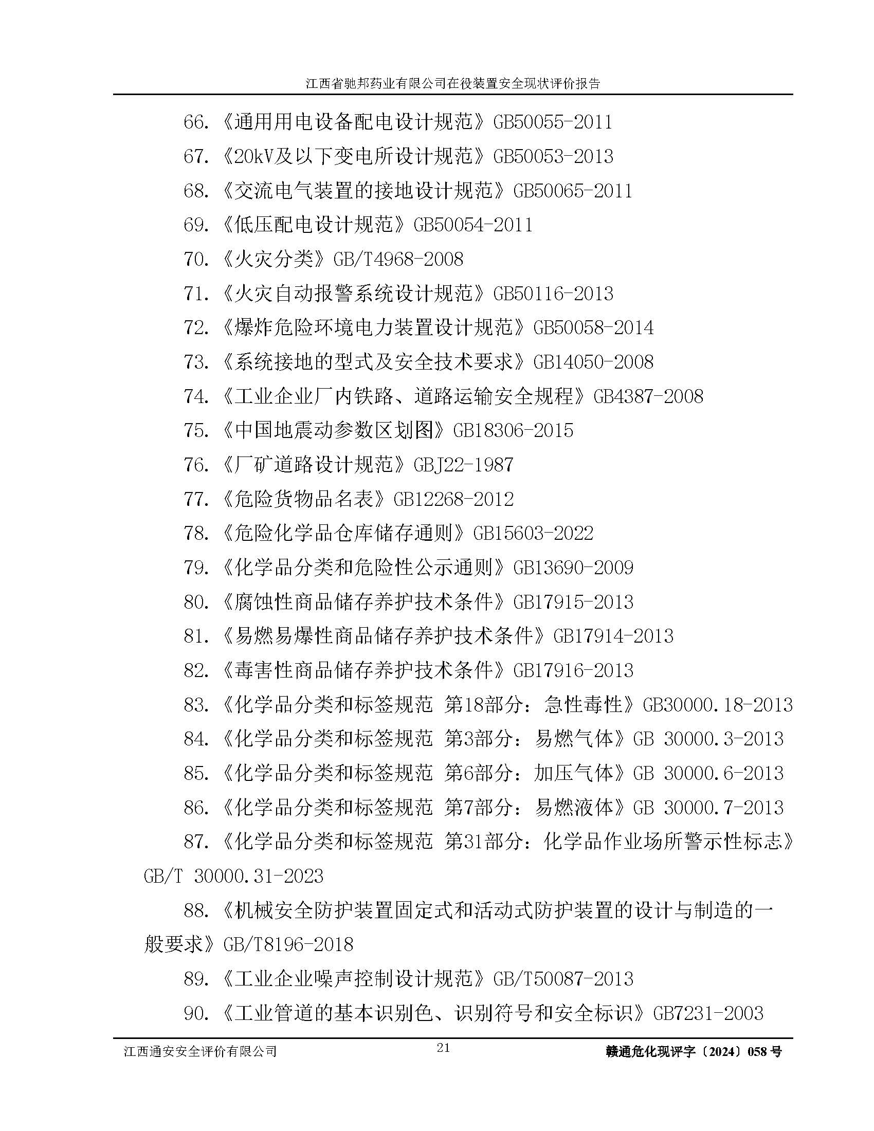 評價(jià)報(bào)告名稱 | 江西省馳邦藥業(yè)有限公司在役裝置安全現(xiàn)狀評價(jià)報(bào)告 | |||