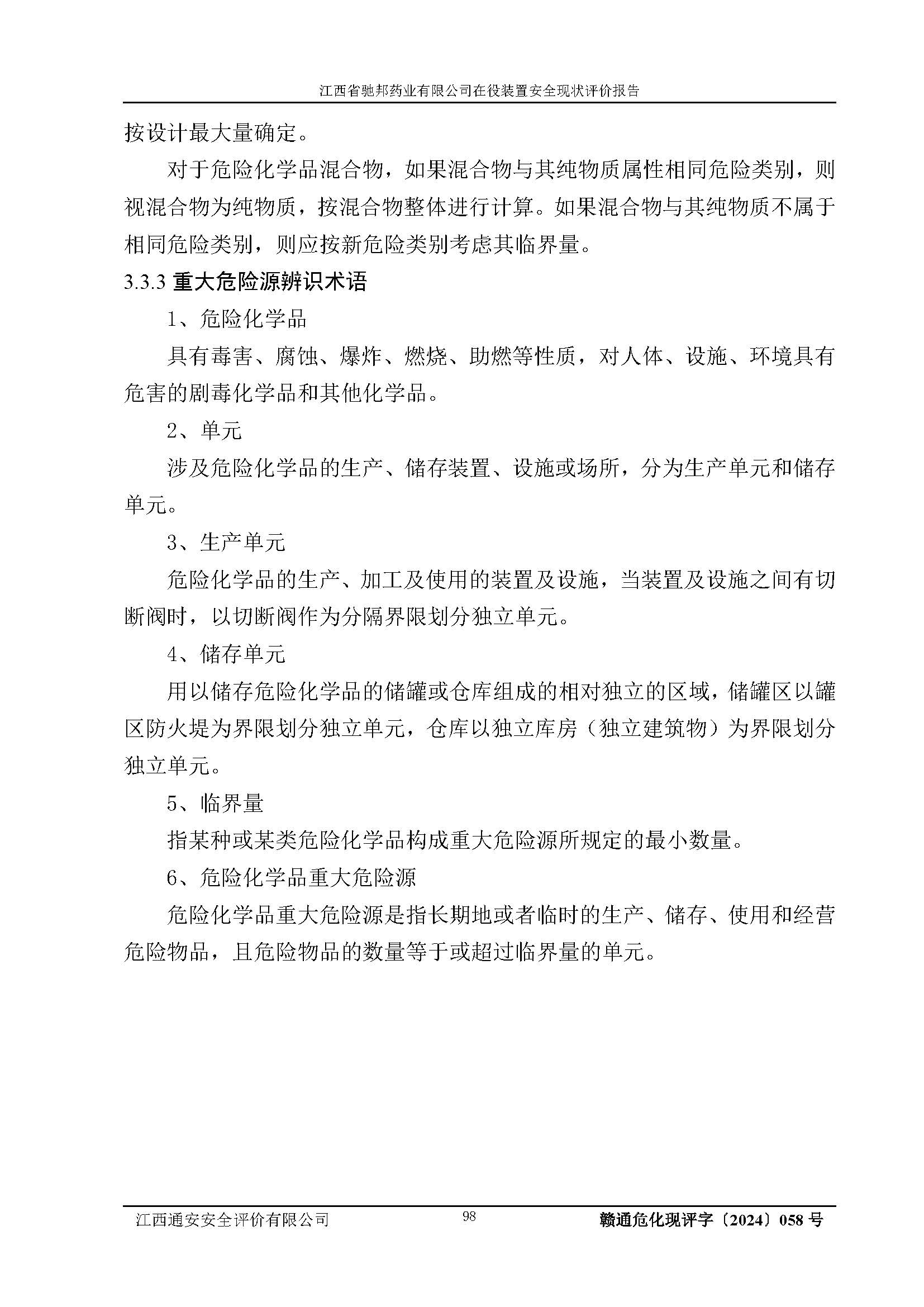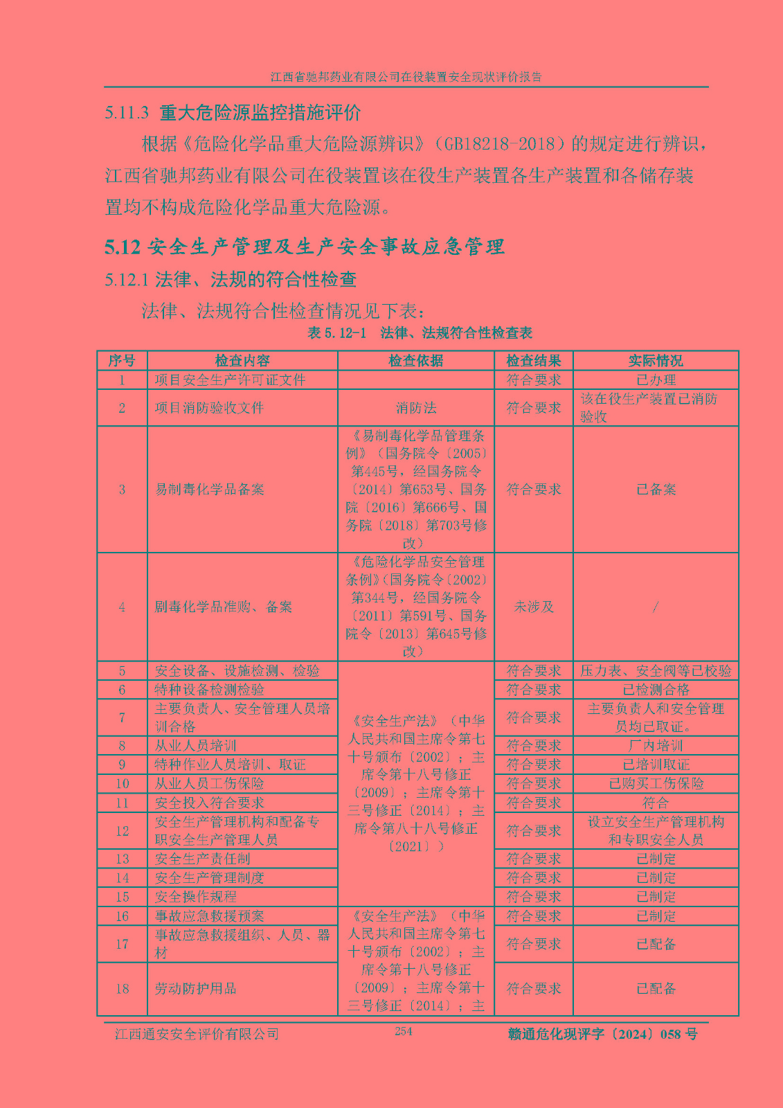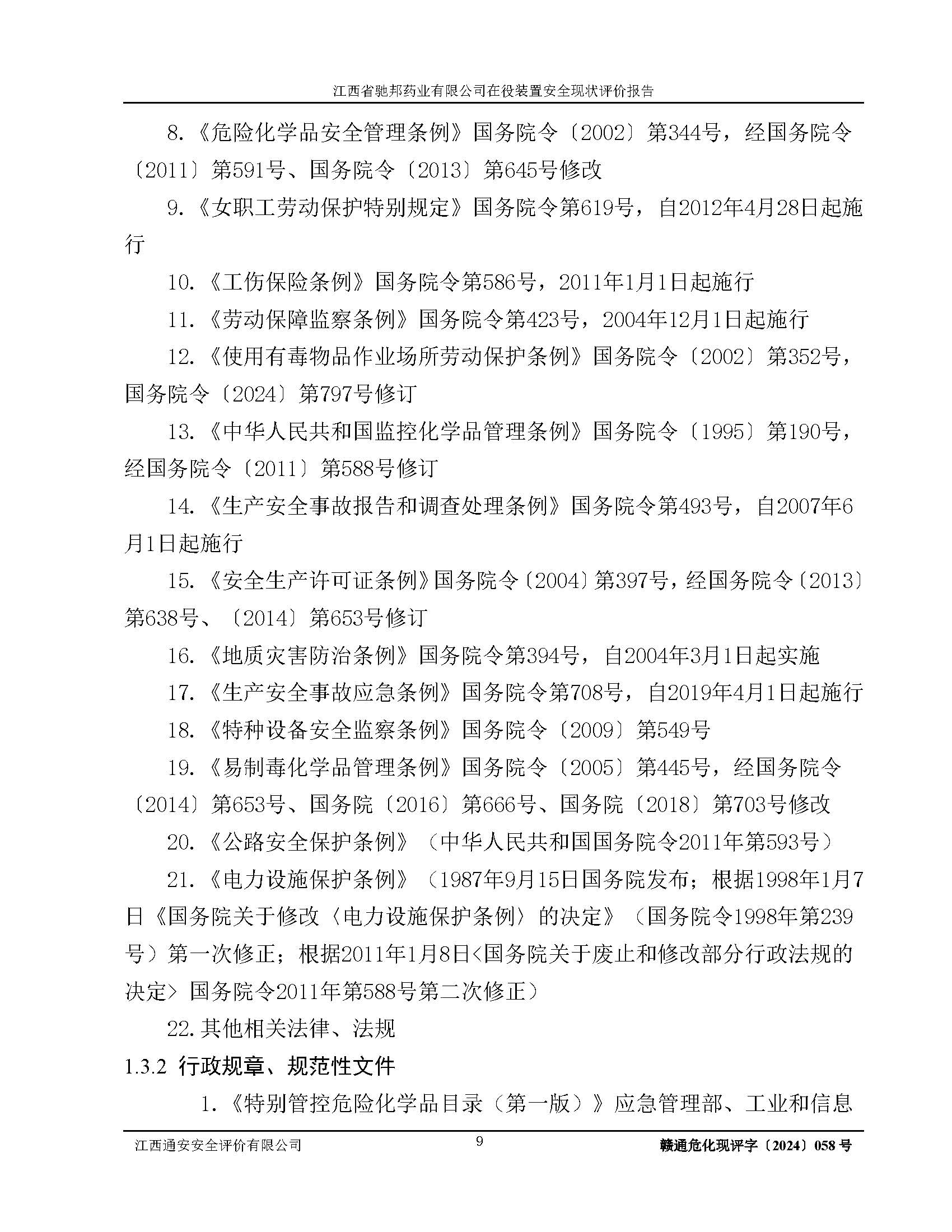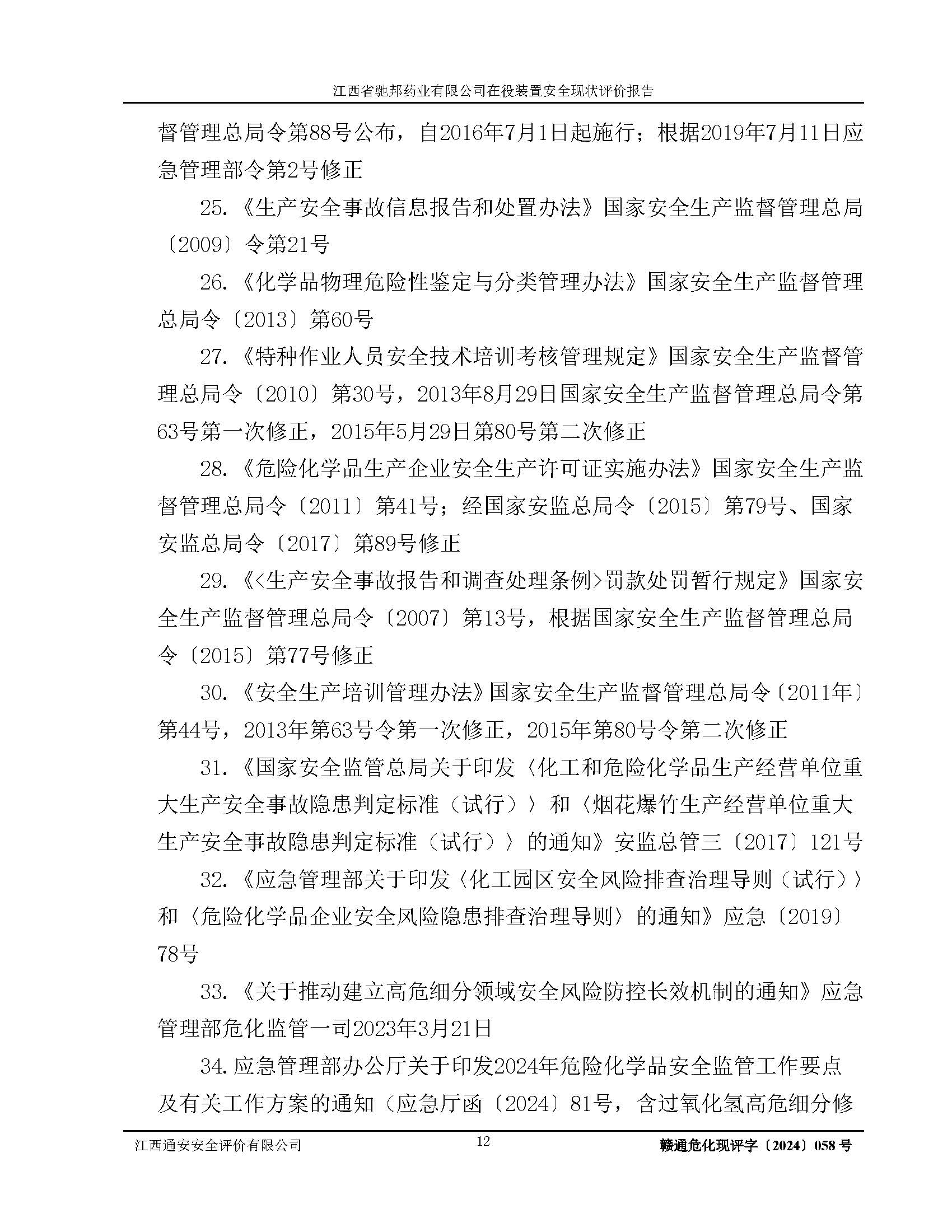 評價(jià)報(bào)告名稱 | 江西省馳邦藥業(yè)有限公司在役裝置安全現(xiàn)狀評價(jià)報(bào)告 | |||
