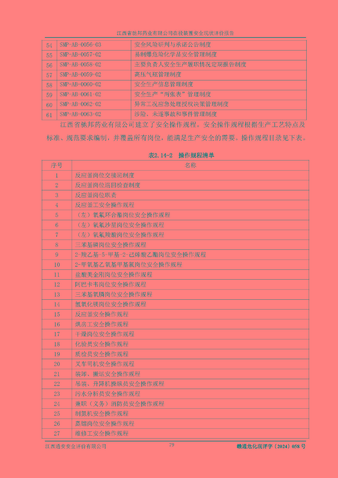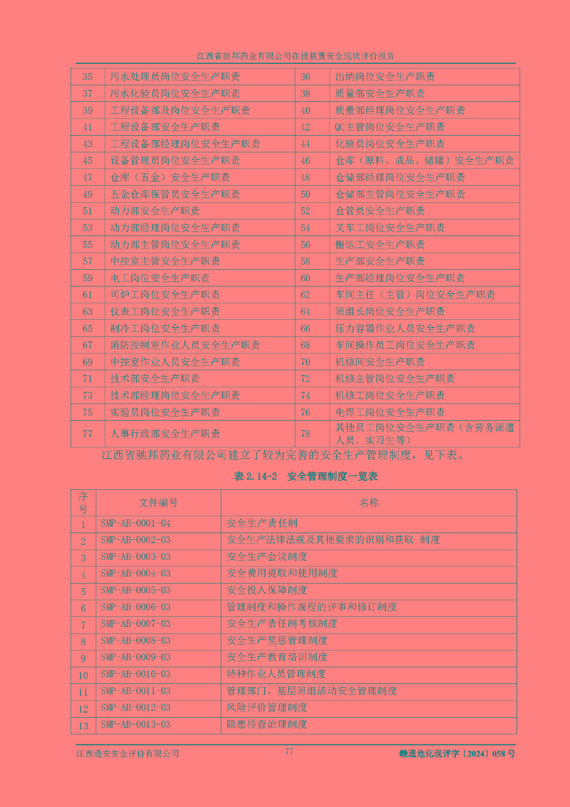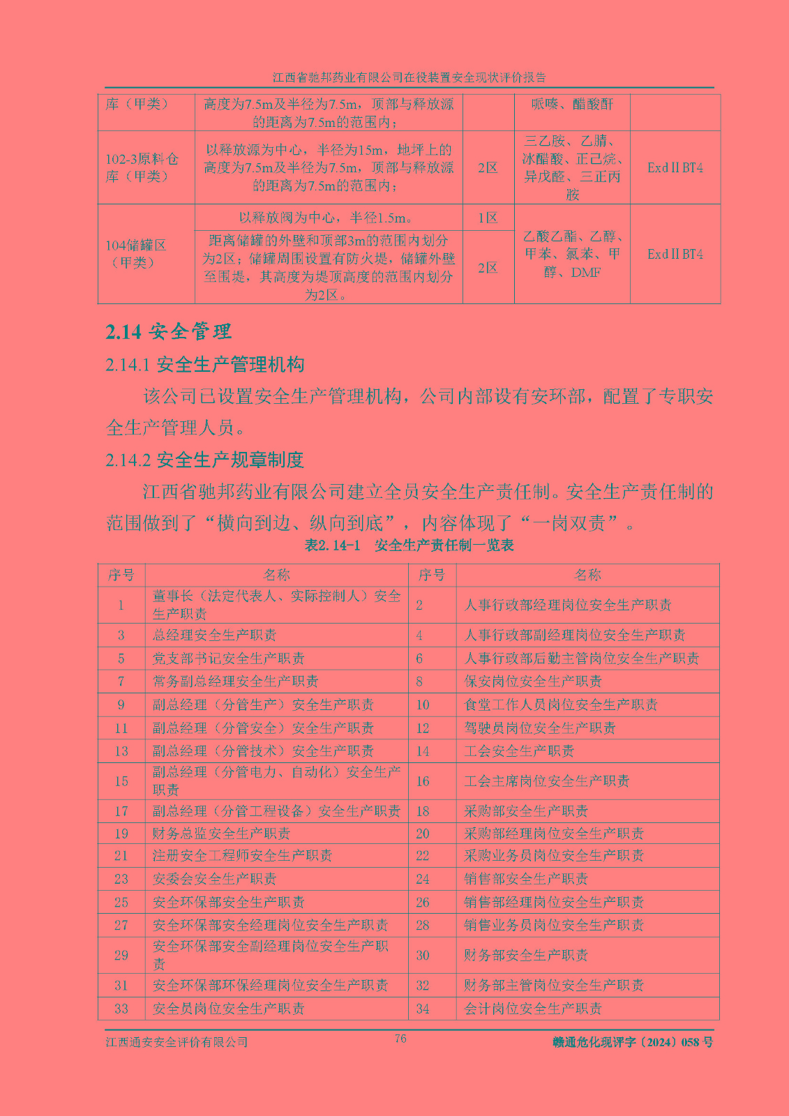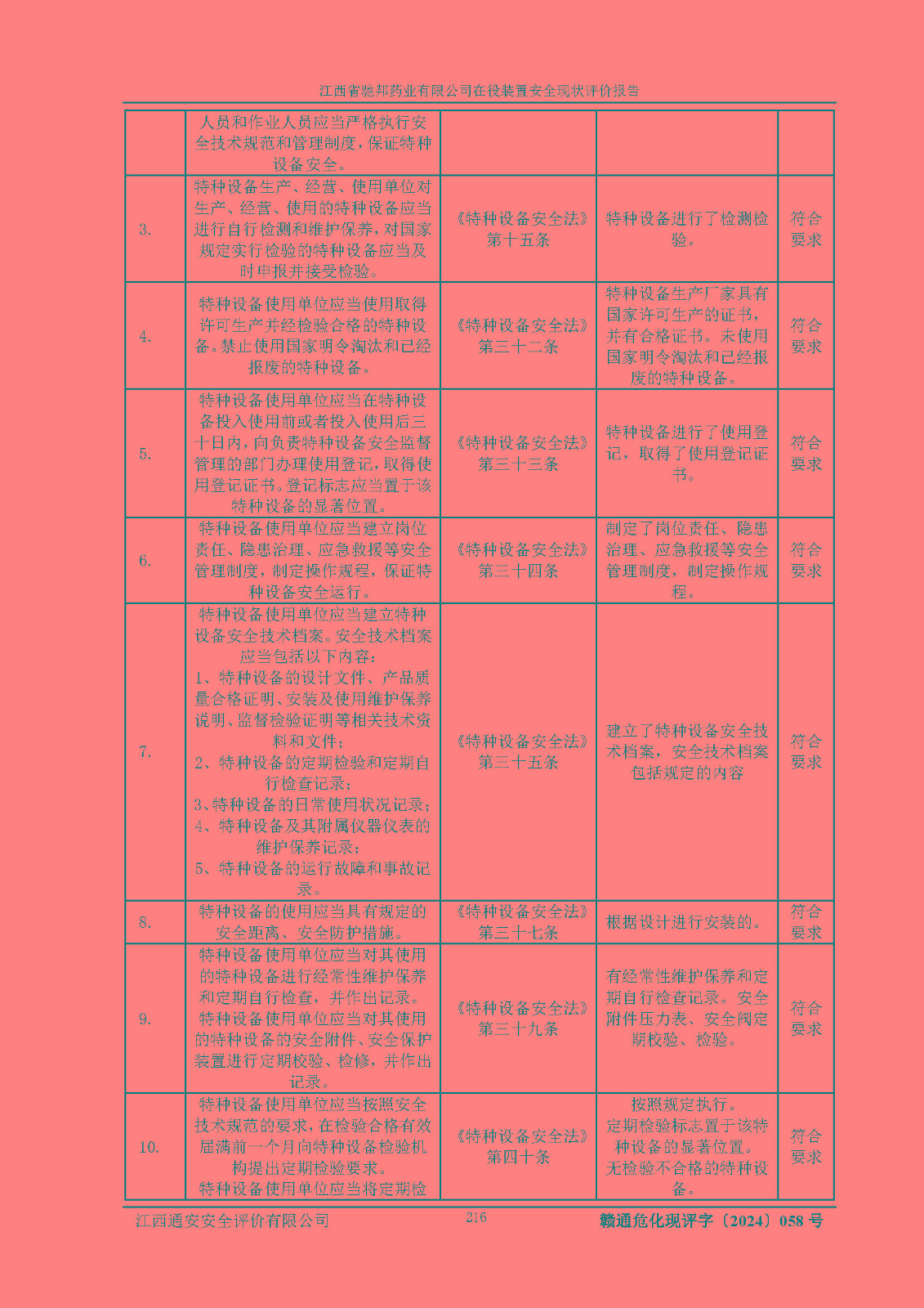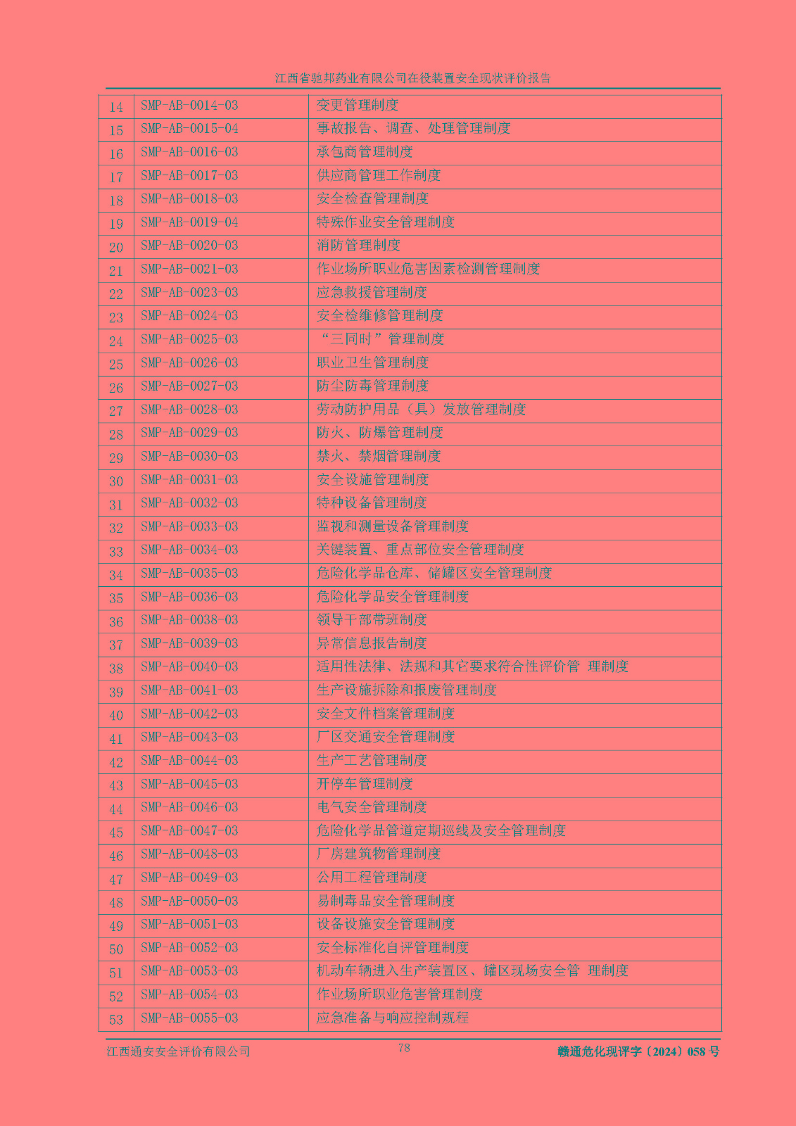 評價(jià)報(bào)告名稱 | 江西省馳邦藥業(yè)有限公司在役裝置安全現(xiàn)狀評價(jià)報(bào)告 | |||