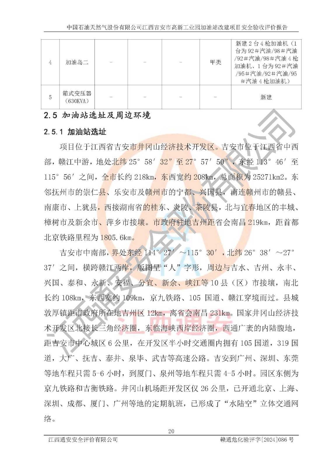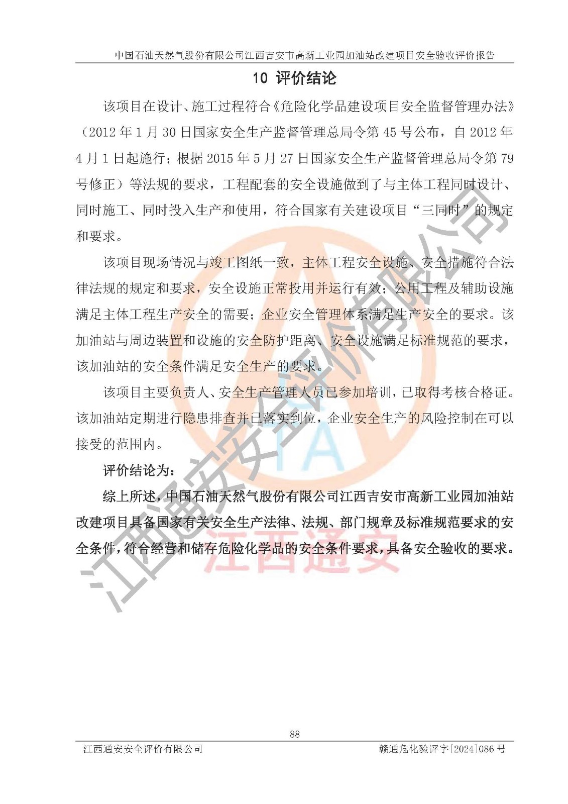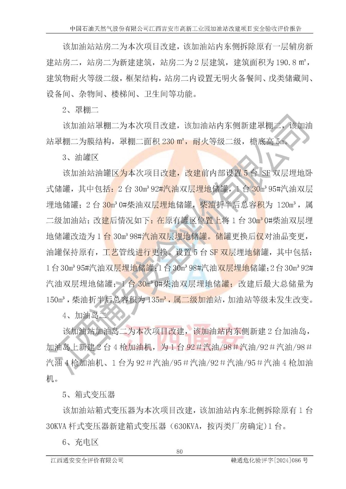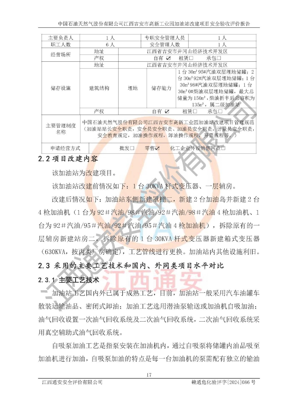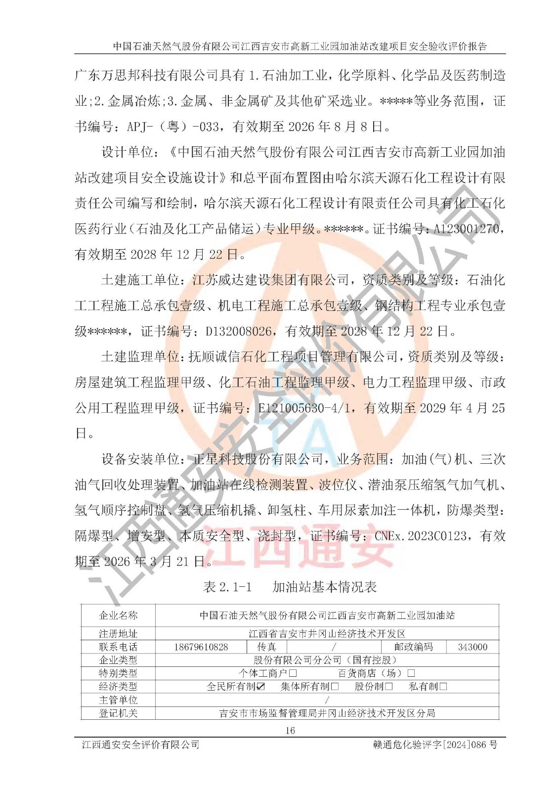 項目名稱 | 中國石油天然氣股份有限公司江西吉安市高新工業(yè)園加油站改建項目 安全驗收評價報告 | ||||
