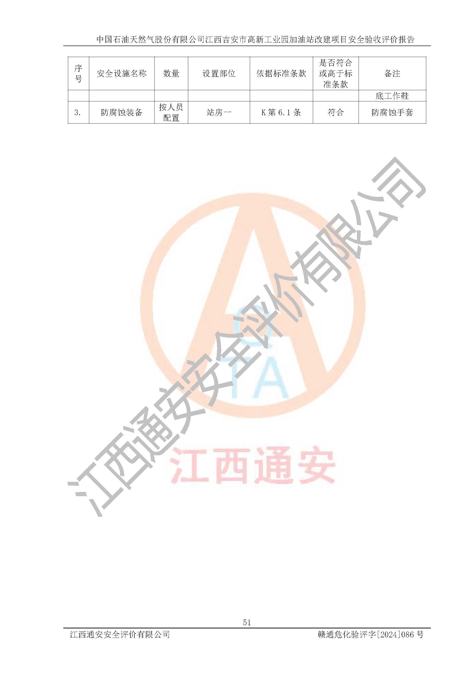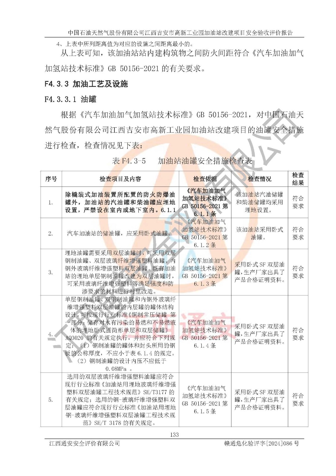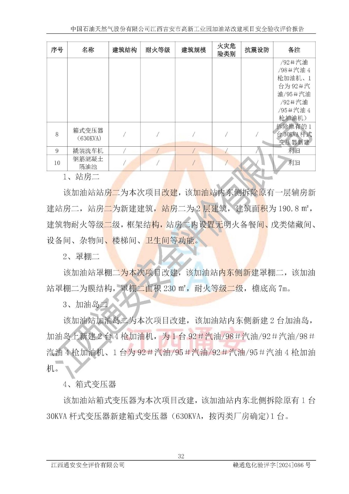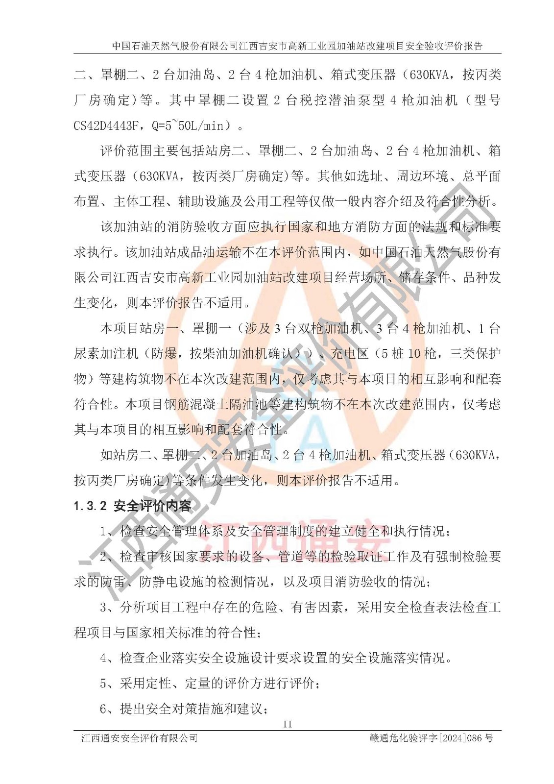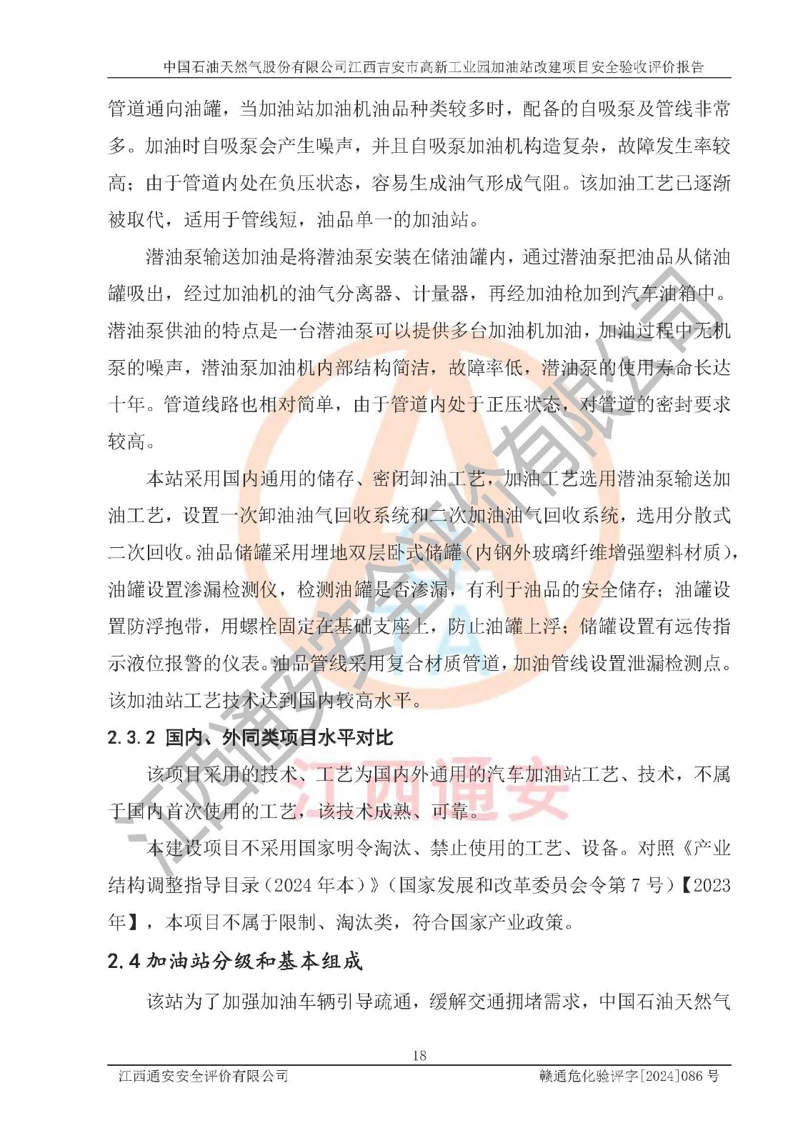 項目名稱 | 中國石油天然氣股份有限公司江西吉安市高新工業(yè)園加油站改建項目 安全驗收評價報告 | ||||