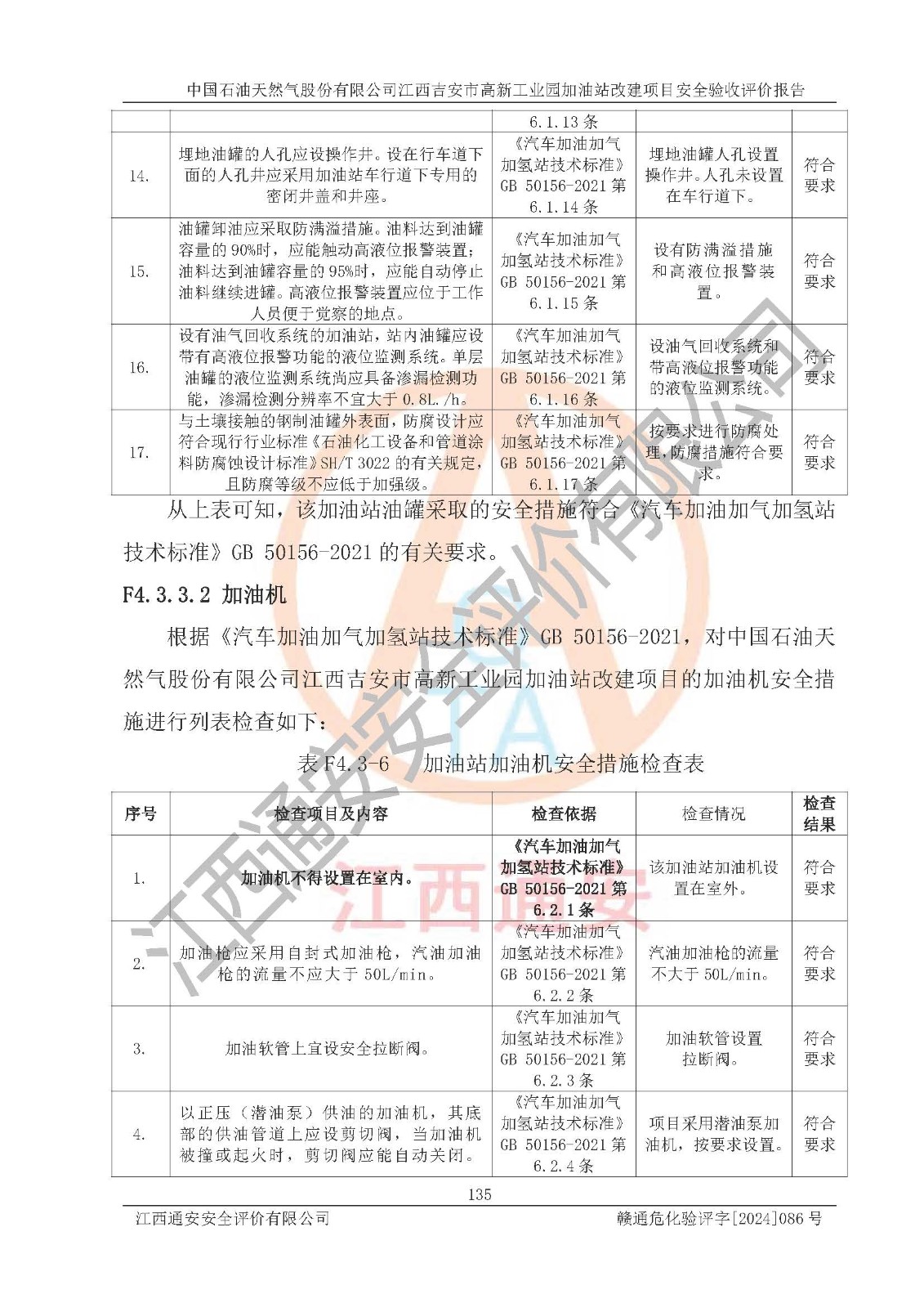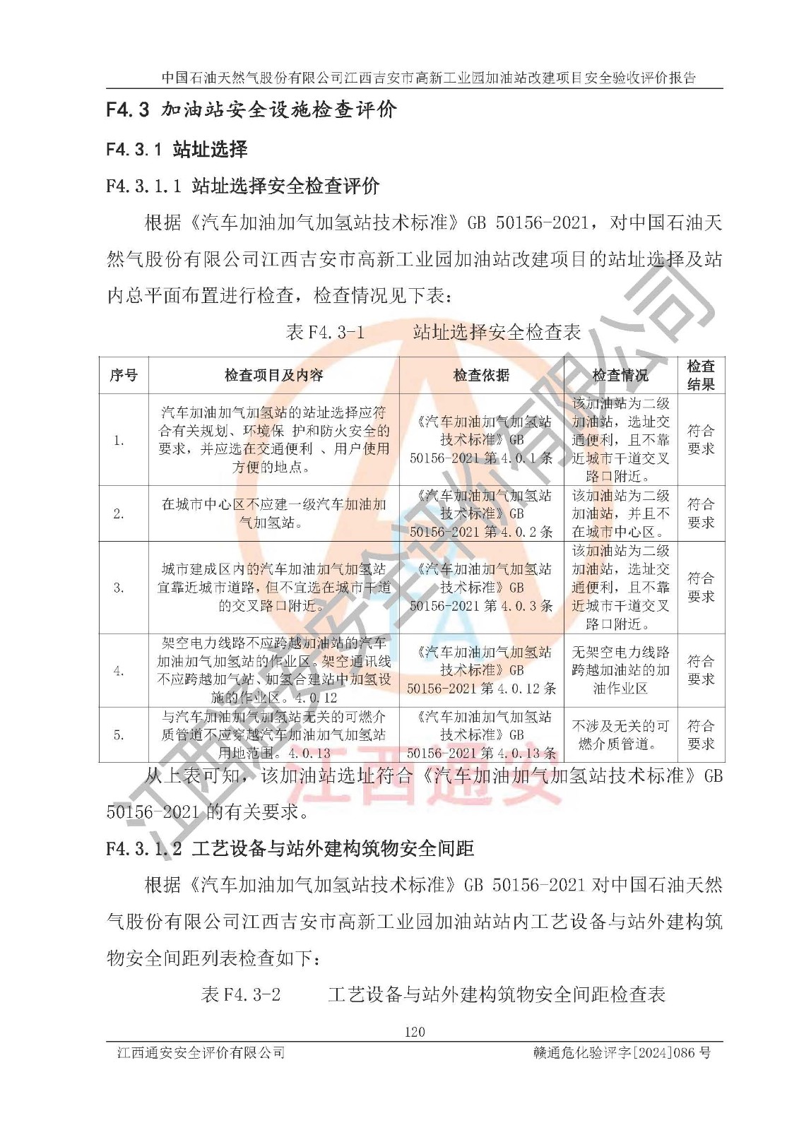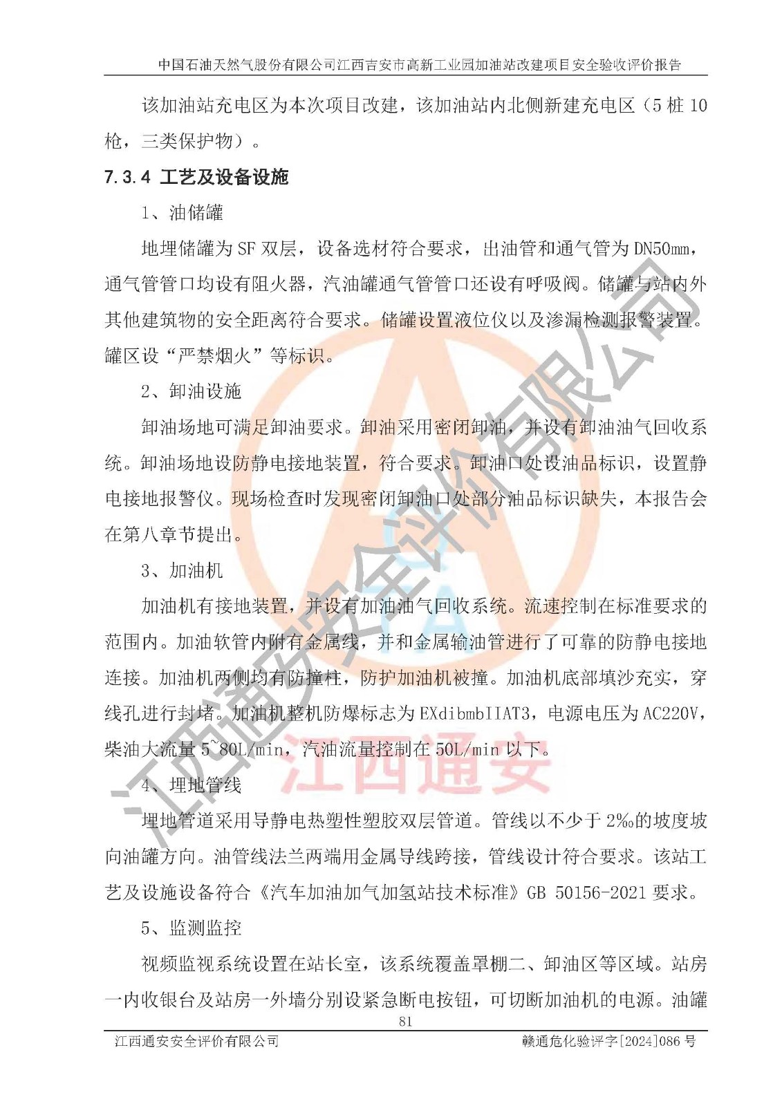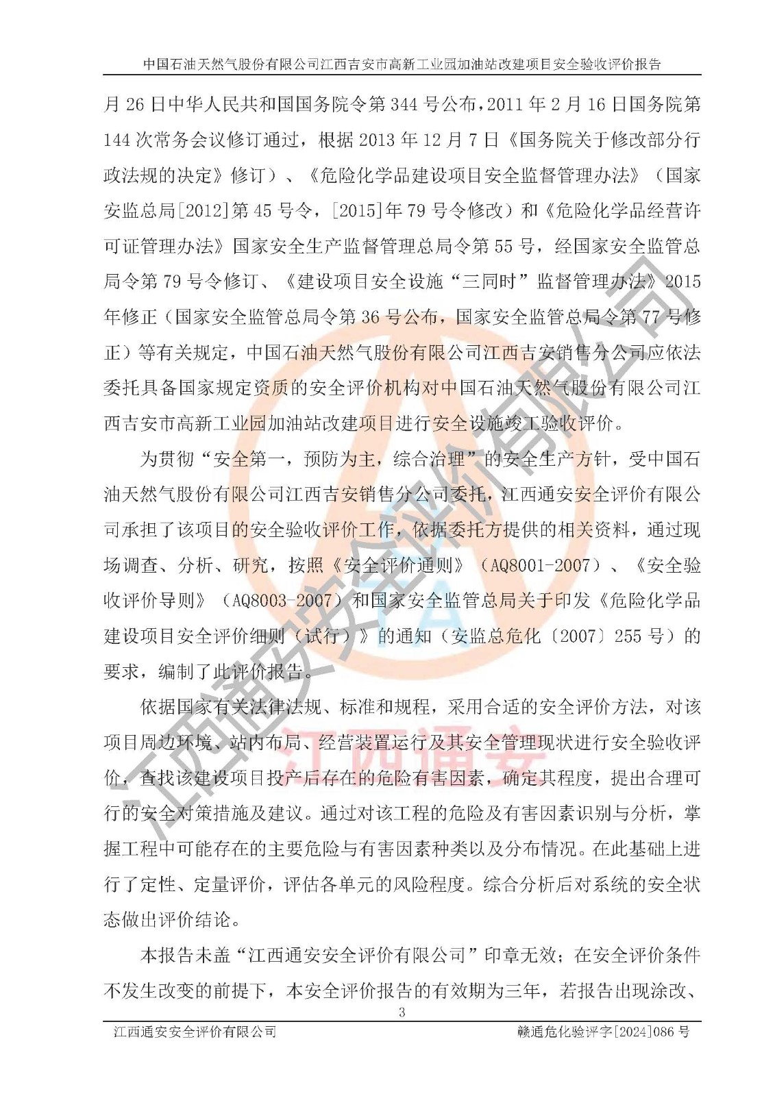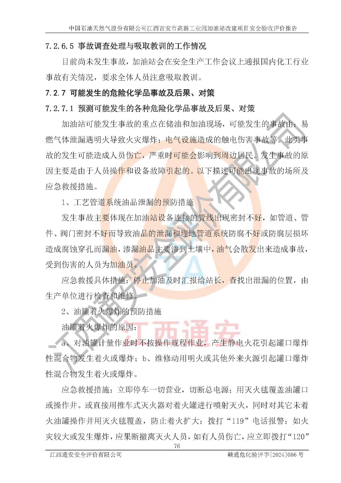 項目名稱 | 中國石油天然氣股份有限公司江西吉安市高新工業(yè)園加油站改建項目 安全驗收評價報告 | ||||