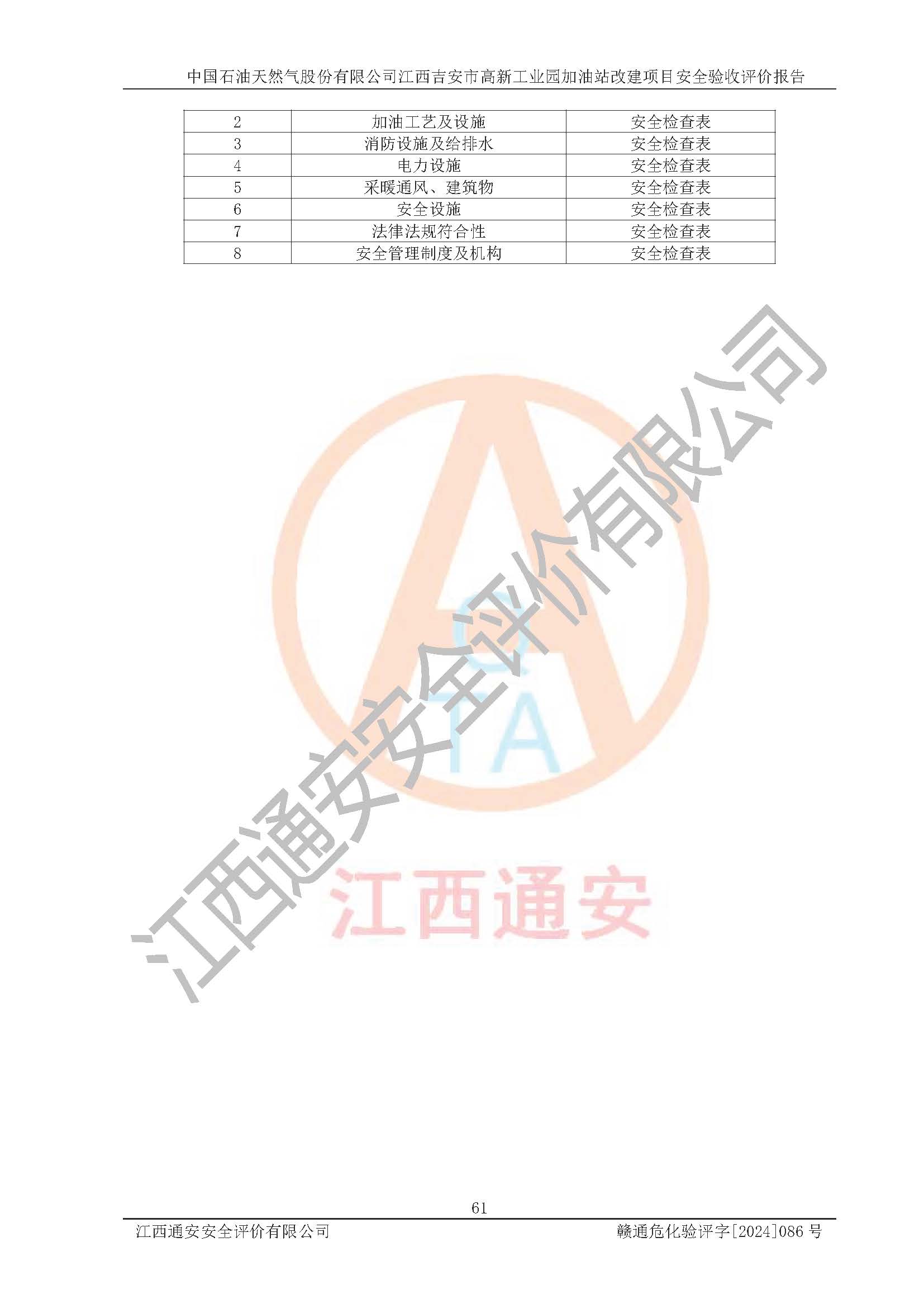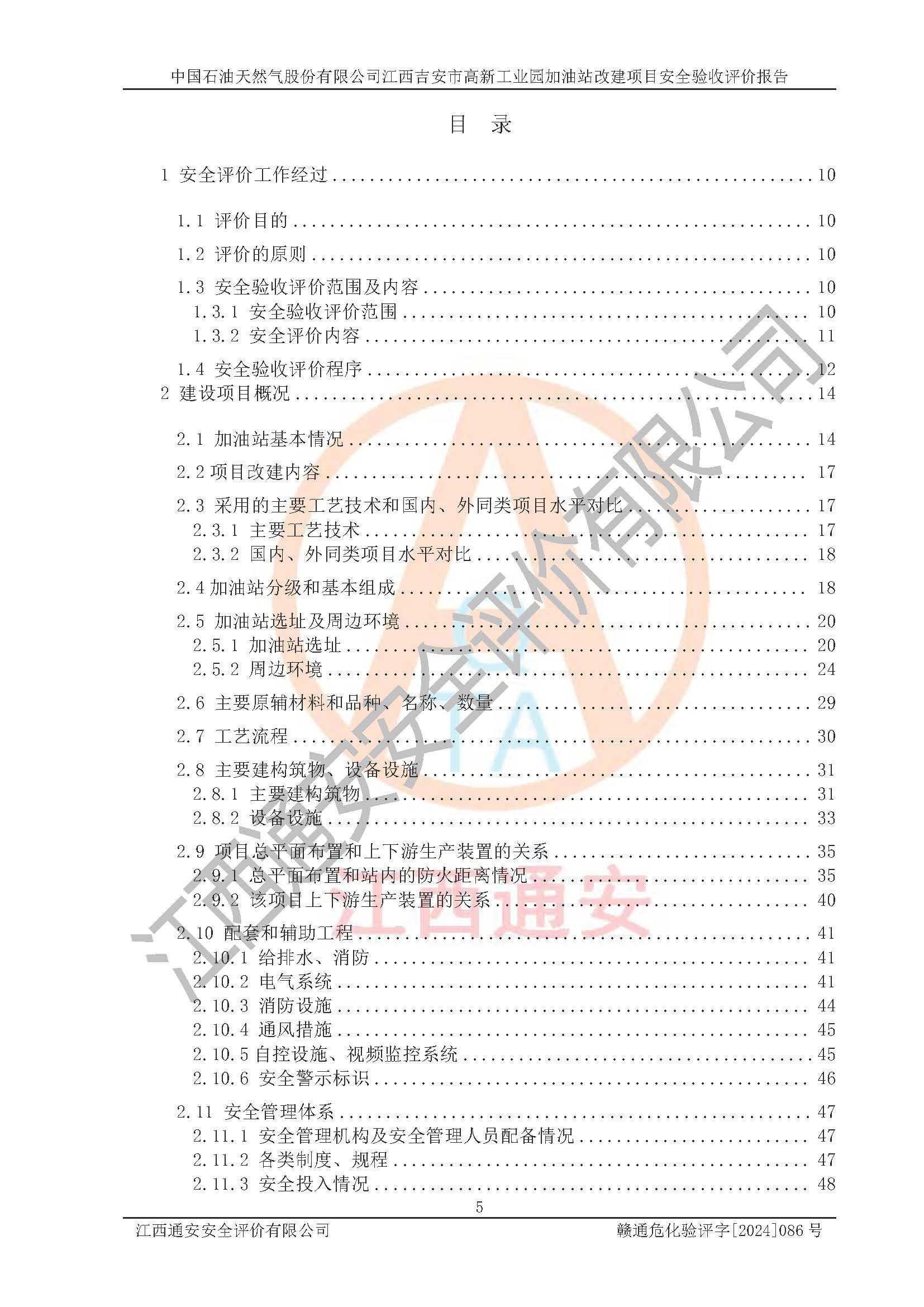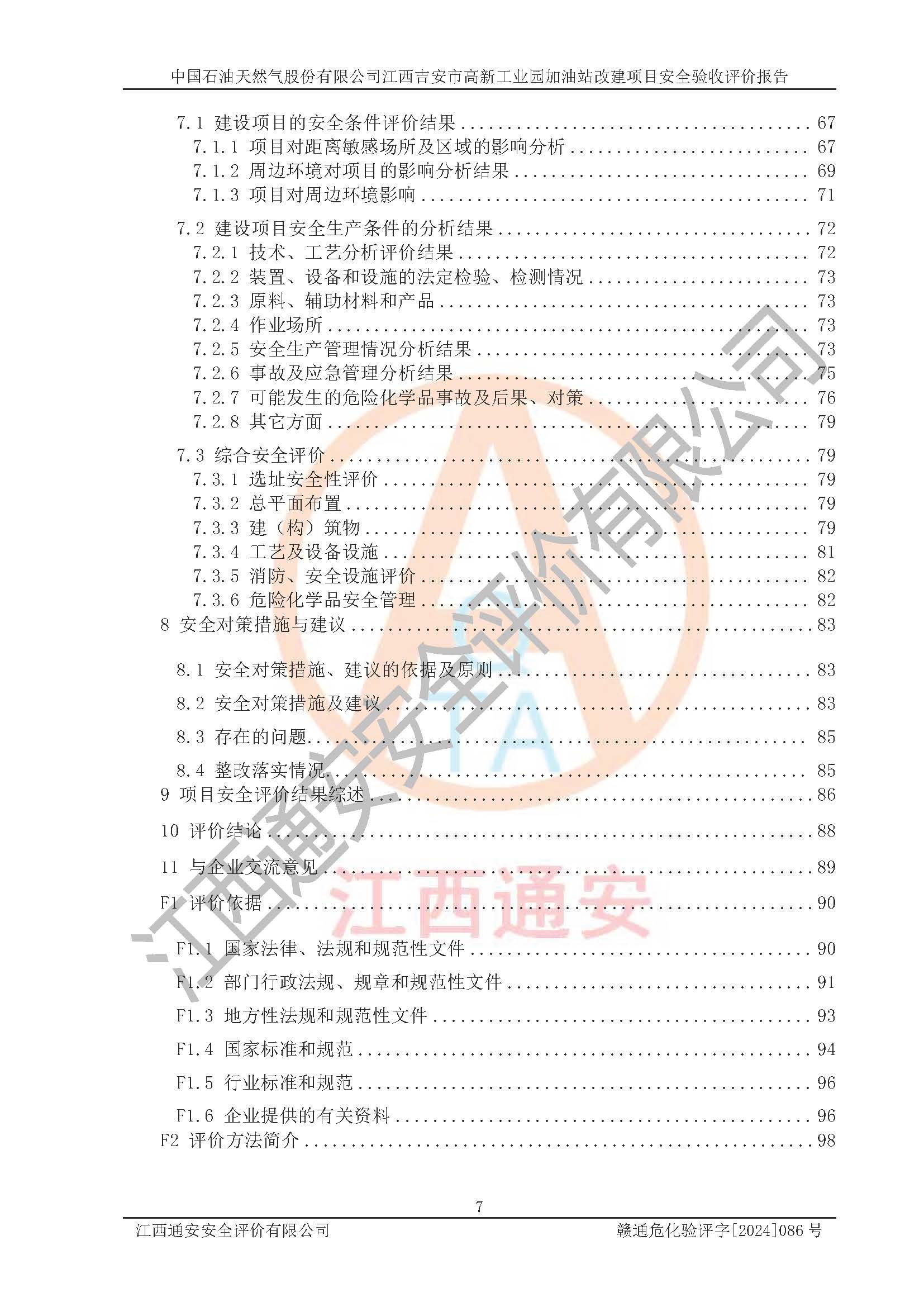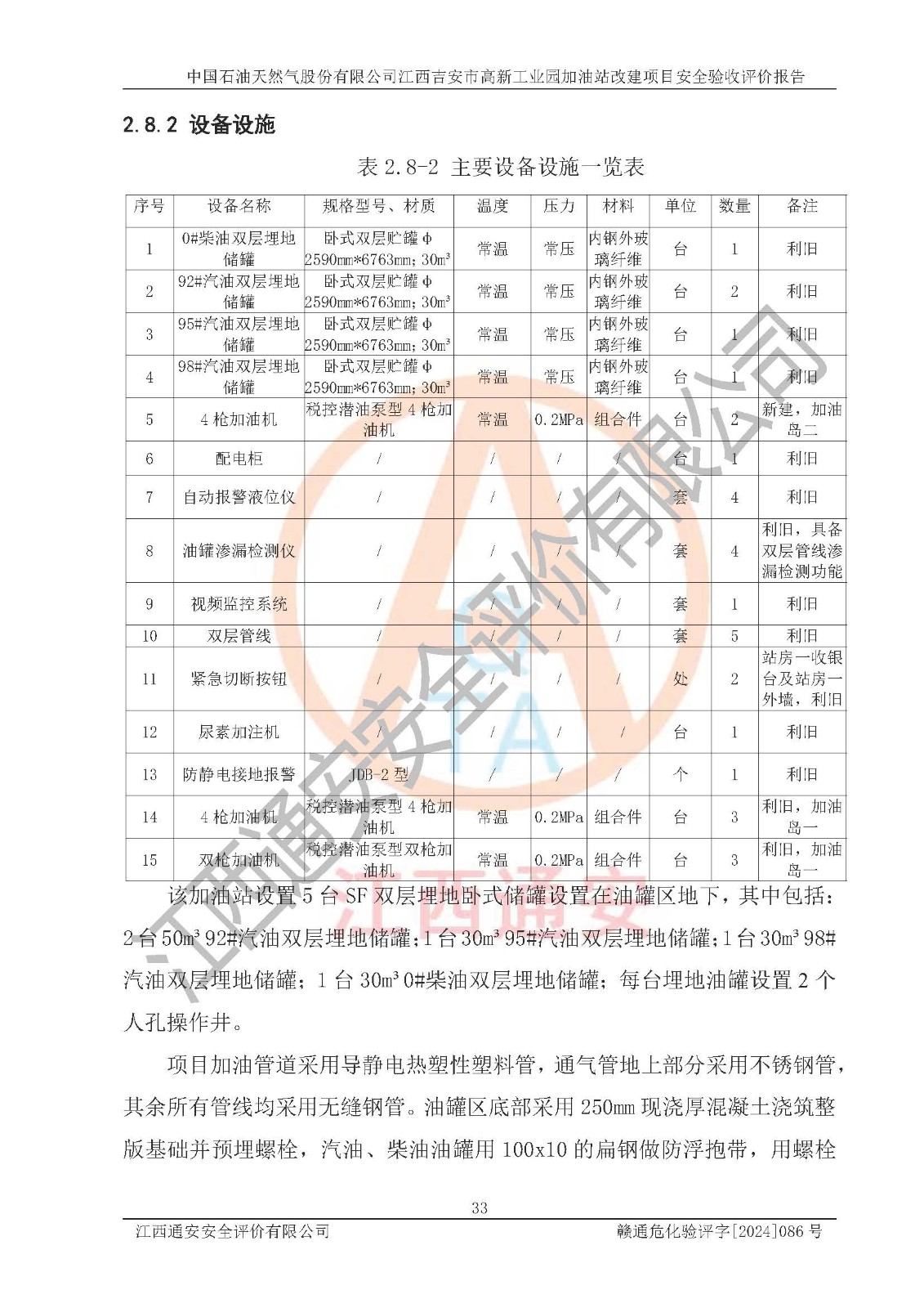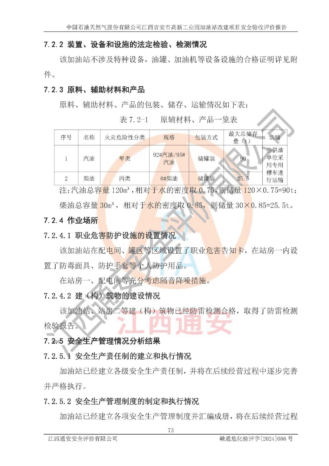 項目名稱 | 中國石油天然氣股份有限公司江西吉安市高新工業(yè)園加油站改建項目 安全驗收評價報告 | ||||