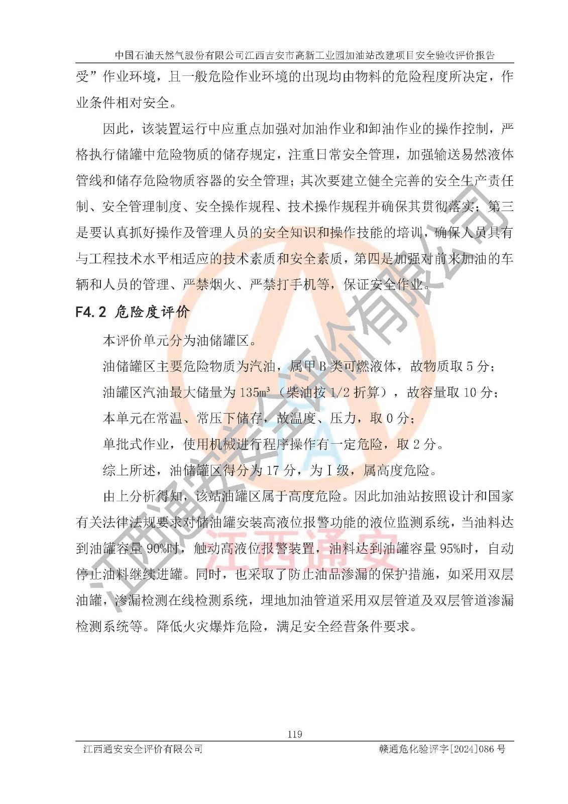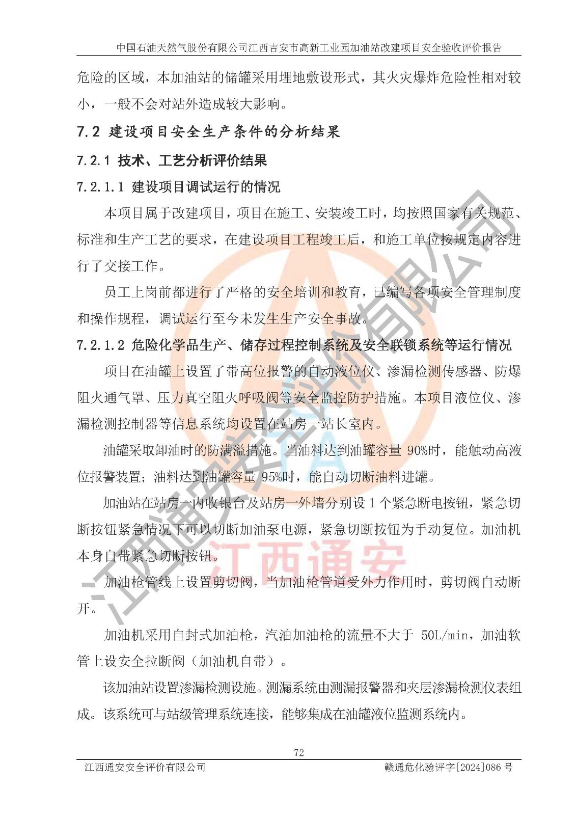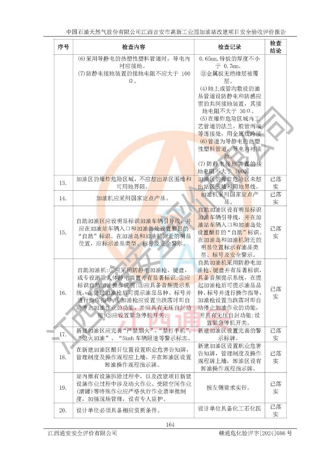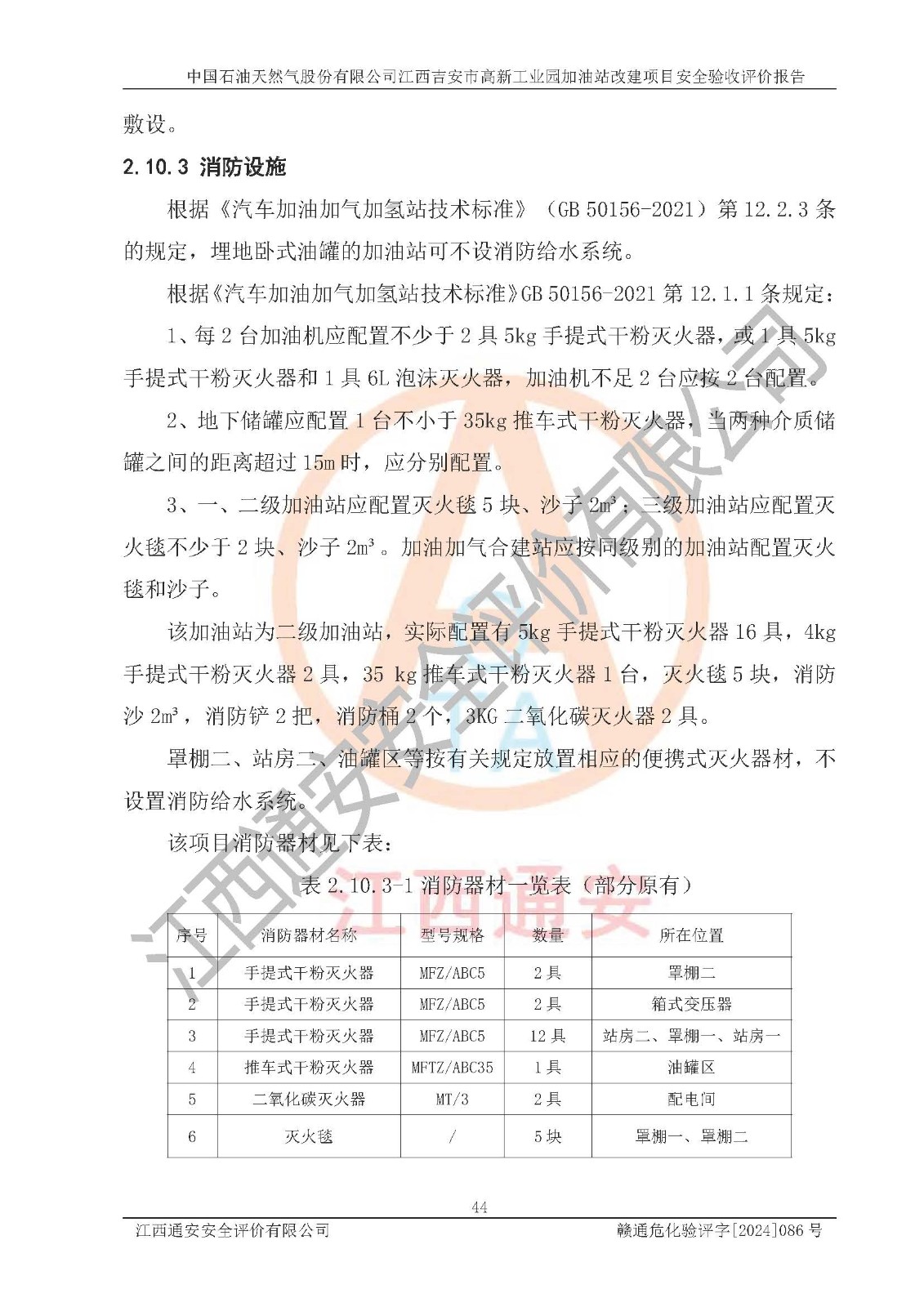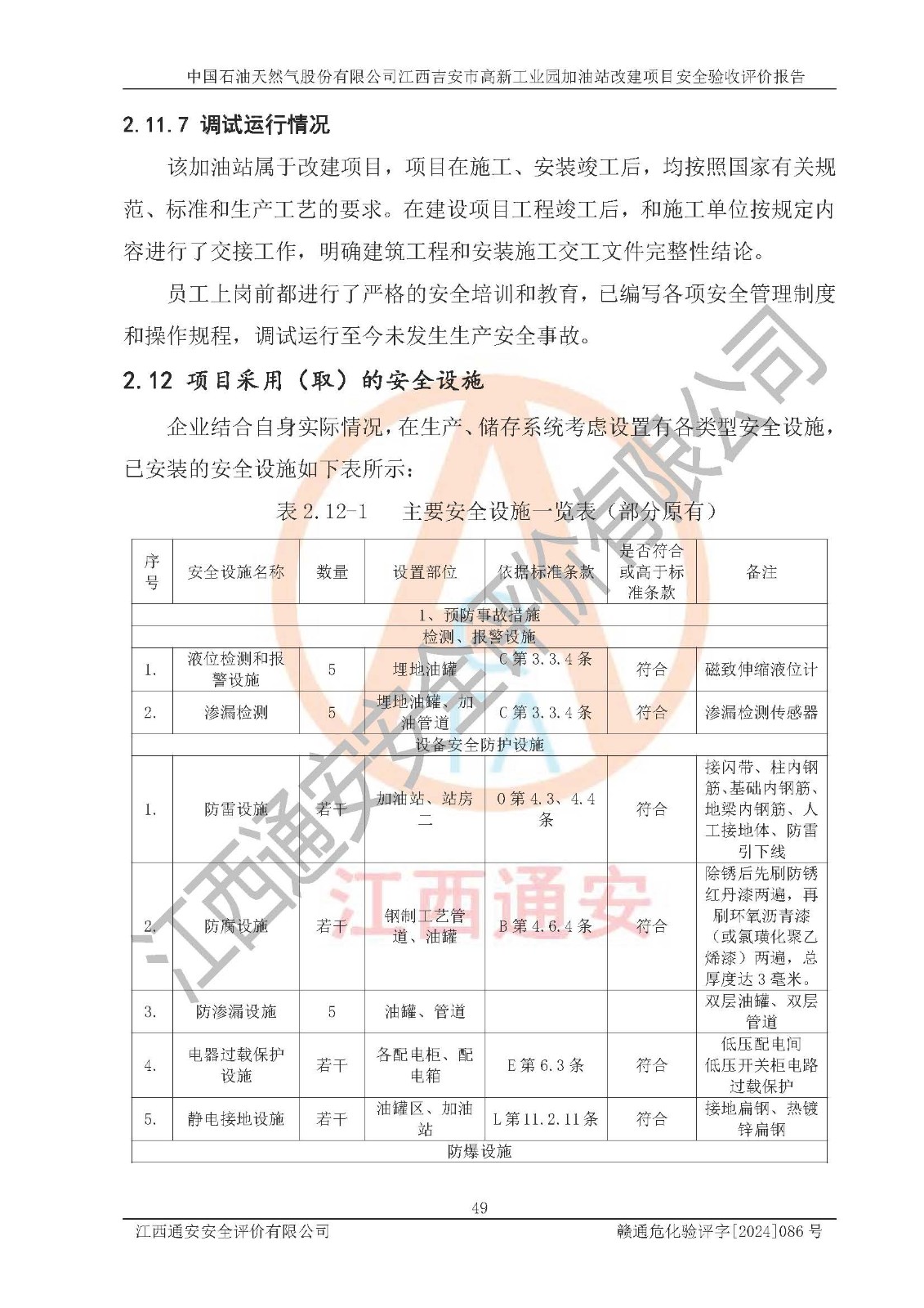項目名稱 | 中國石油天然氣股份有限公司江西吉安市高新工業(yè)園加油站改建項目 安全驗收評價報告 | ||||