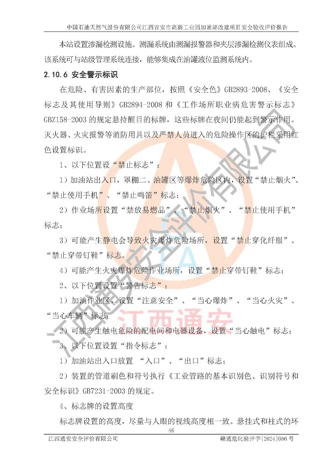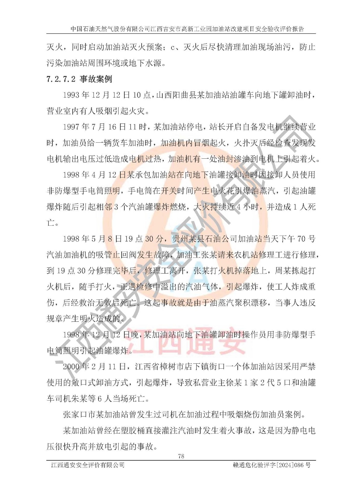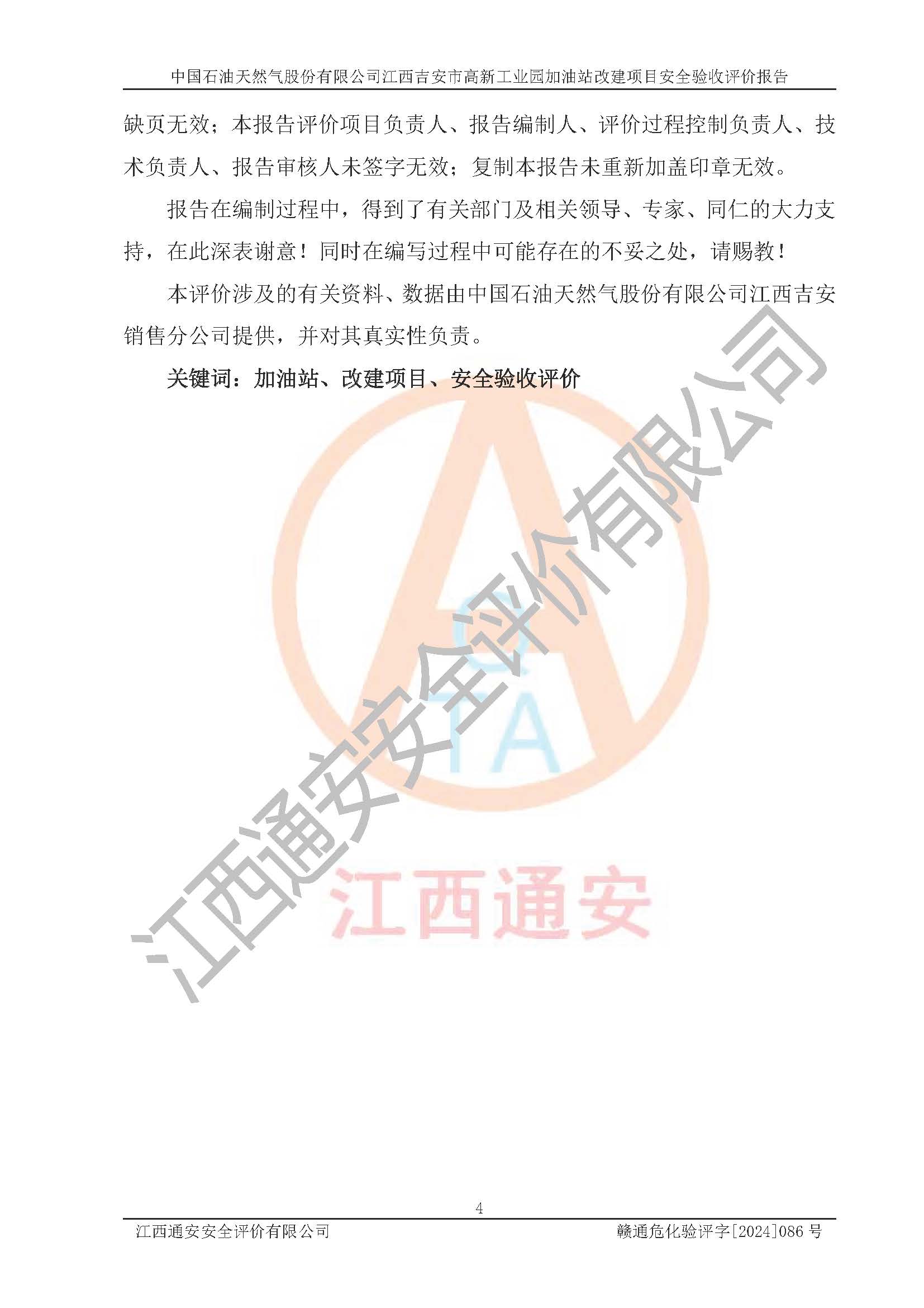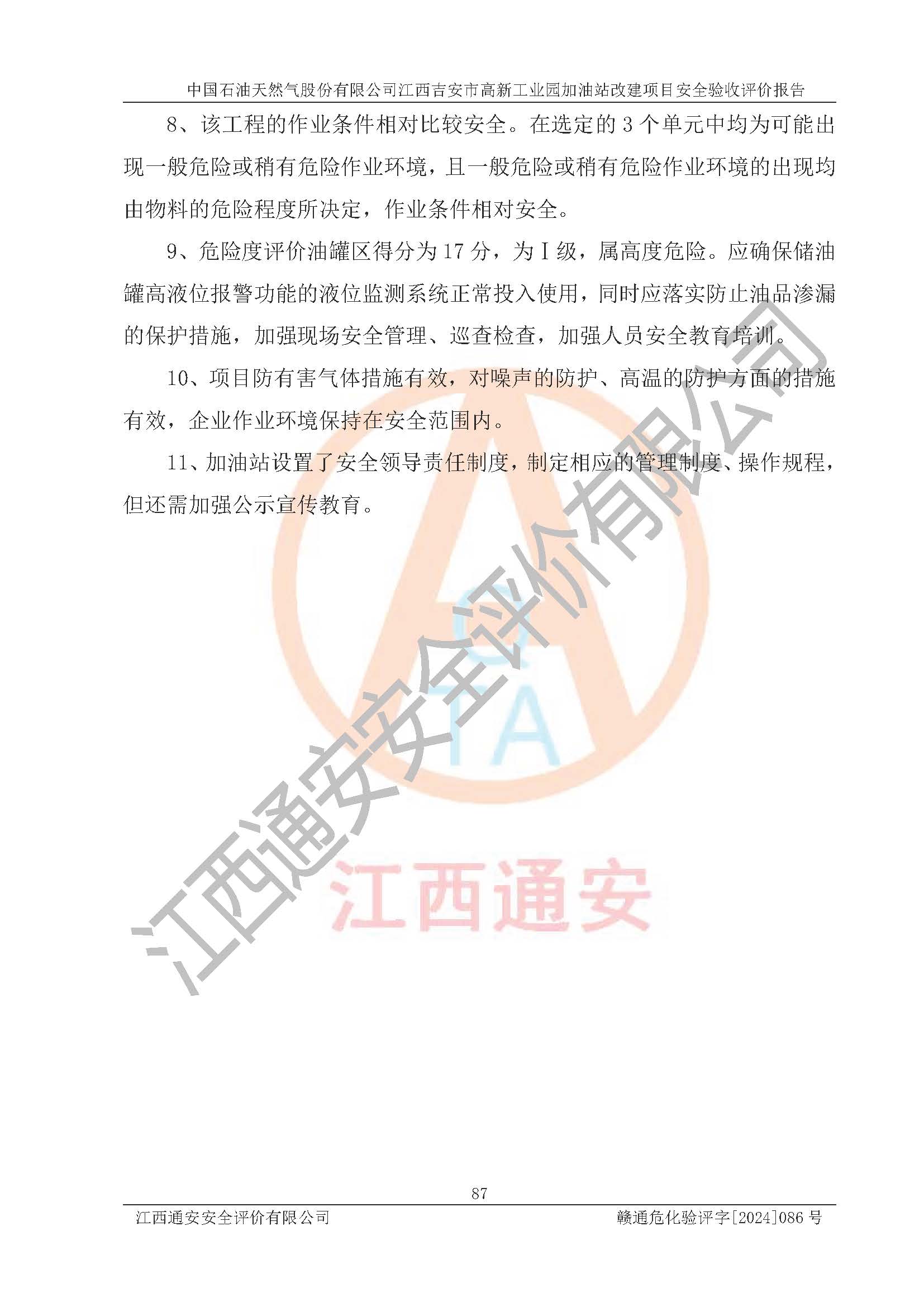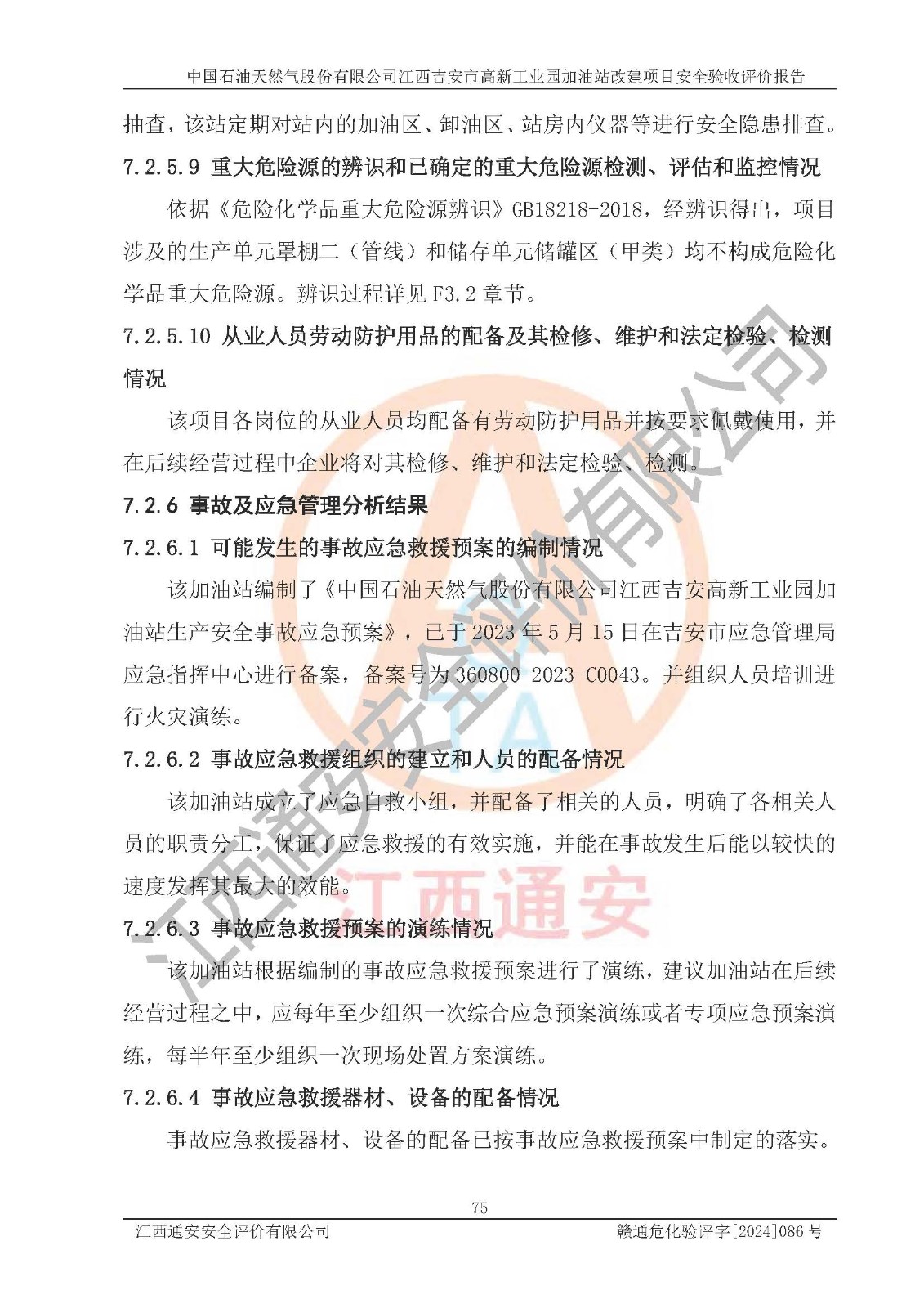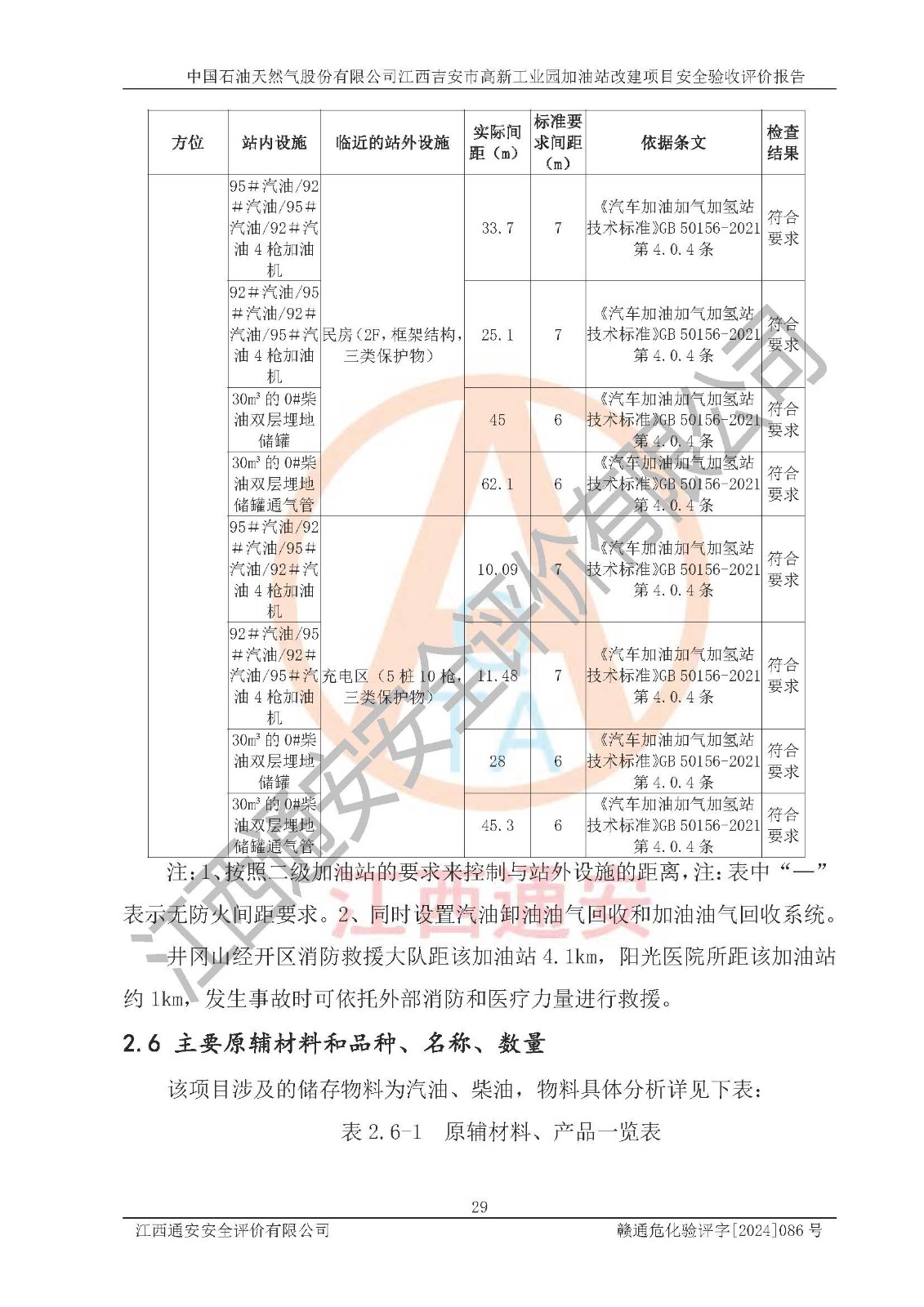 項目名稱 | 中國石油天然氣股份有限公司江西吉安市高新工業(yè)園加油站改建項目 安全驗收評價報告 | ||||