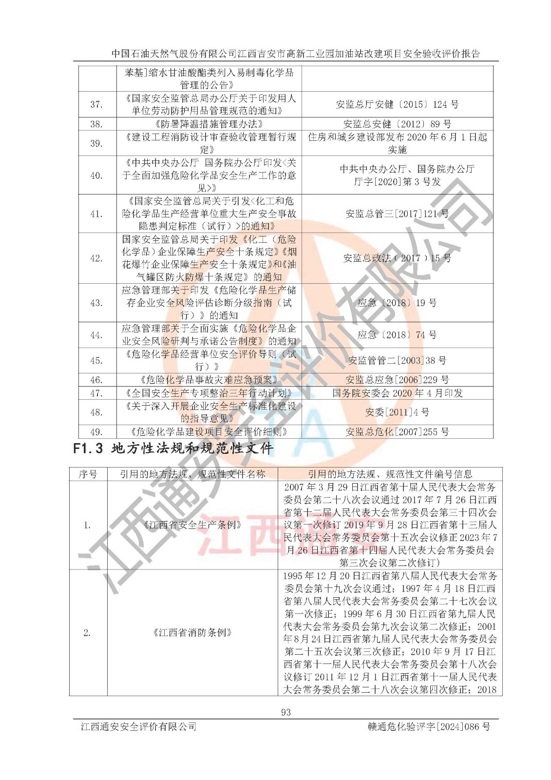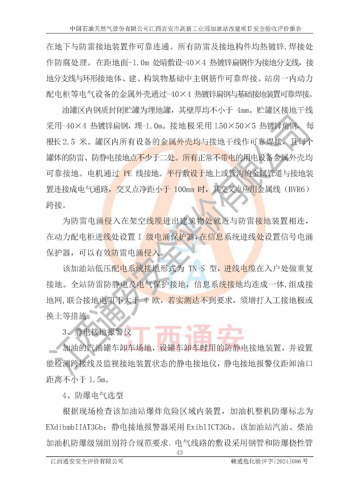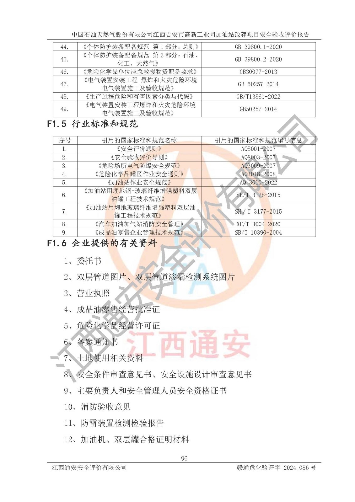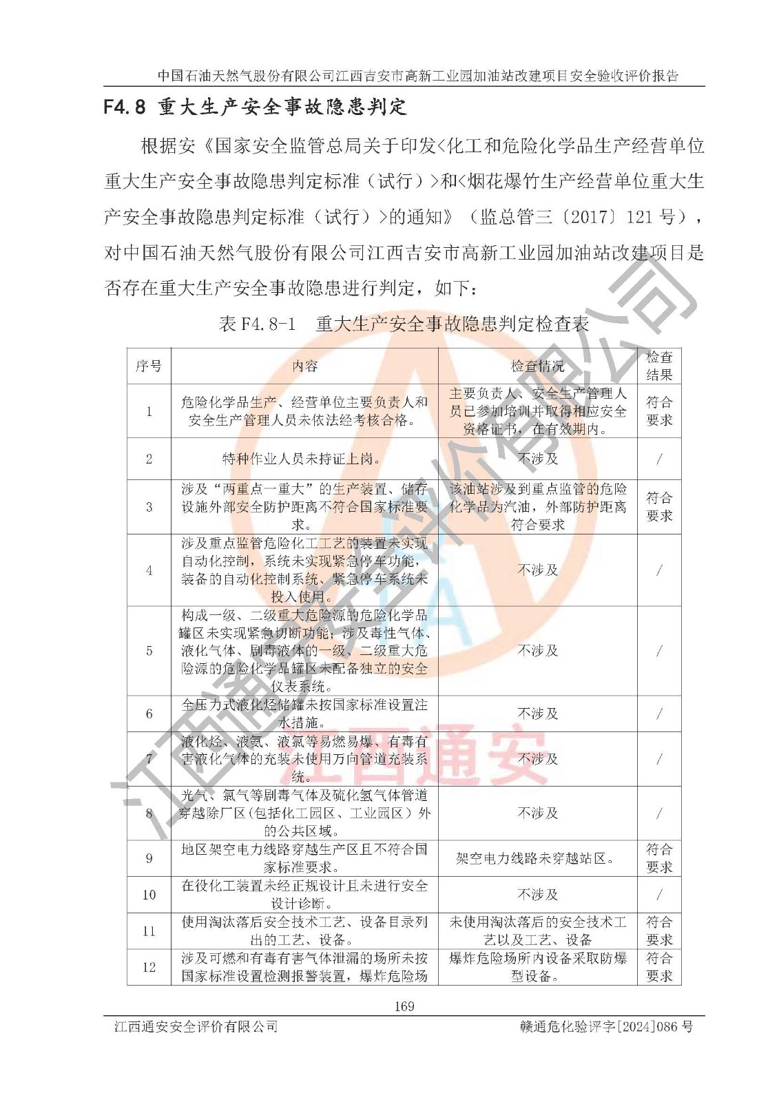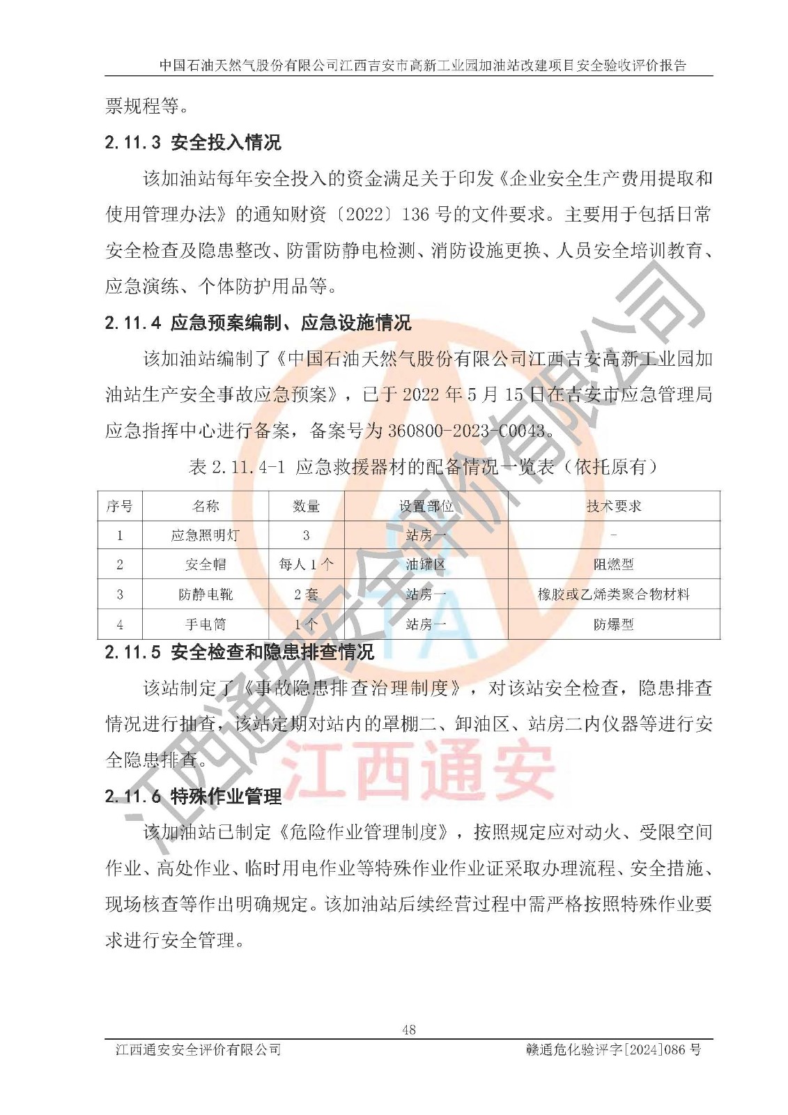 項目名稱 | 中國石油天然氣股份有限公司江西吉安市高新工業(yè)園加油站改建項目 安全驗收評價報告 | ||||