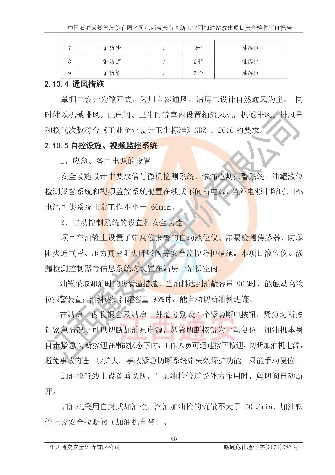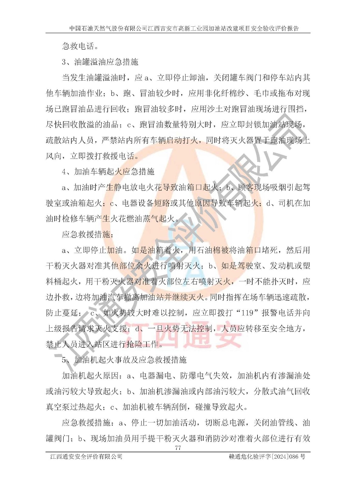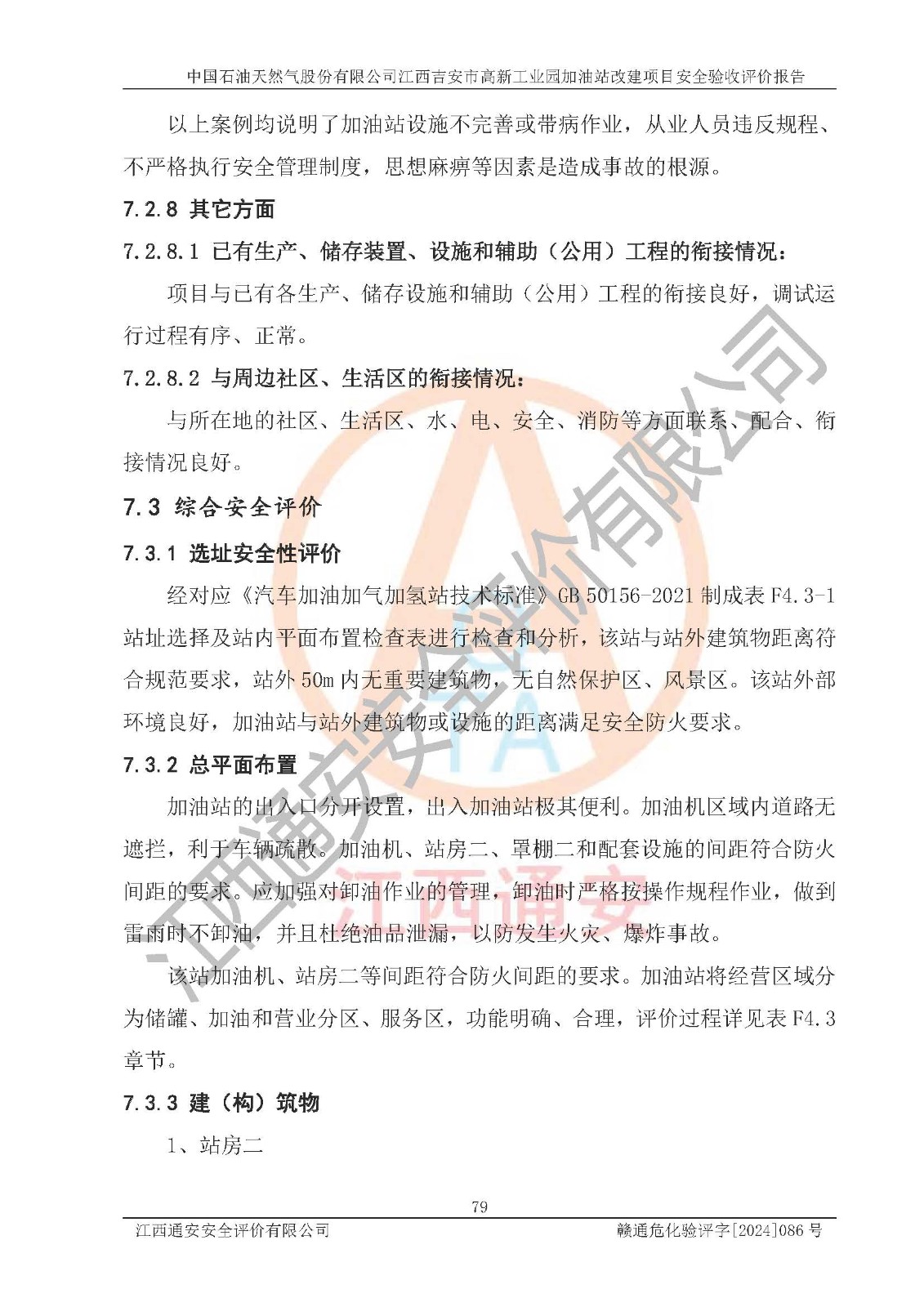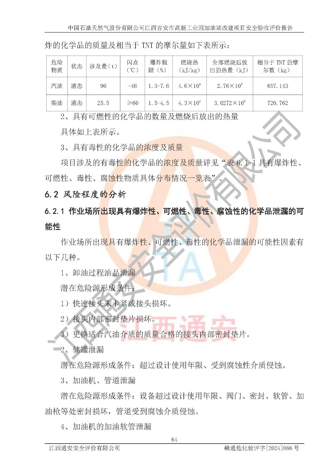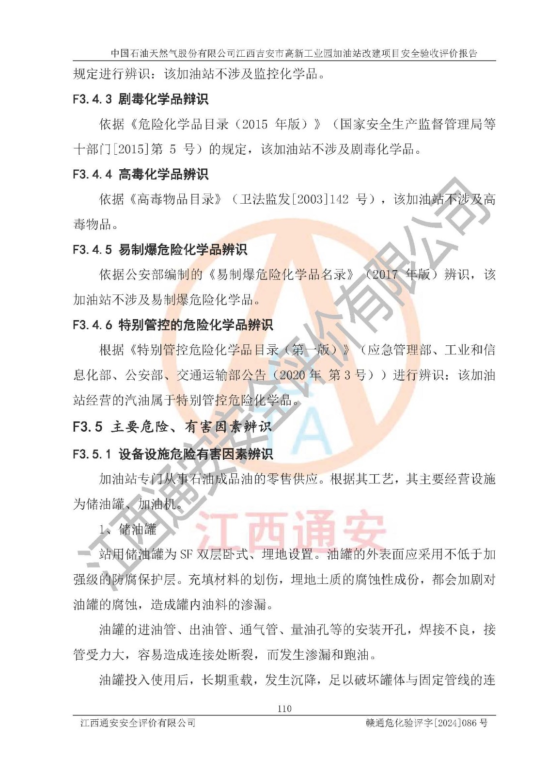 項目名稱 | 中國石油天然氣股份有限公司江西吉安市高新工業(yè)園加油站改建項目 安全驗收評價報告 | ||||