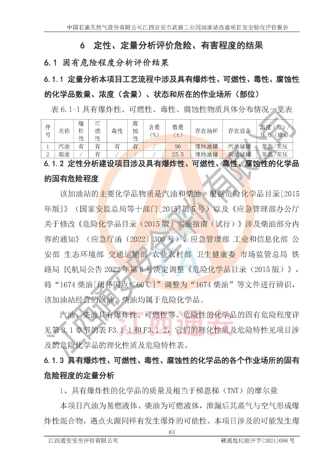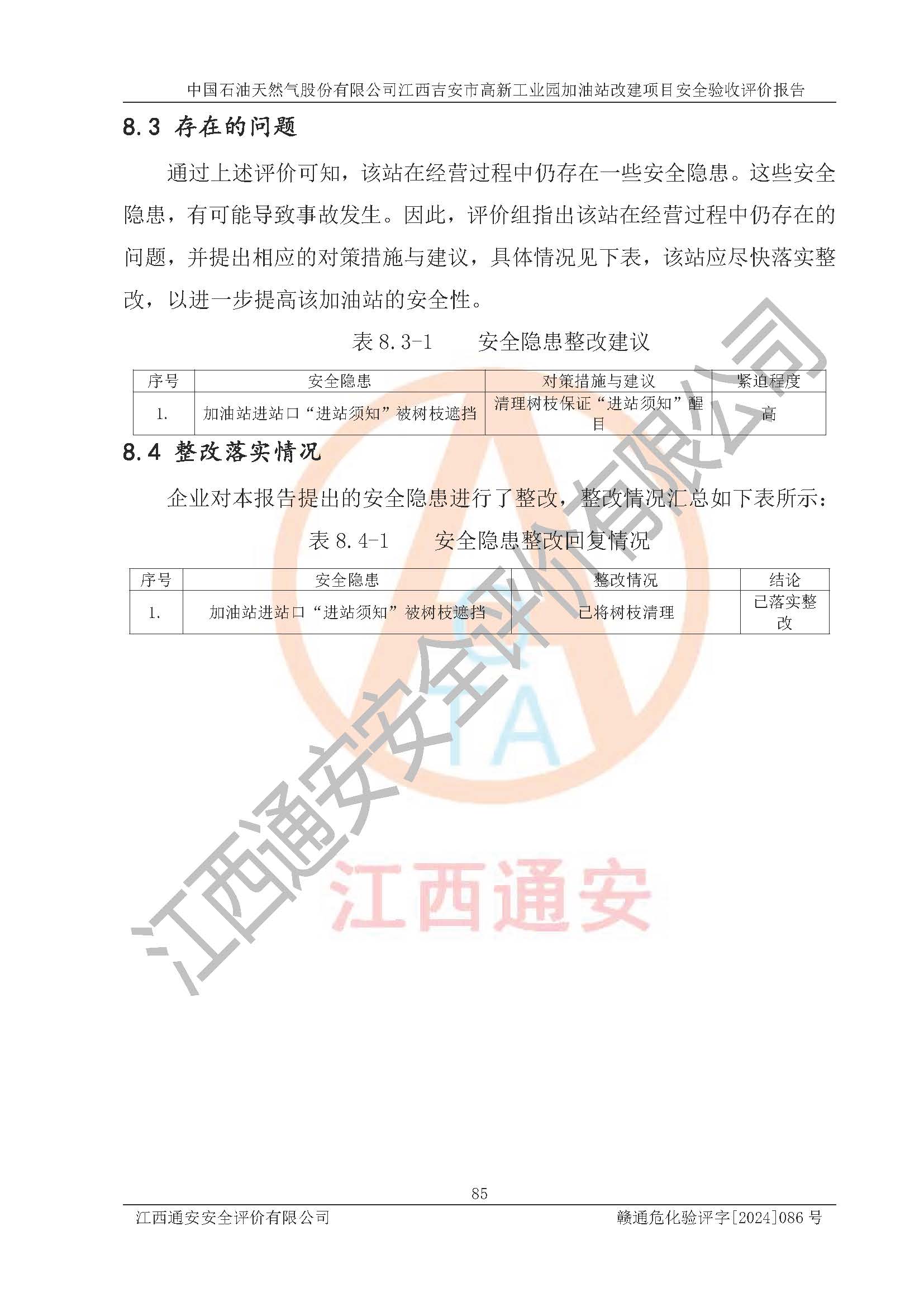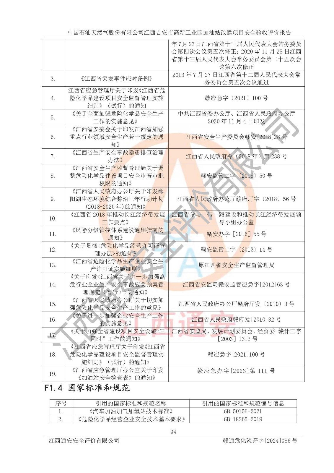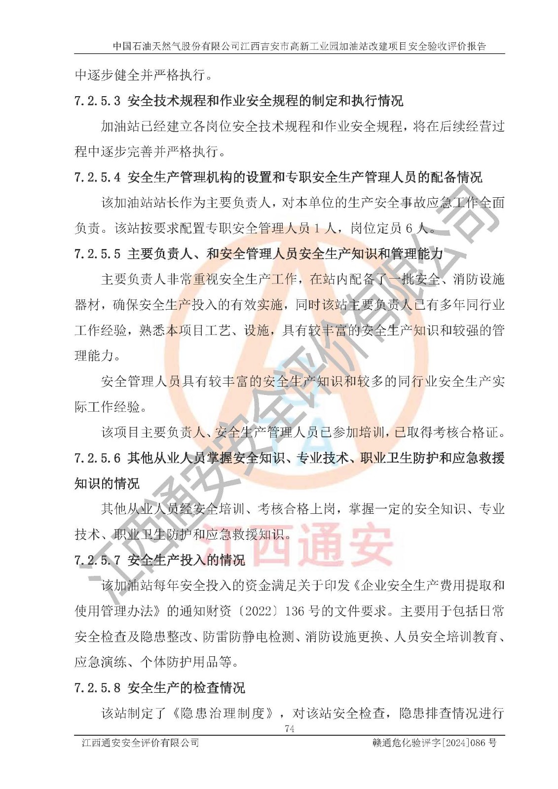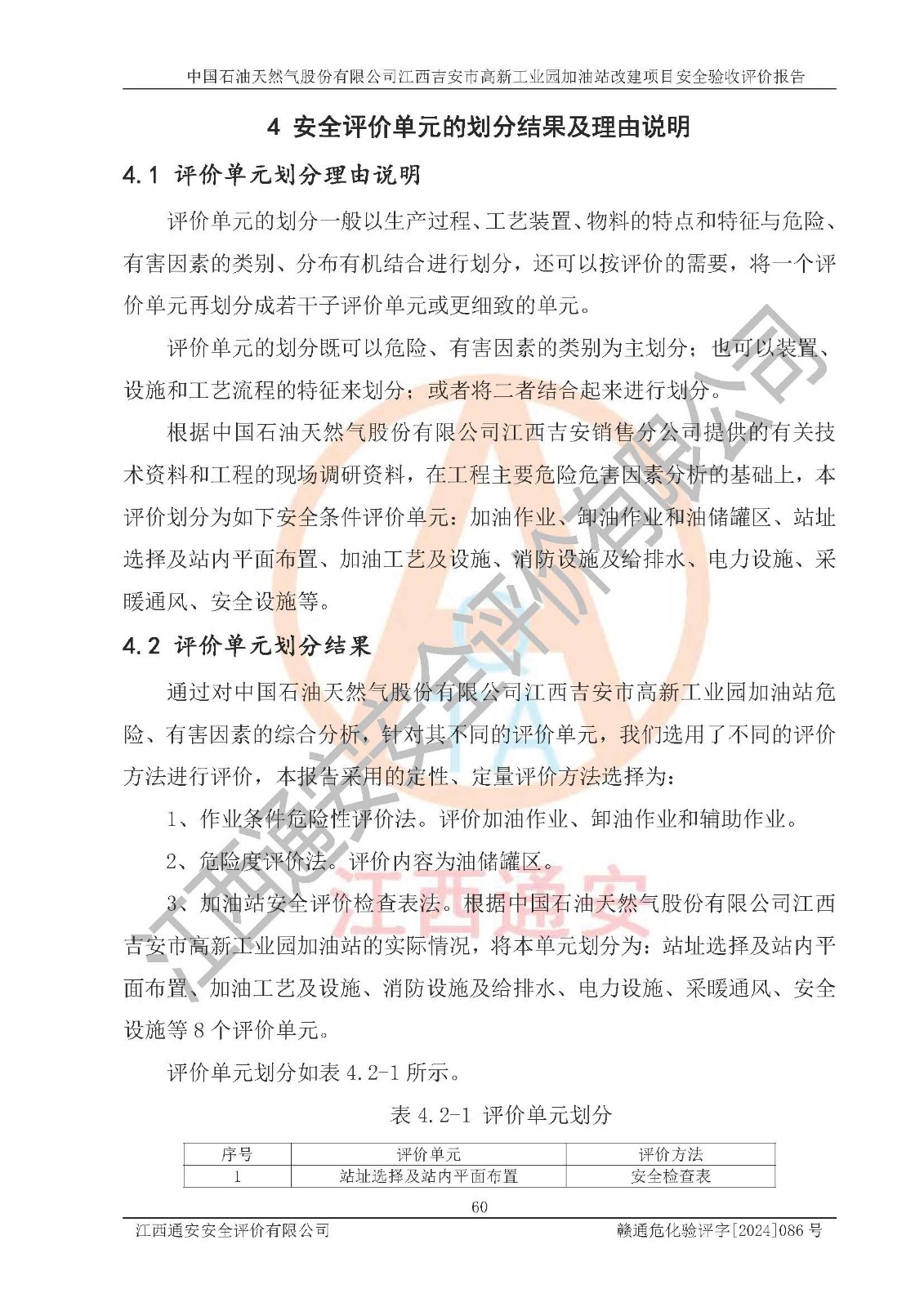 項目名稱 | 中國石油天然氣股份有限公司江西吉安市高新工業(yè)園加油站改建項目 安全驗收評價報告 | ||||