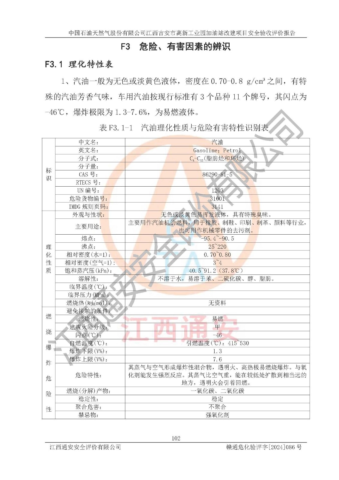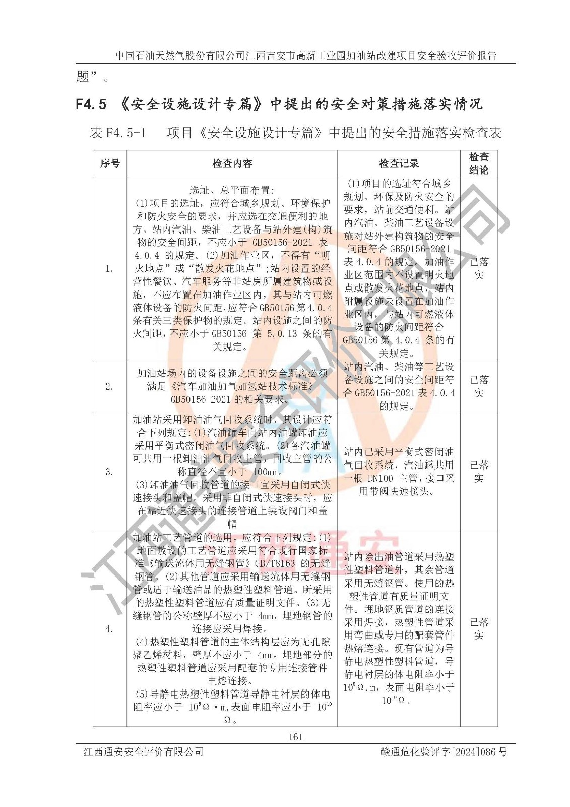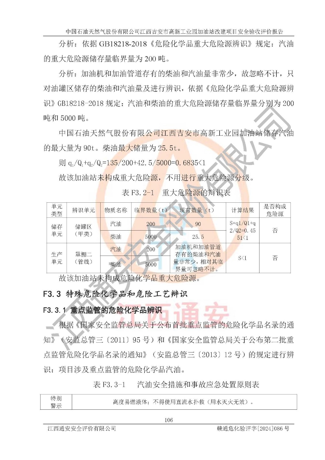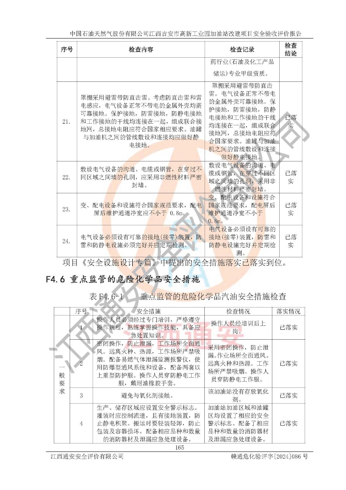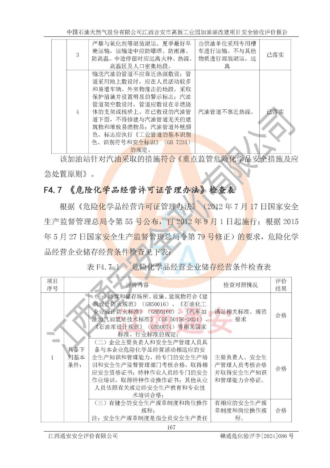 項目名稱 | 中國石油天然氣股份有限公司江西吉安市高新工業(yè)園加油站改建項目 安全驗收評價報告 | ||||