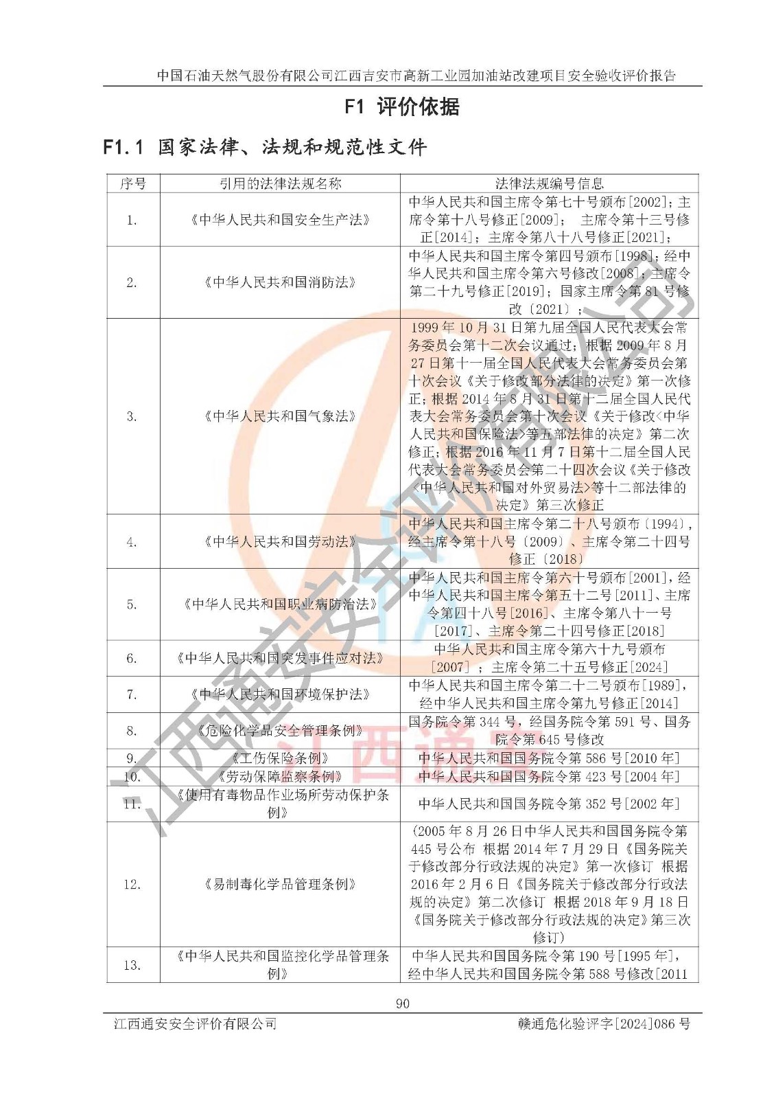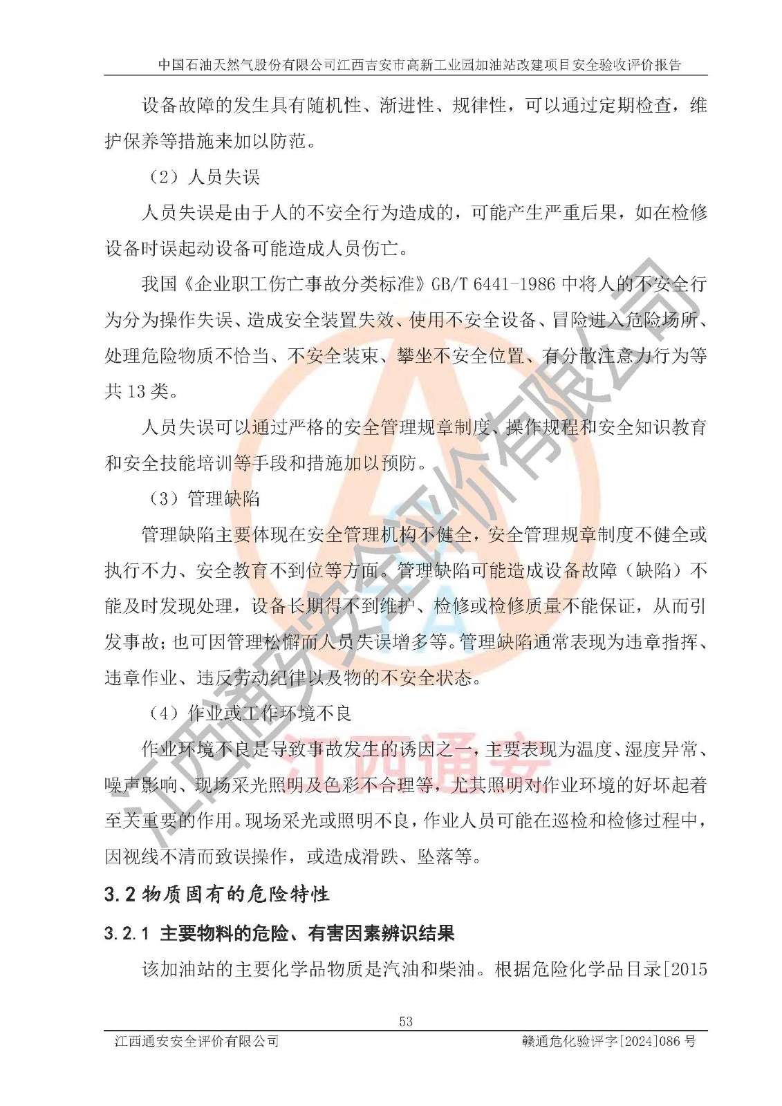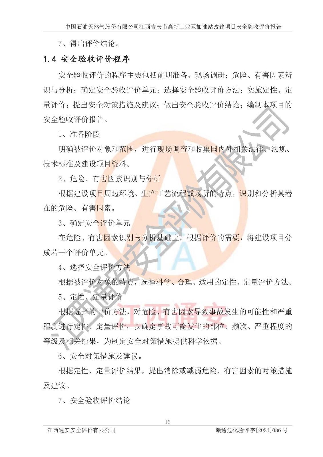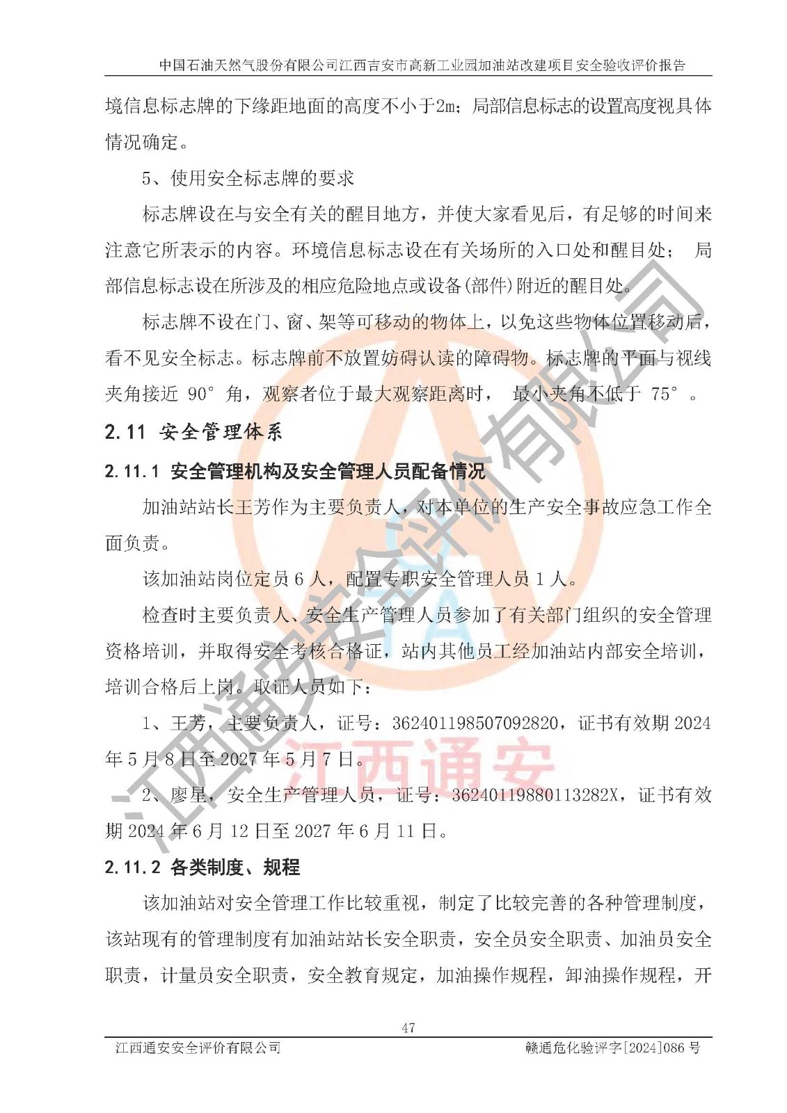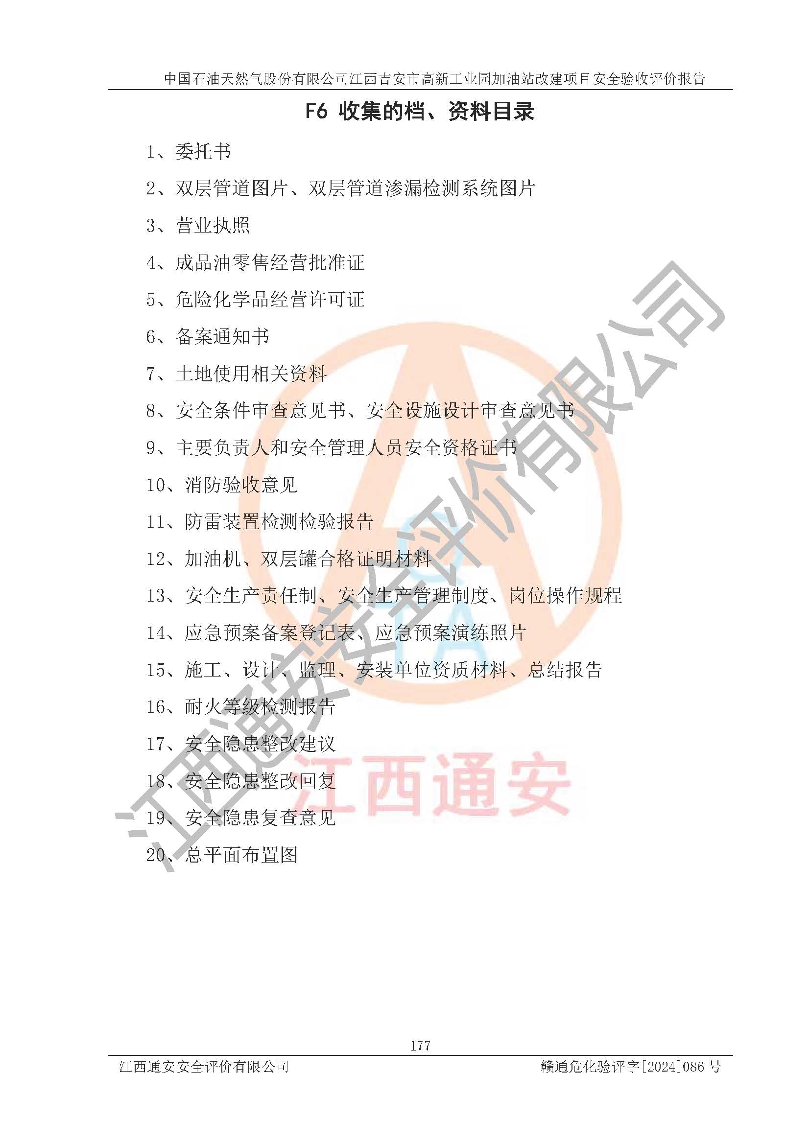 項目名稱 | 中國石油天然氣股份有限公司江西吉安市高新工業(yè)園加油站改建項目 安全驗收評價報告 | ||||