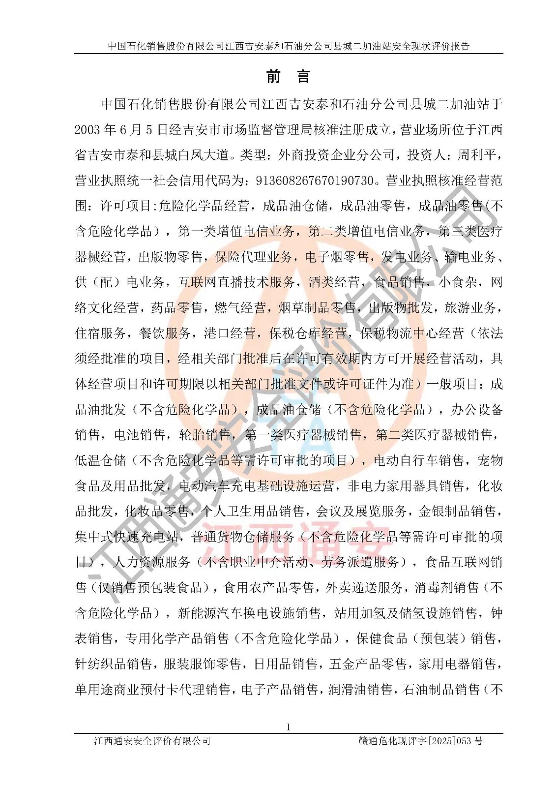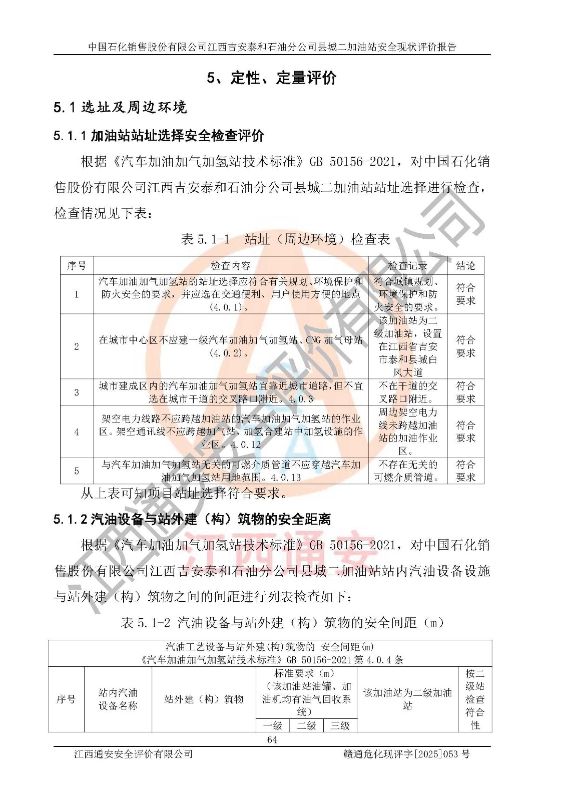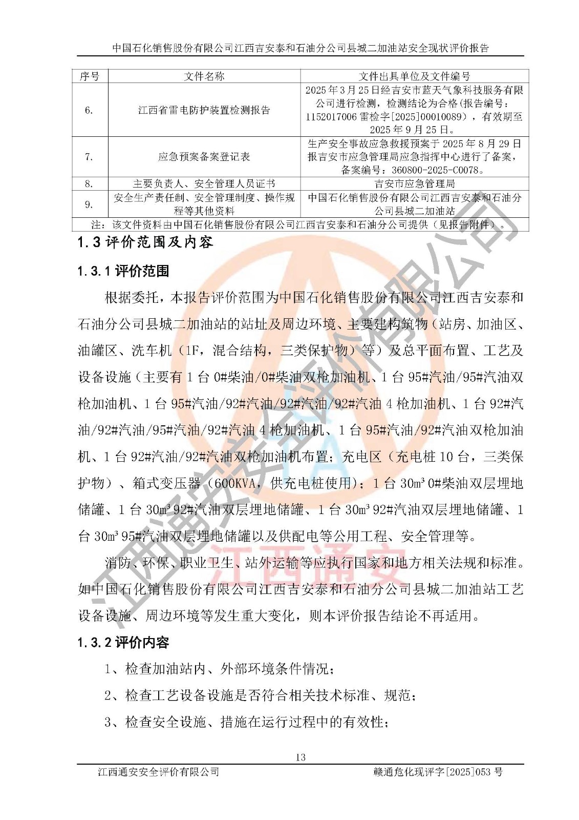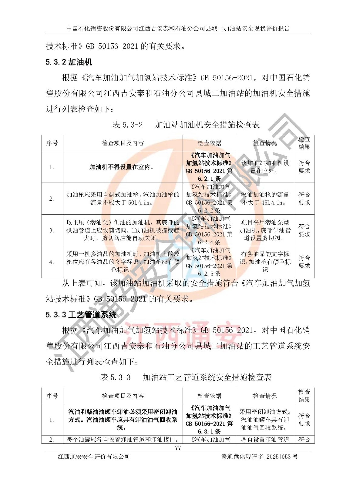 項(xiàng)目名稱 | 中國(guó)石化銷售股份有限公司江西吉安泰和石油分公司縣城二加油站 安全現(xiàn)狀評(píng)價(jià)報(bào)告 | ||||