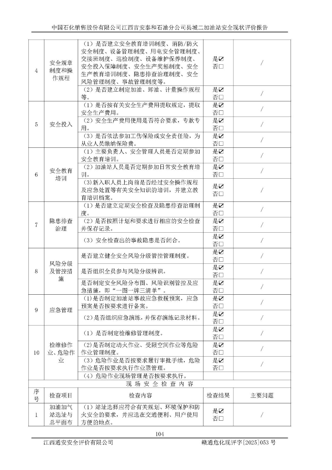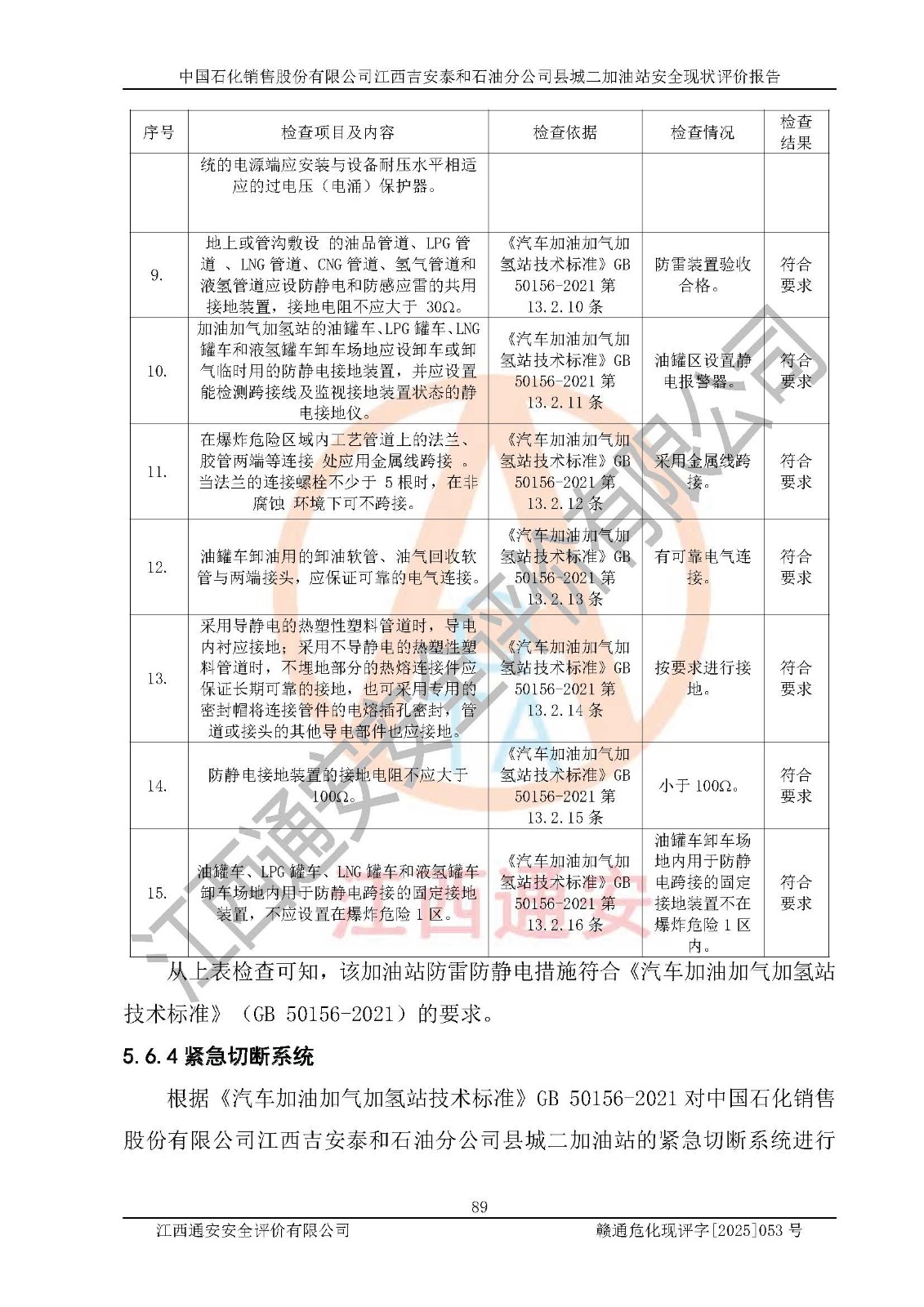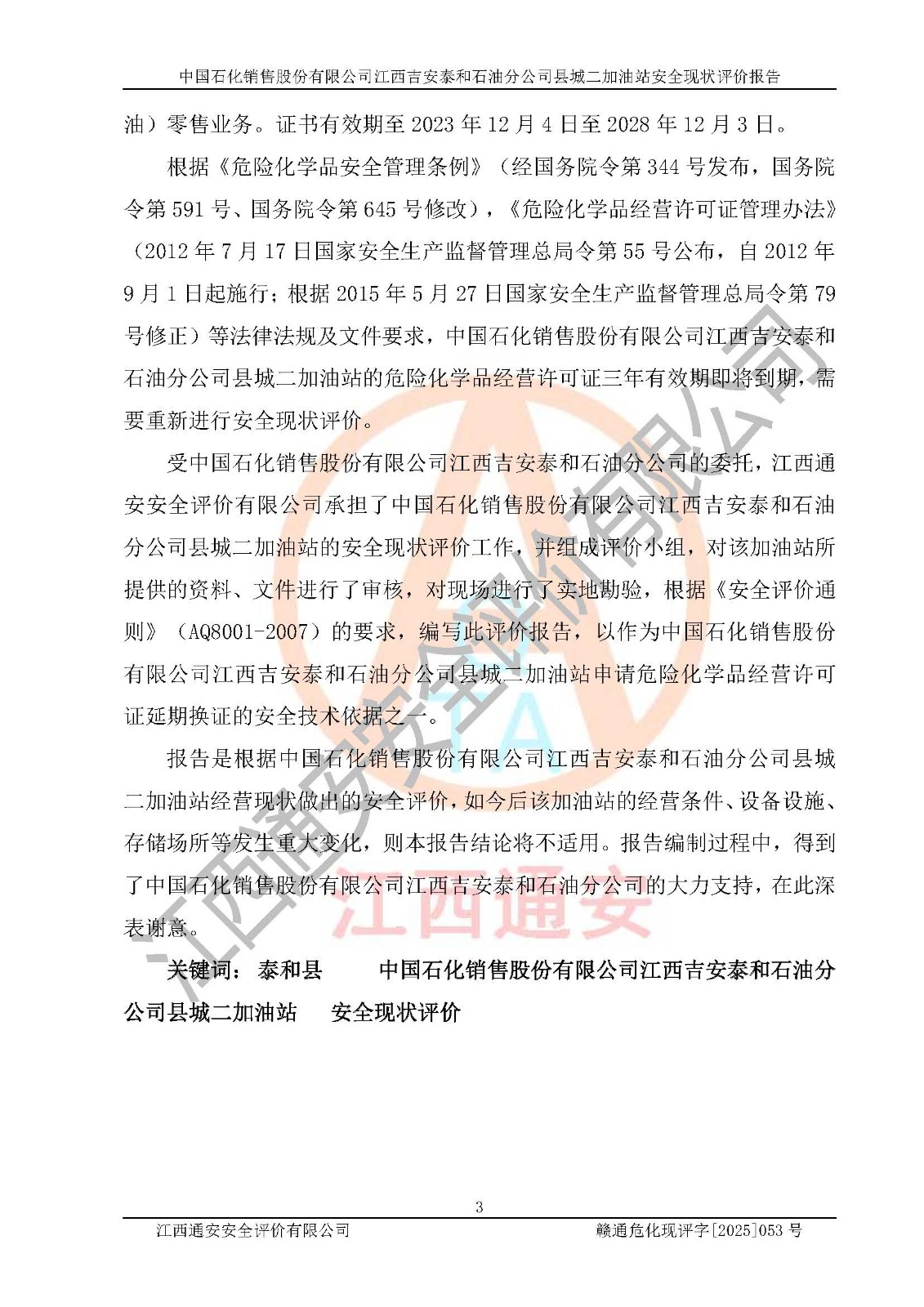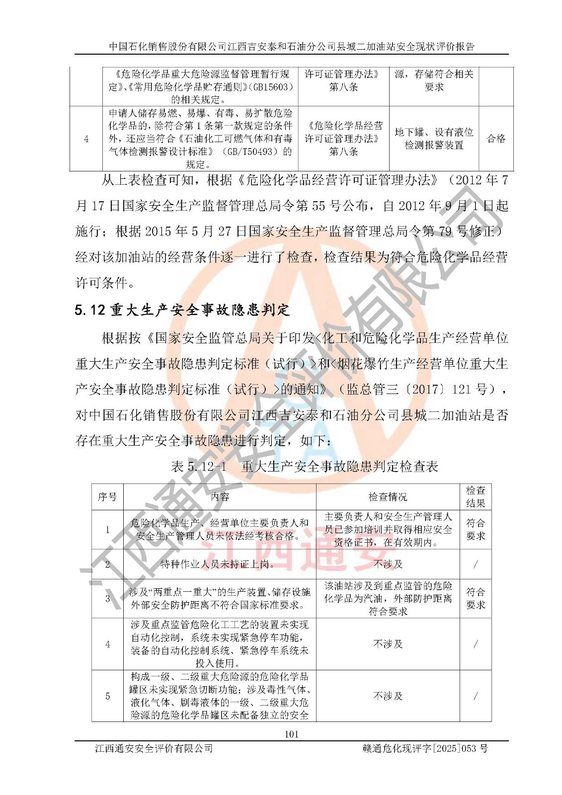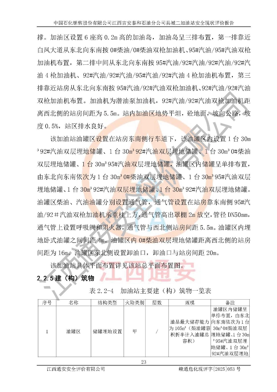 項(xiàng)目名稱 | 中國(guó)石化銷售股份有限公司江西吉安泰和石油分公司縣城二加油站 安全現(xiàn)狀評(píng)價(jià)報(bào)告 | ||||