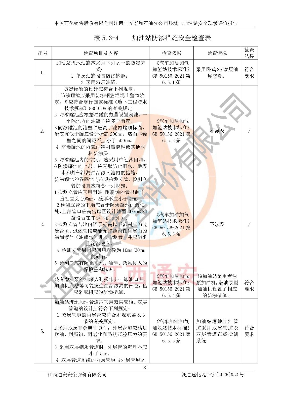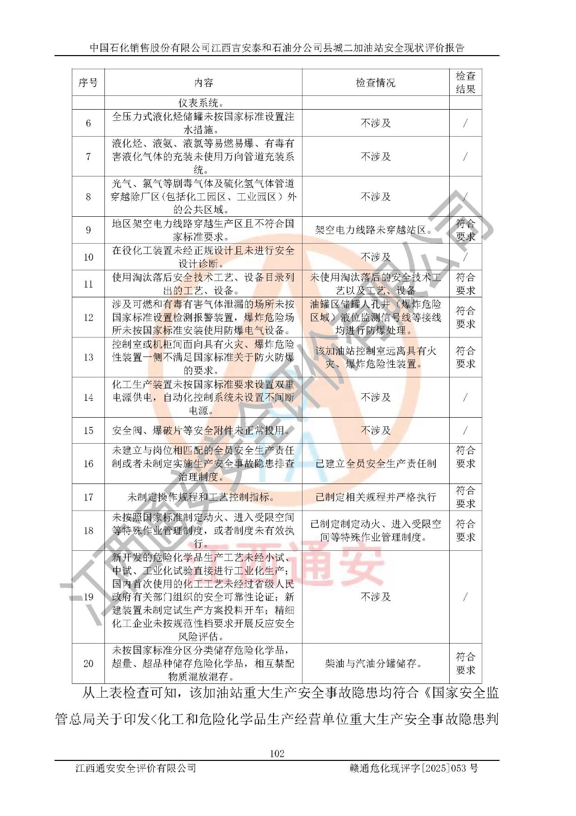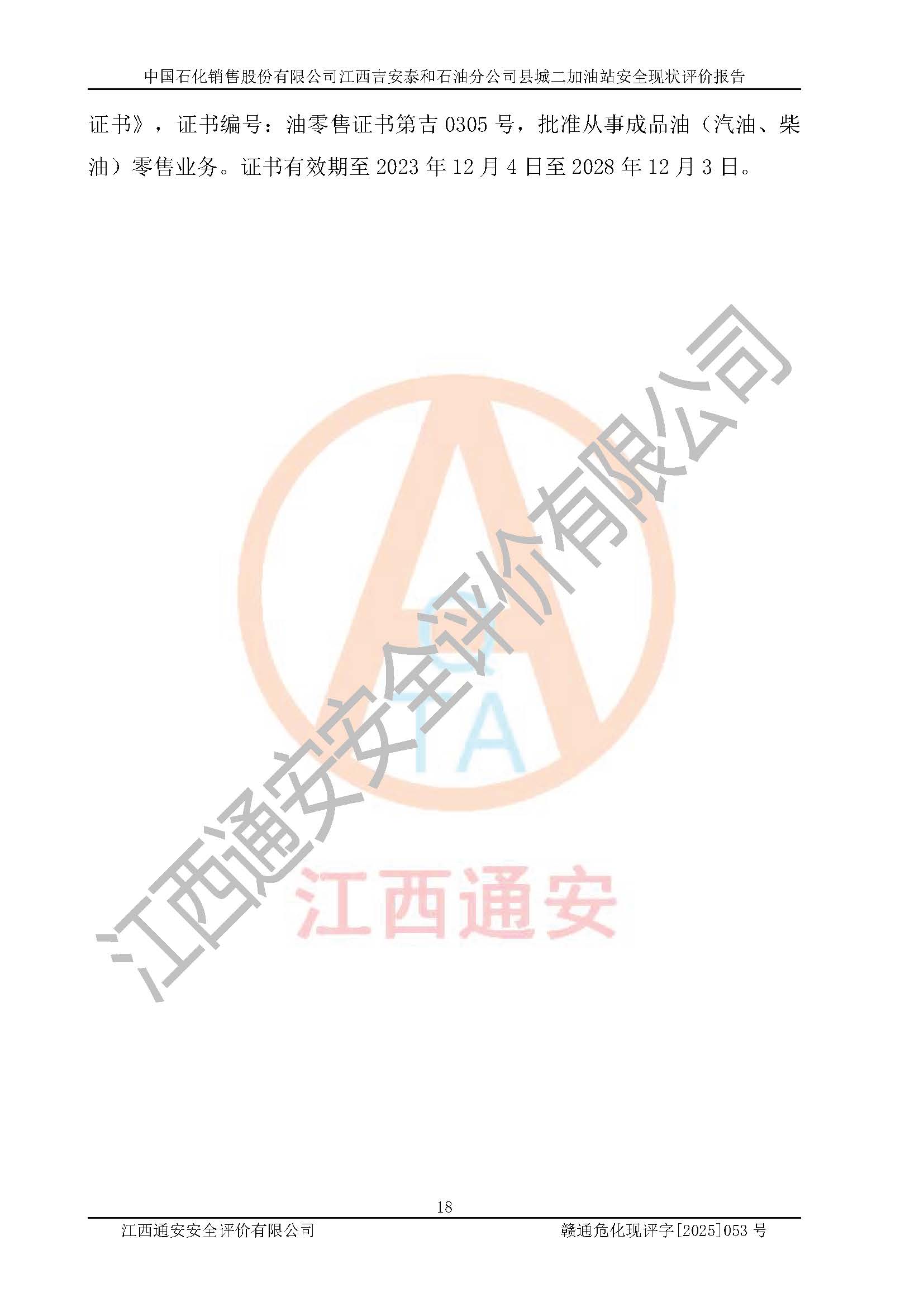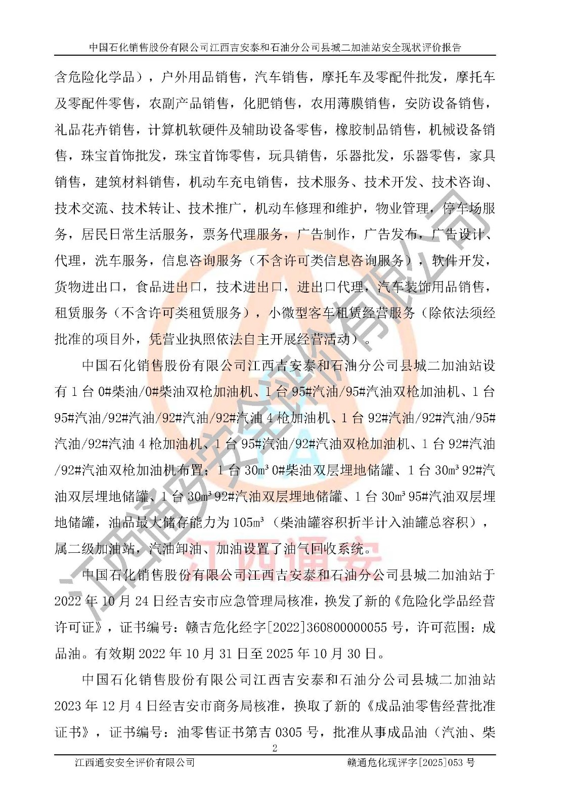 項(xiàng)目名稱 | 中國(guó)石化銷售股份有限公司江西吉安泰和石油分公司縣城二加油站 安全現(xiàn)狀評(píng)價(jià)報(bào)告 | ||||