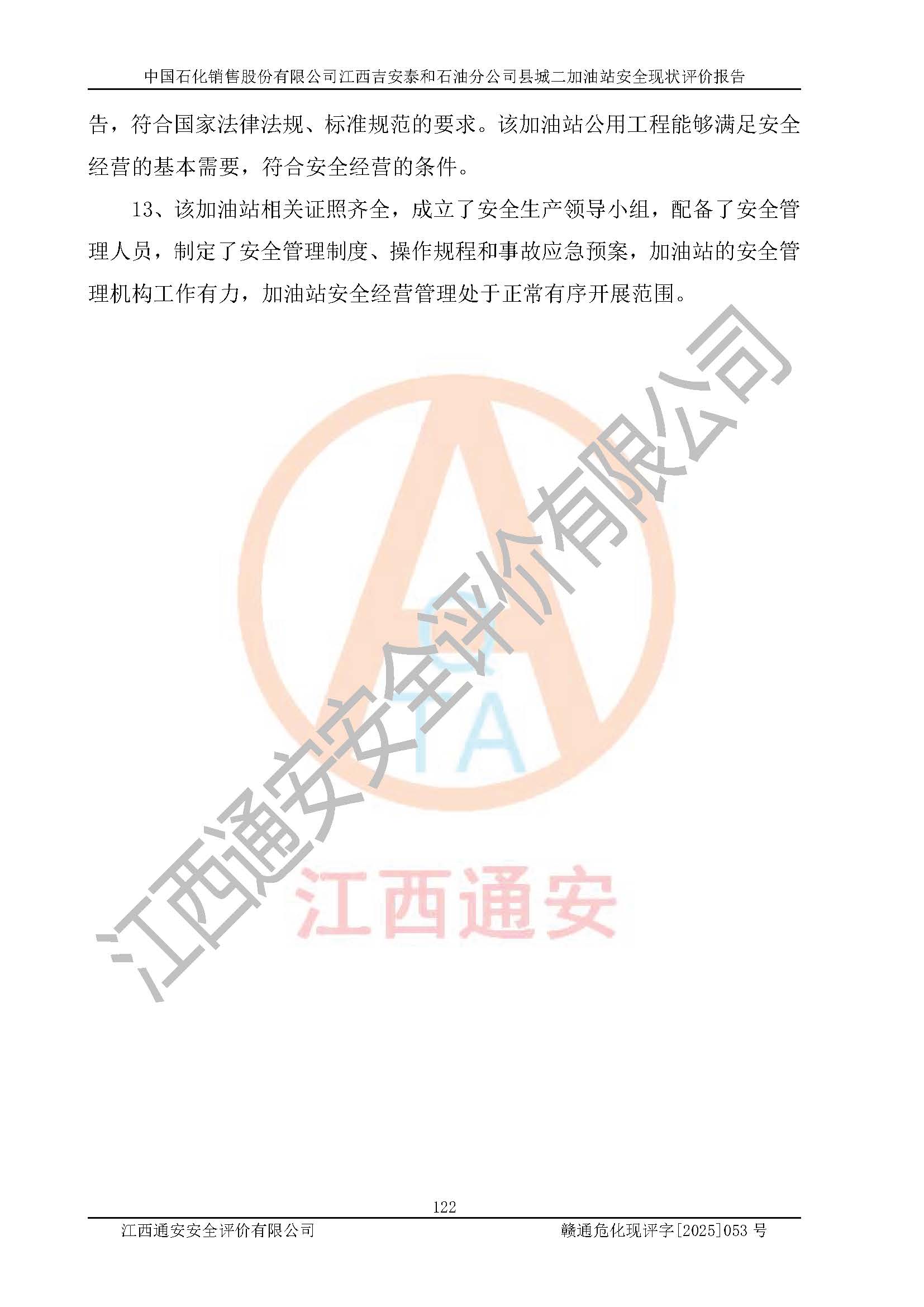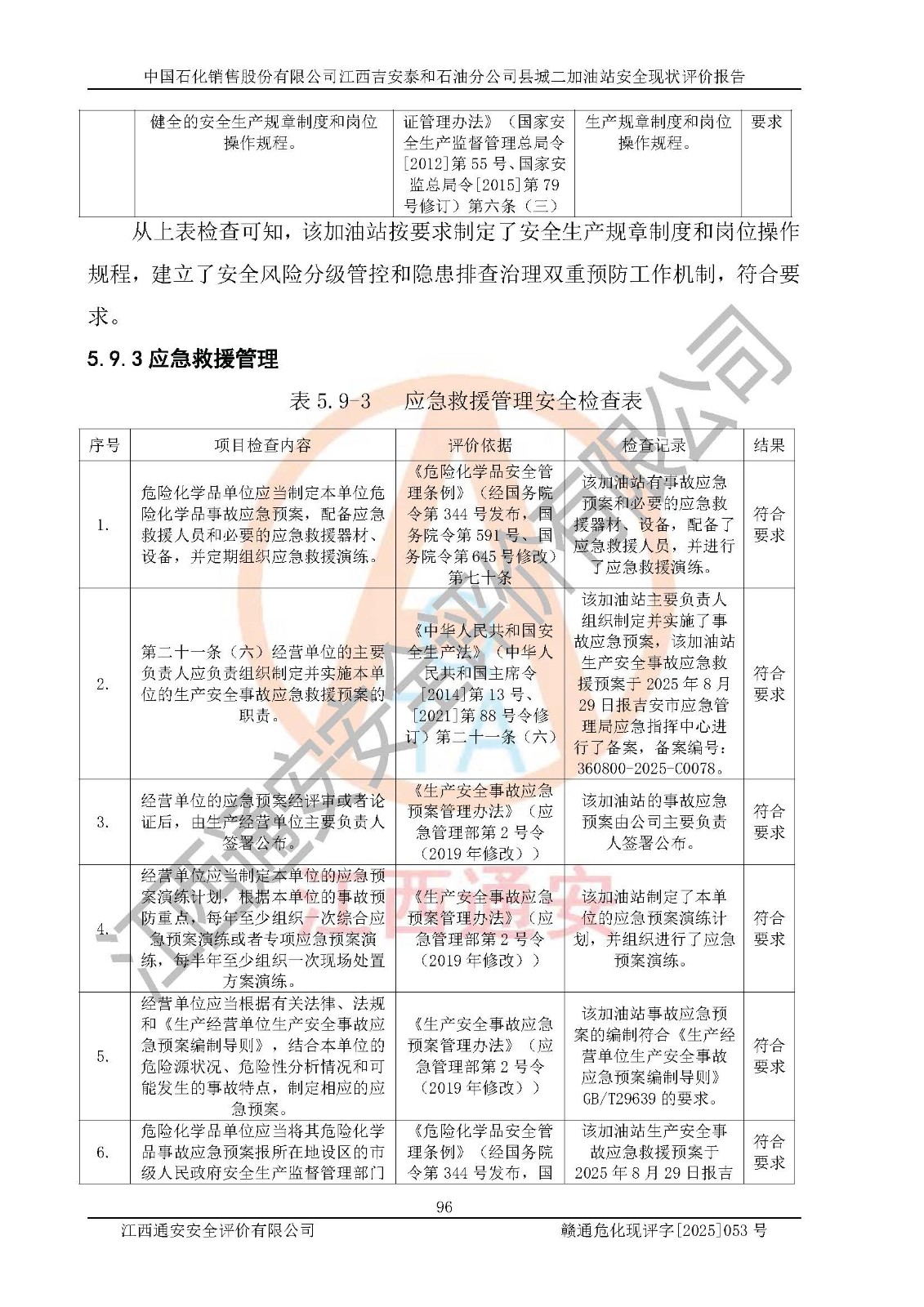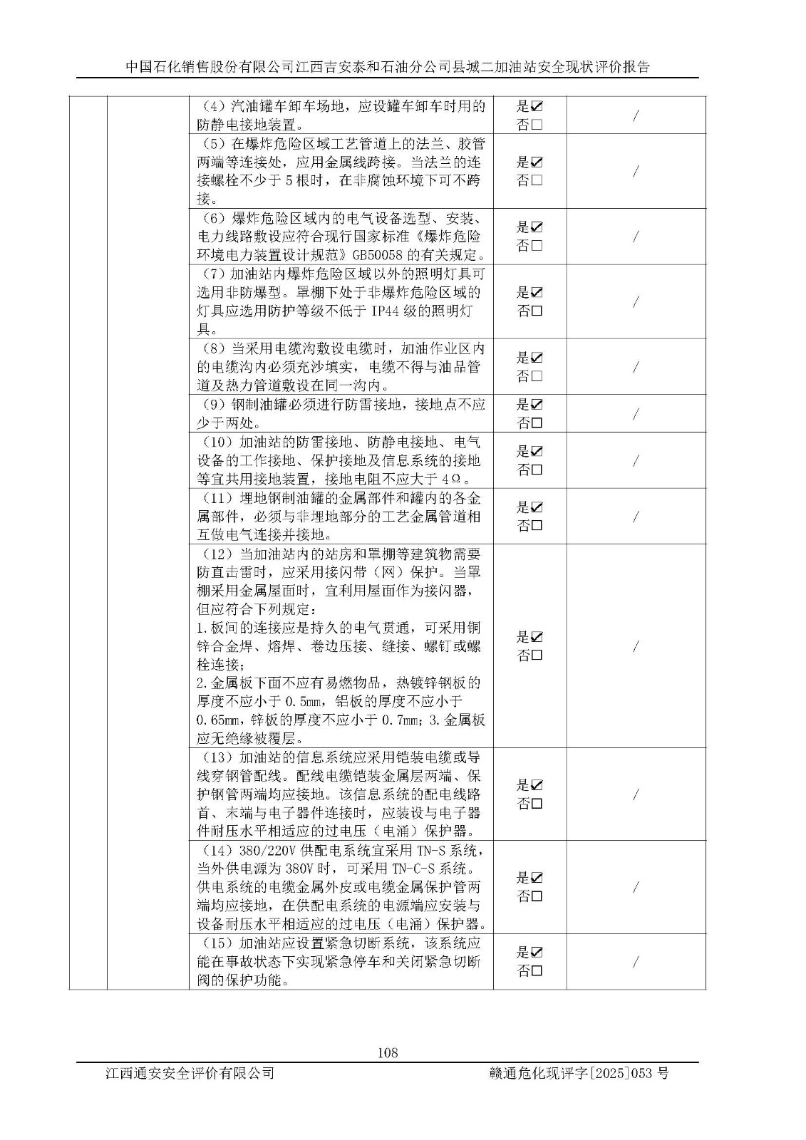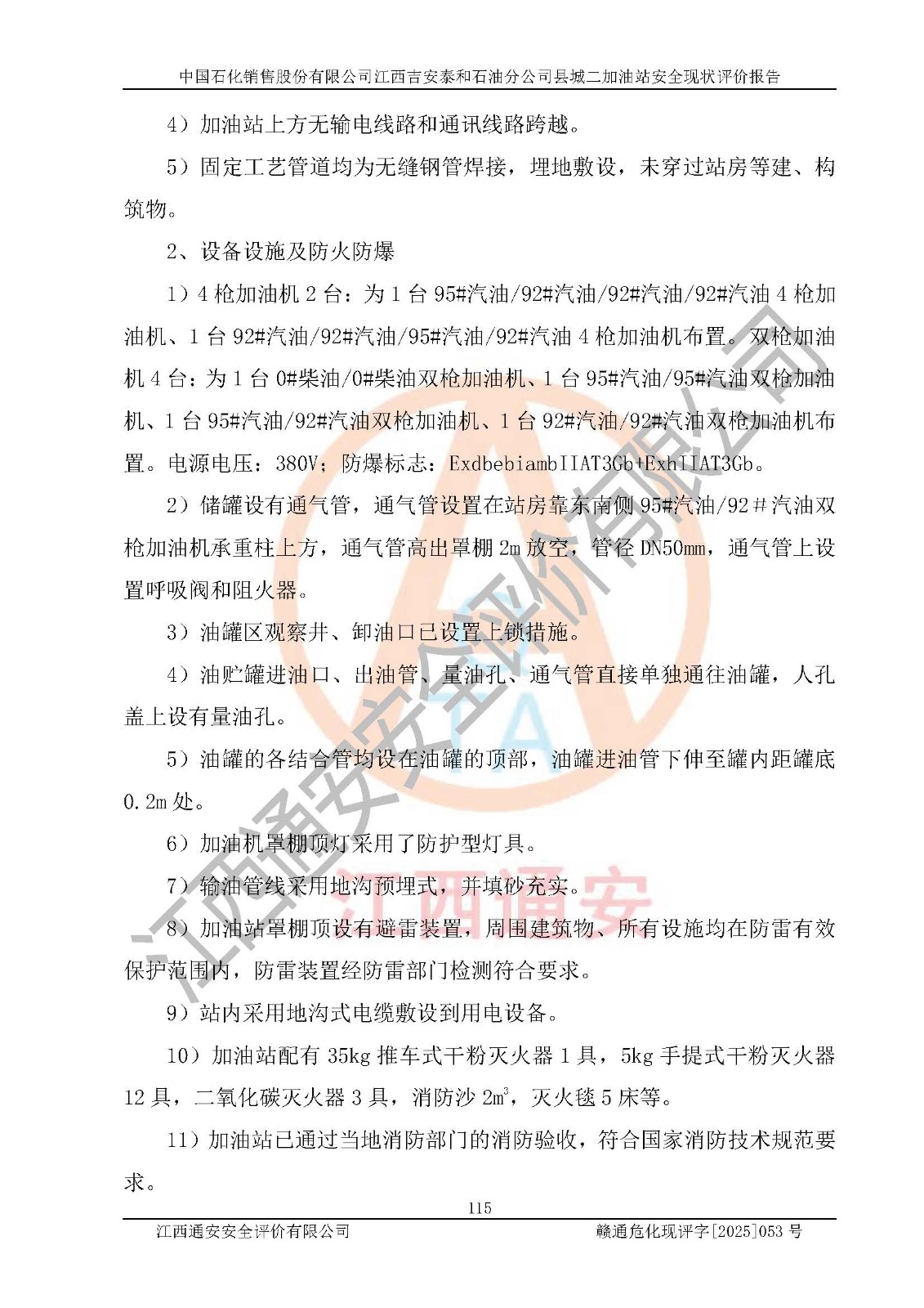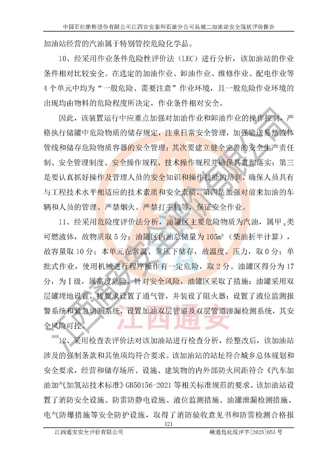 項(xiàng)目名稱 | 中國(guó)石化銷售股份有限公司江西吉安泰和石油分公司縣城二加油站 安全現(xiàn)狀評(píng)價(jià)報(bào)告 | ||||