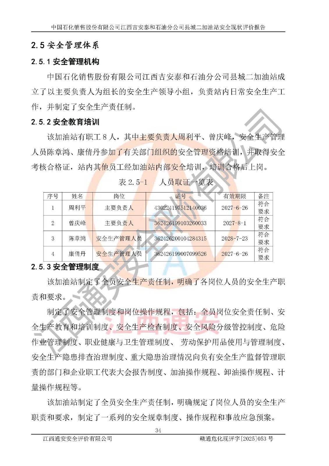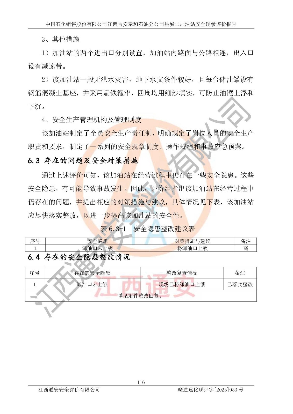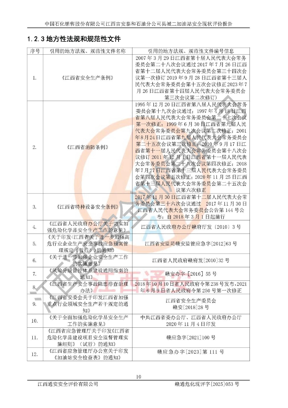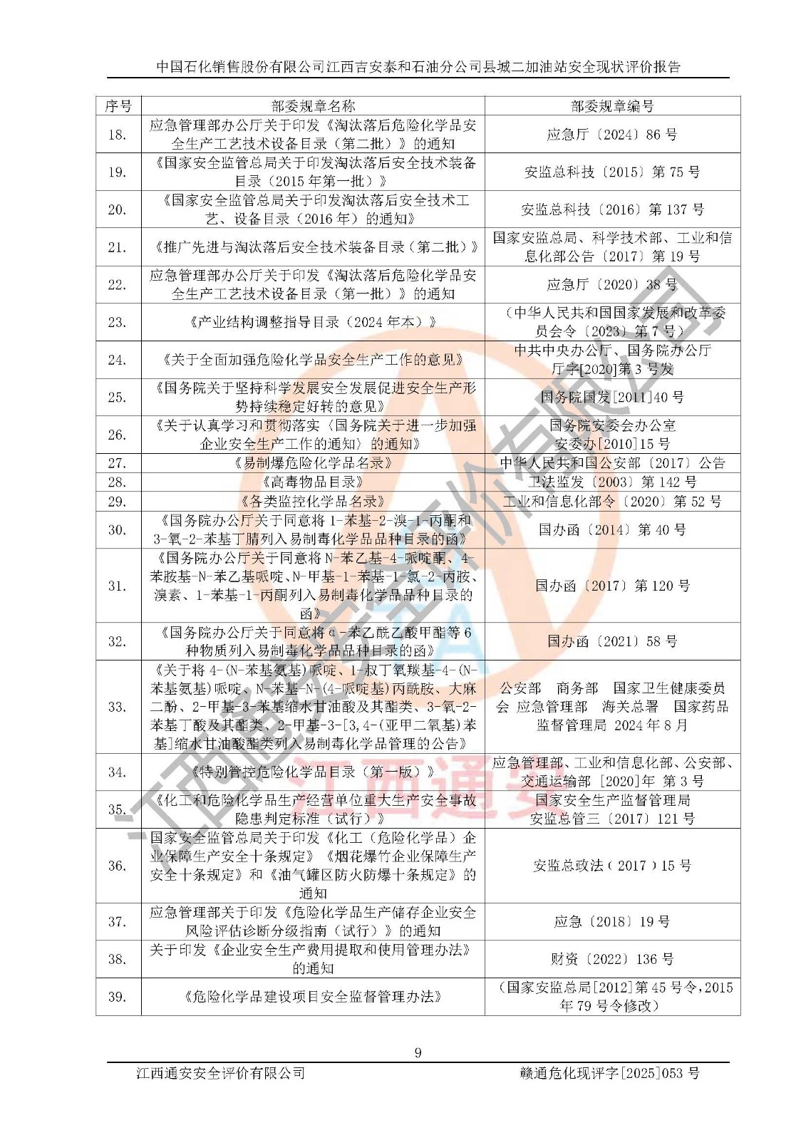 項(xiàng)目名稱 | 中國(guó)石化銷售股份有限公司江西吉安泰和石油分公司縣城二加油站 安全現(xiàn)狀評(píng)價(jià)報(bào)告 | ||||