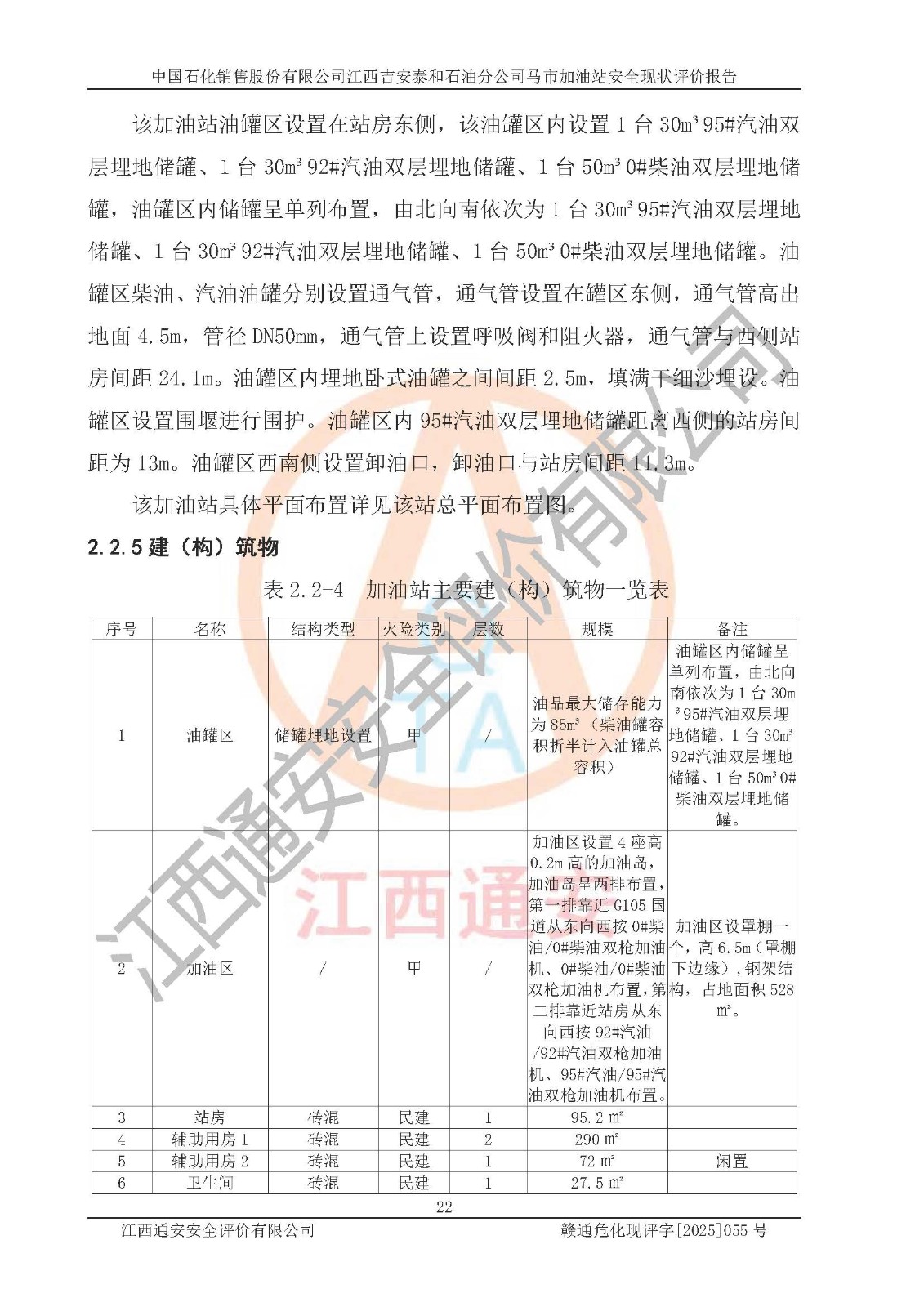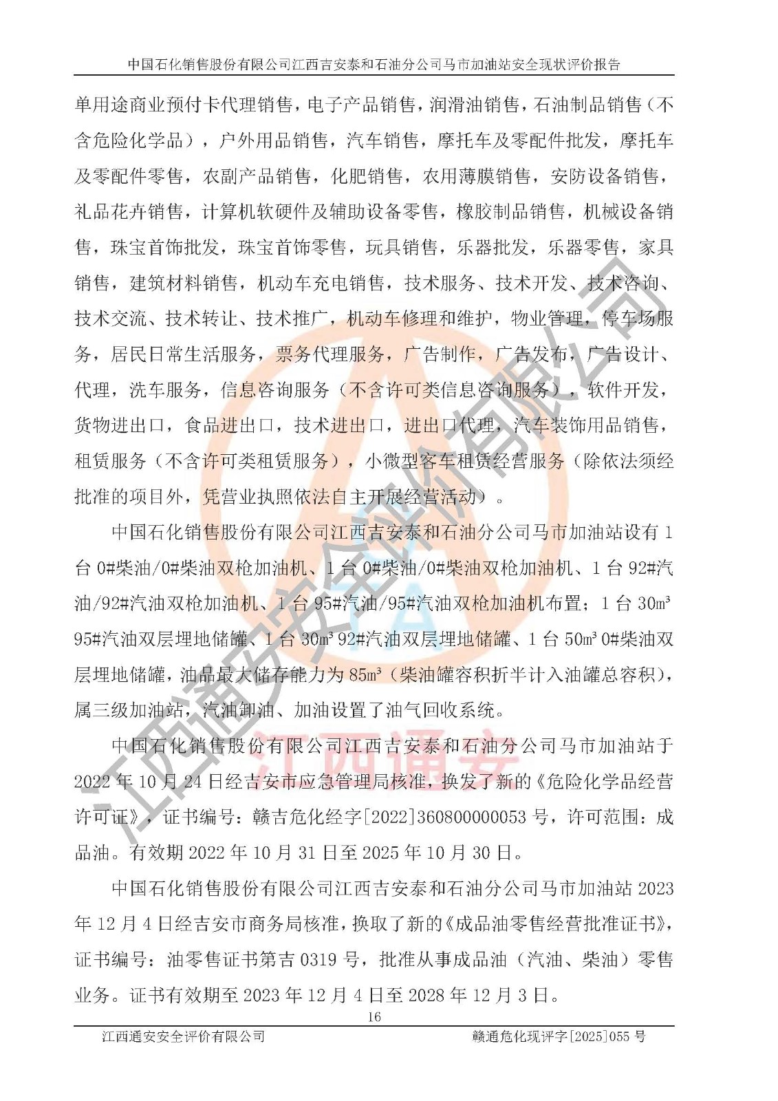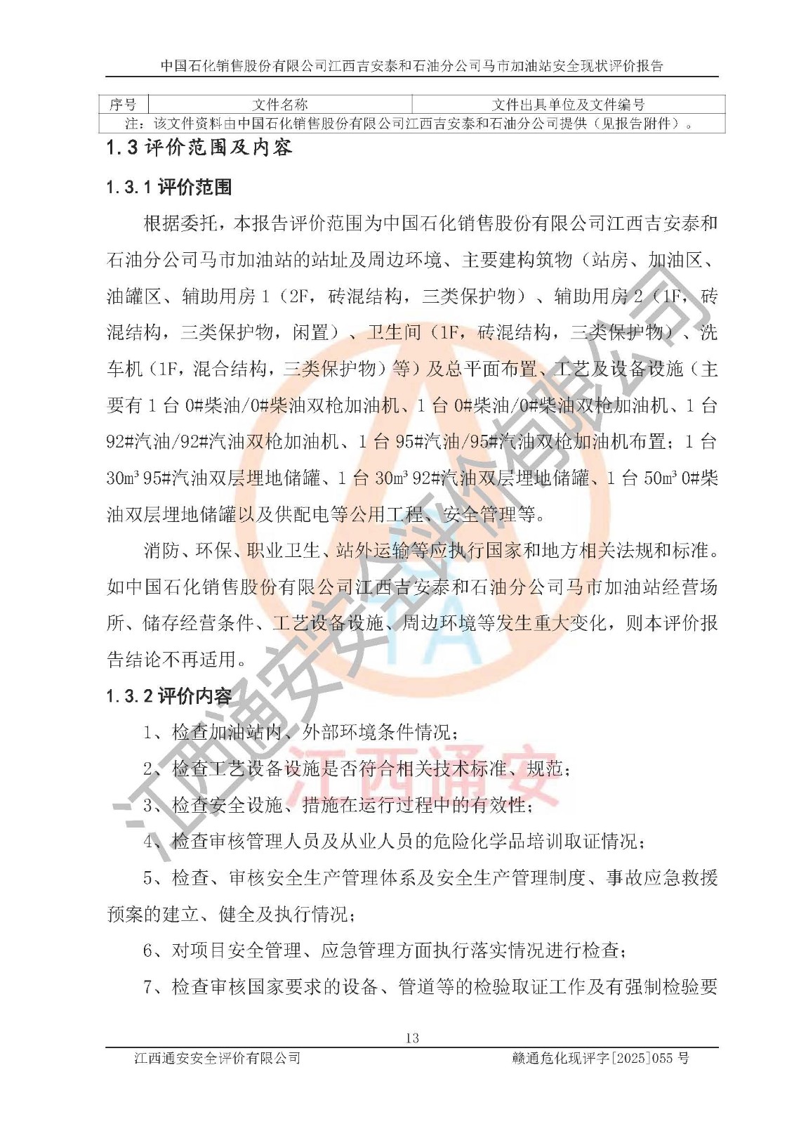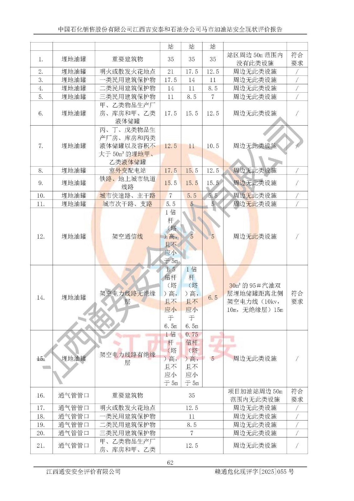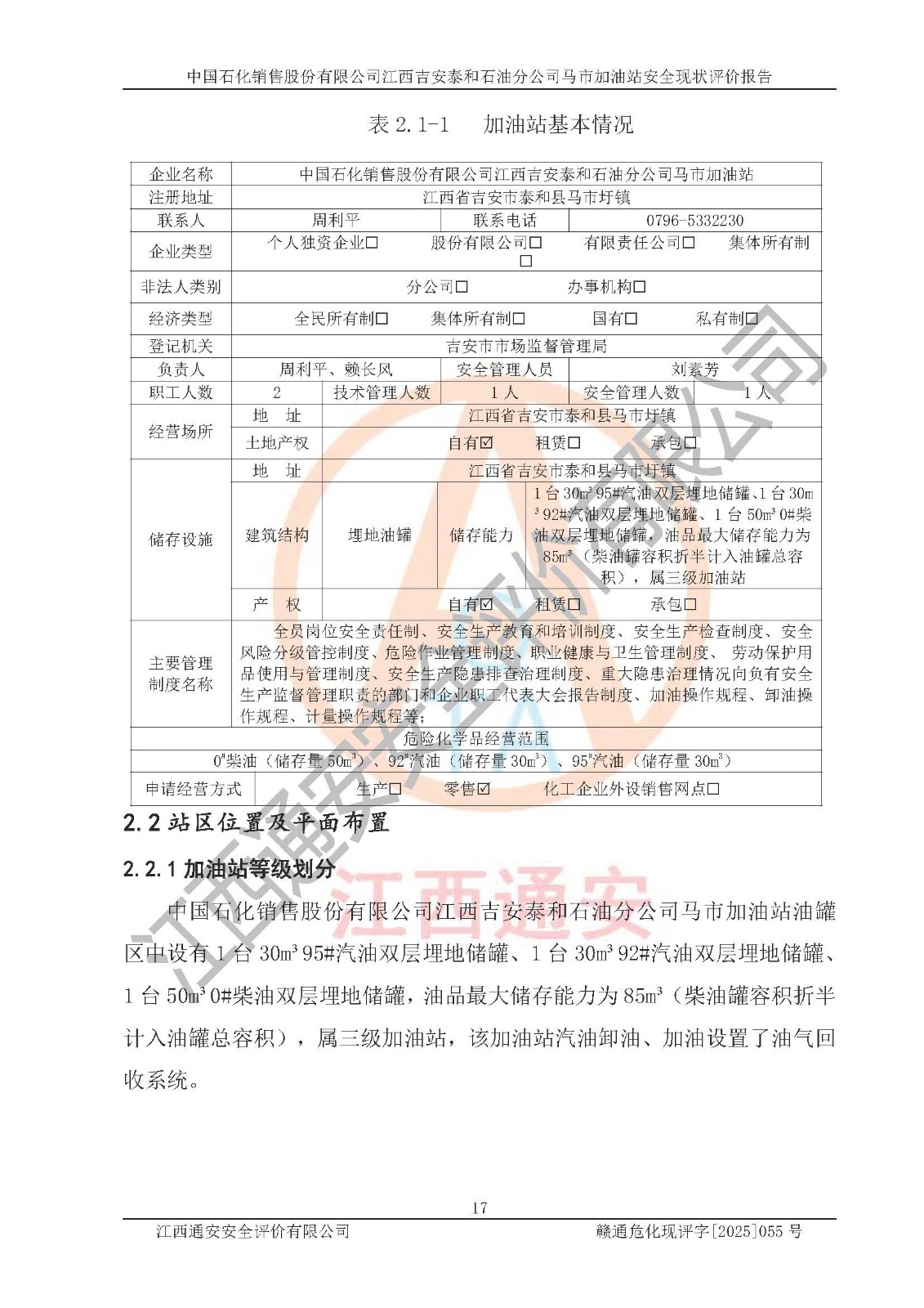 項目名稱 | 中國石化銷售股份有限公司江西吉安泰和石油分公司馬市加油站 安全現(xiàn)狀評價報告 | ||||