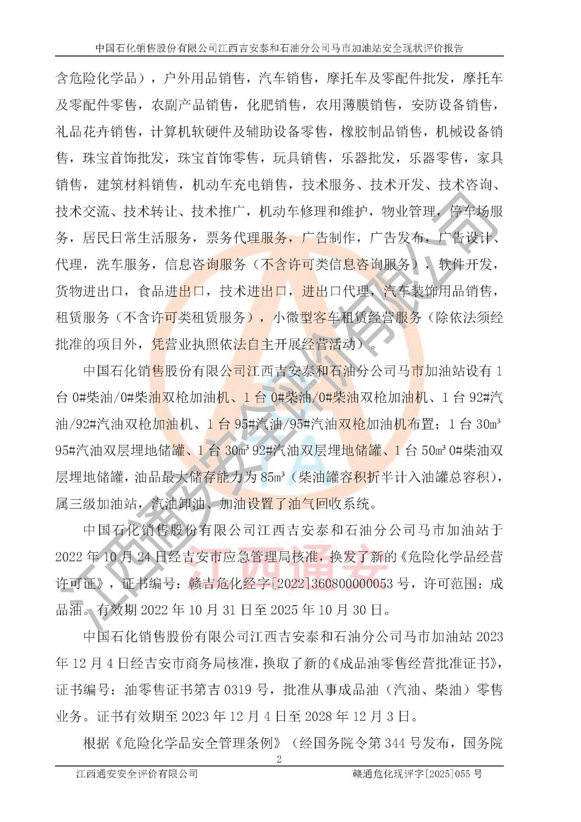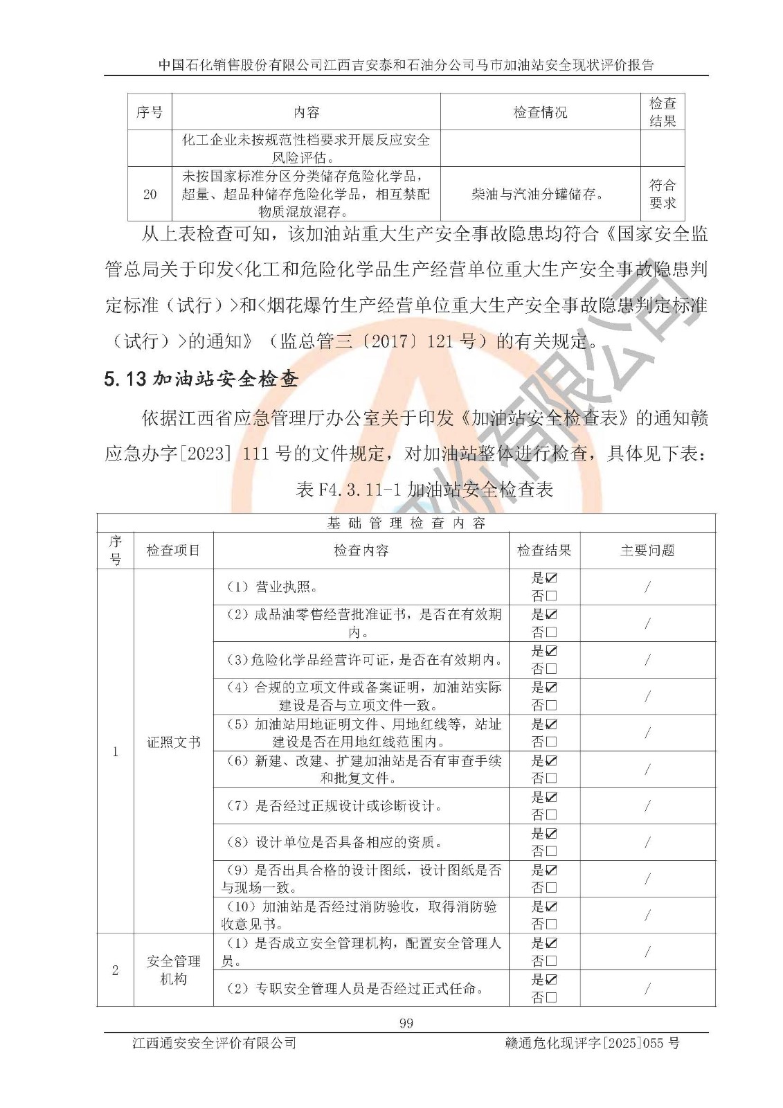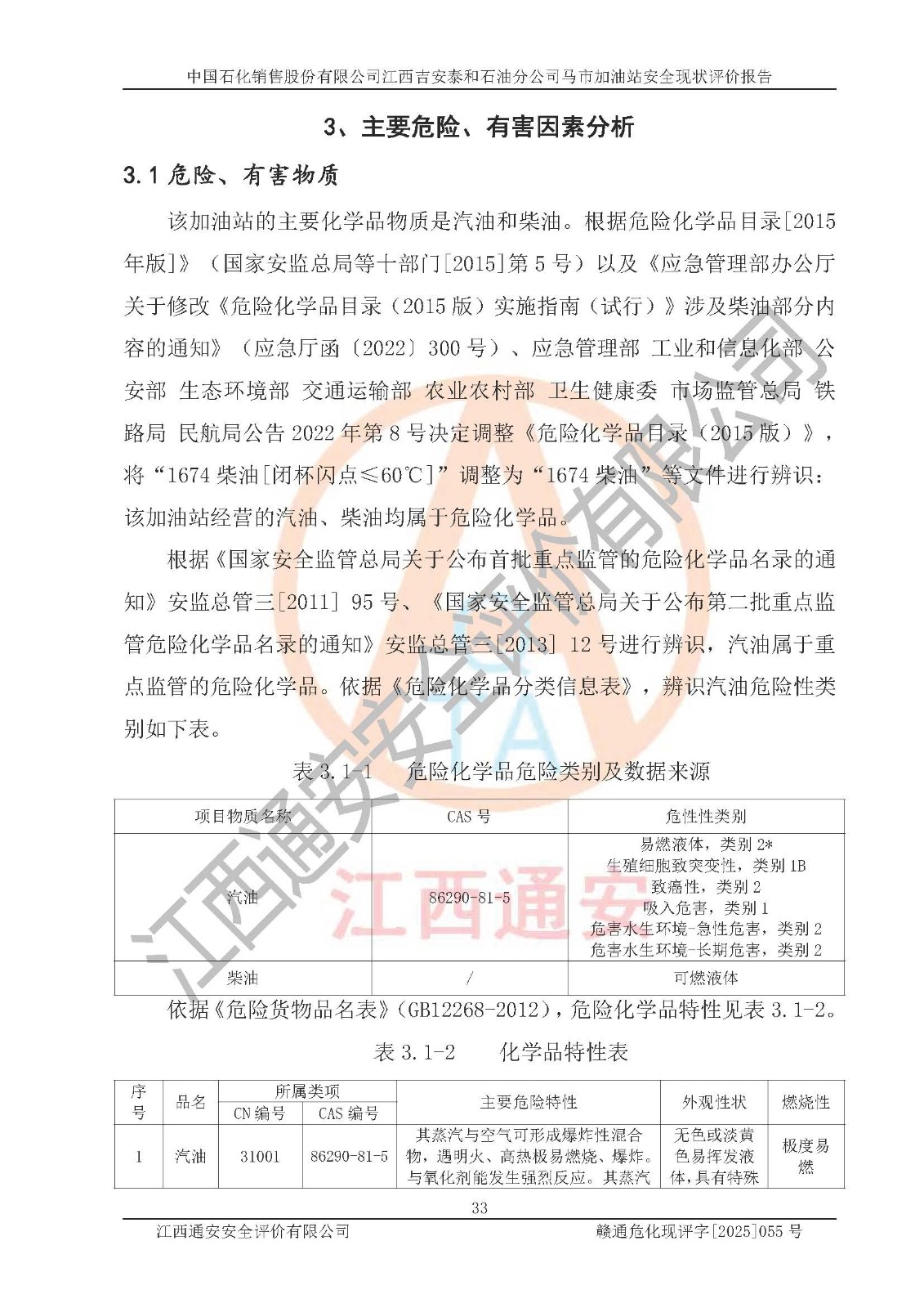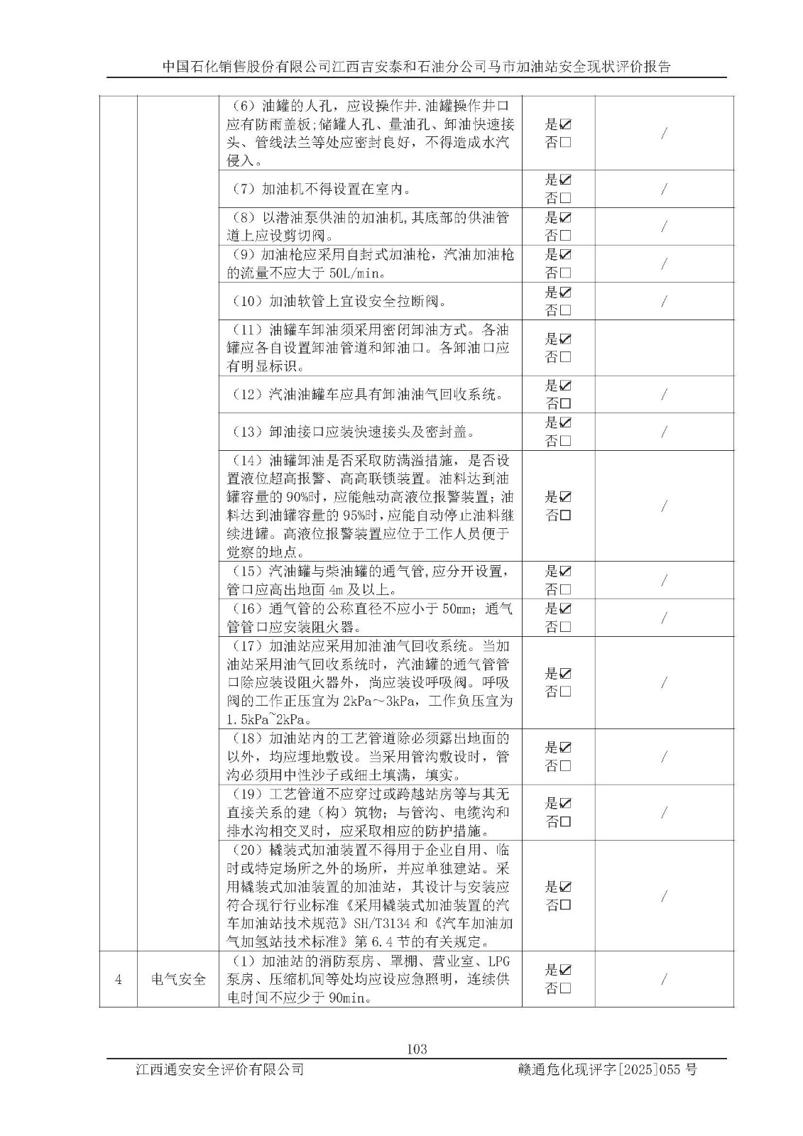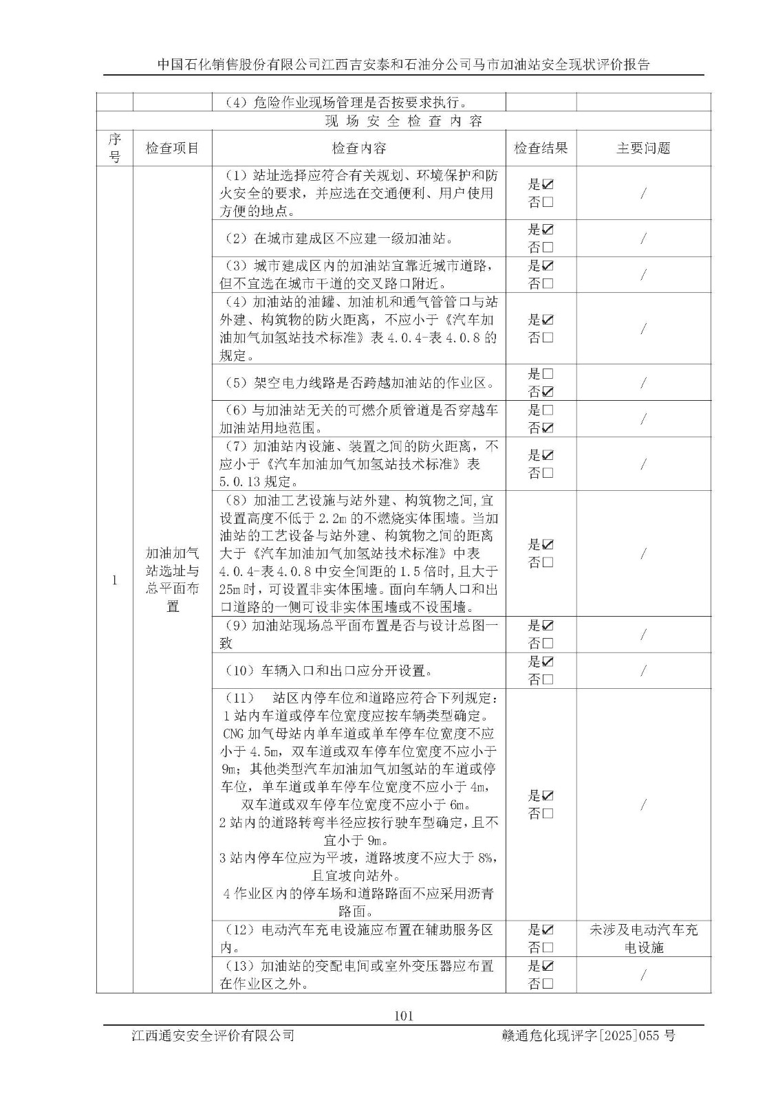 項目名稱 | 中國石化銷售股份有限公司江西吉安泰和石油分公司馬市加油站 安全現(xiàn)狀評價報告 | ||||