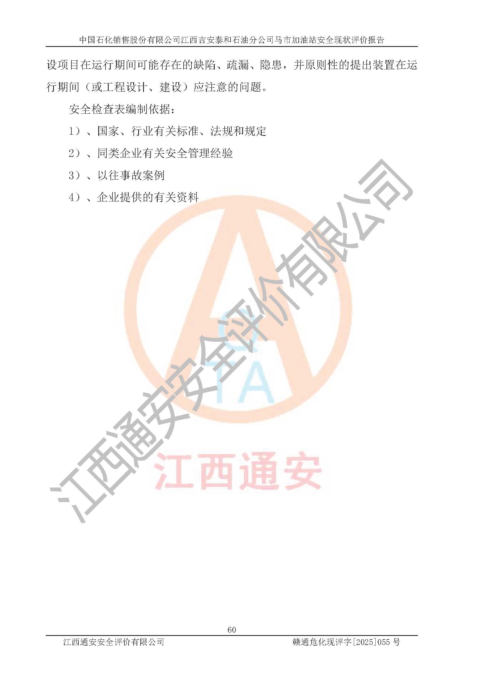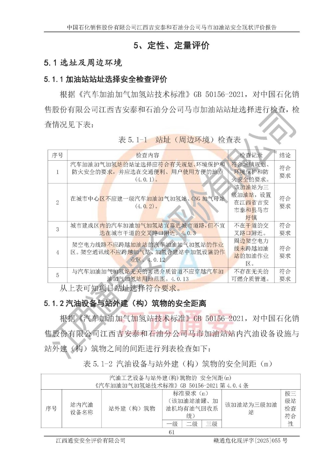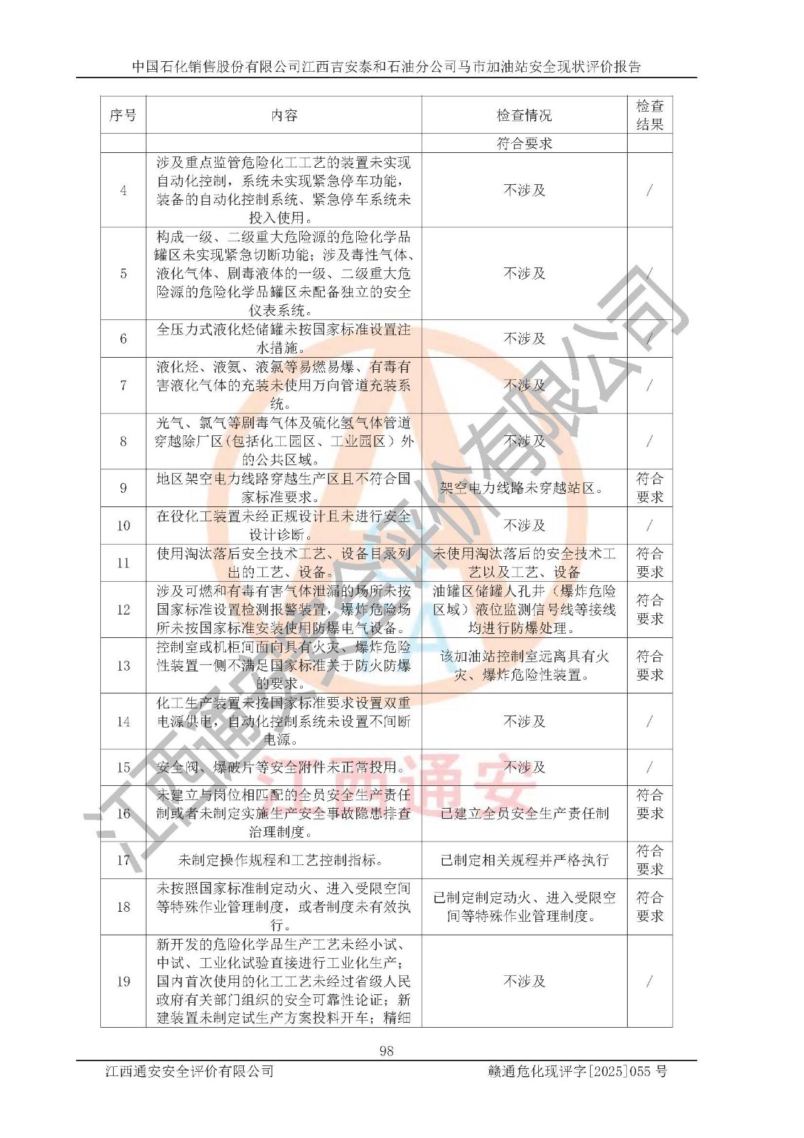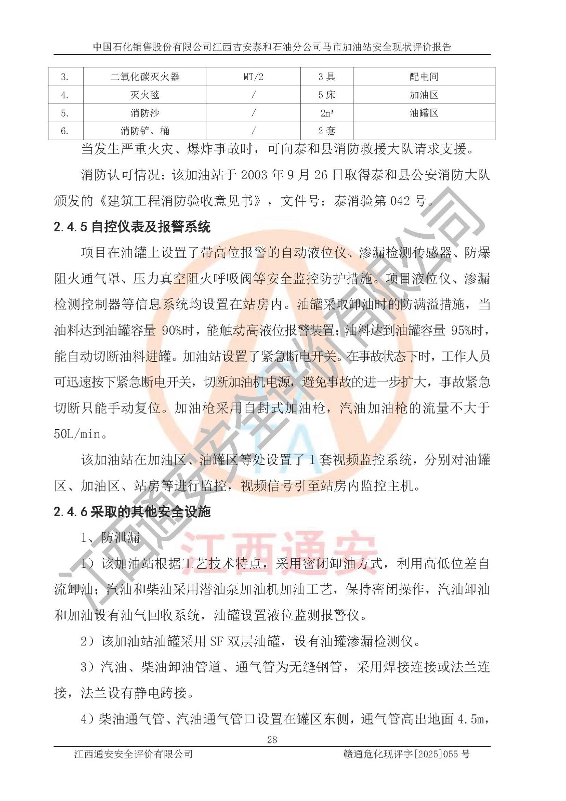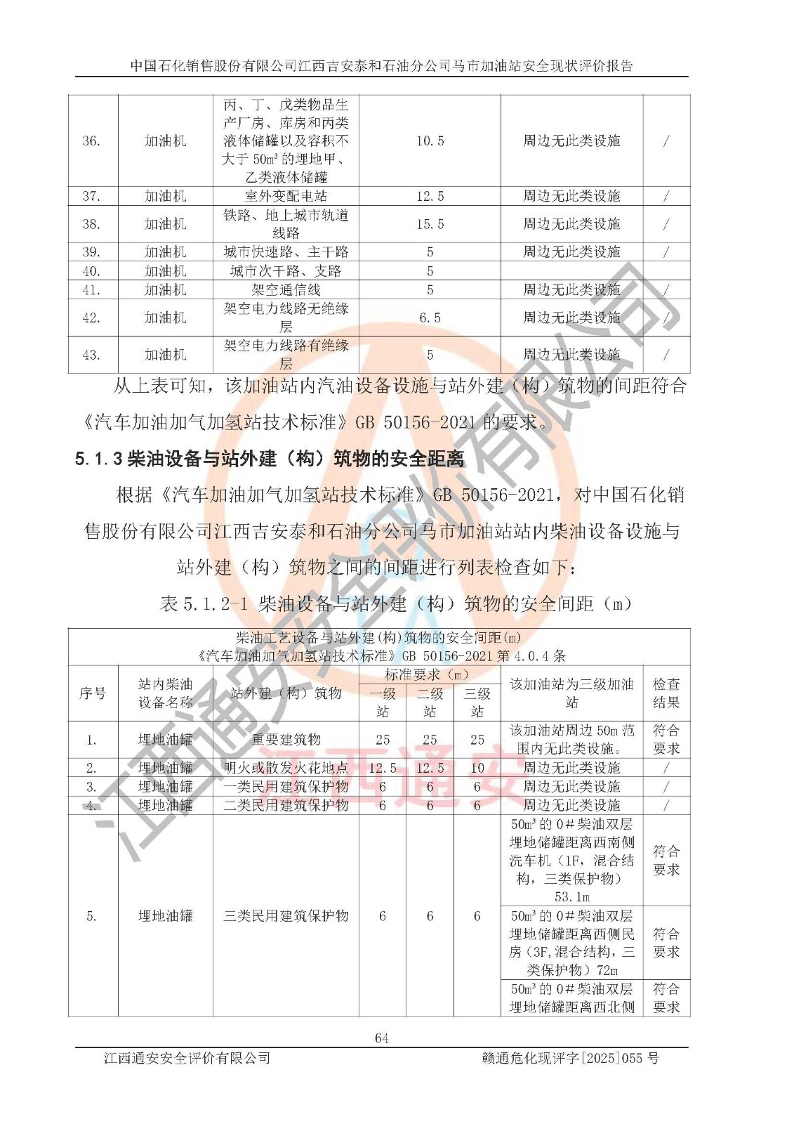 項目名稱 | 中國石化銷售股份有限公司江西吉安泰和石油分公司馬市加油站 安全現(xiàn)狀評價報告 | ||||