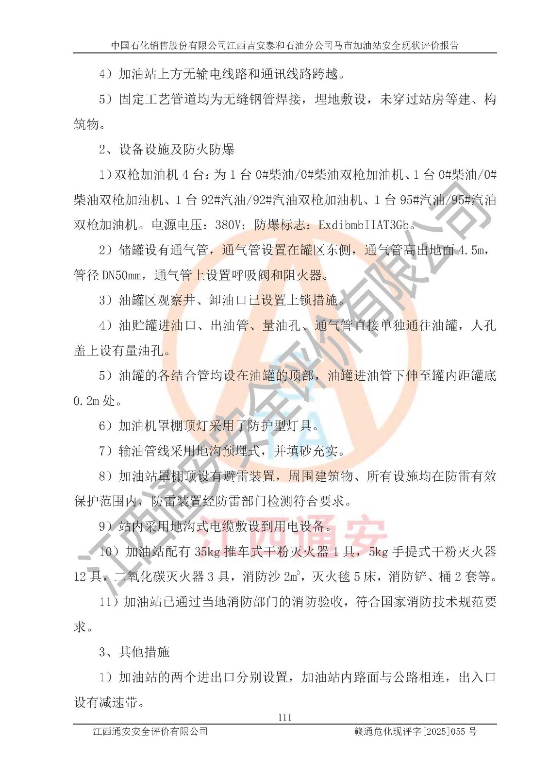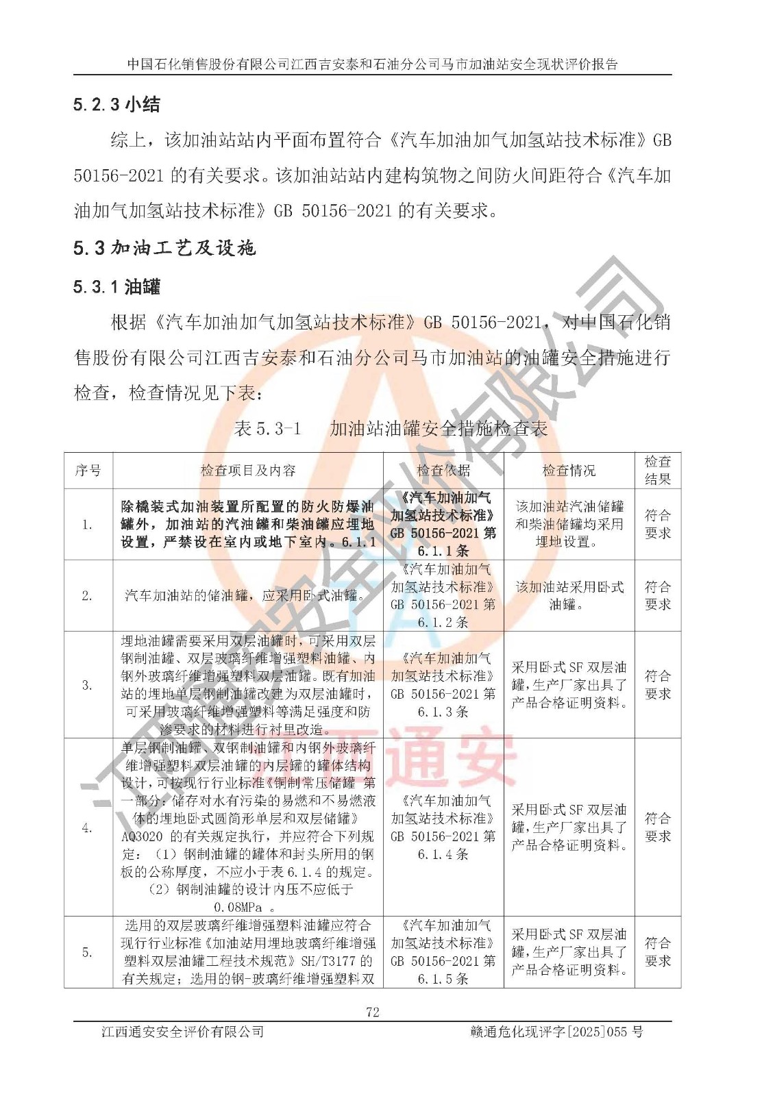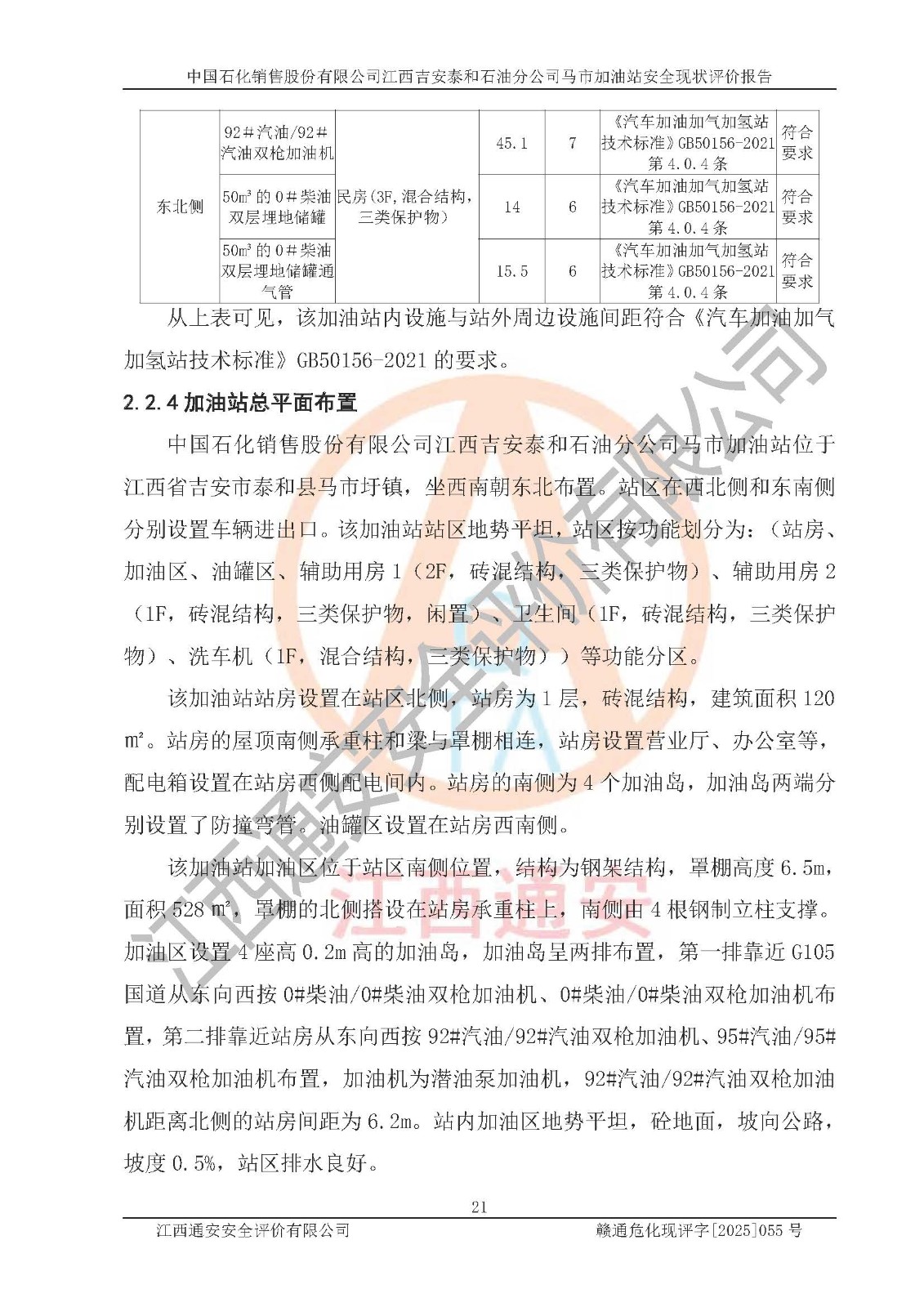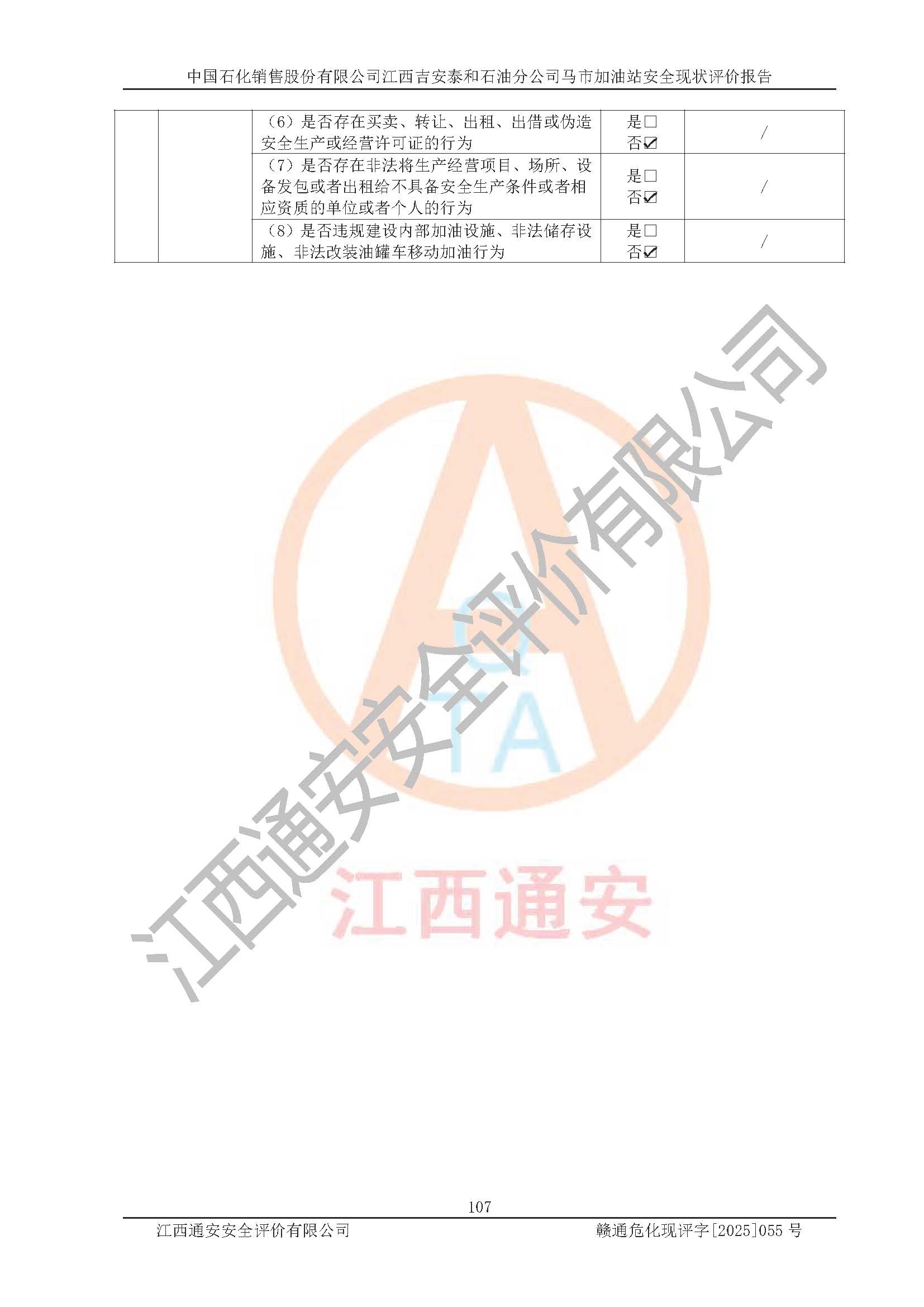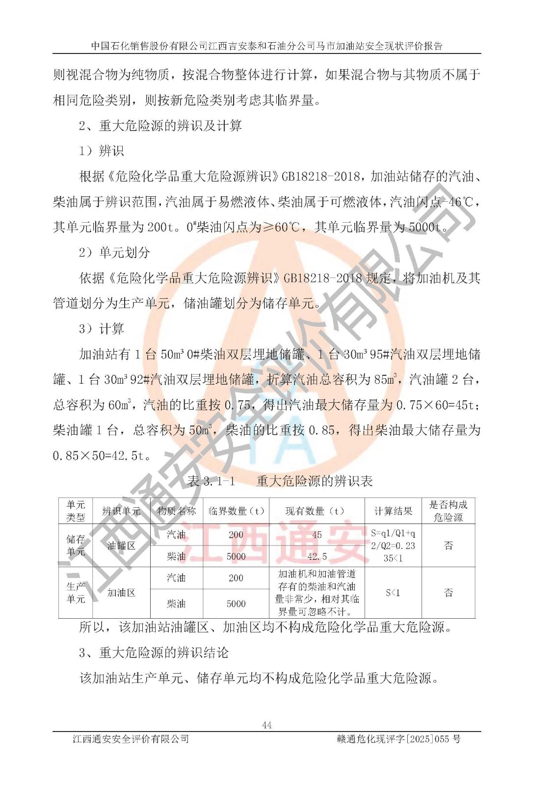 項目名稱 | 中國石化銷售股份有限公司江西吉安泰和石油分公司馬市加油站 安全現(xiàn)狀評價報告 | ||||