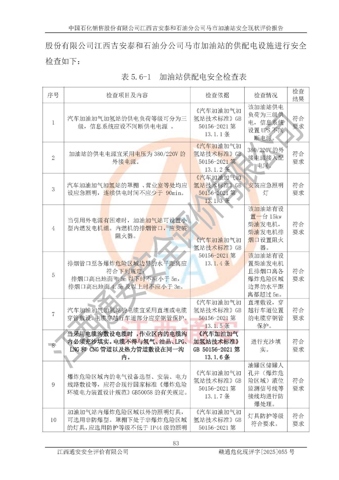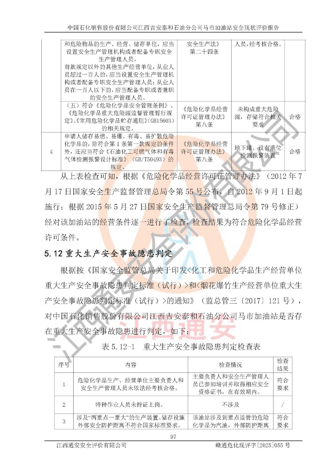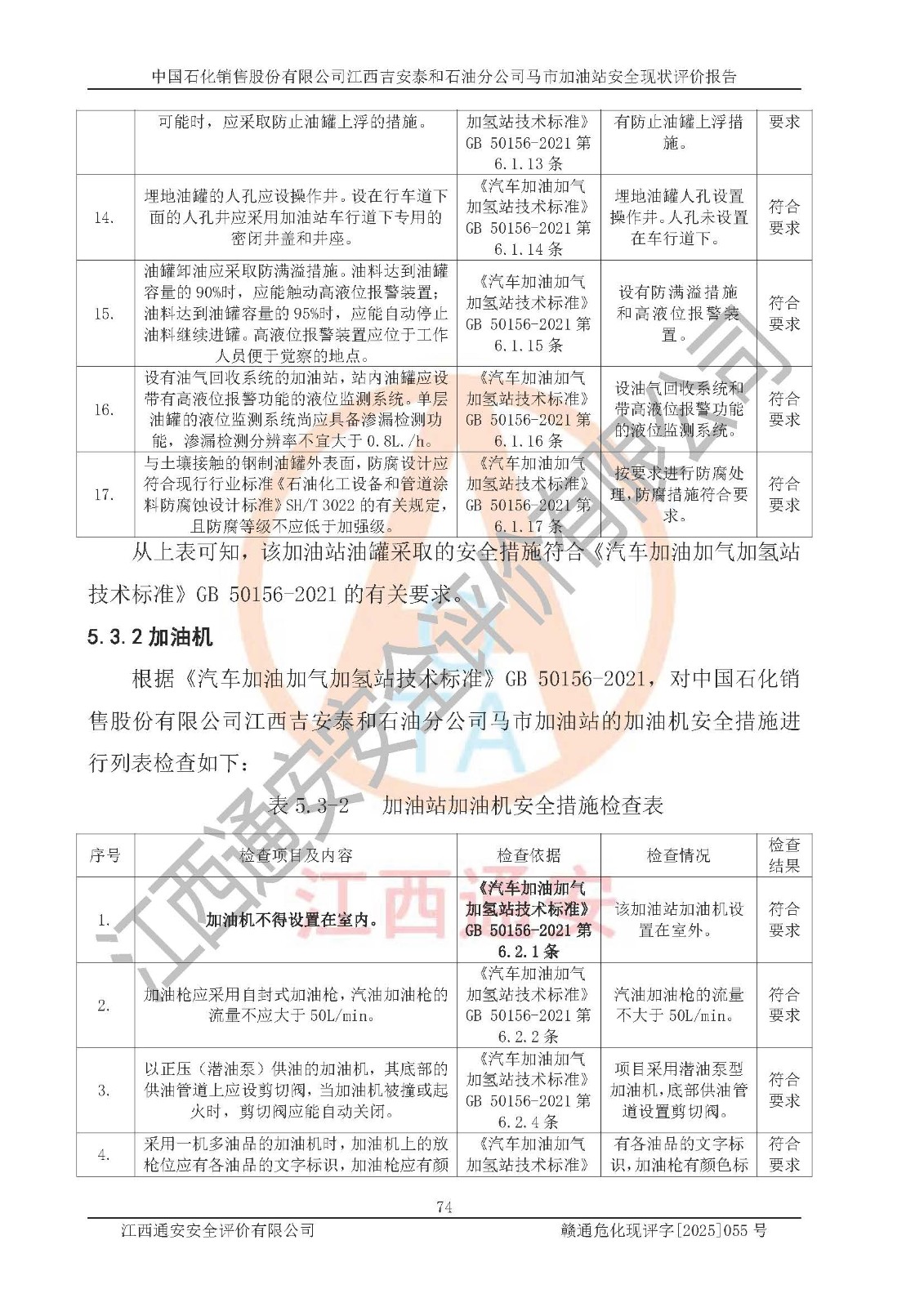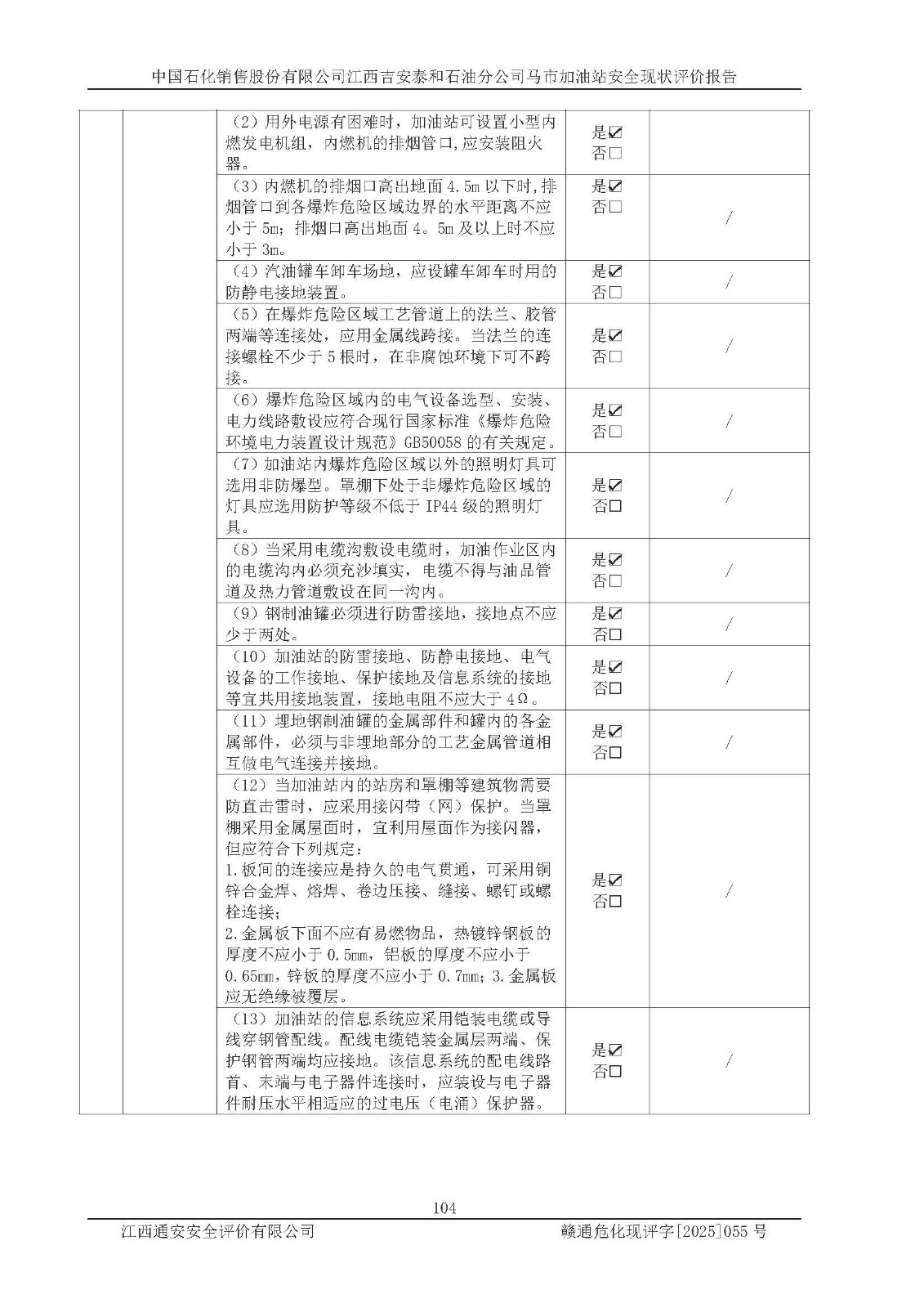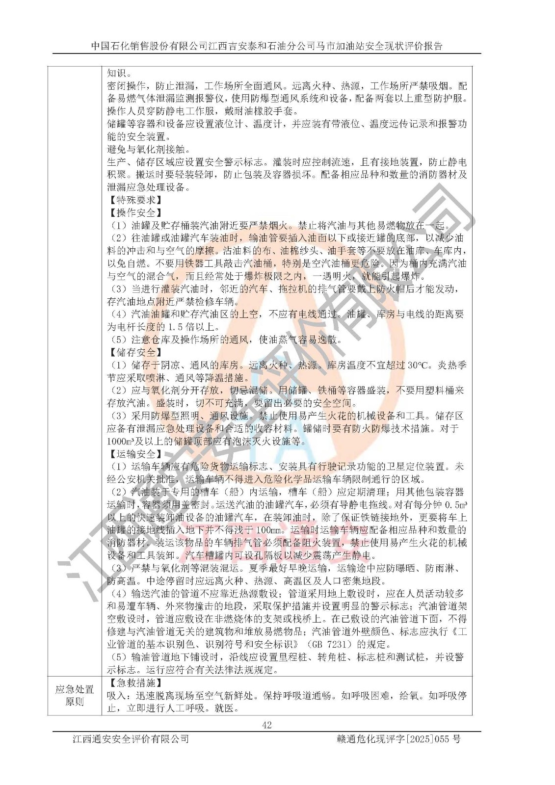 項目名稱 | 中國石化銷售股份有限公司江西吉安泰和石油分公司馬市加油站 安全現(xiàn)狀評價報告 | ||||