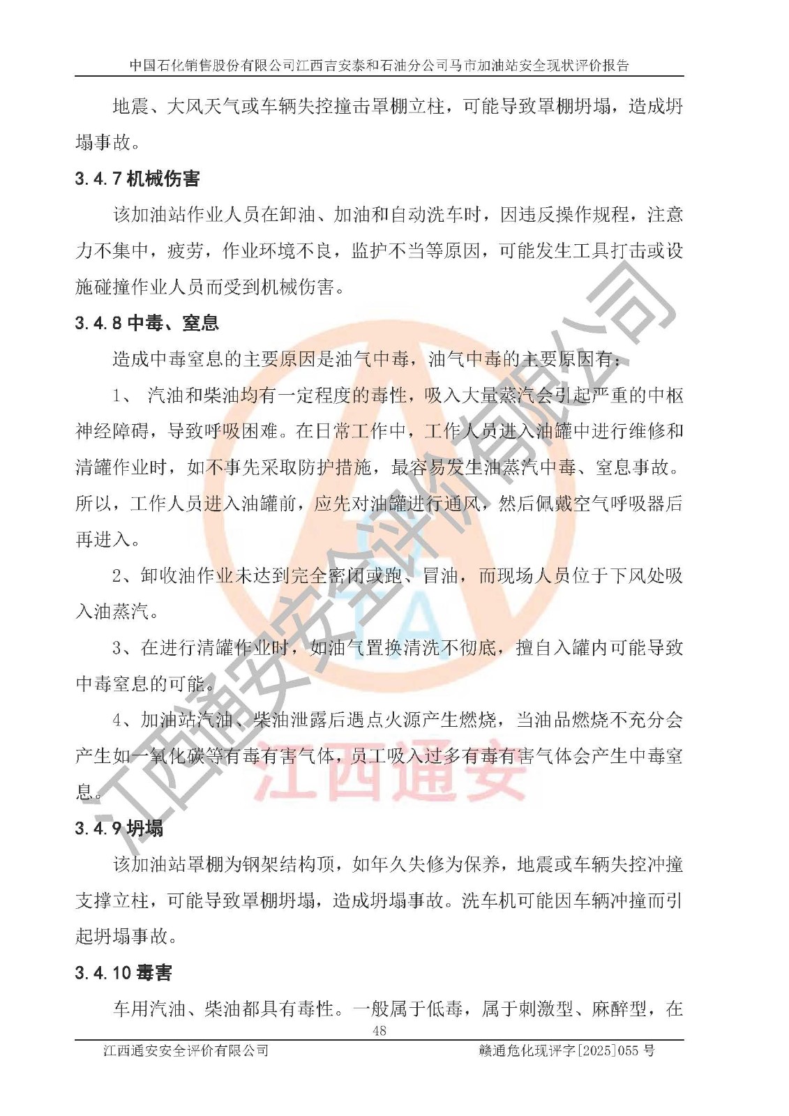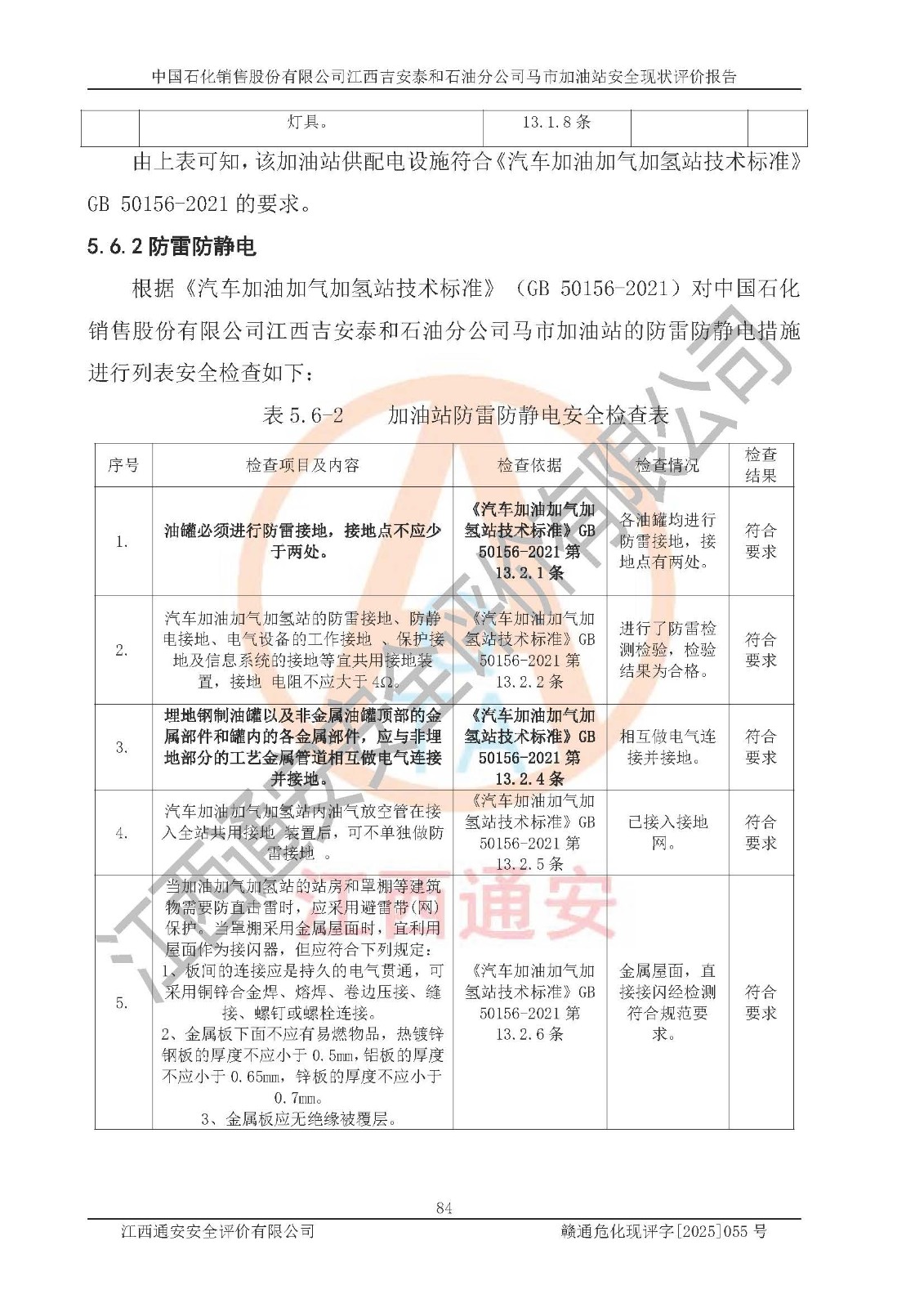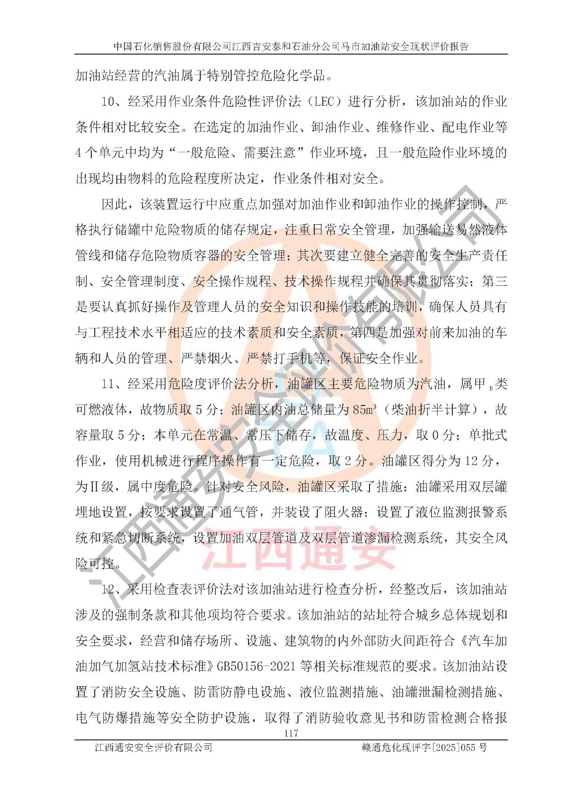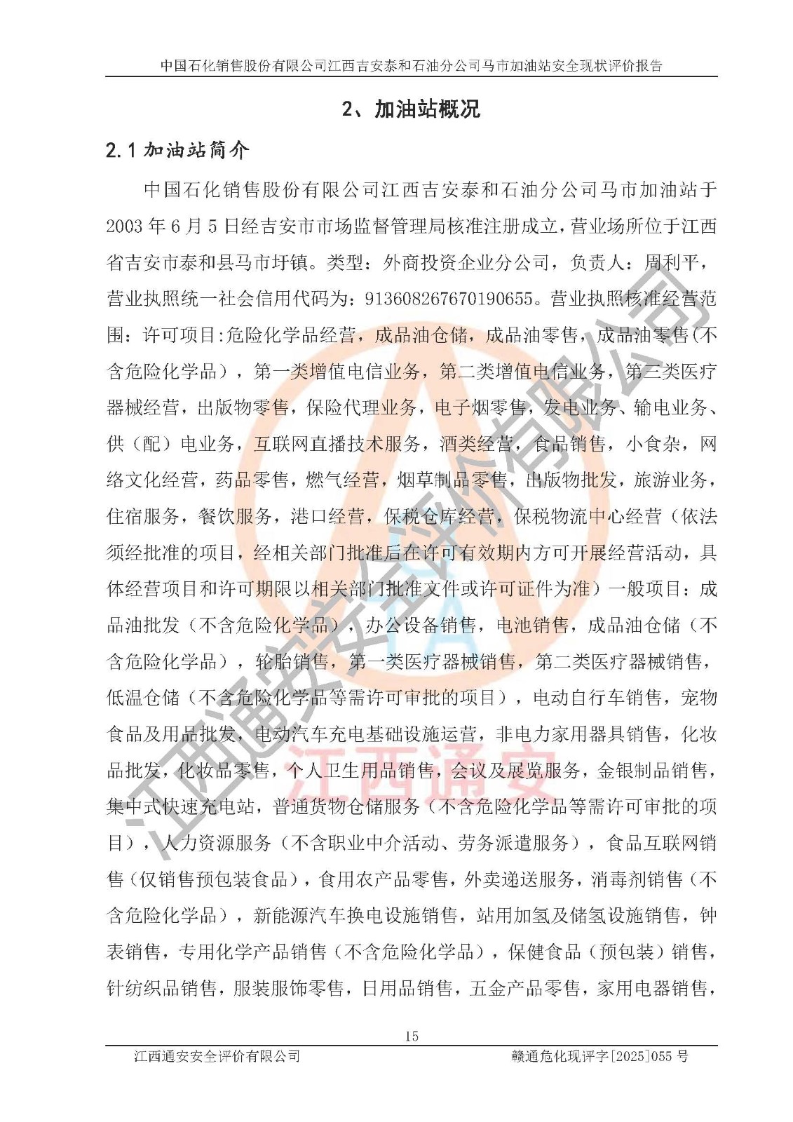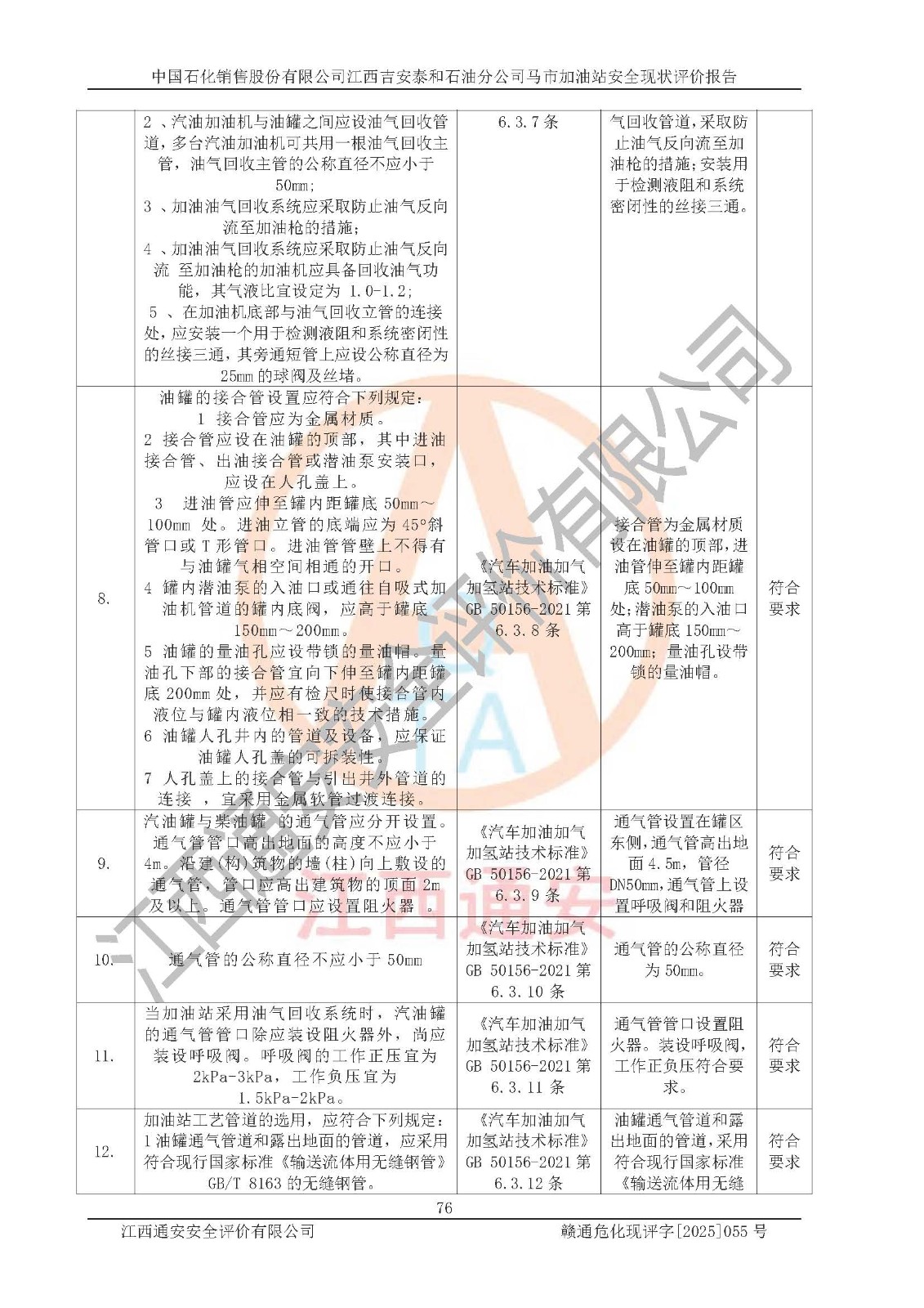項目名稱 | 中國石化銷售股份有限公司江西吉安泰和石油分公司馬市加油站 安全現(xiàn)狀評價報告 | ||||
