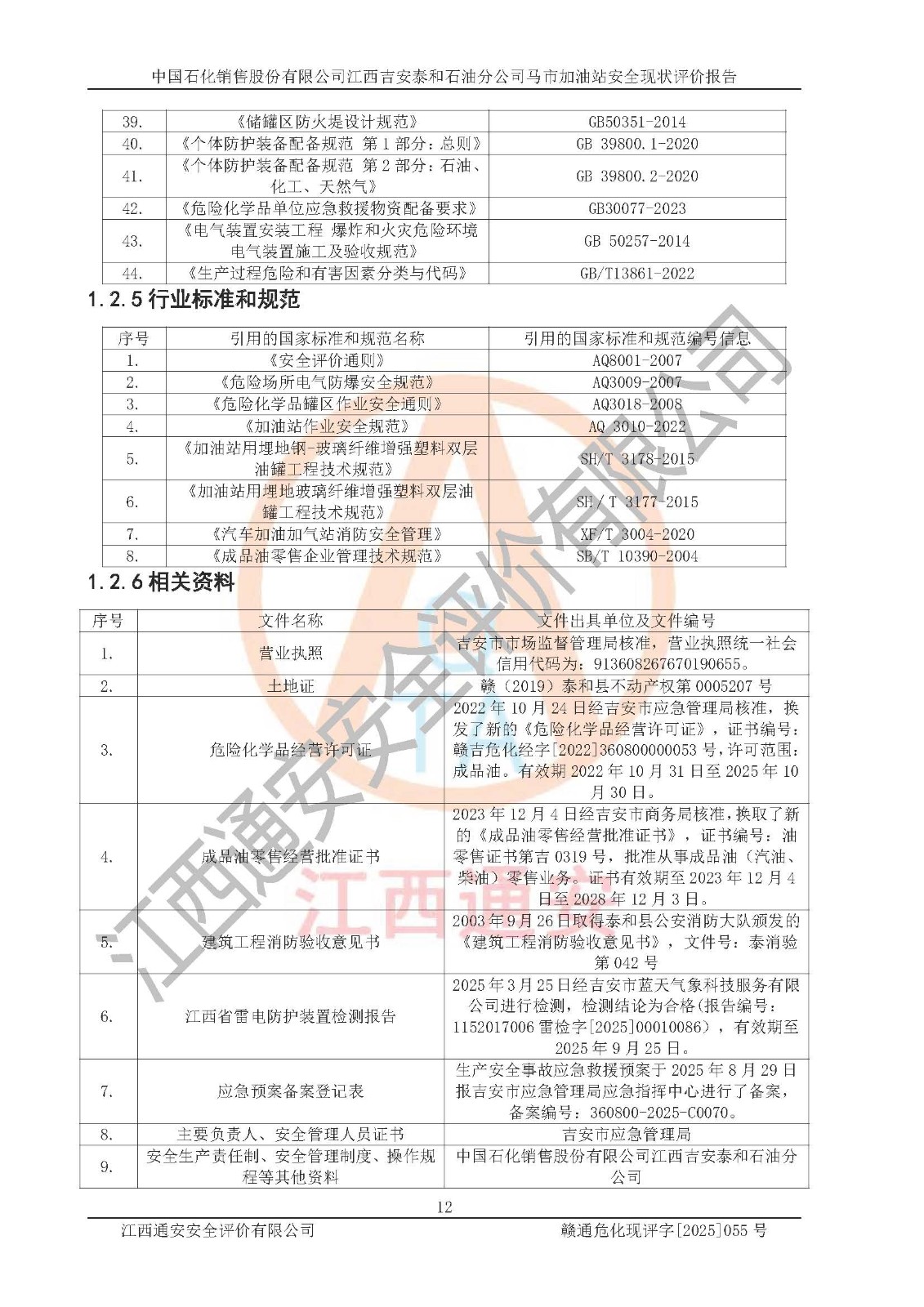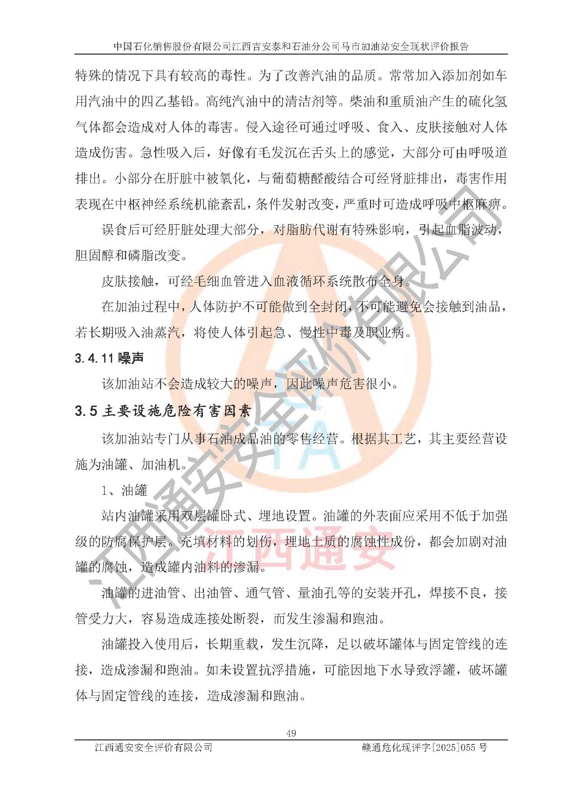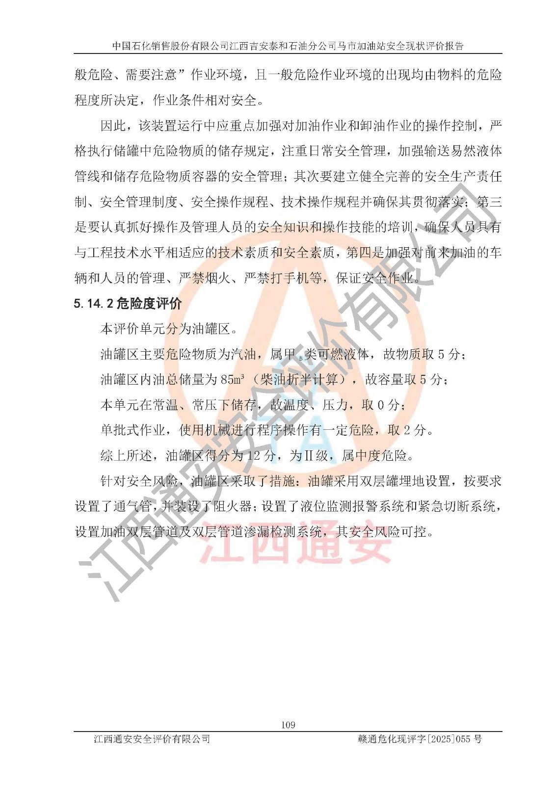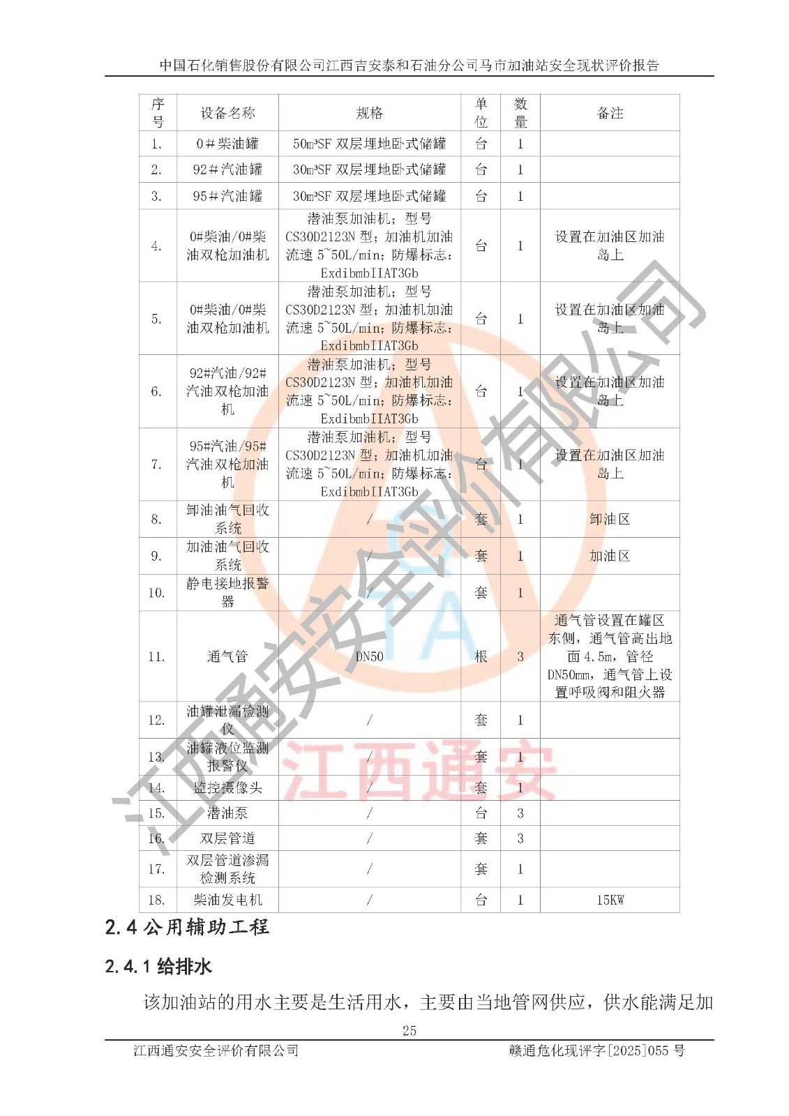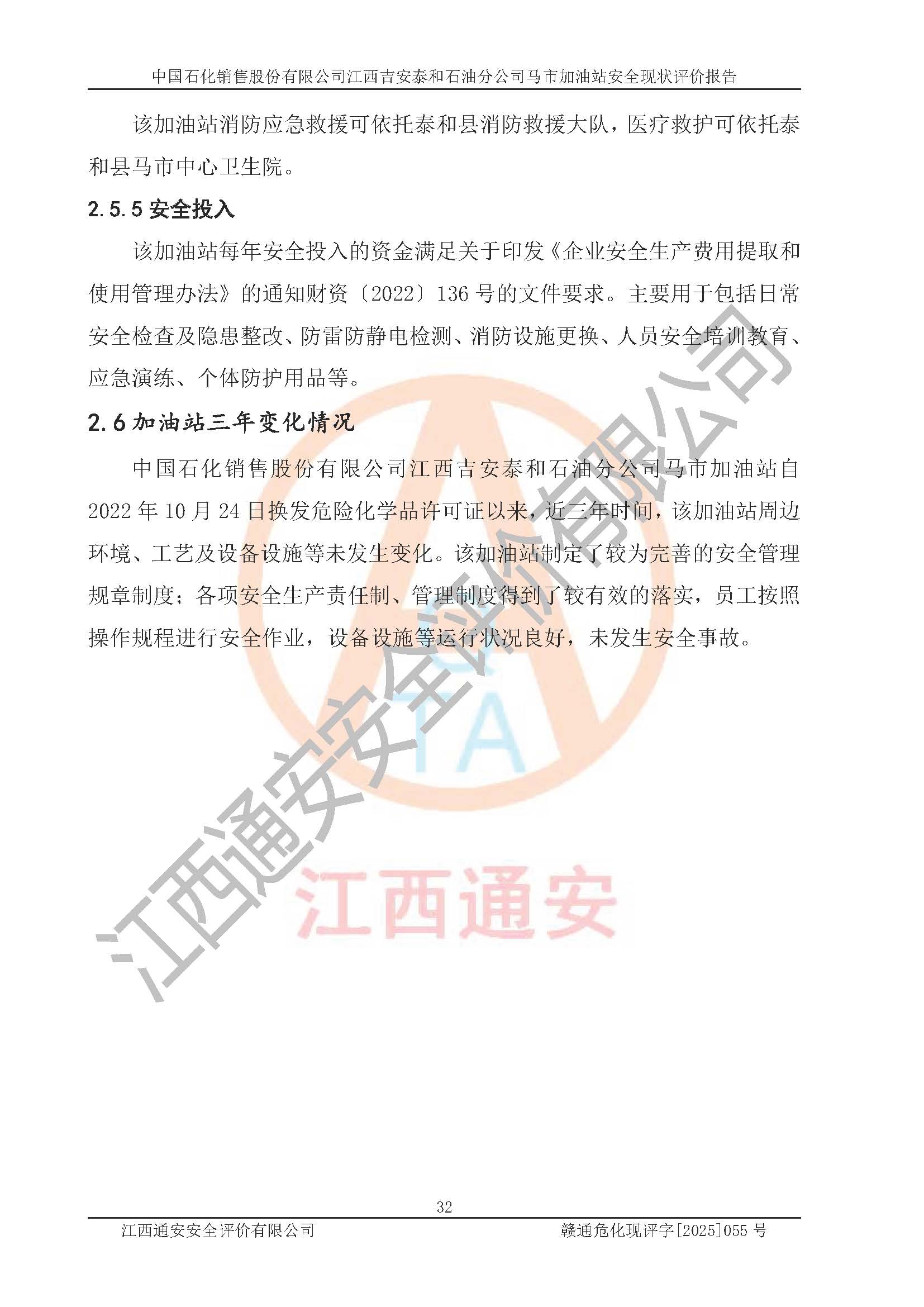 項目名稱 | 中國石化銷售股份有限公司江西吉安泰和石油分公司馬市加油站 安全現(xiàn)狀評價報告 | ||||