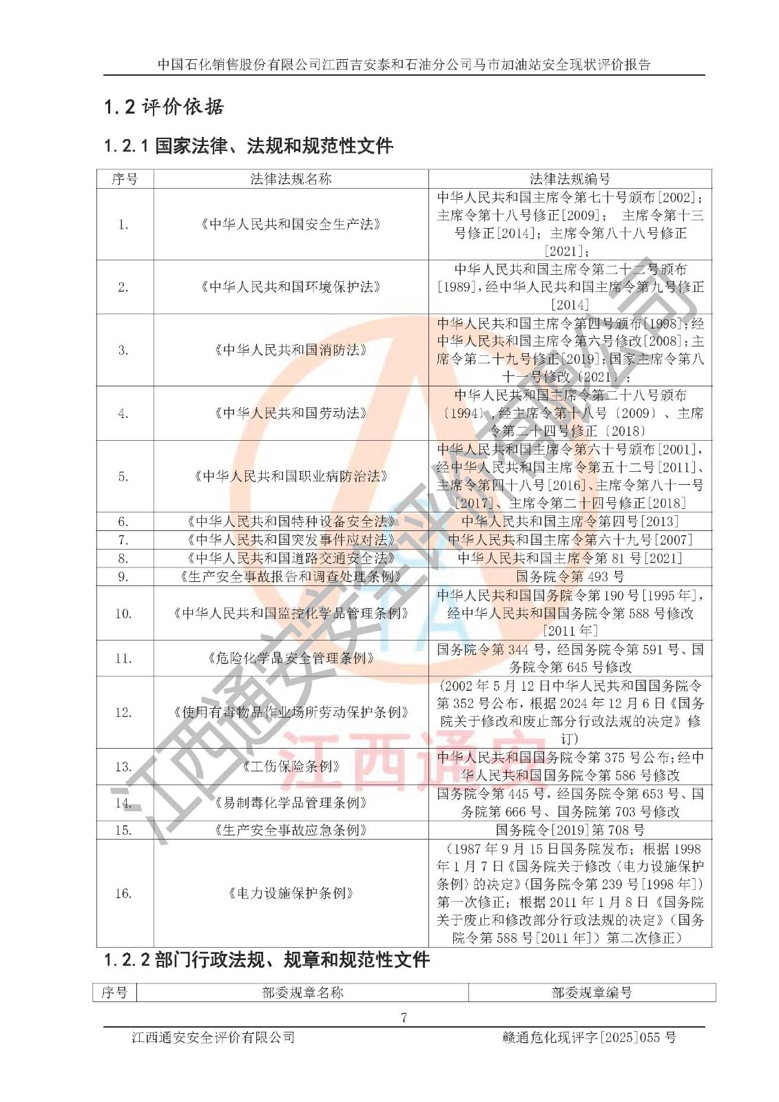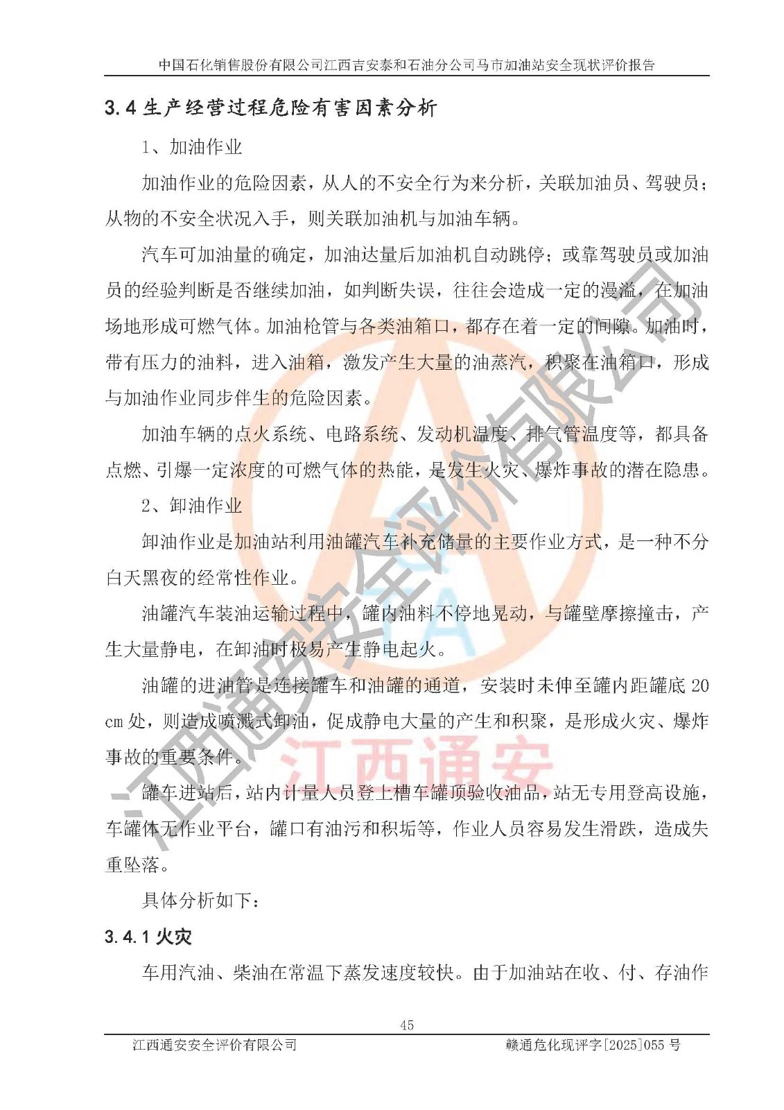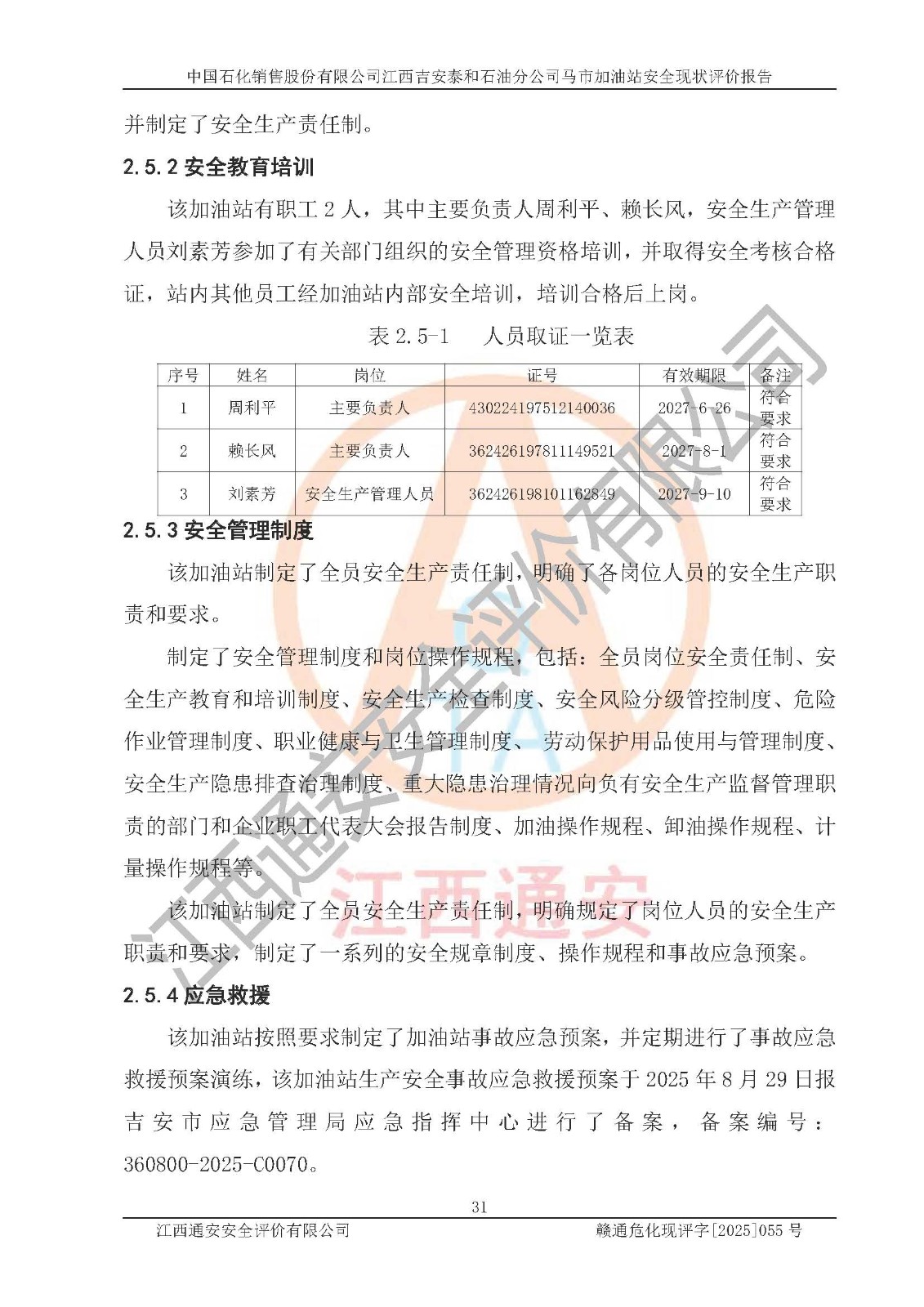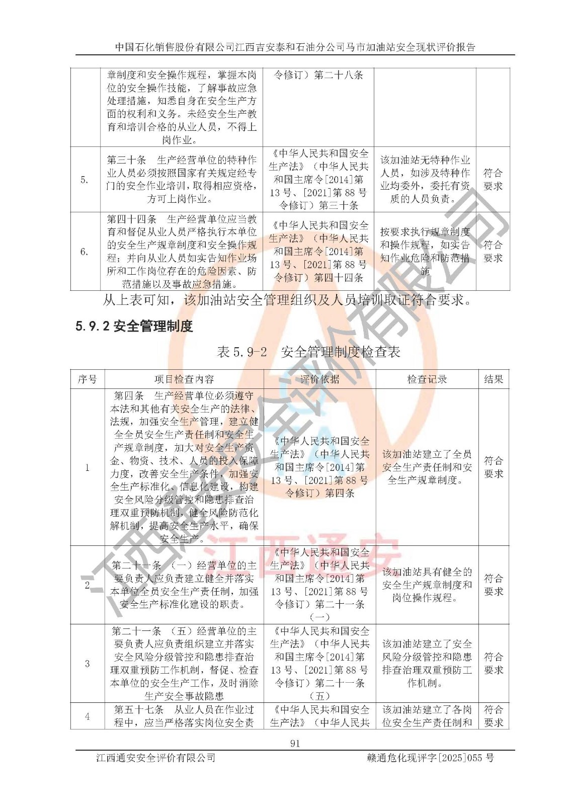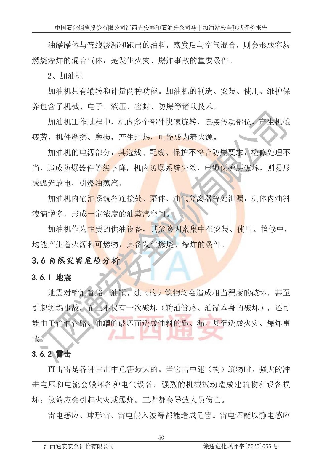 項目名稱 | 中國石化銷售股份有限公司江西吉安泰和石油分公司馬市加油站 安全現(xiàn)狀評價報告 | ||||