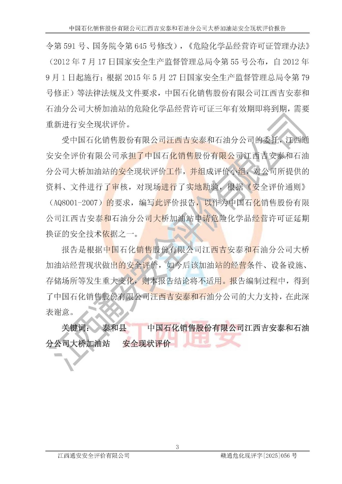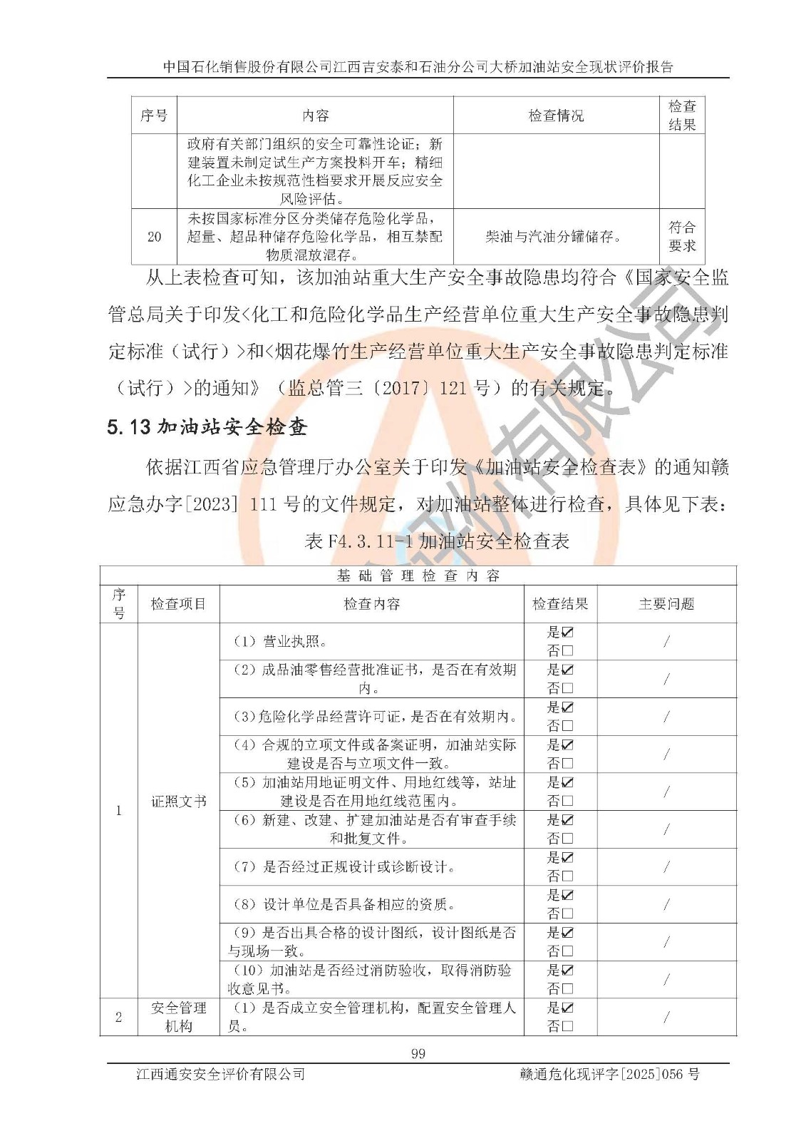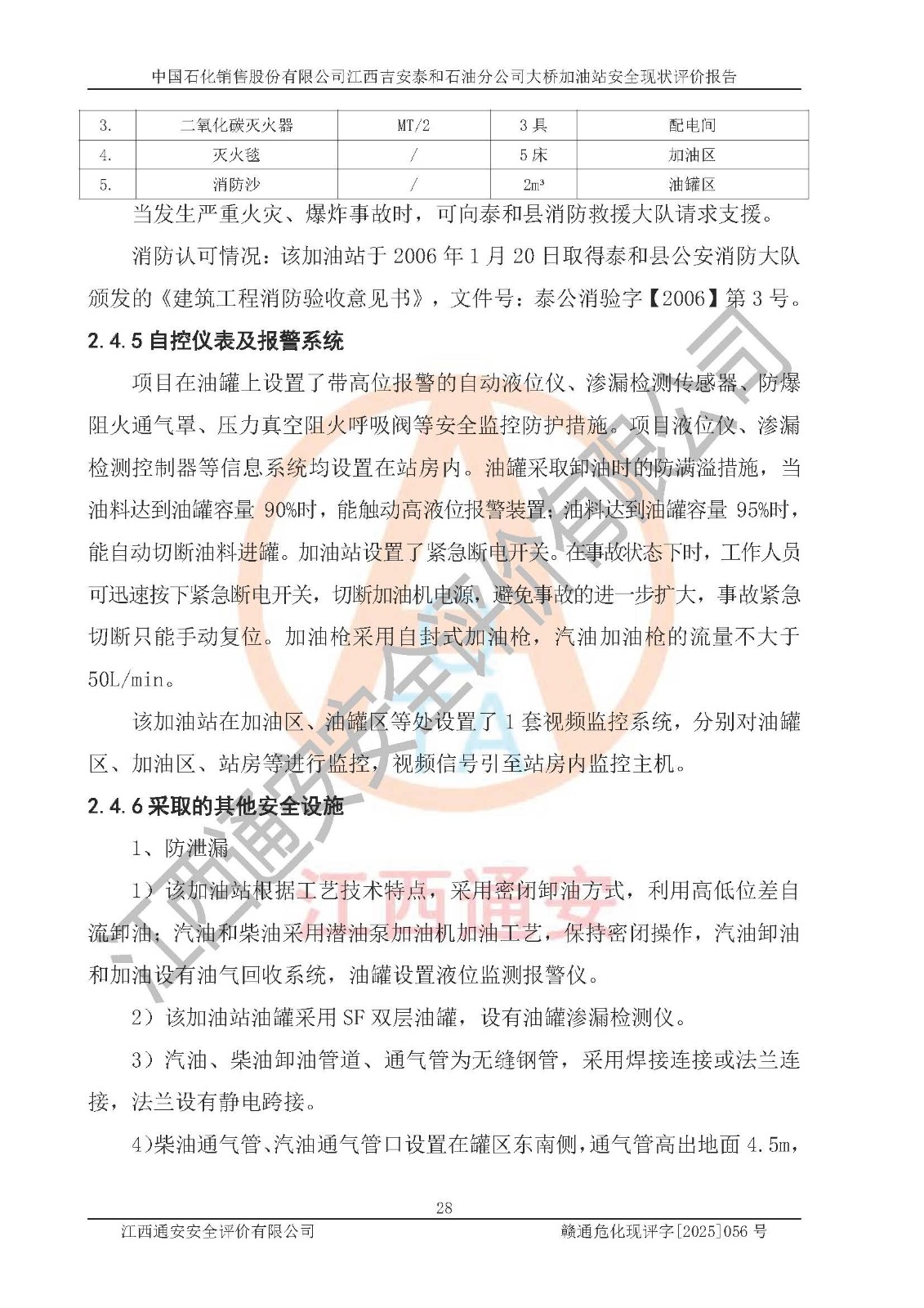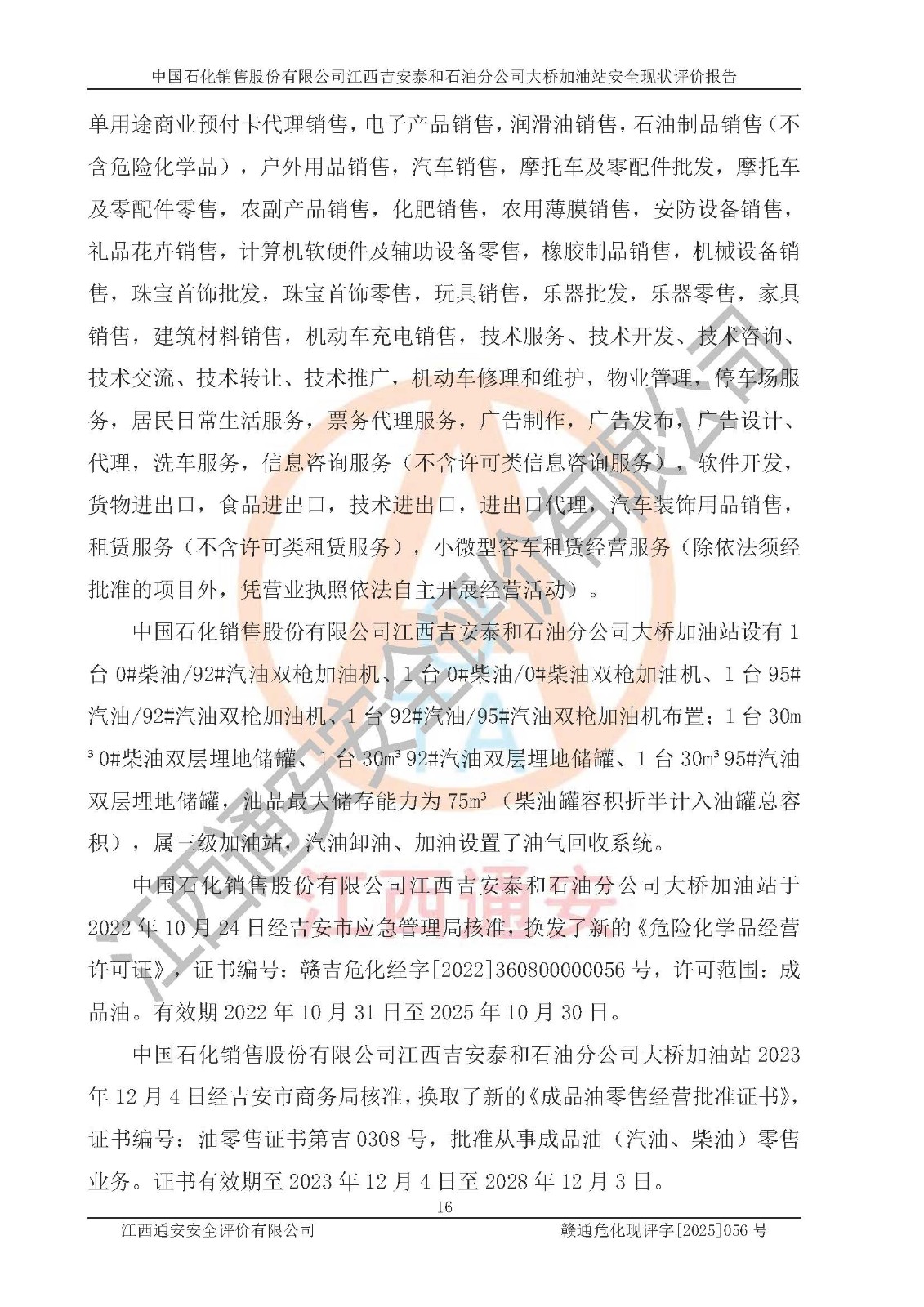 項目名稱 | 中國石化銷售股份有限公司江西吉安泰和石油分公司大橋加油站 安全現(xiàn)狀評價報告 | ||||