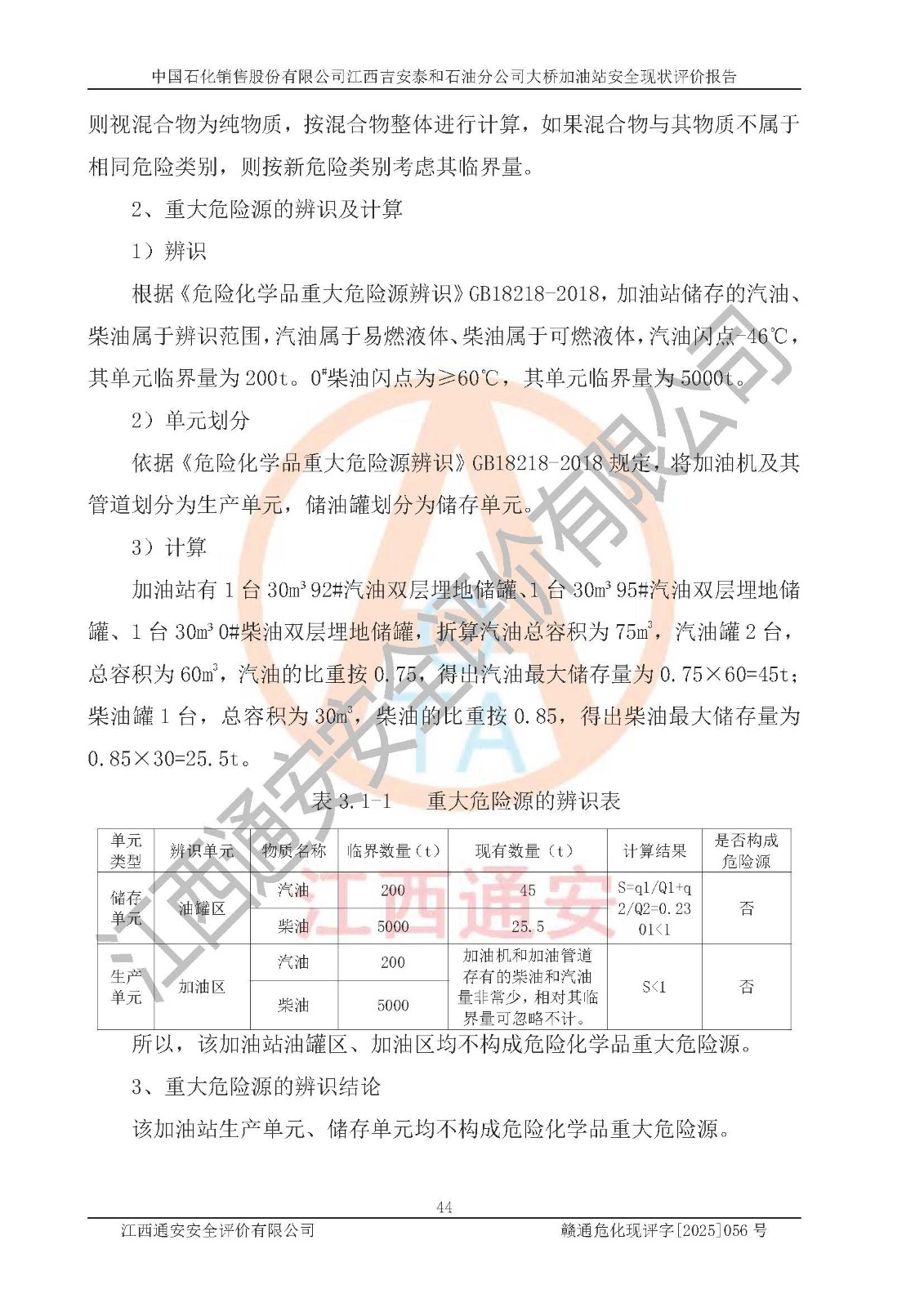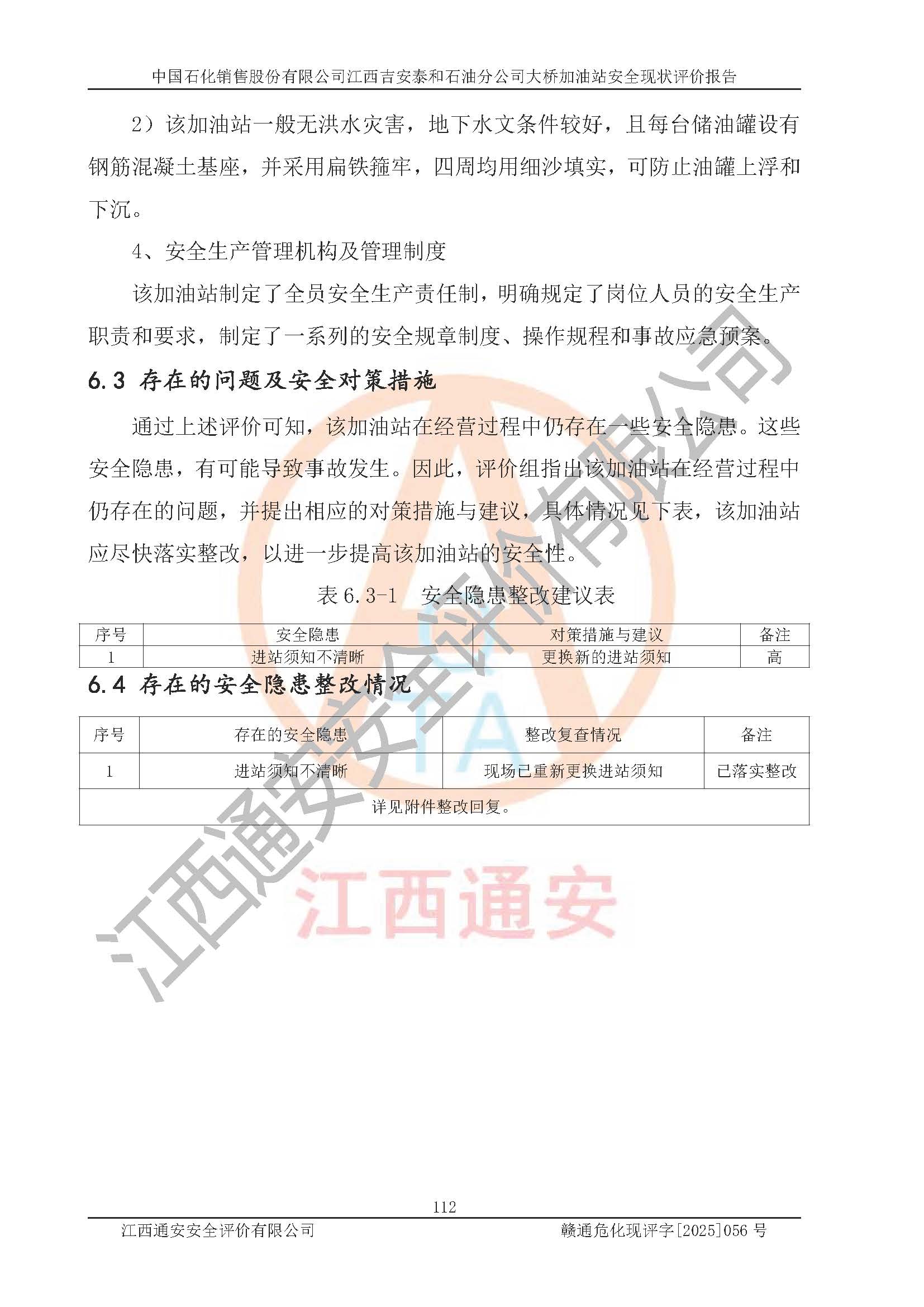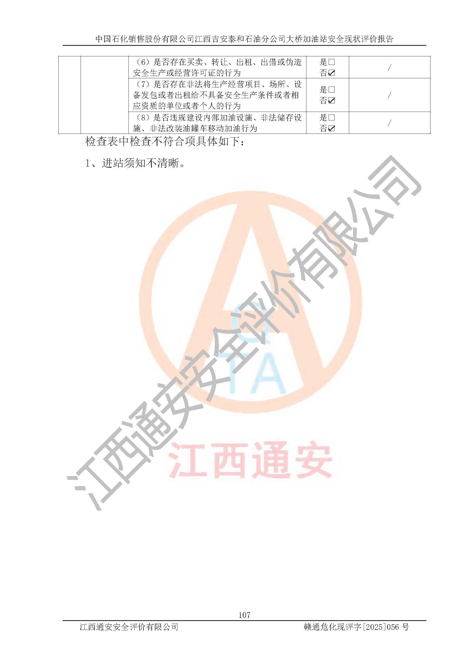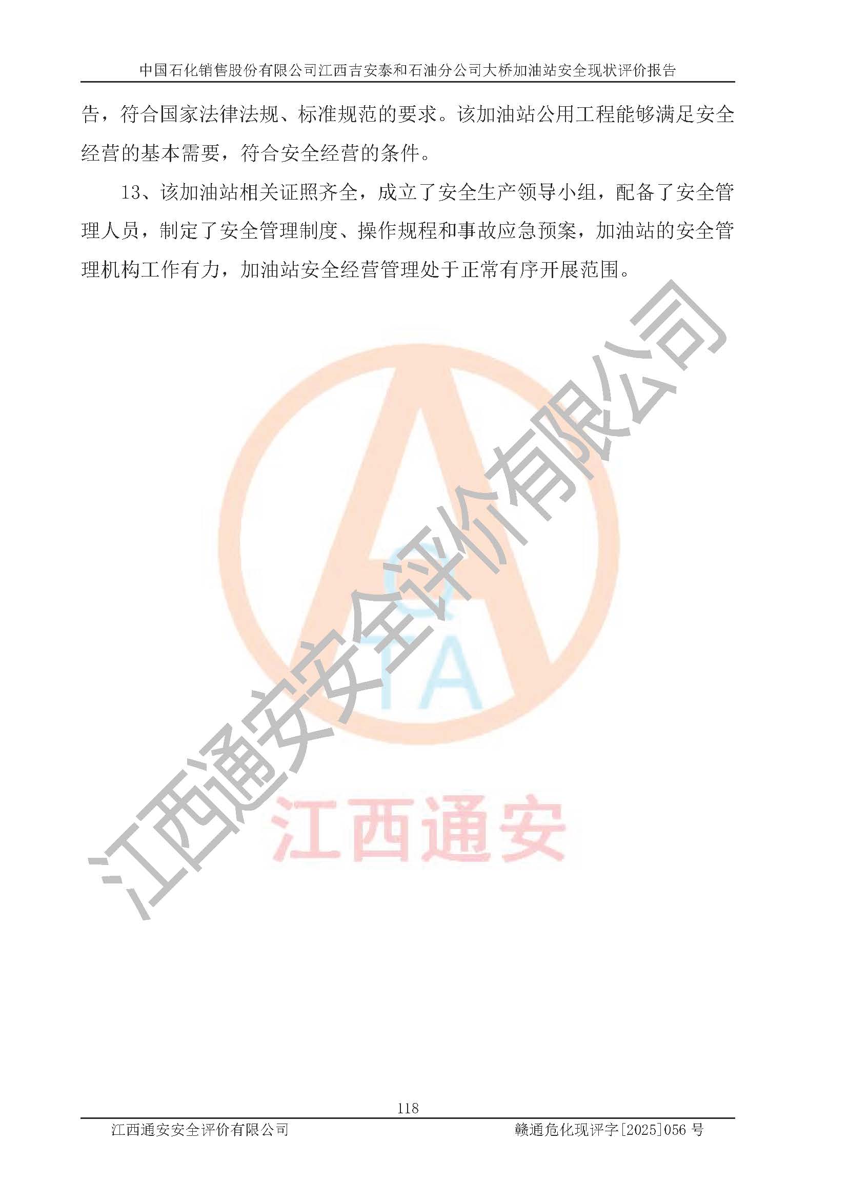項目名稱 | 中國石化銷售股份有限公司江西吉安泰和石油分公司大橋加油站 安全現(xiàn)狀評價報告 | ||||