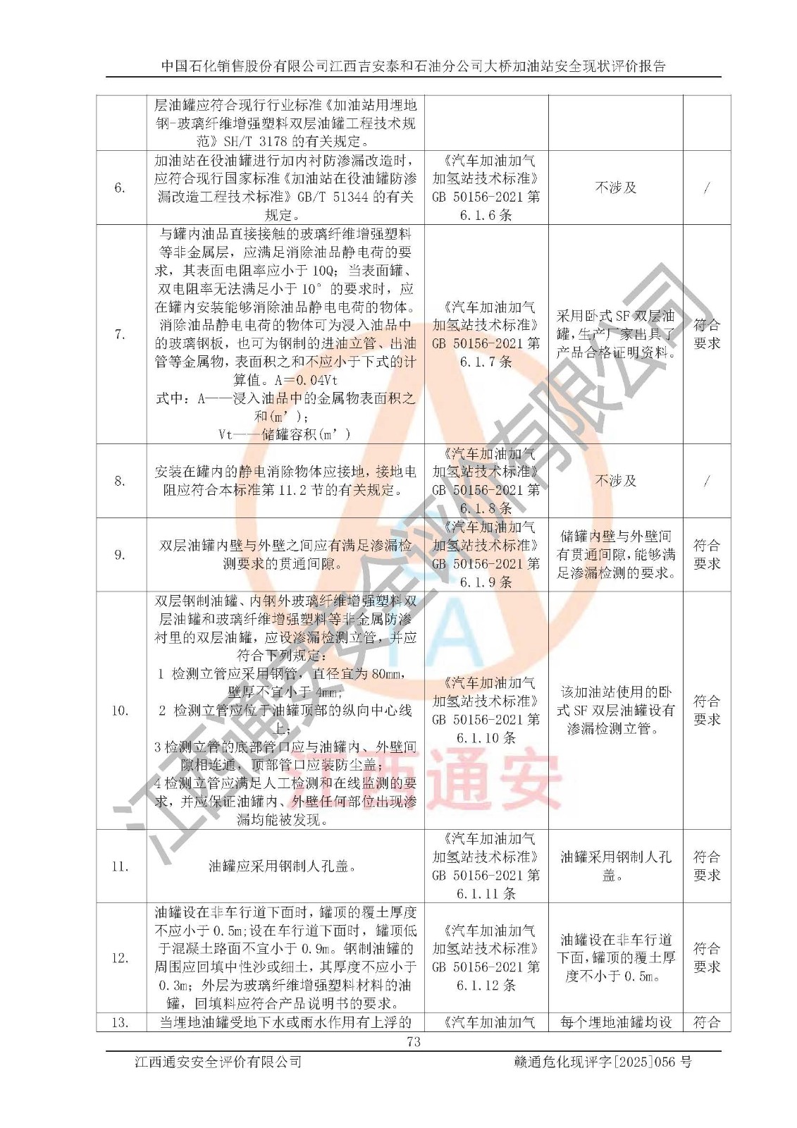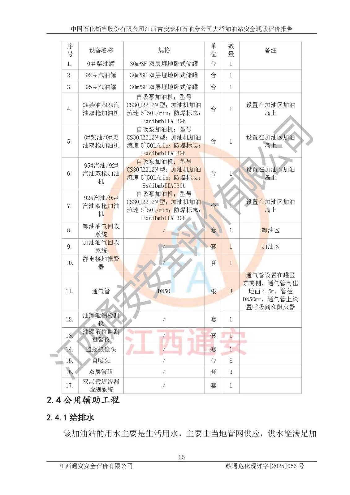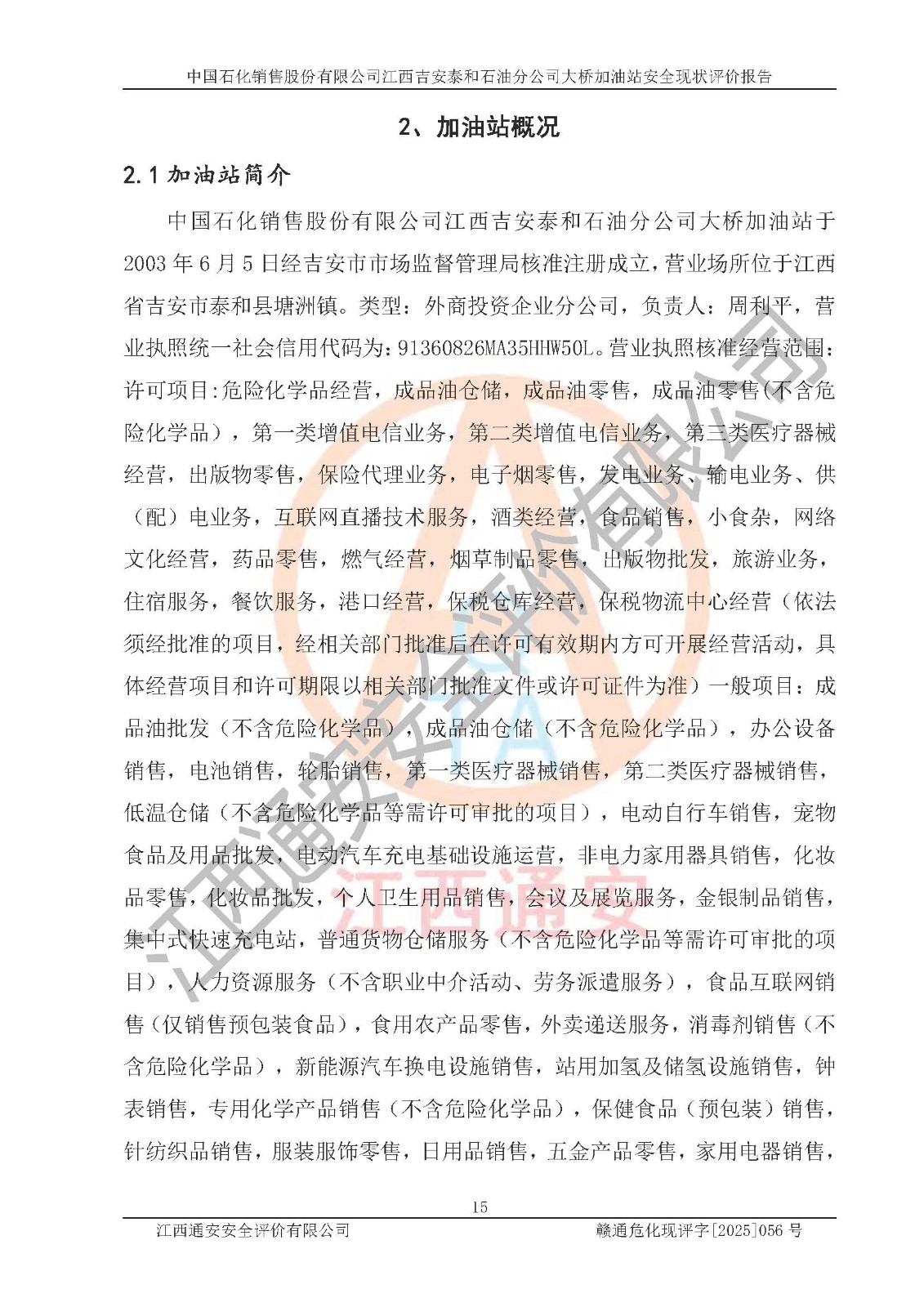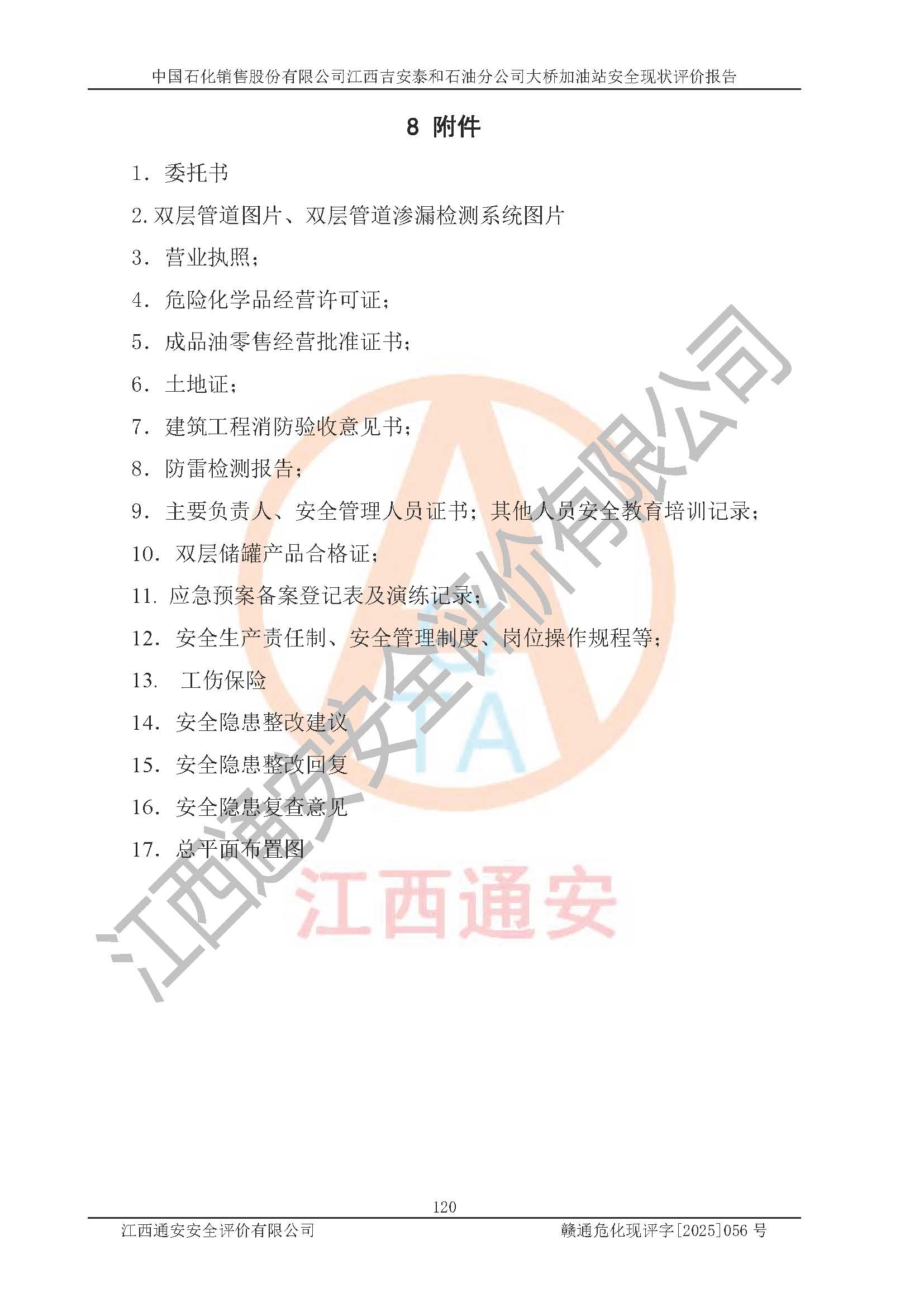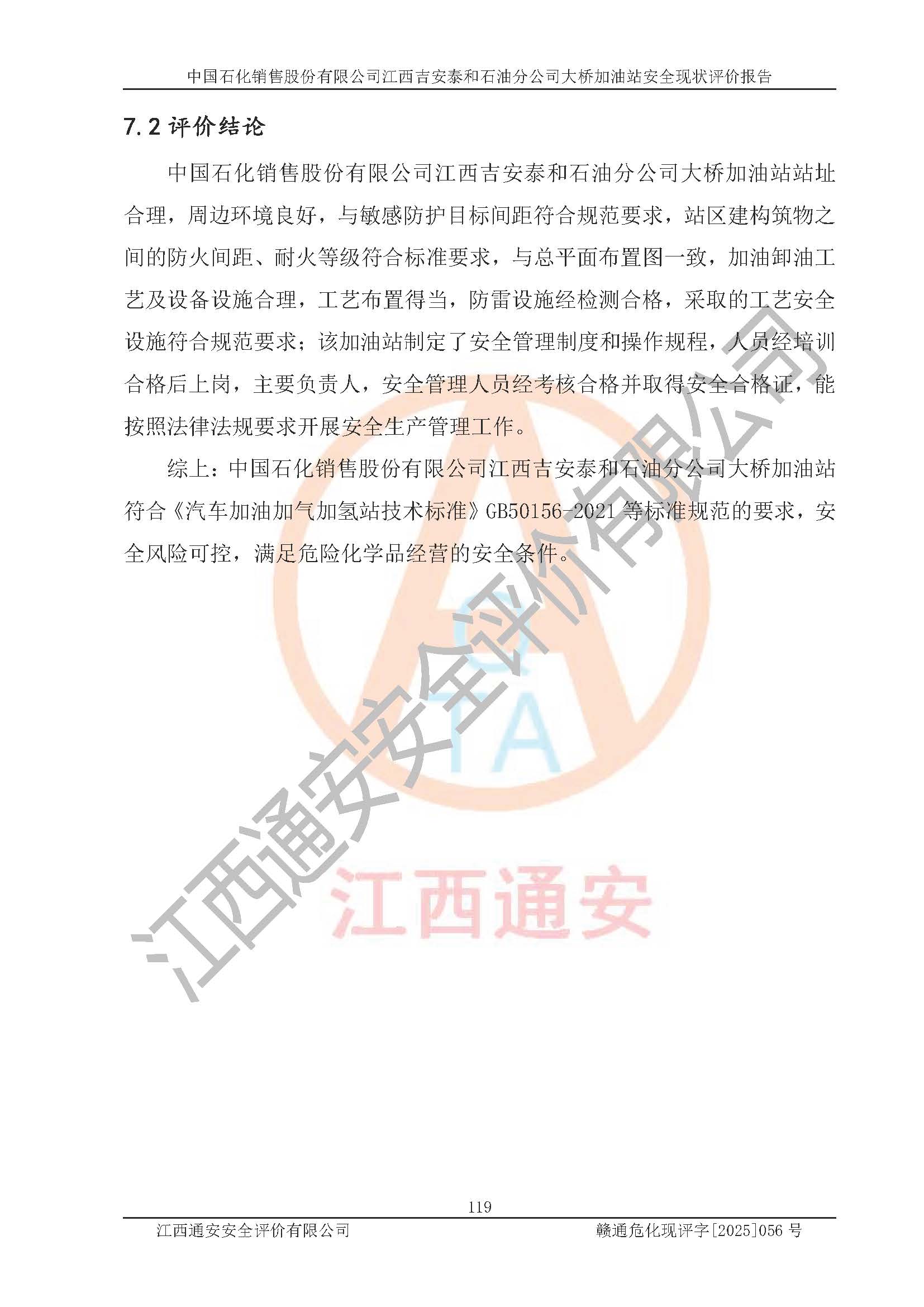 項目名稱 | 中國石化銷售股份有限公司江西吉安泰和石油分公司大橋加油站 安全現(xiàn)狀評價報告 | ||||
