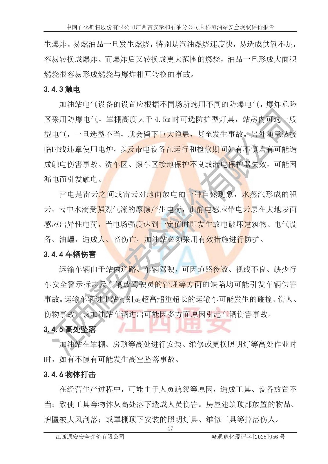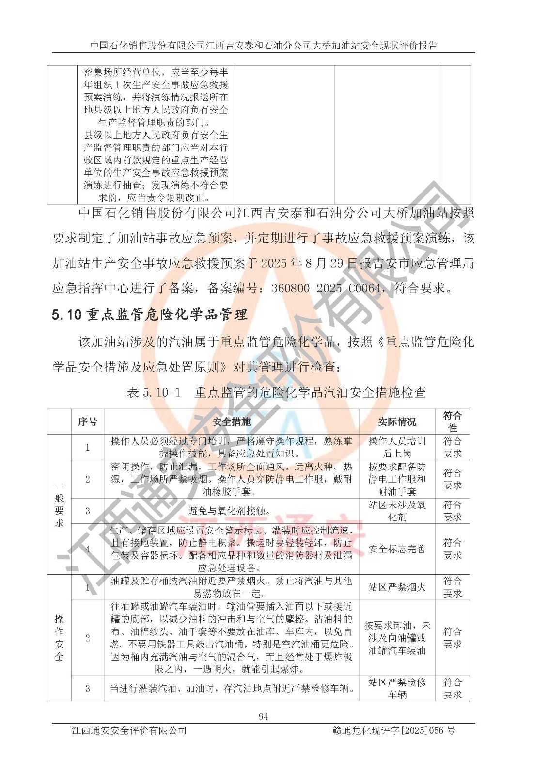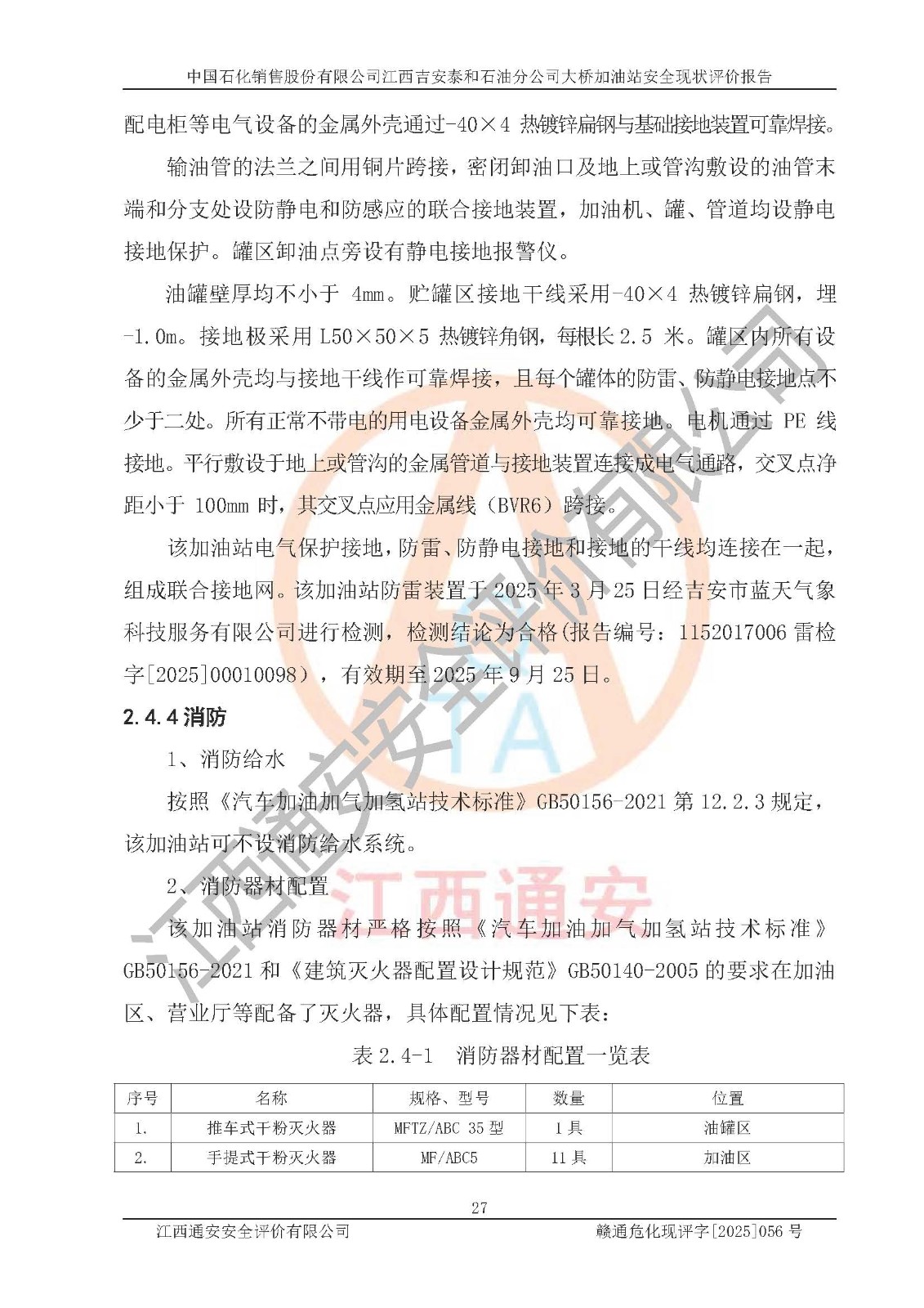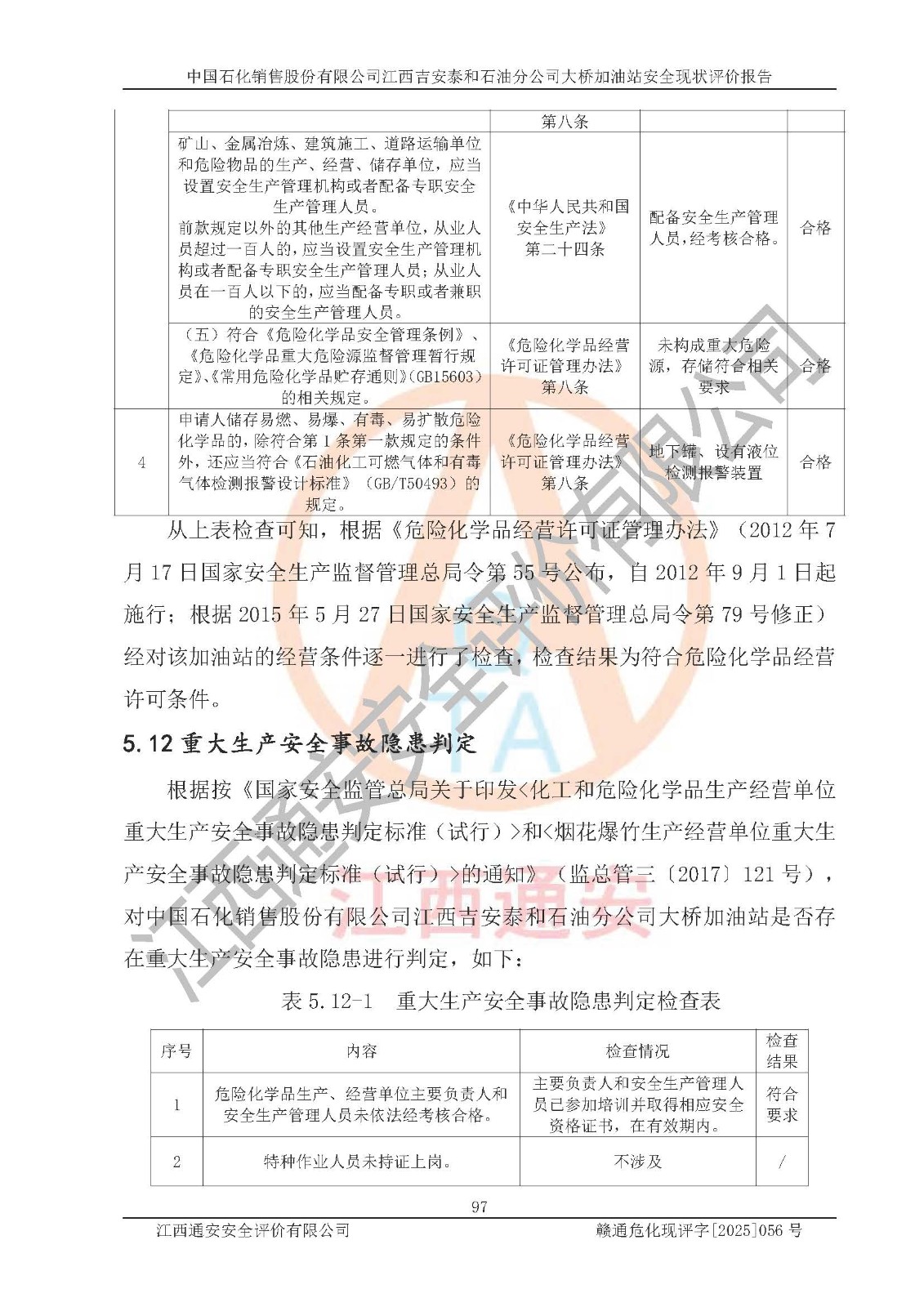 項目名稱 | 中國石化銷售股份有限公司江西吉安泰和石油分公司大橋加油站 安全現(xiàn)狀評價報告 | ||||