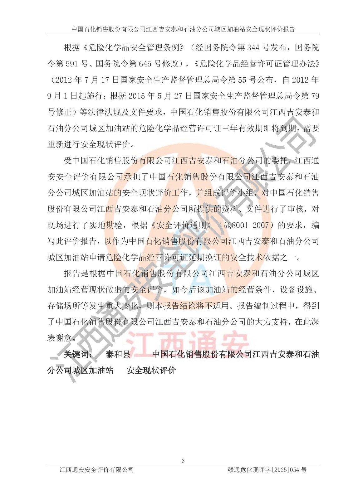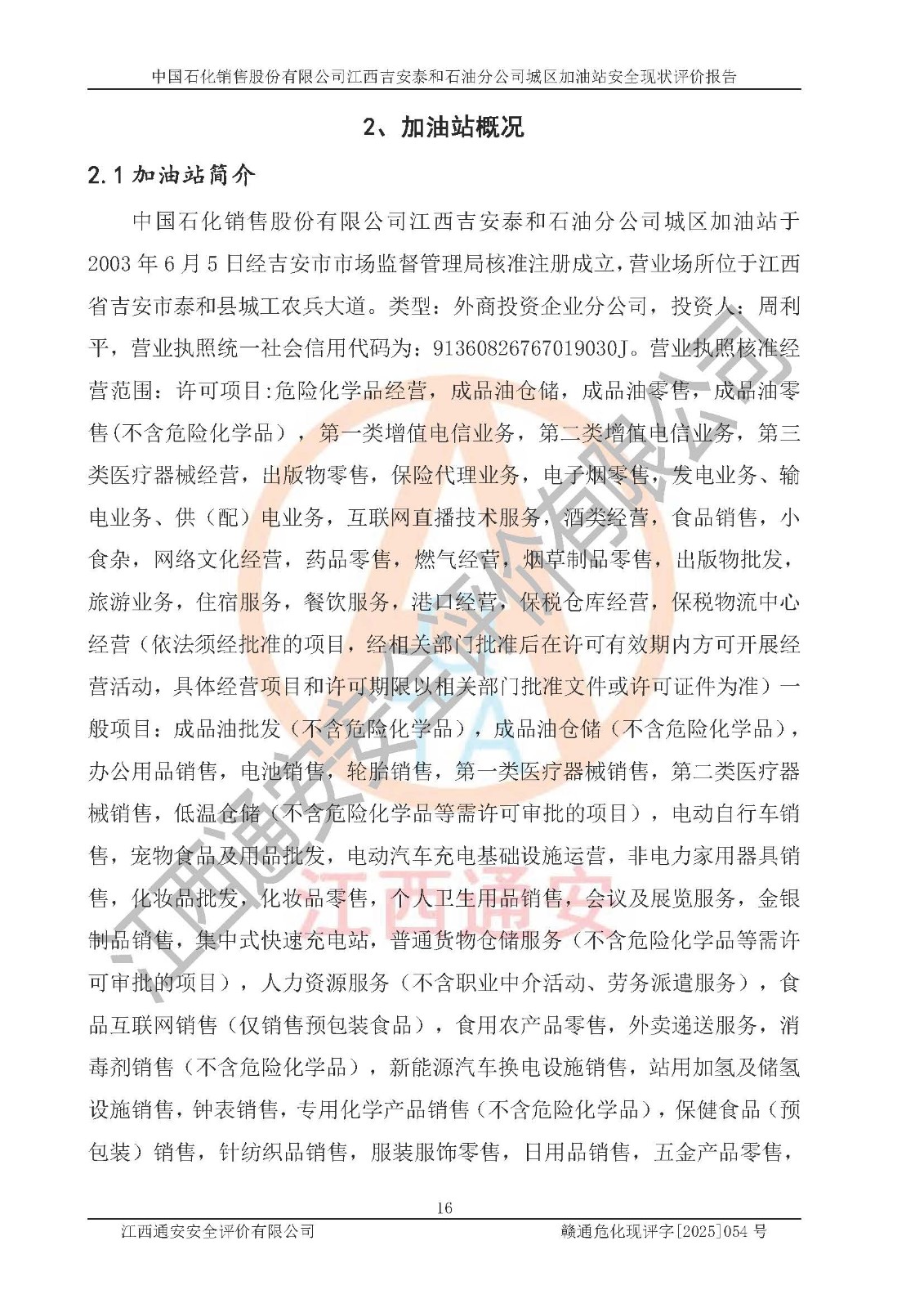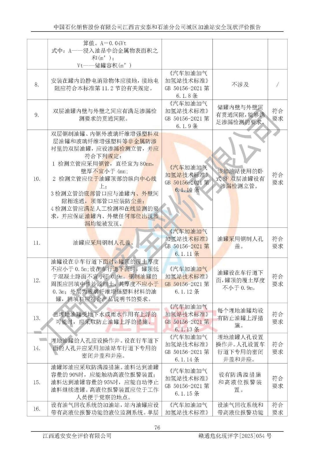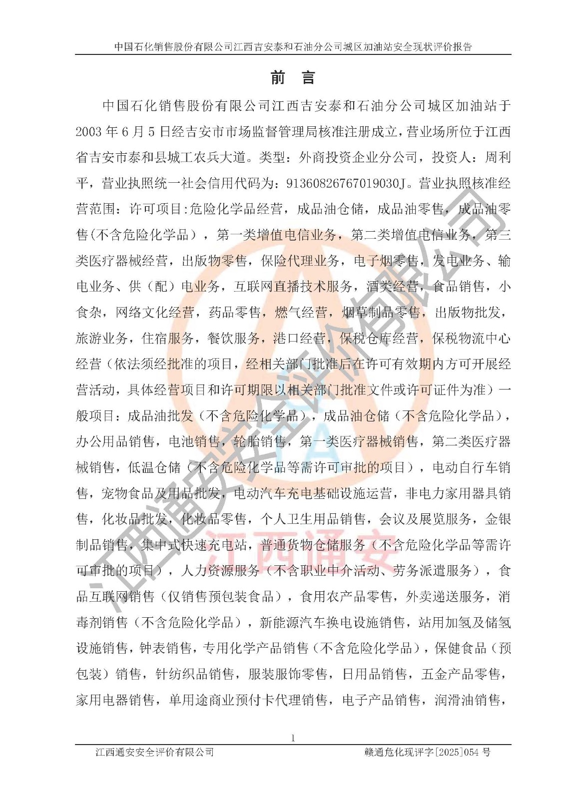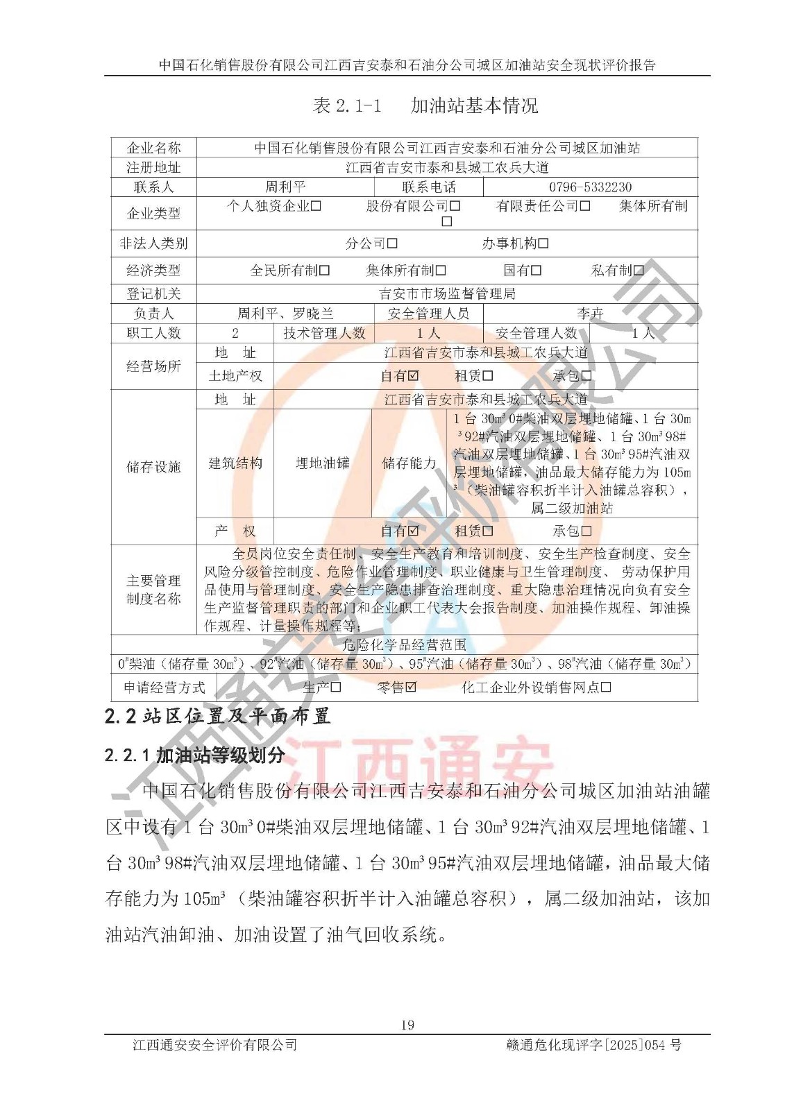 項目名稱 | 中國石化銷售股份有限公司江西吉安泰和石油分公司城區(qū)加油站 安全現(xiàn)狀評價報告 | ||||