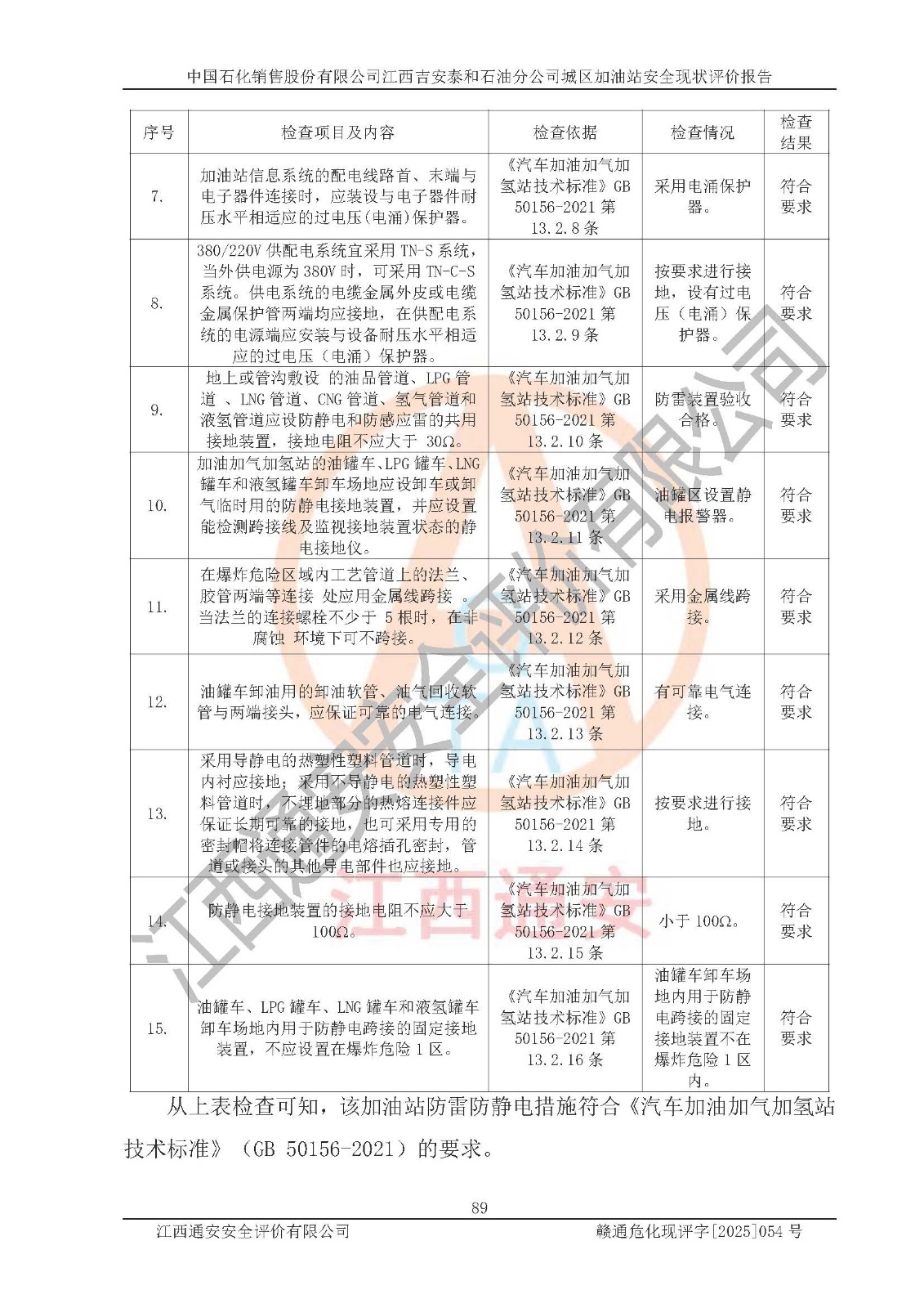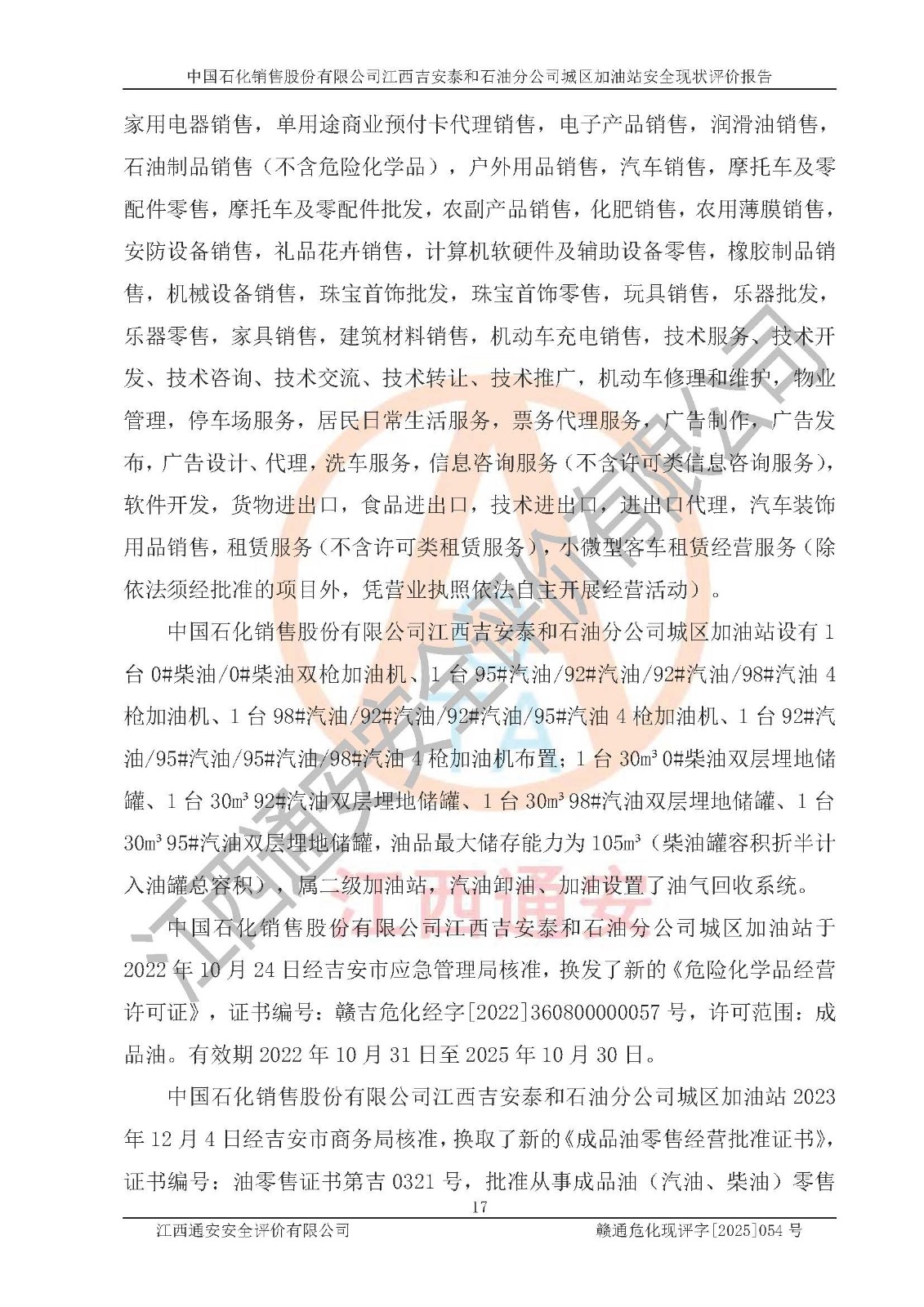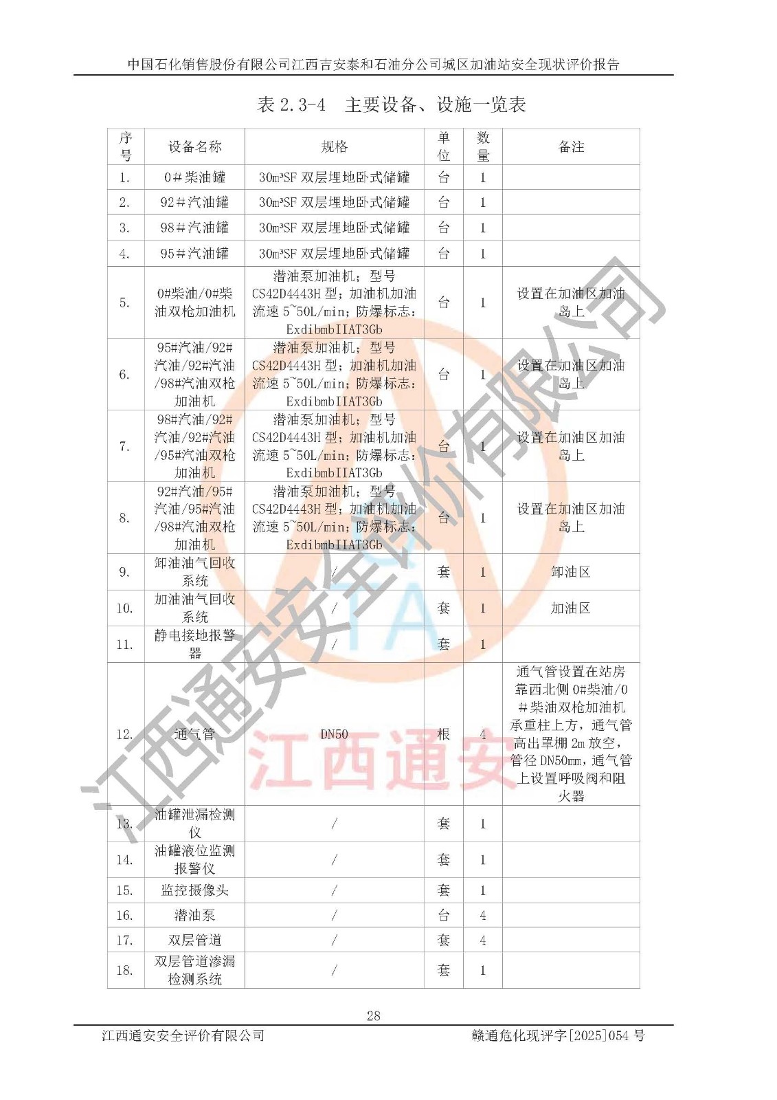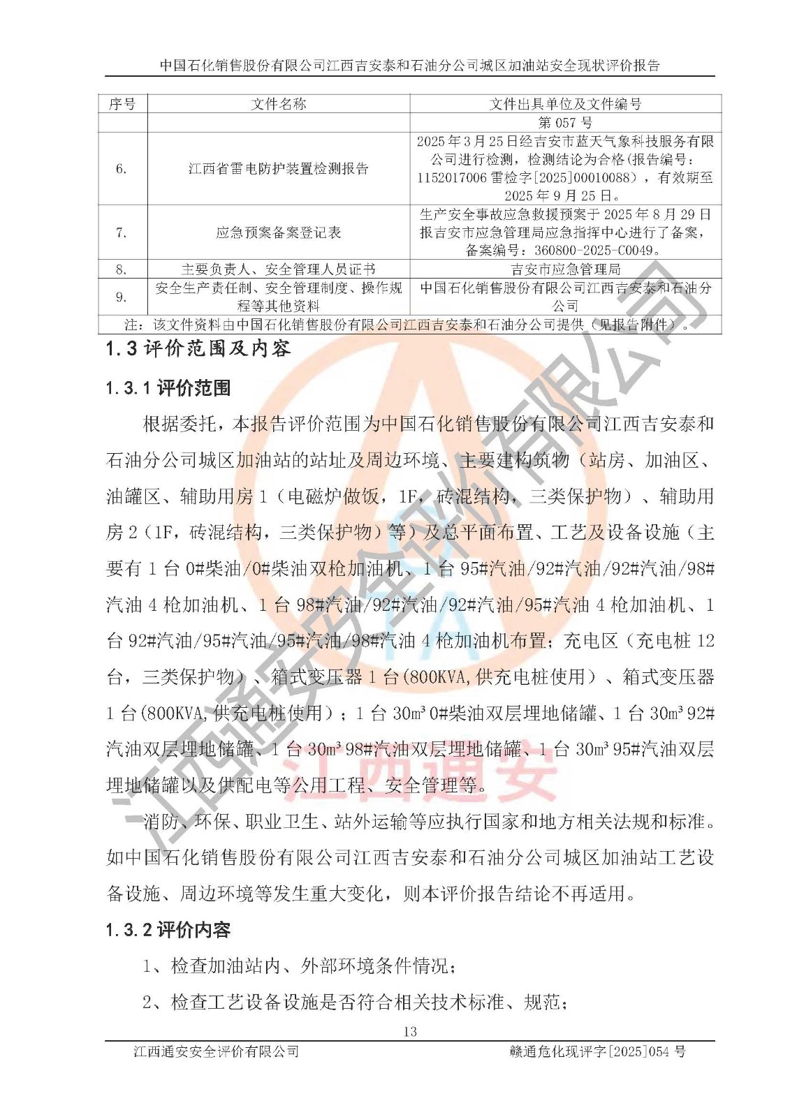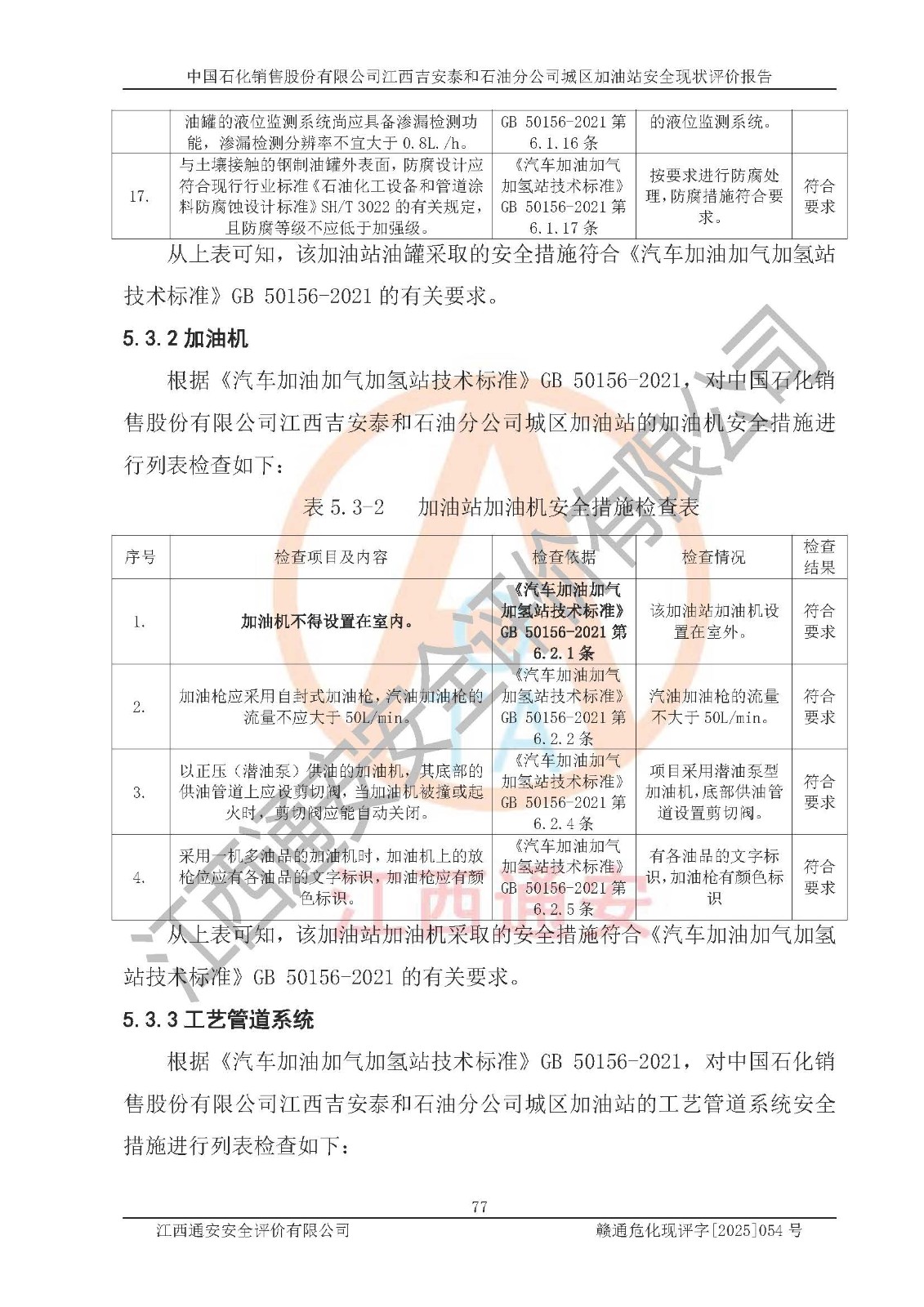 項目名稱 | 中國石化銷售股份有限公司江西吉安泰和石油分公司城區(qū)加油站 安全現(xiàn)狀評價報告 | ||||