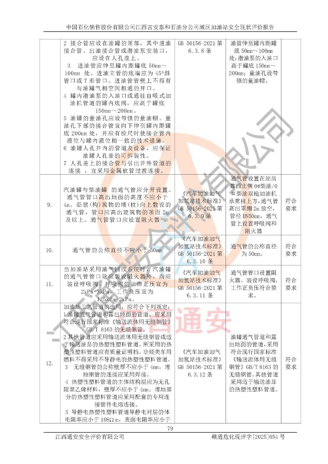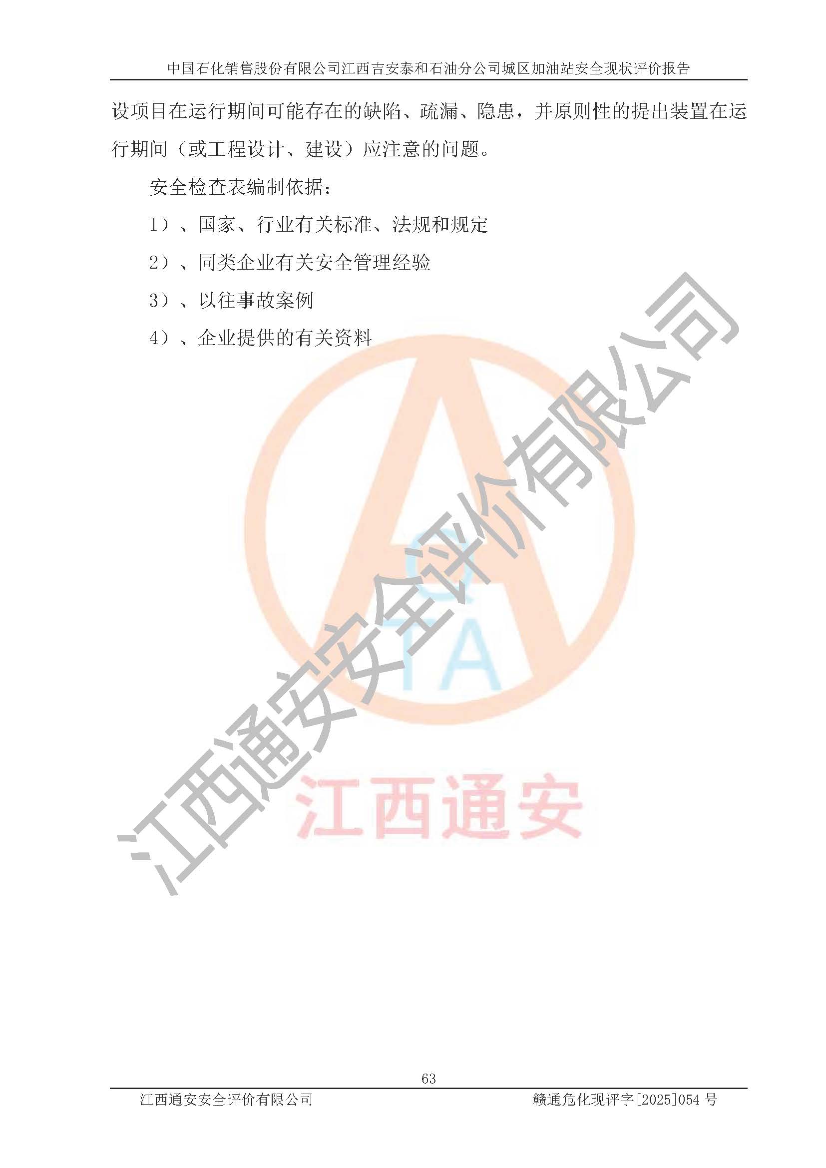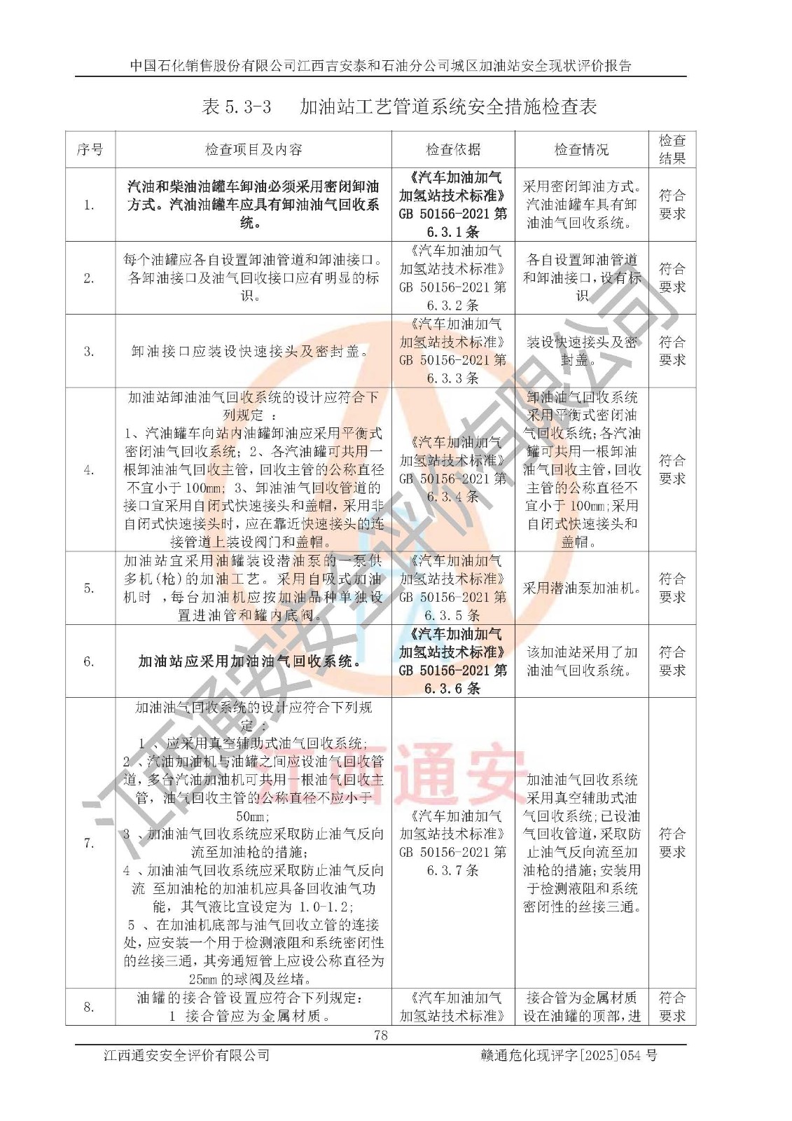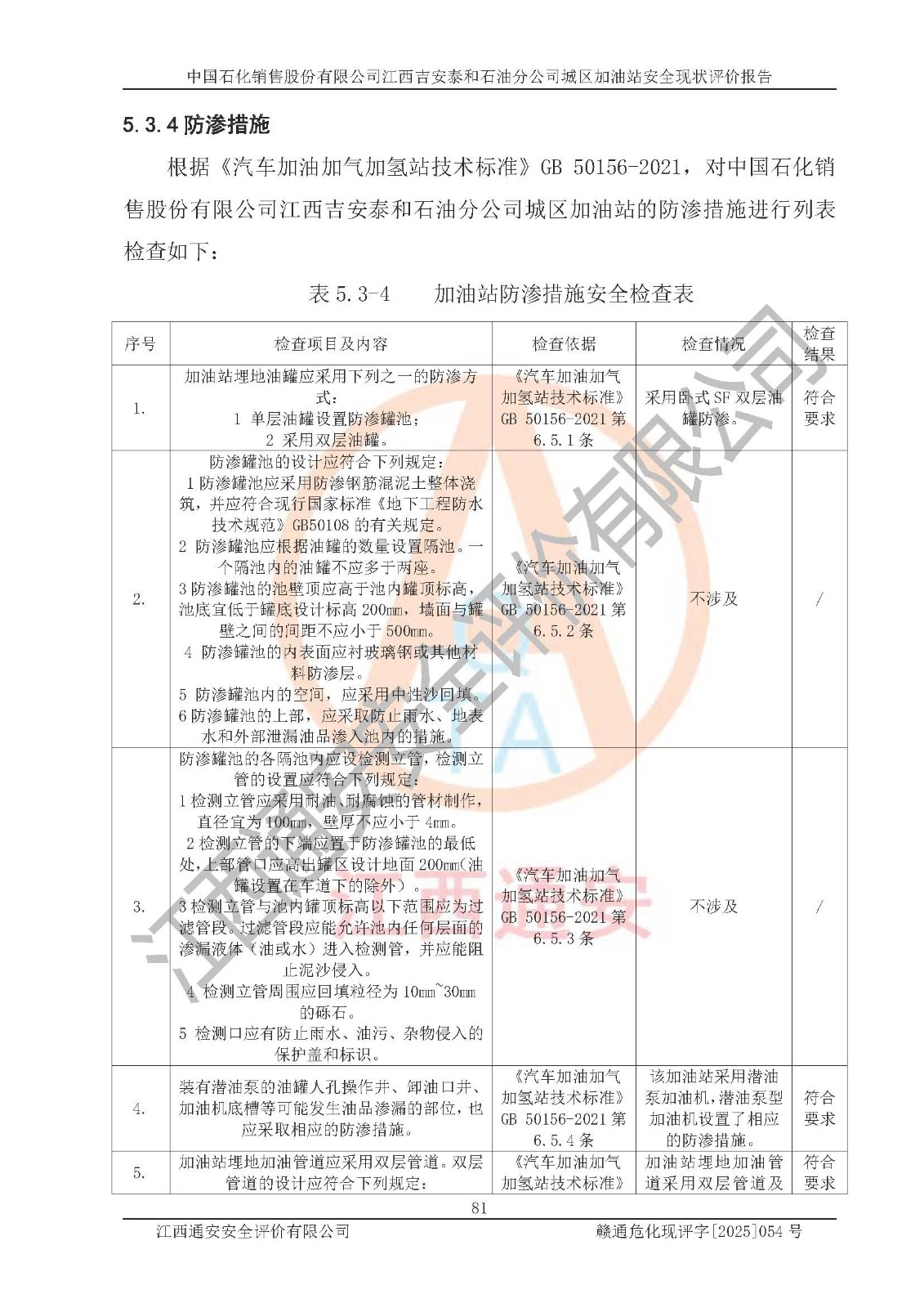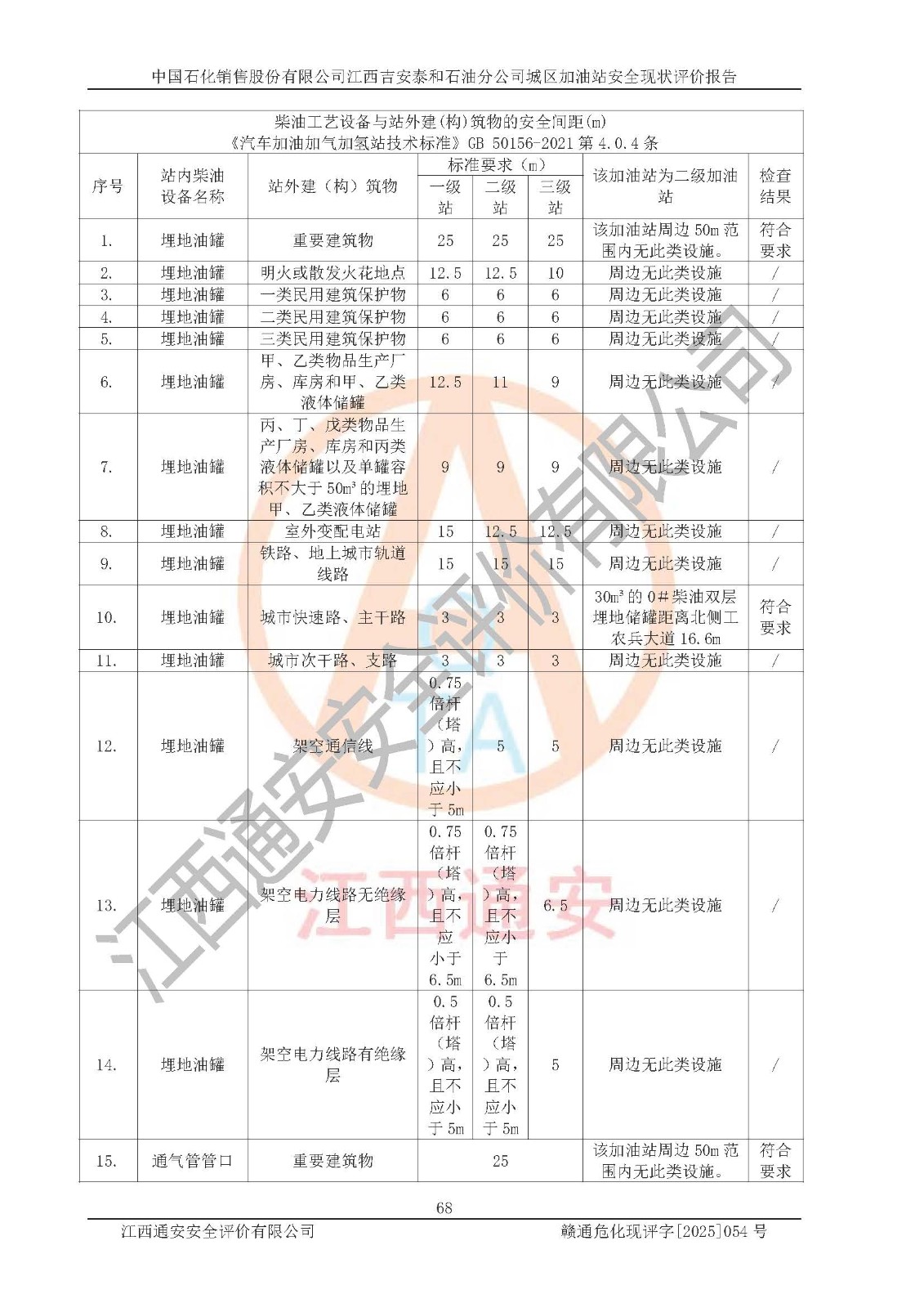 項目名稱 | 中國石化銷售股份有限公司江西吉安泰和石油分公司城區(qū)加油站 安全現(xiàn)狀評價報告 | ||||